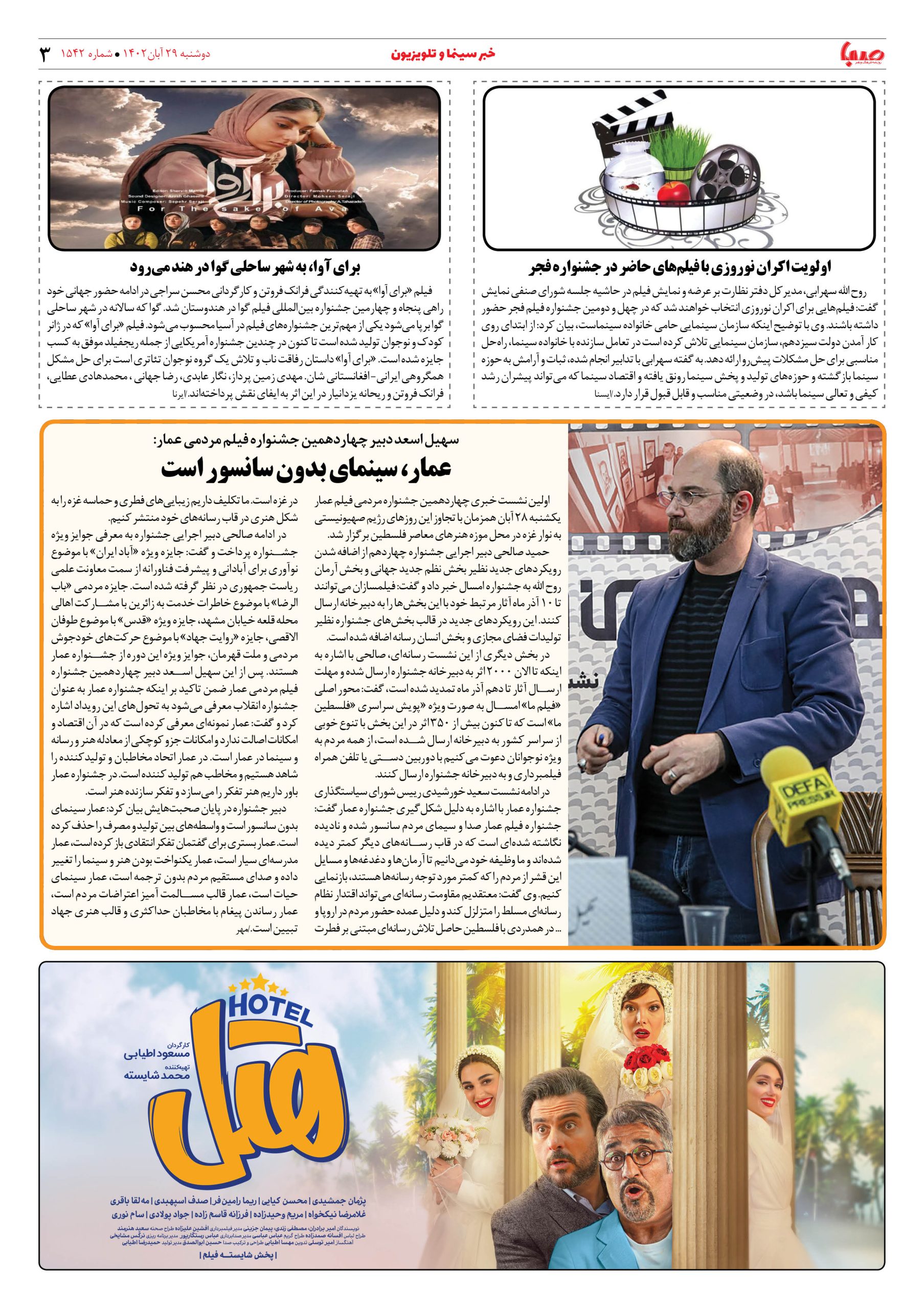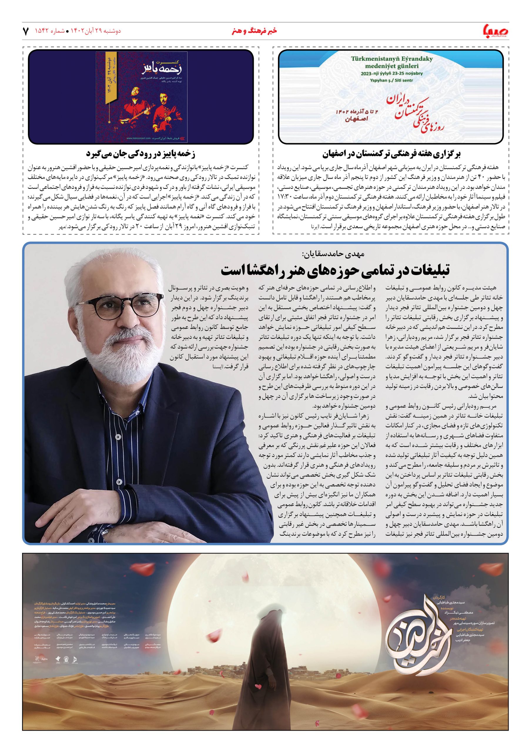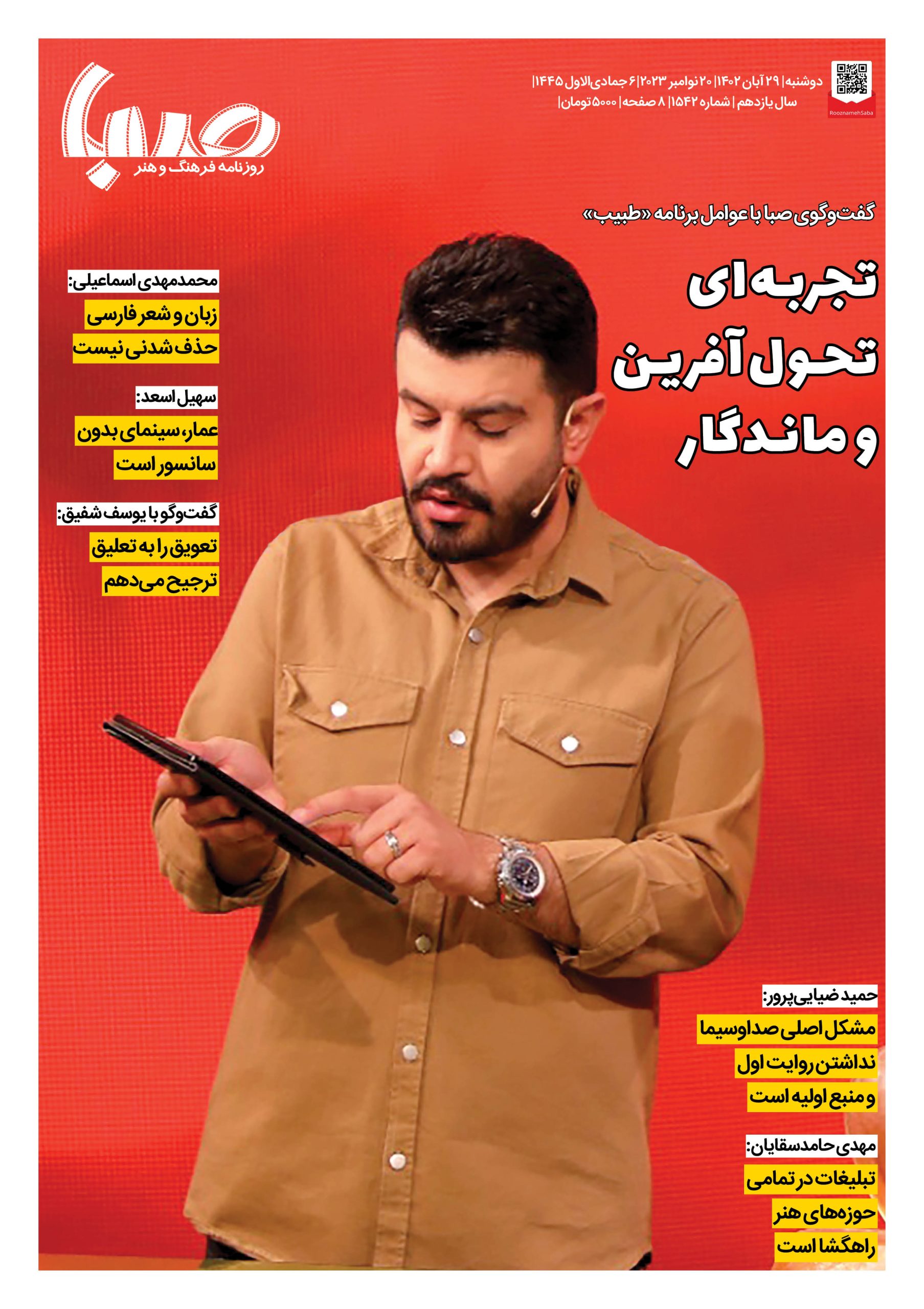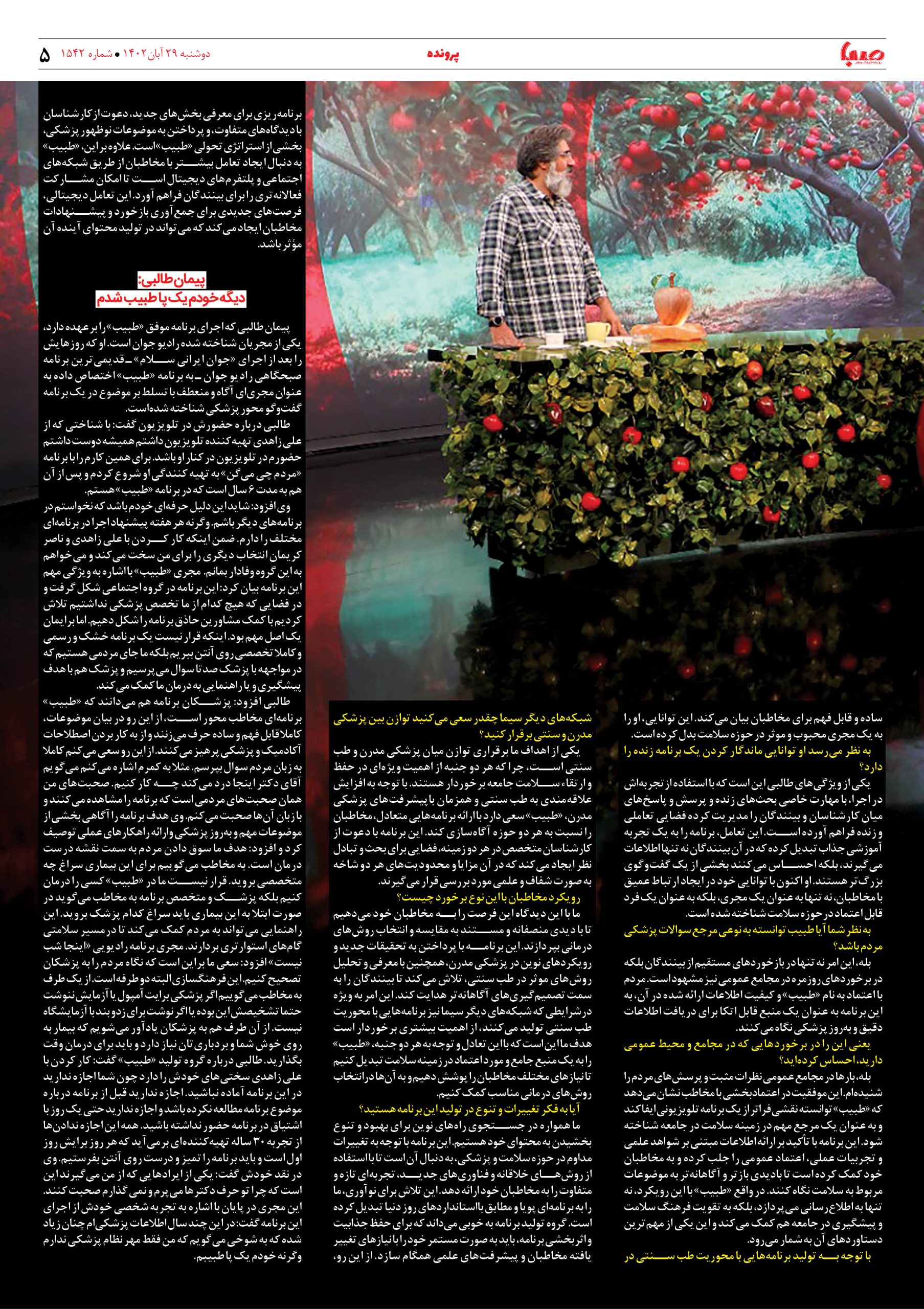 شماره۱۵۴۲| روزنامه صبا دوشنبه ۲۹ آبان