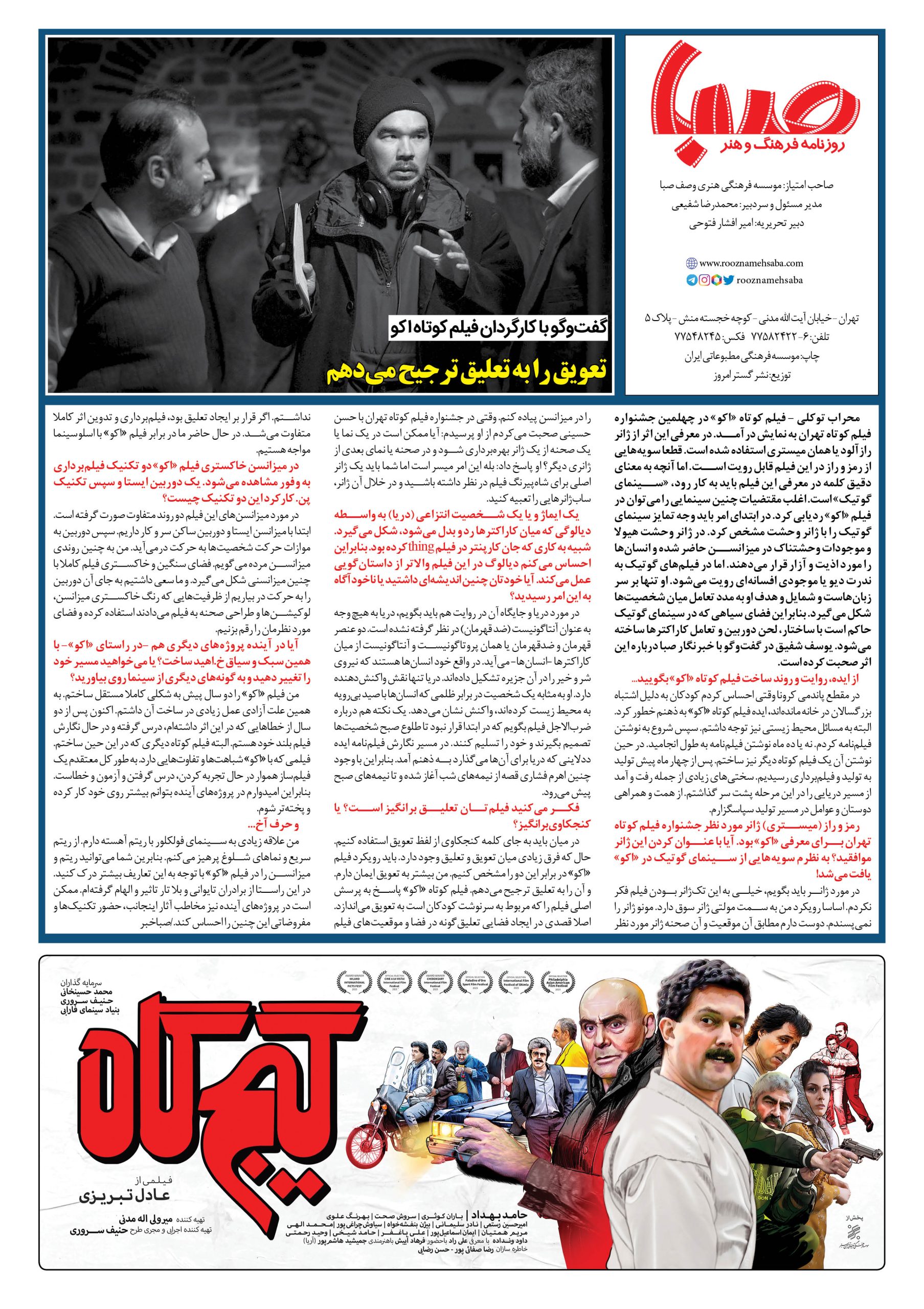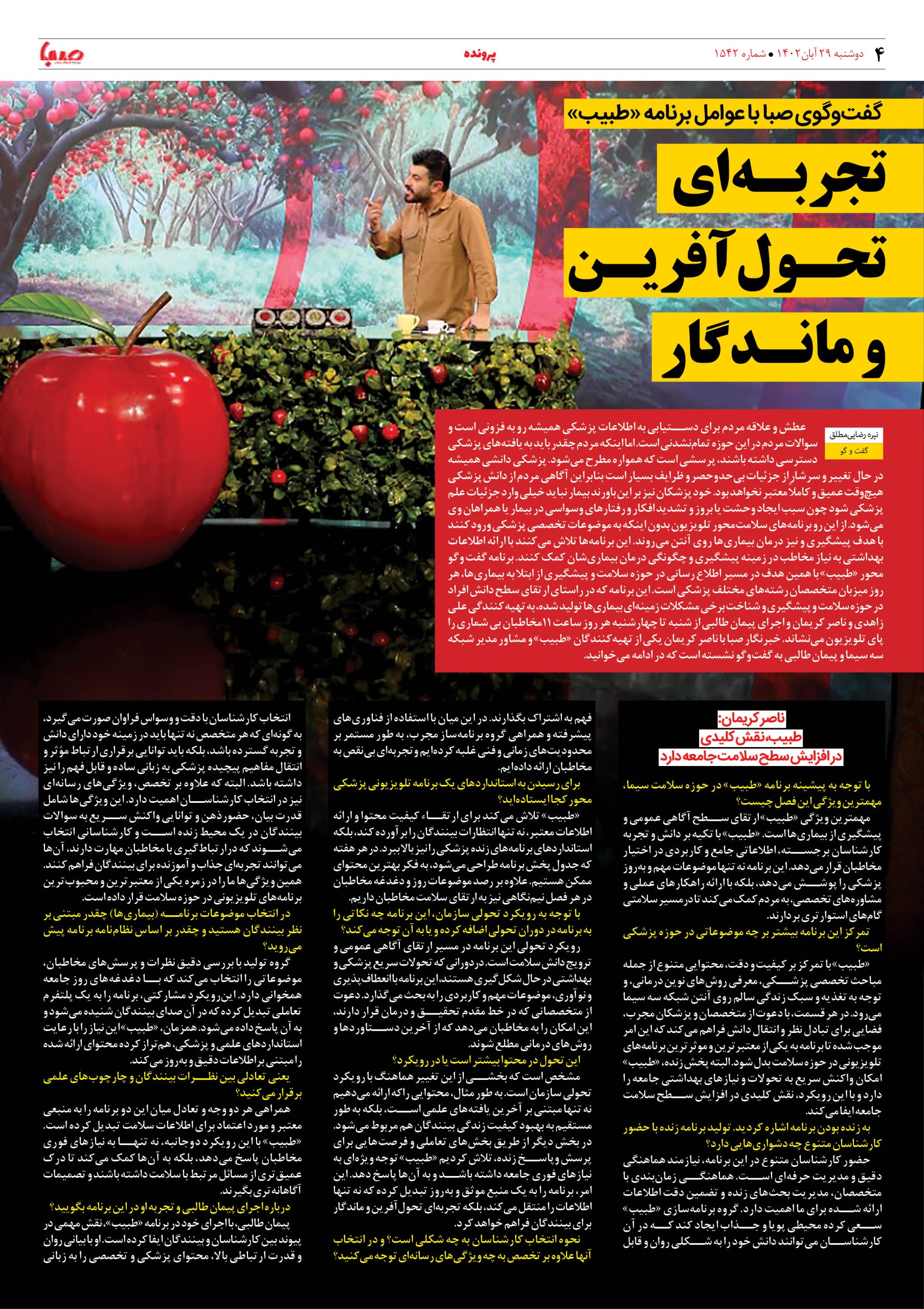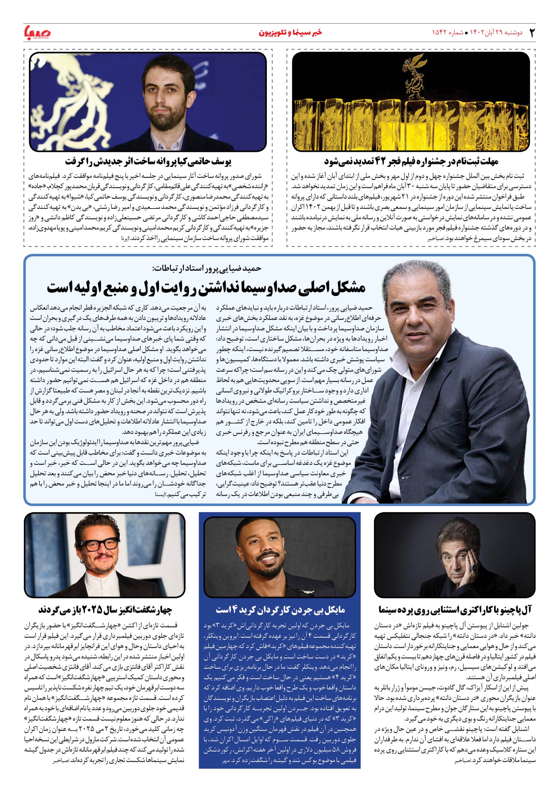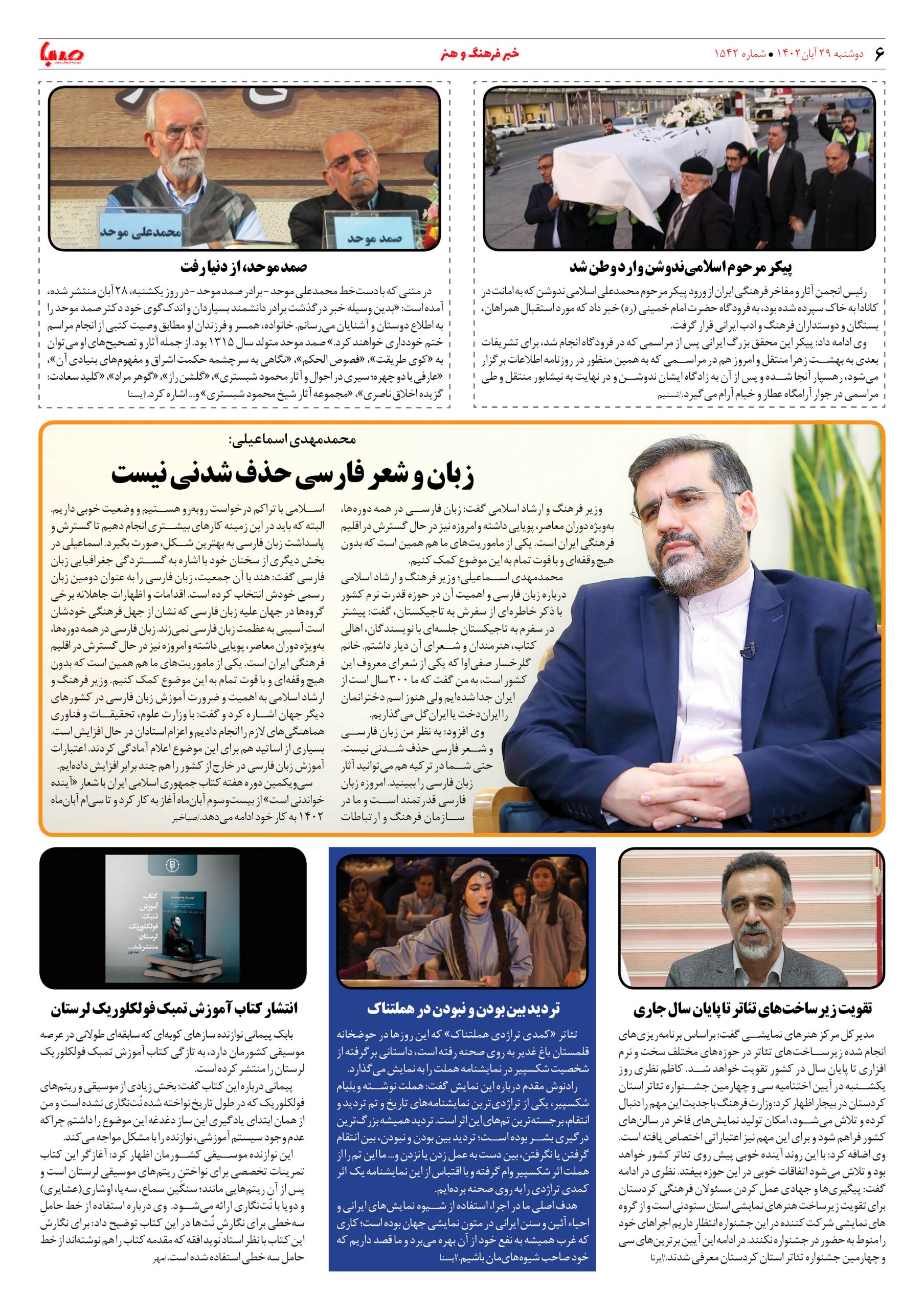 شماره۱۵۴۲| روزنامه صبا دوشنبه ۲۹ آبان