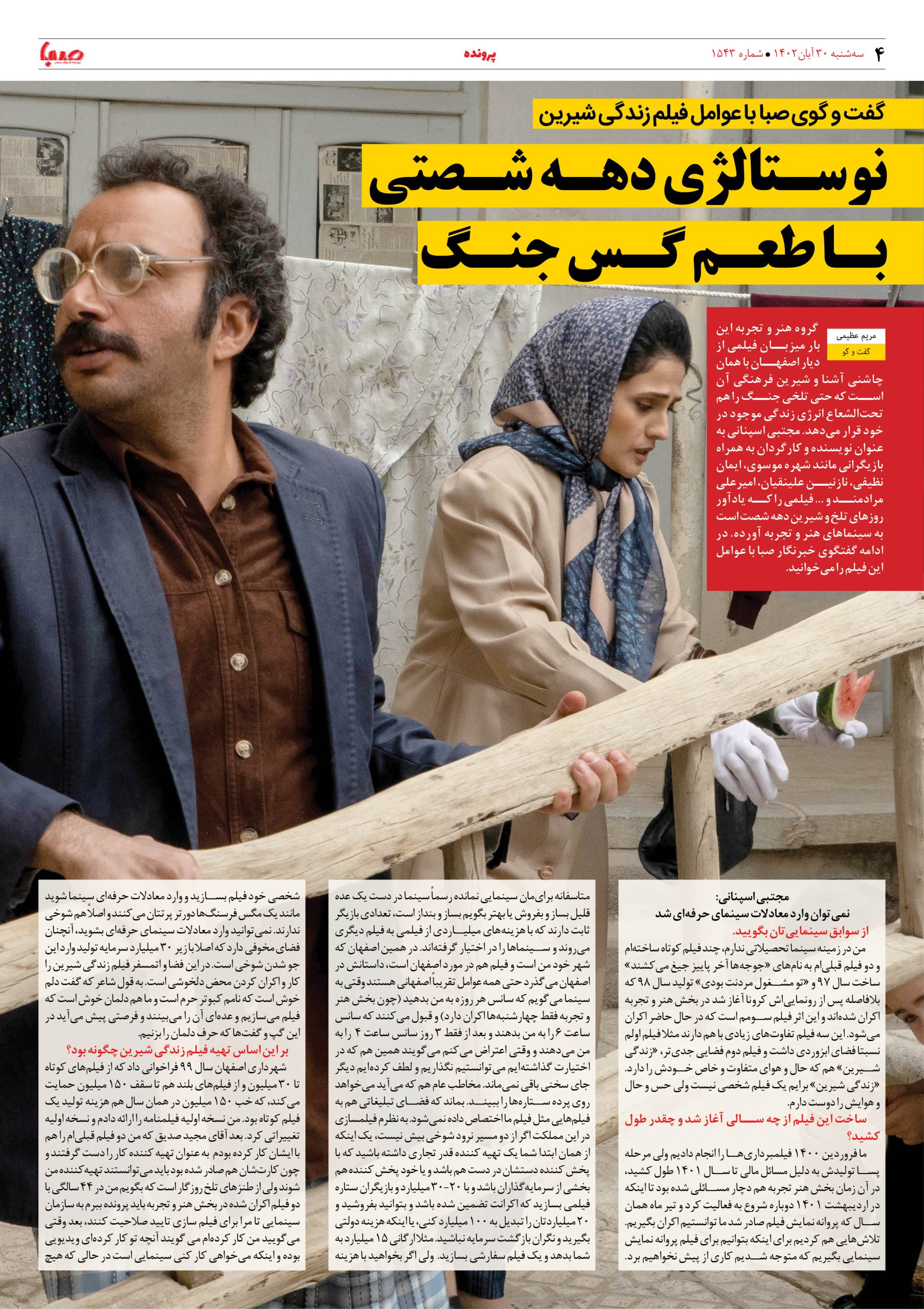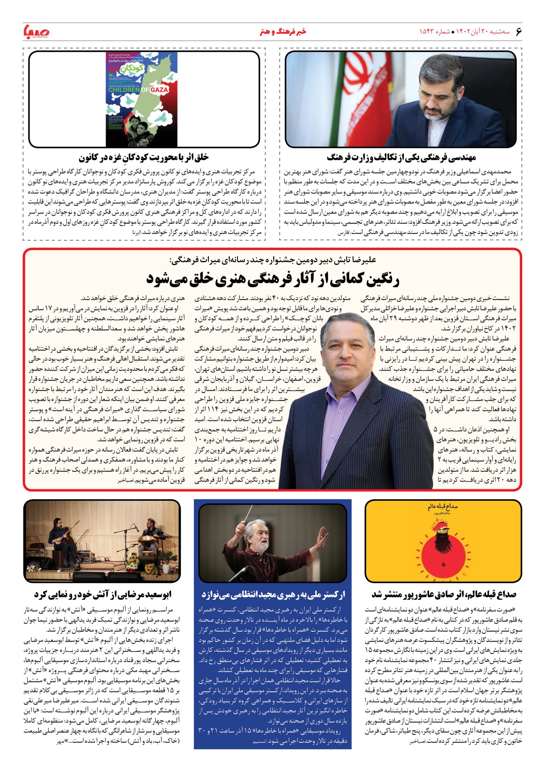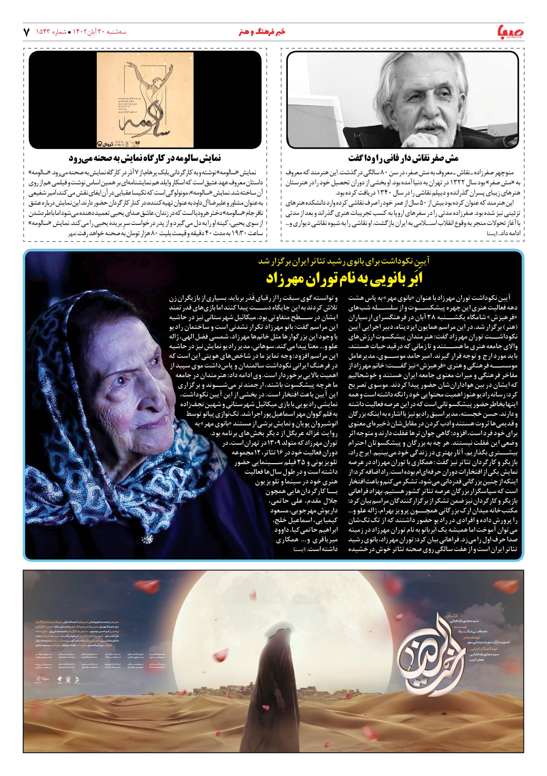 شماره۱۵۴۳| روزنامه صبا سه شنبه ۳۰ آبان