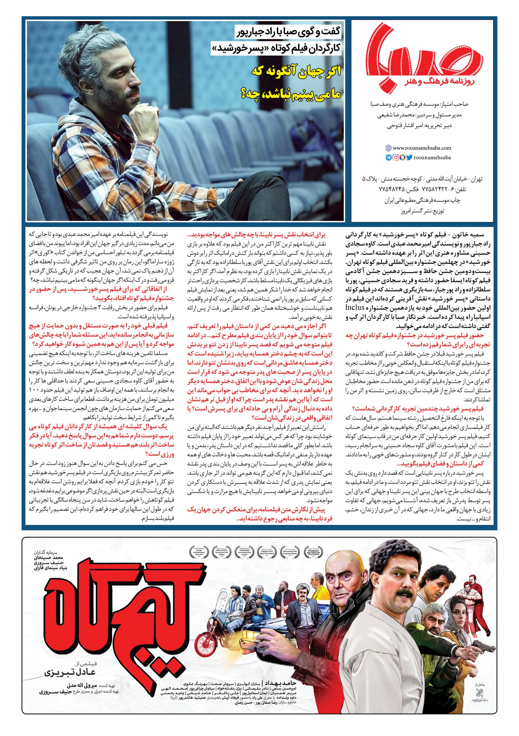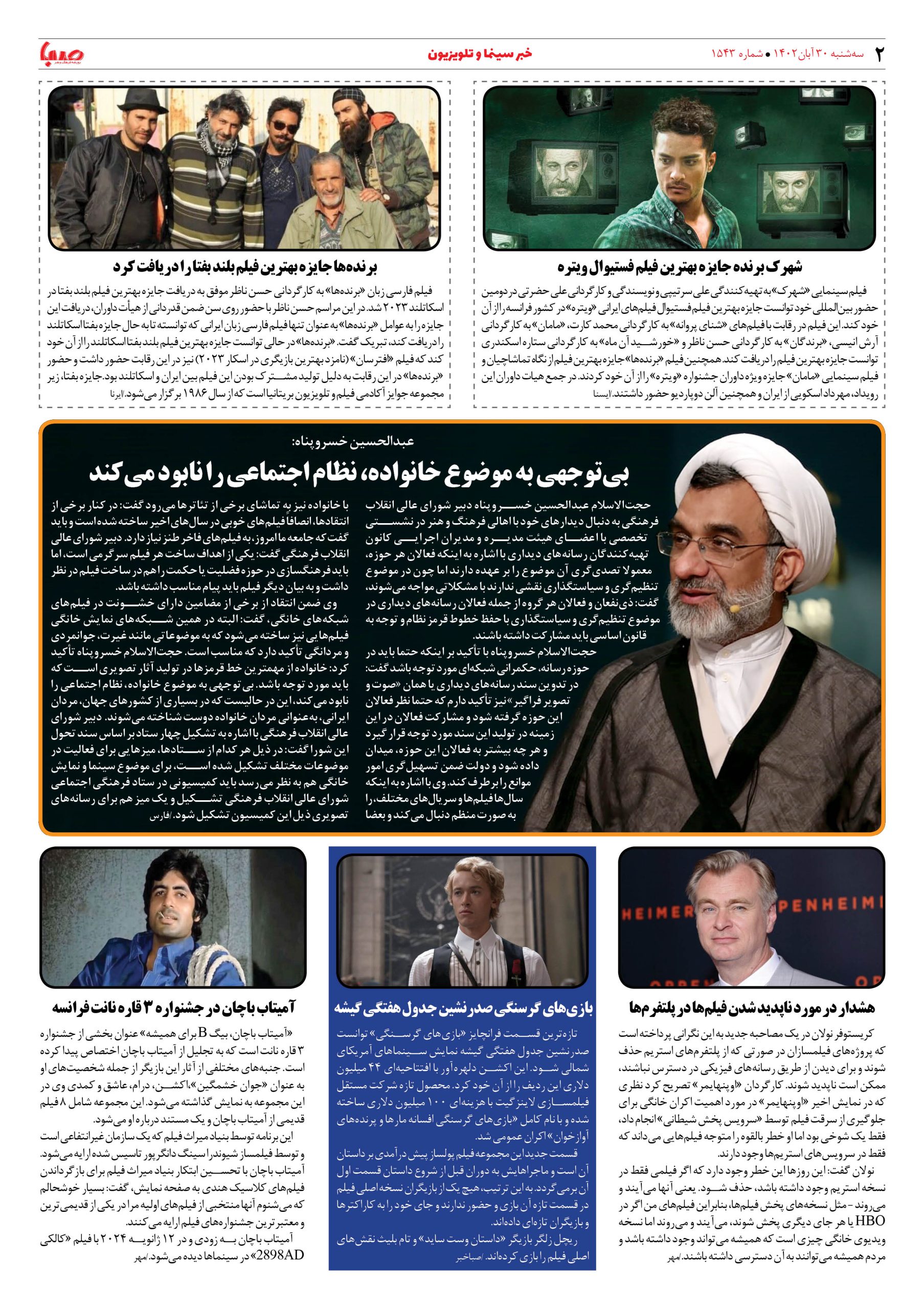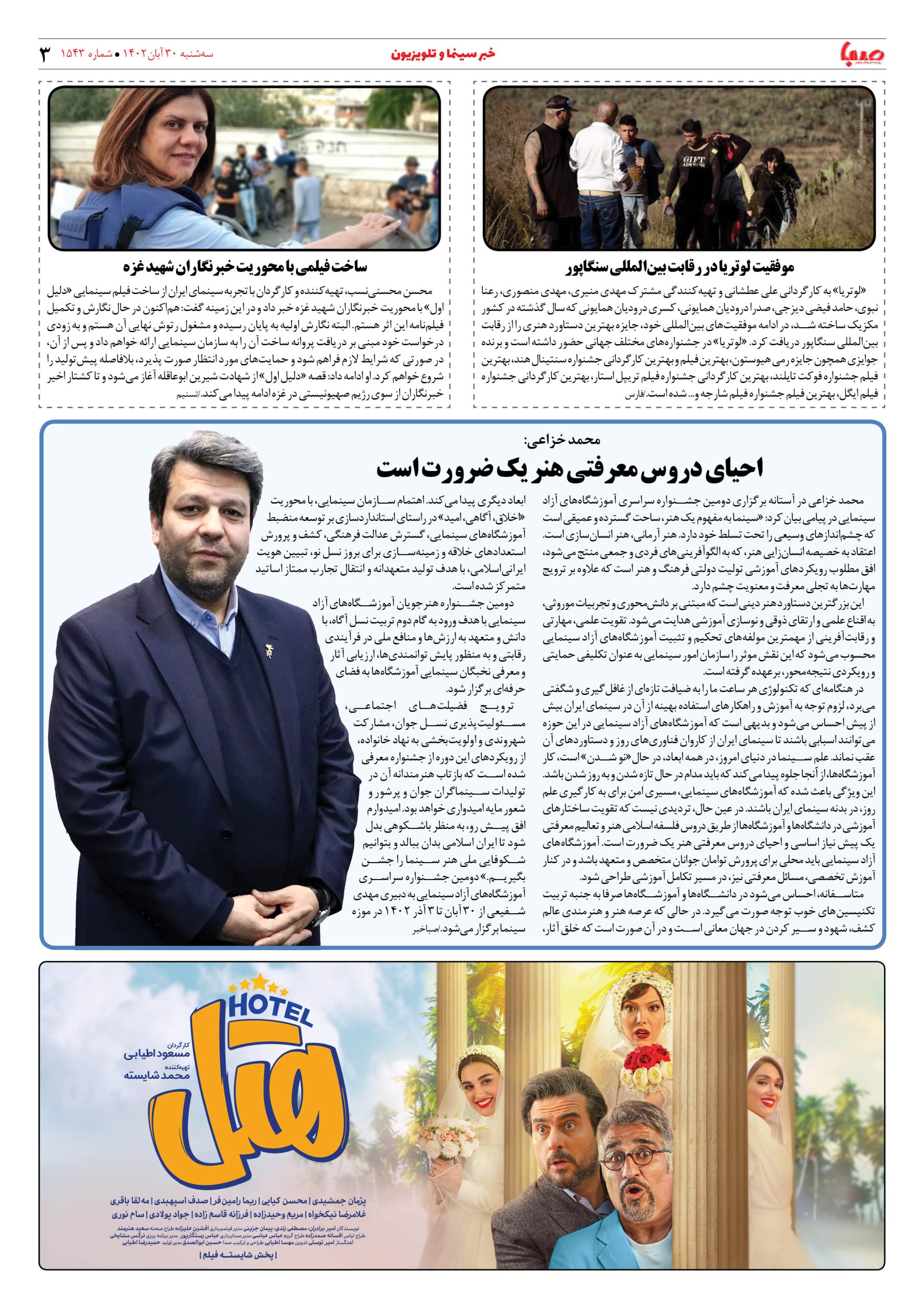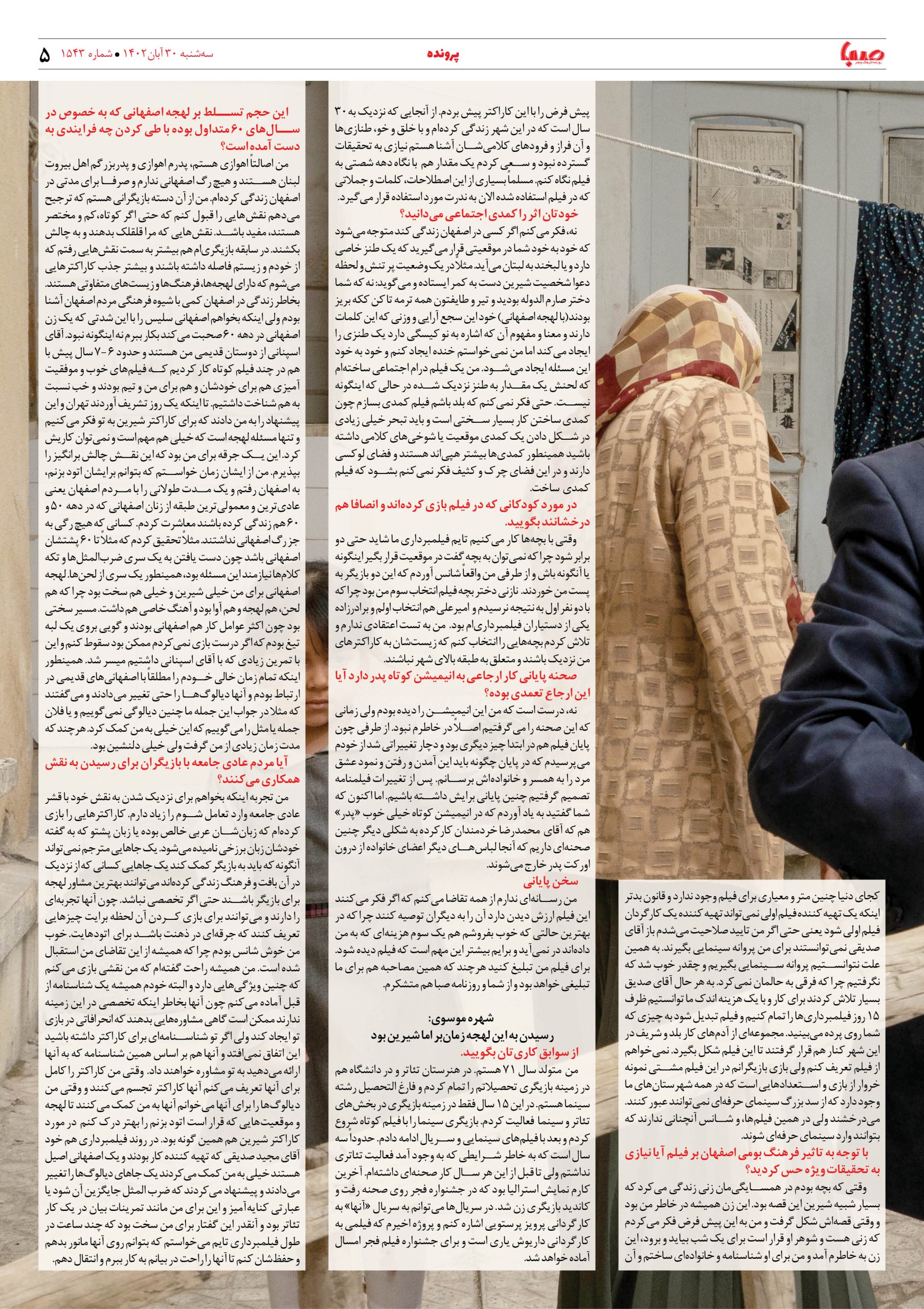شماره۱۵۴۳| روزنامه صبا سه شنبه ۳۰ آبان