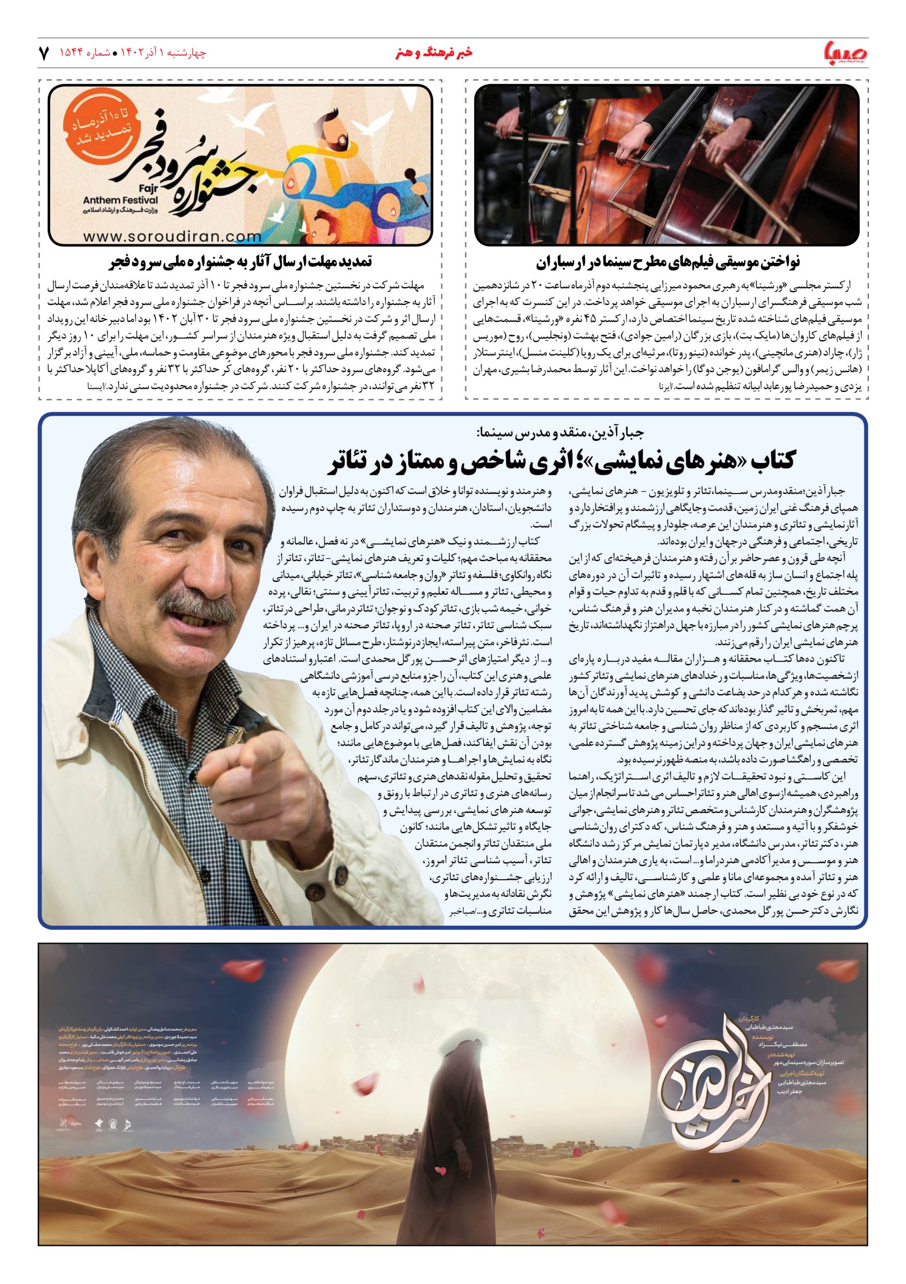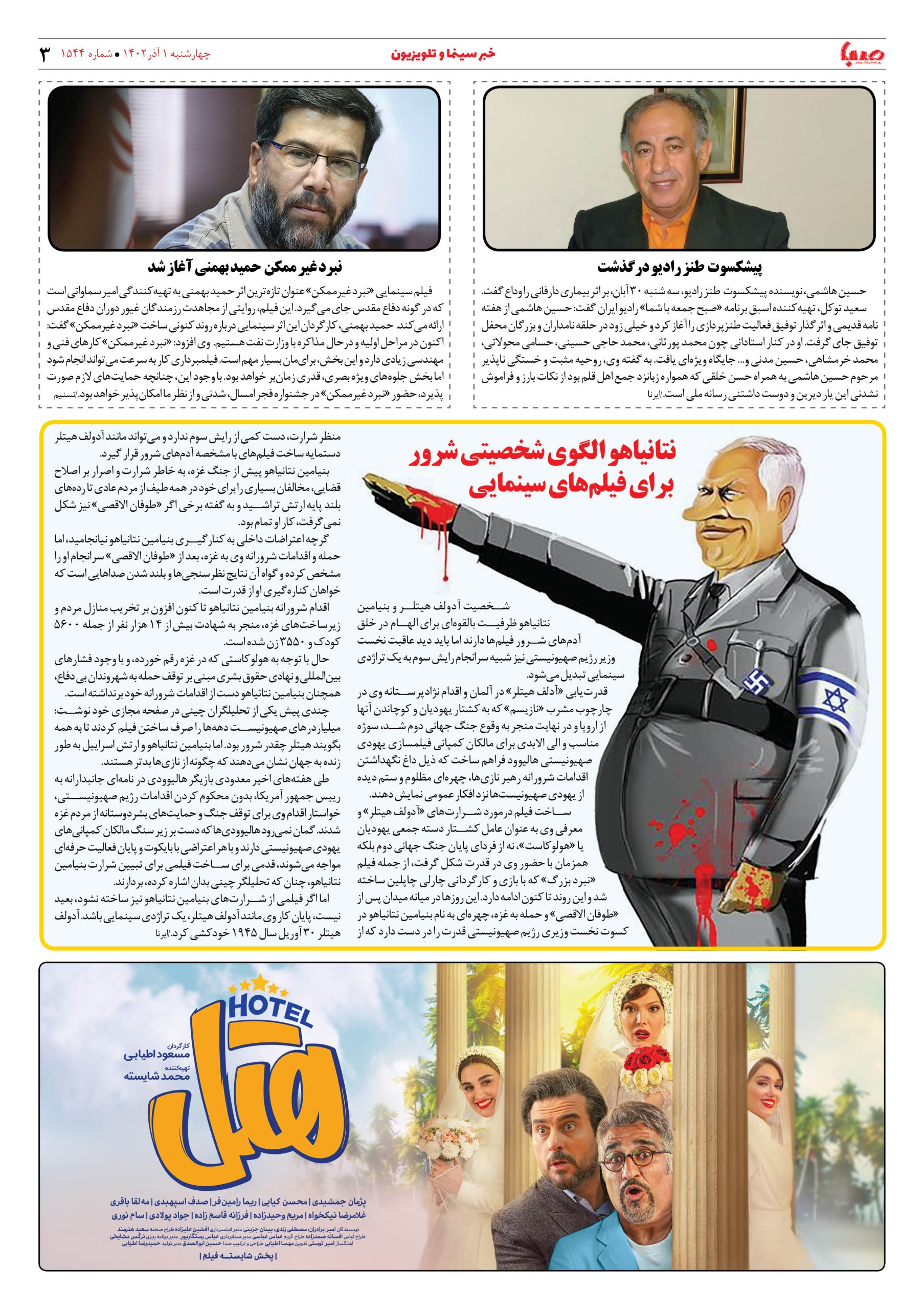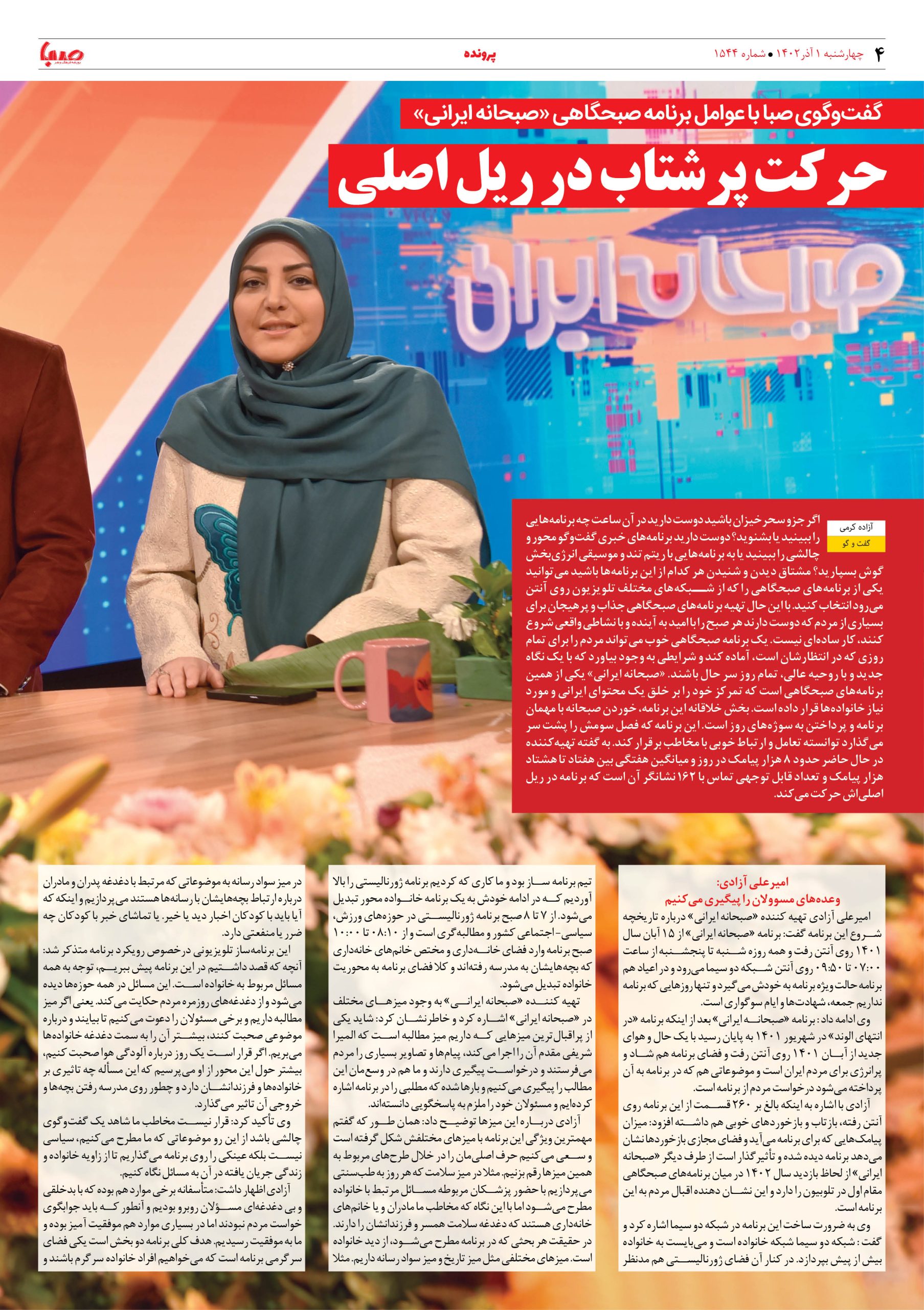 شماره۱۵۴۴| روزنامه صبا چهارشنبه ۱آذر