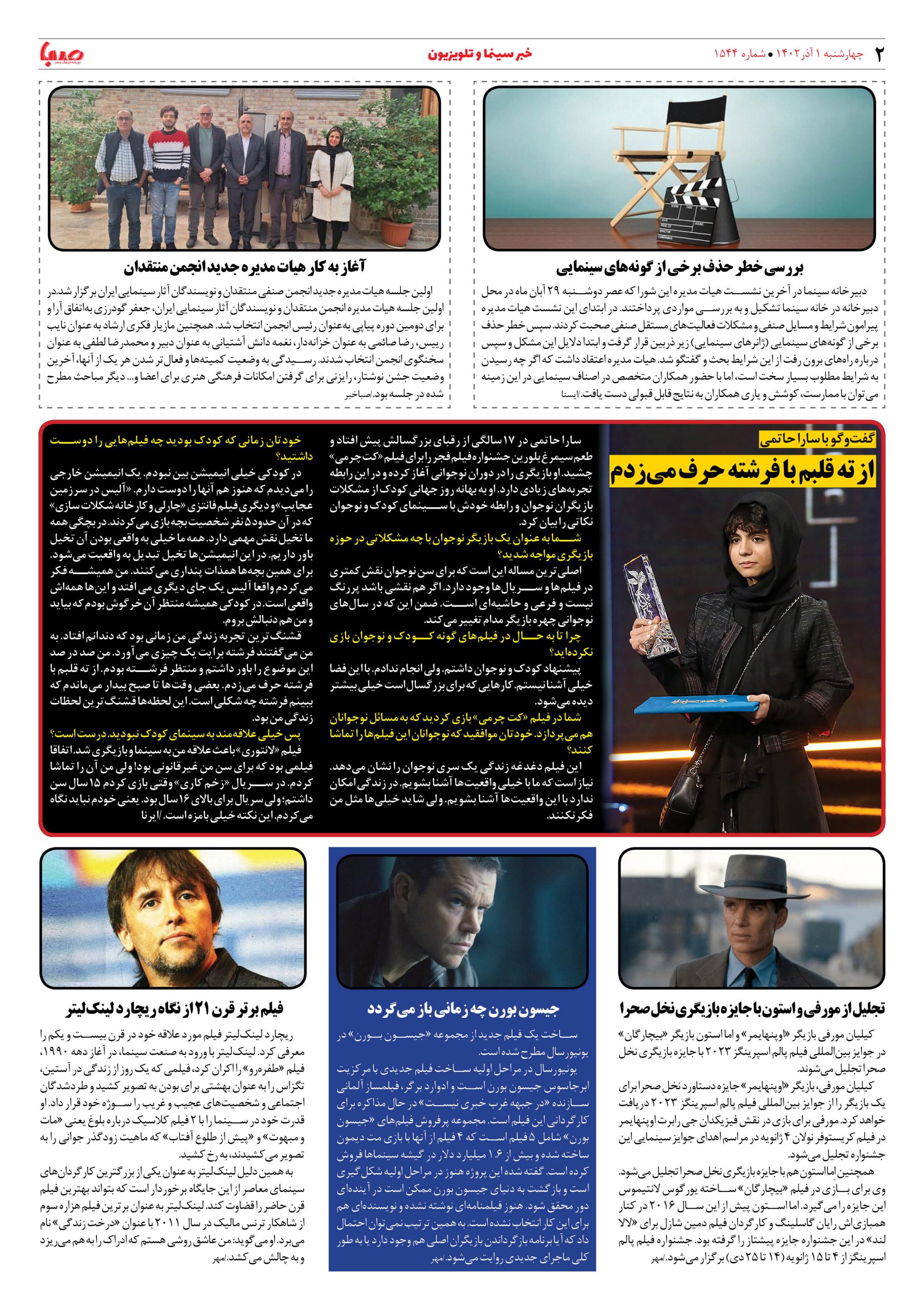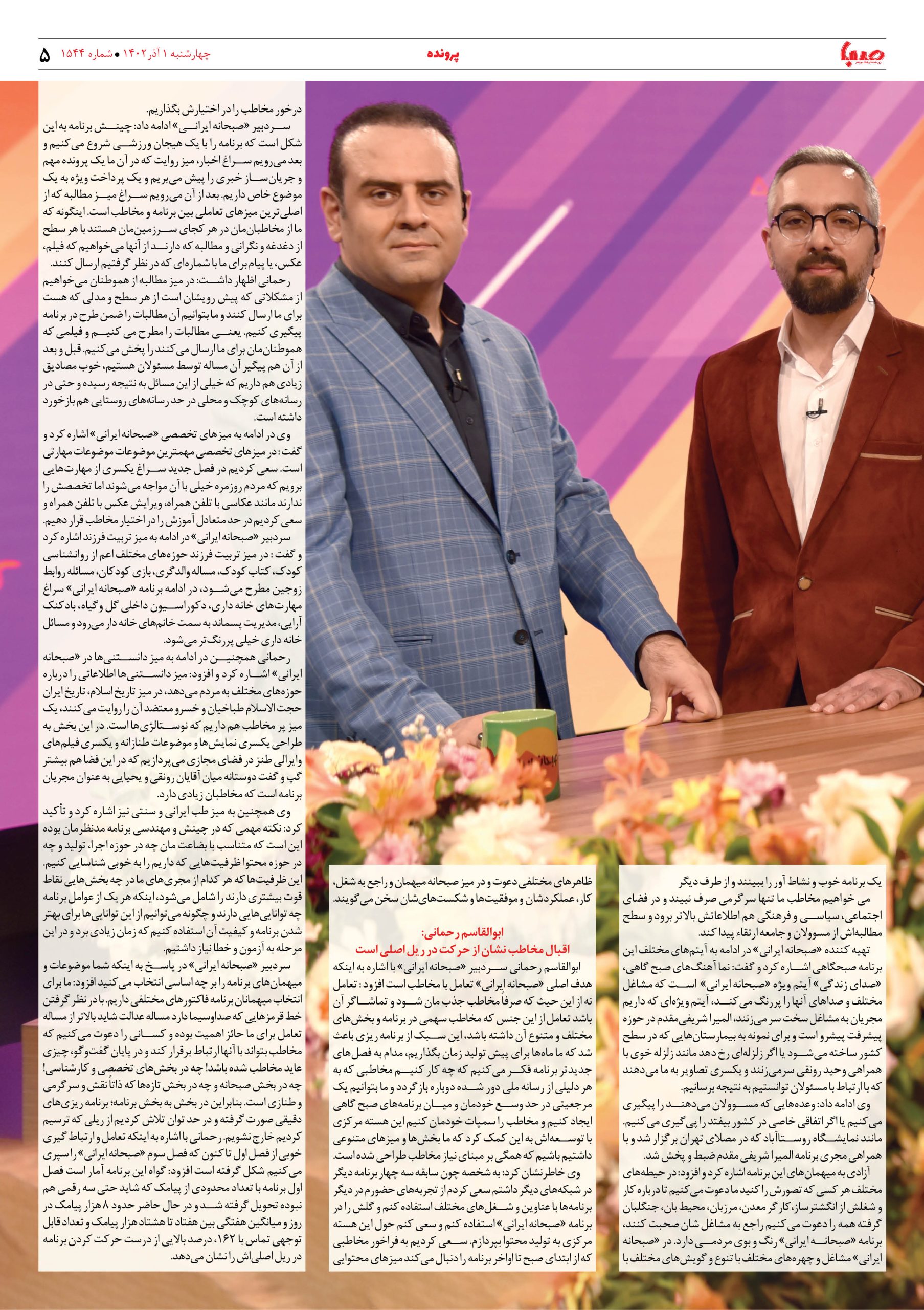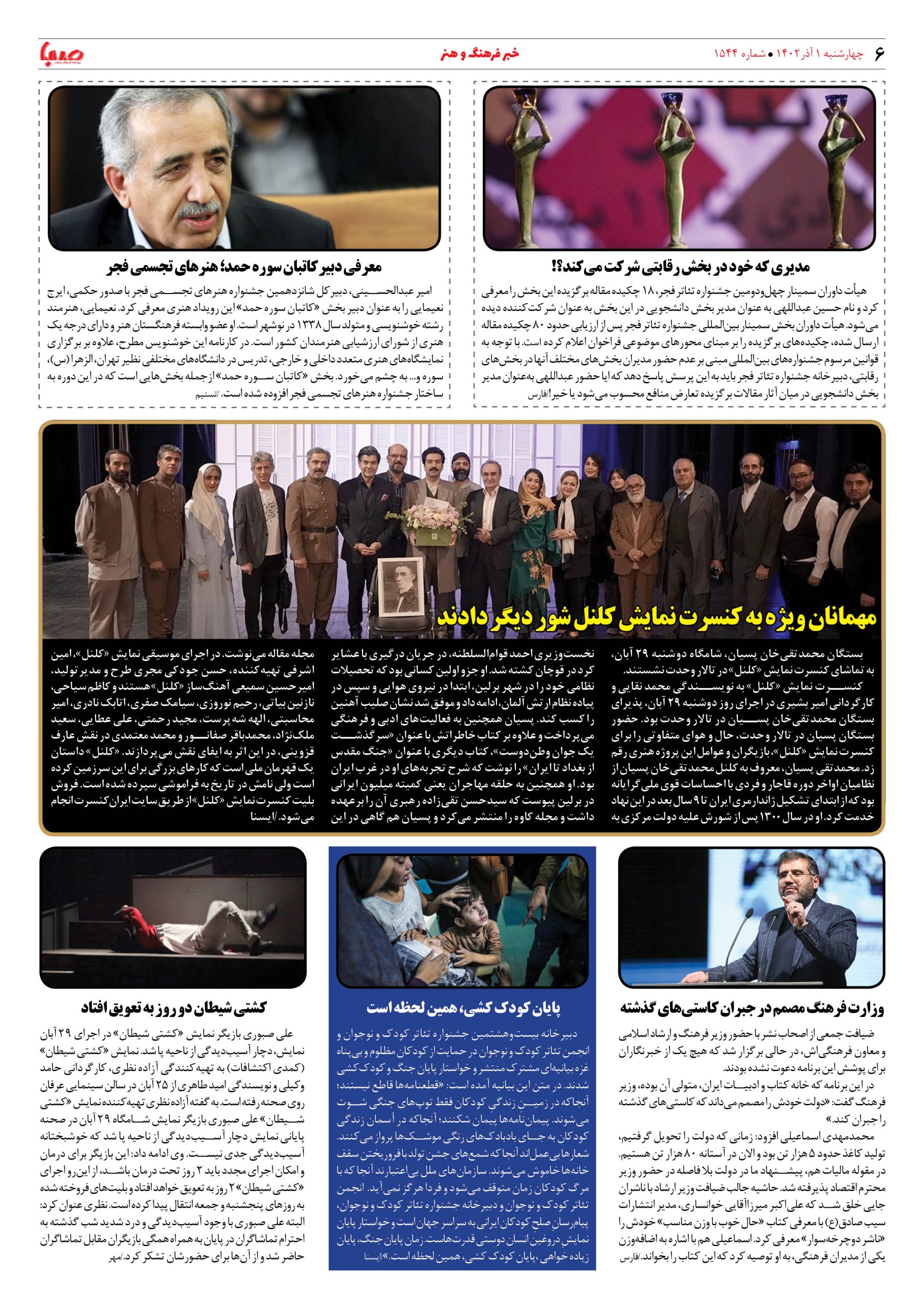 شماره۱۵۴۴| روزنامه صبا چهارشنبه ۱آذر