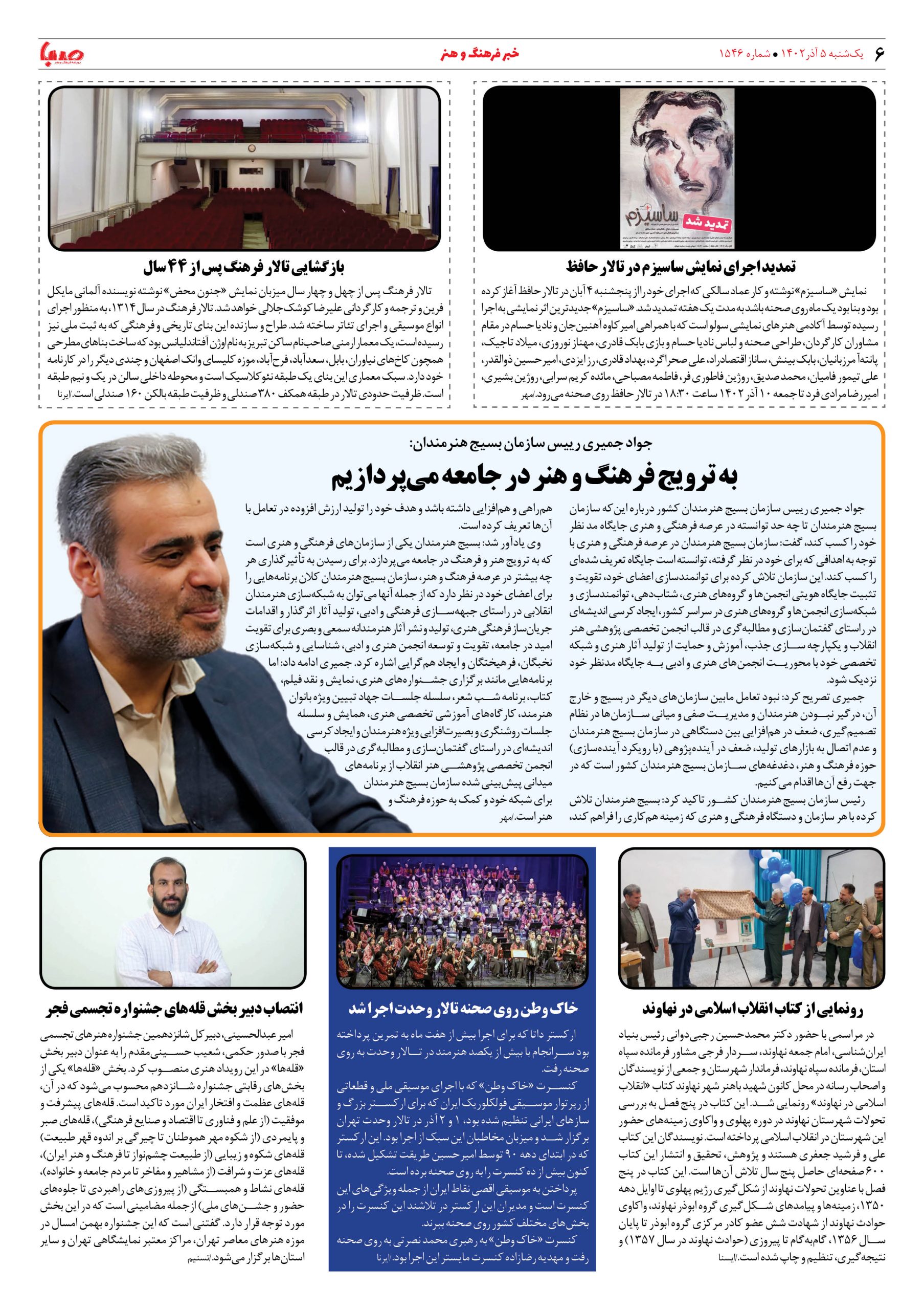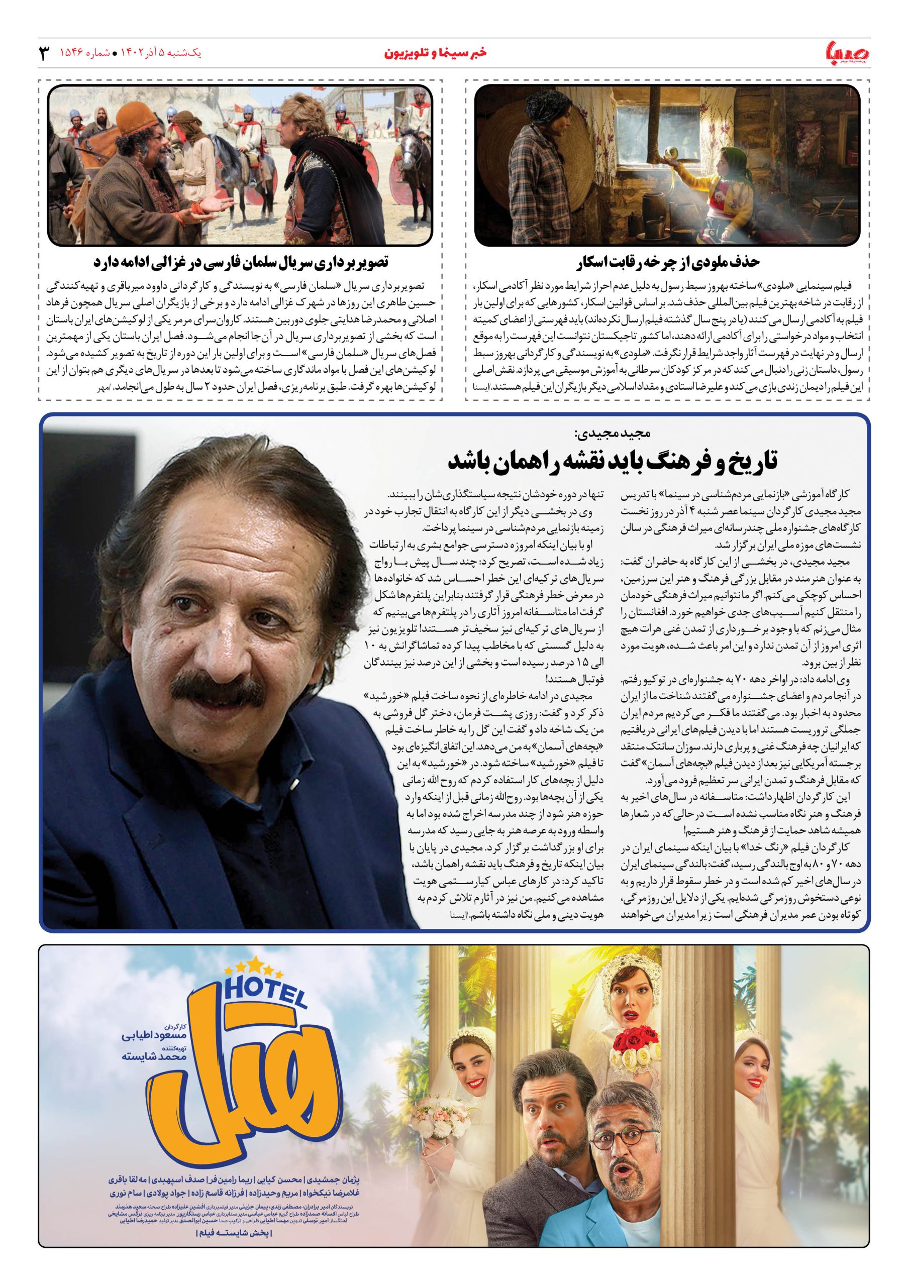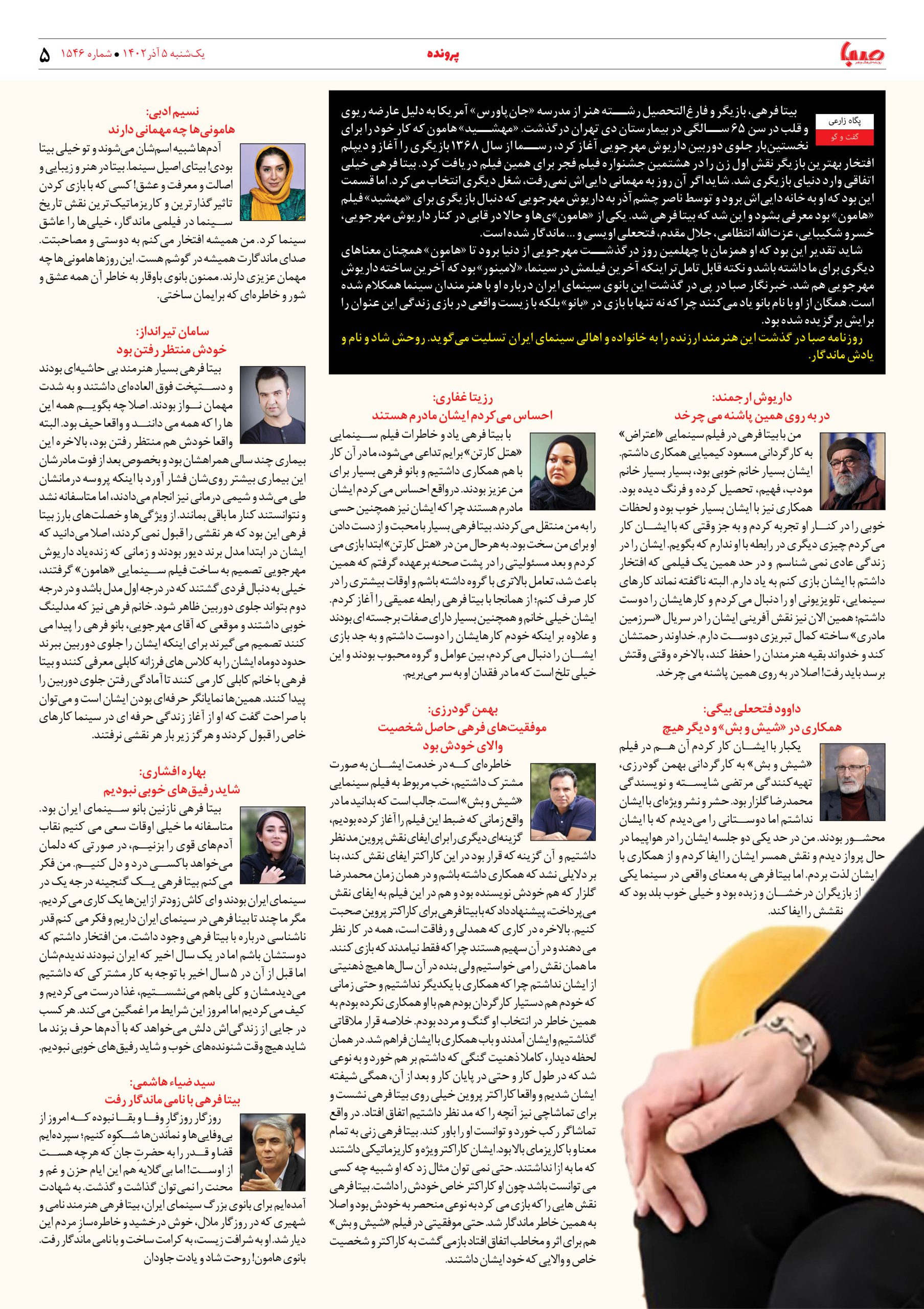 شماره۱۵۴۶| روزنامه صبا یکشنبه ۵آذر