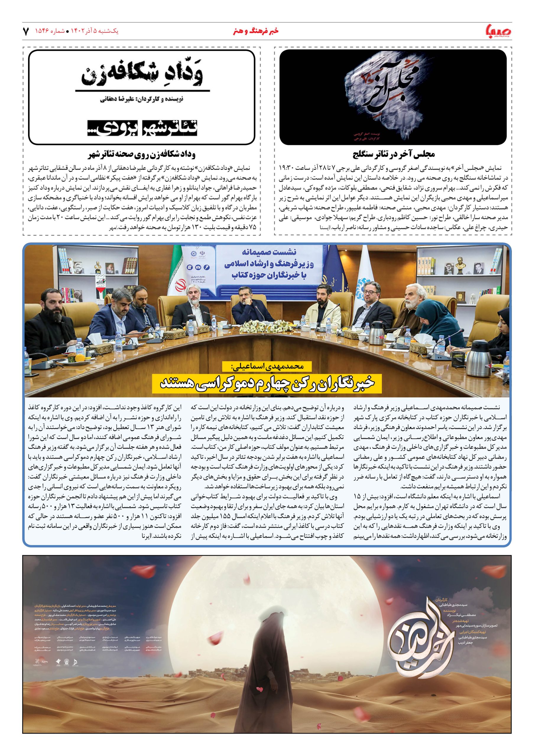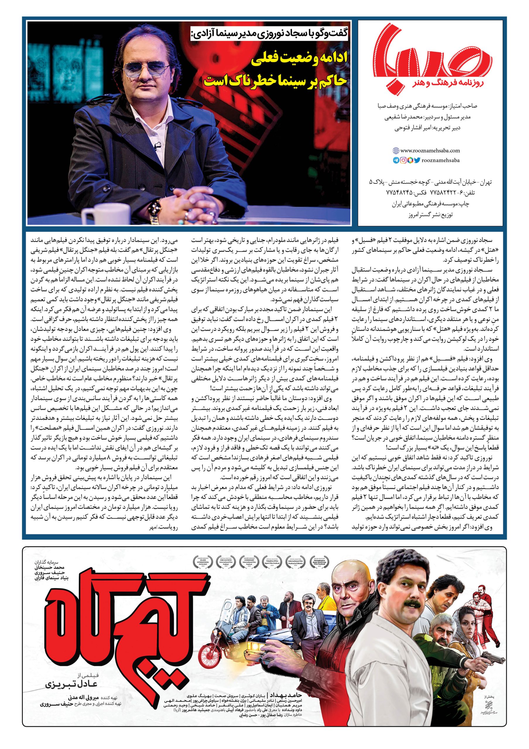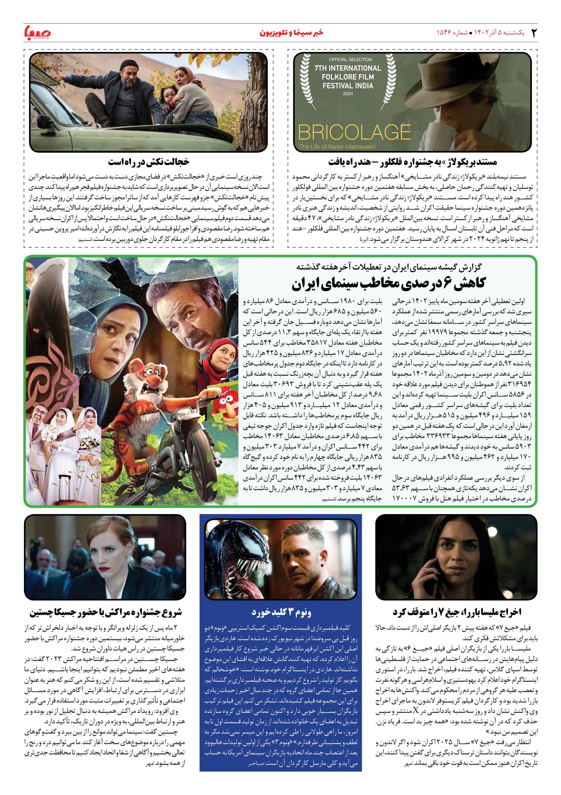 شماره۱۵۴۶| روزنامه صبا یکشنبه ۵آذر