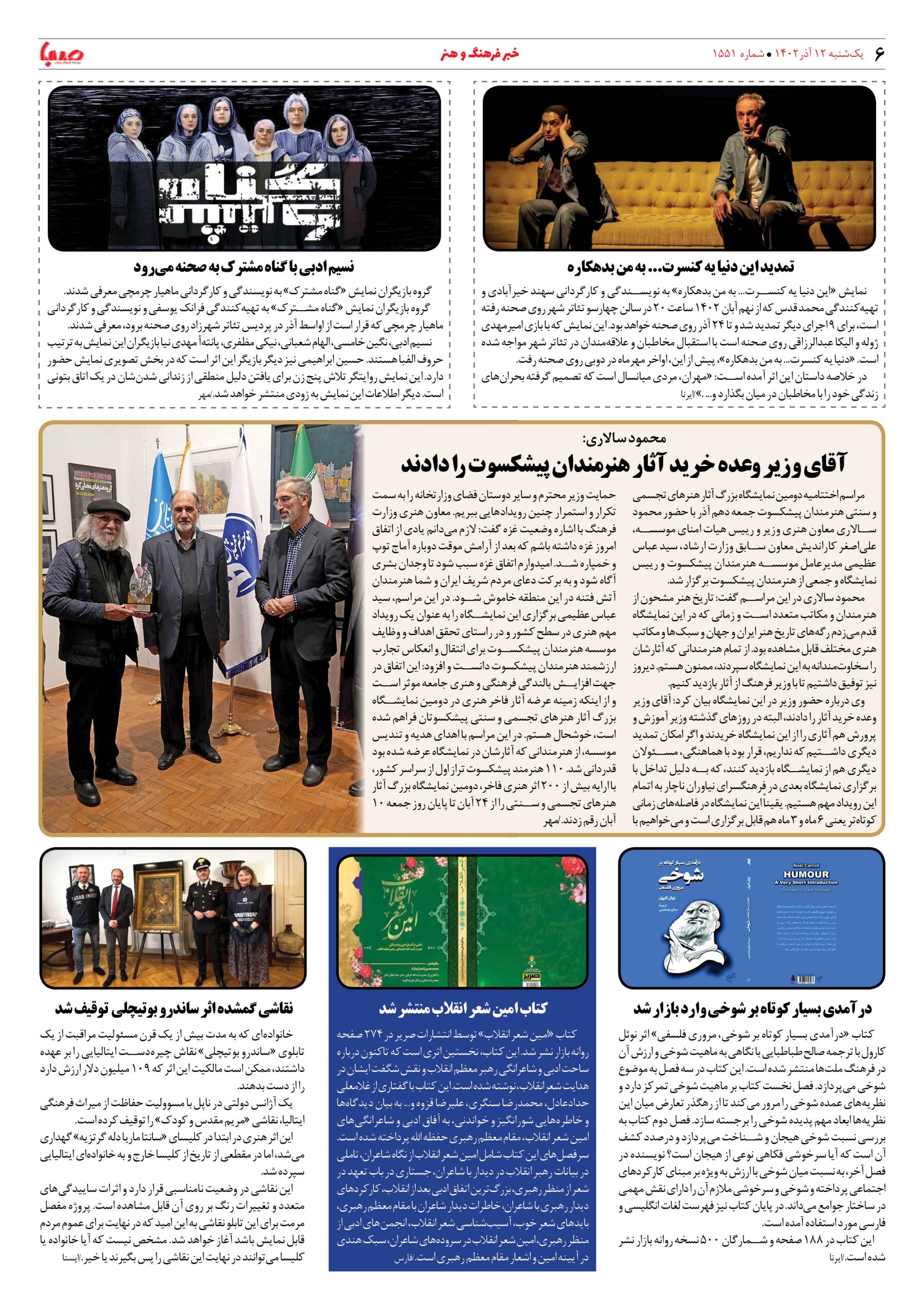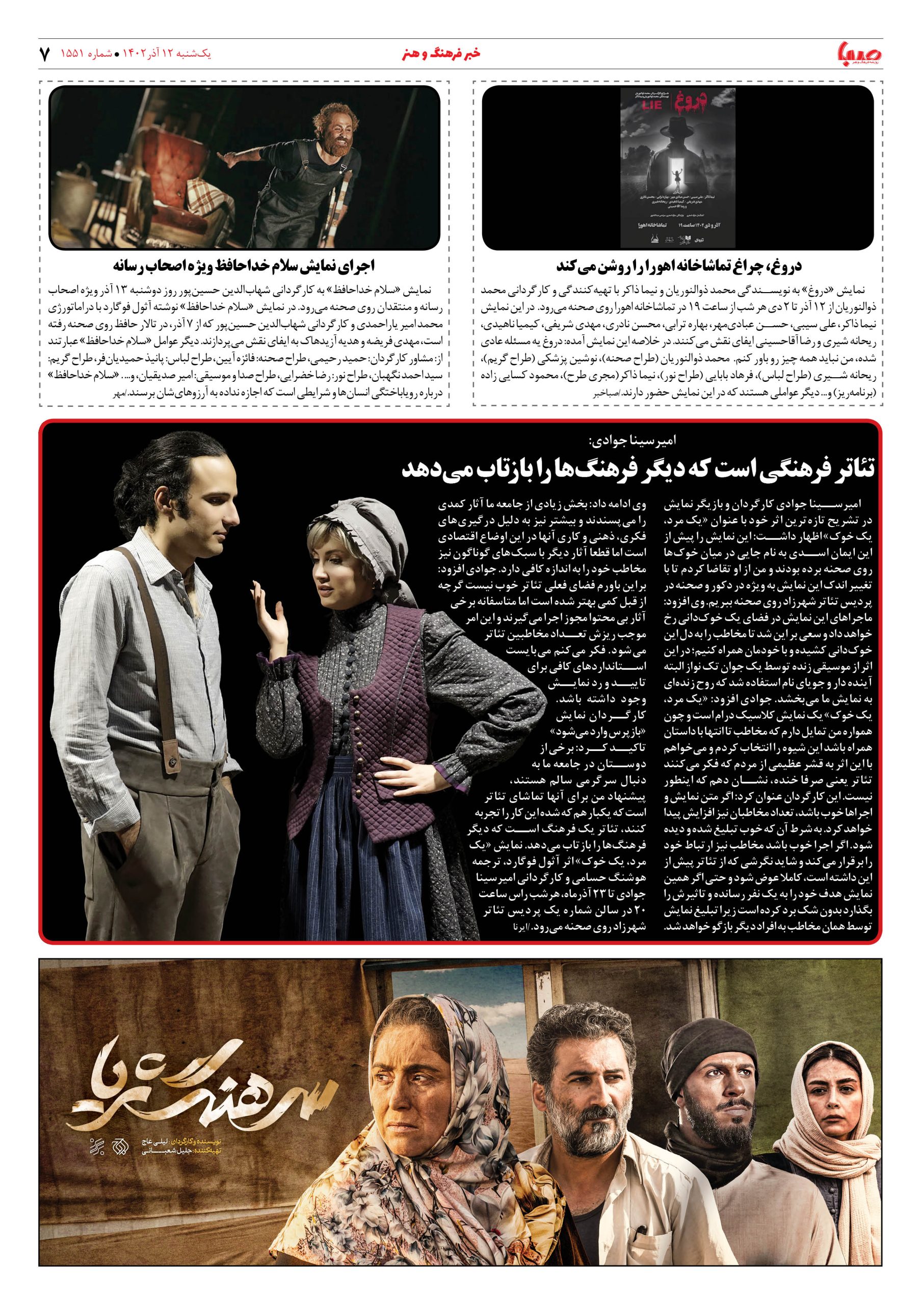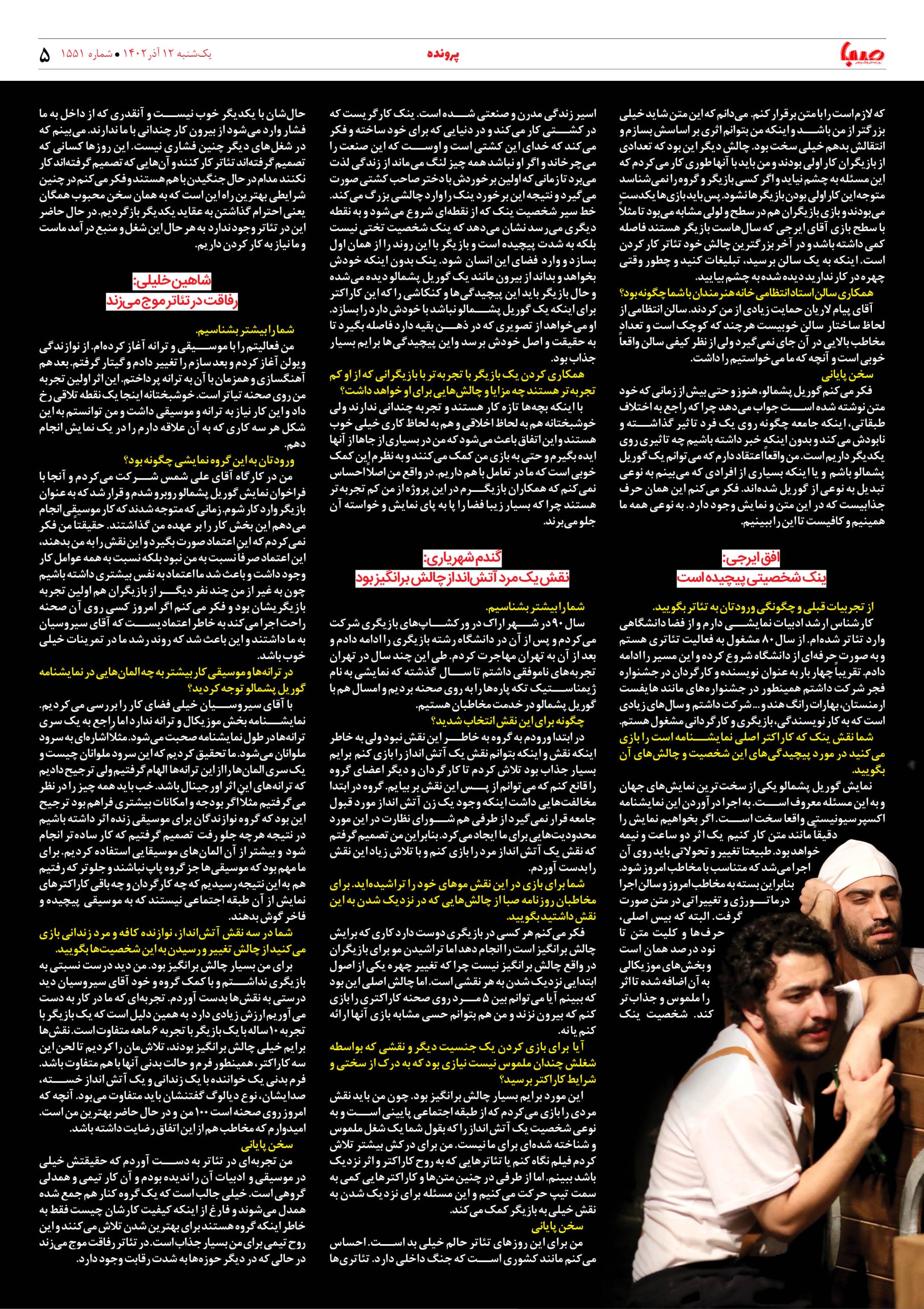 شماره۱۵۵۱| روزنامه صبا یکشنبه ۱۲آذر