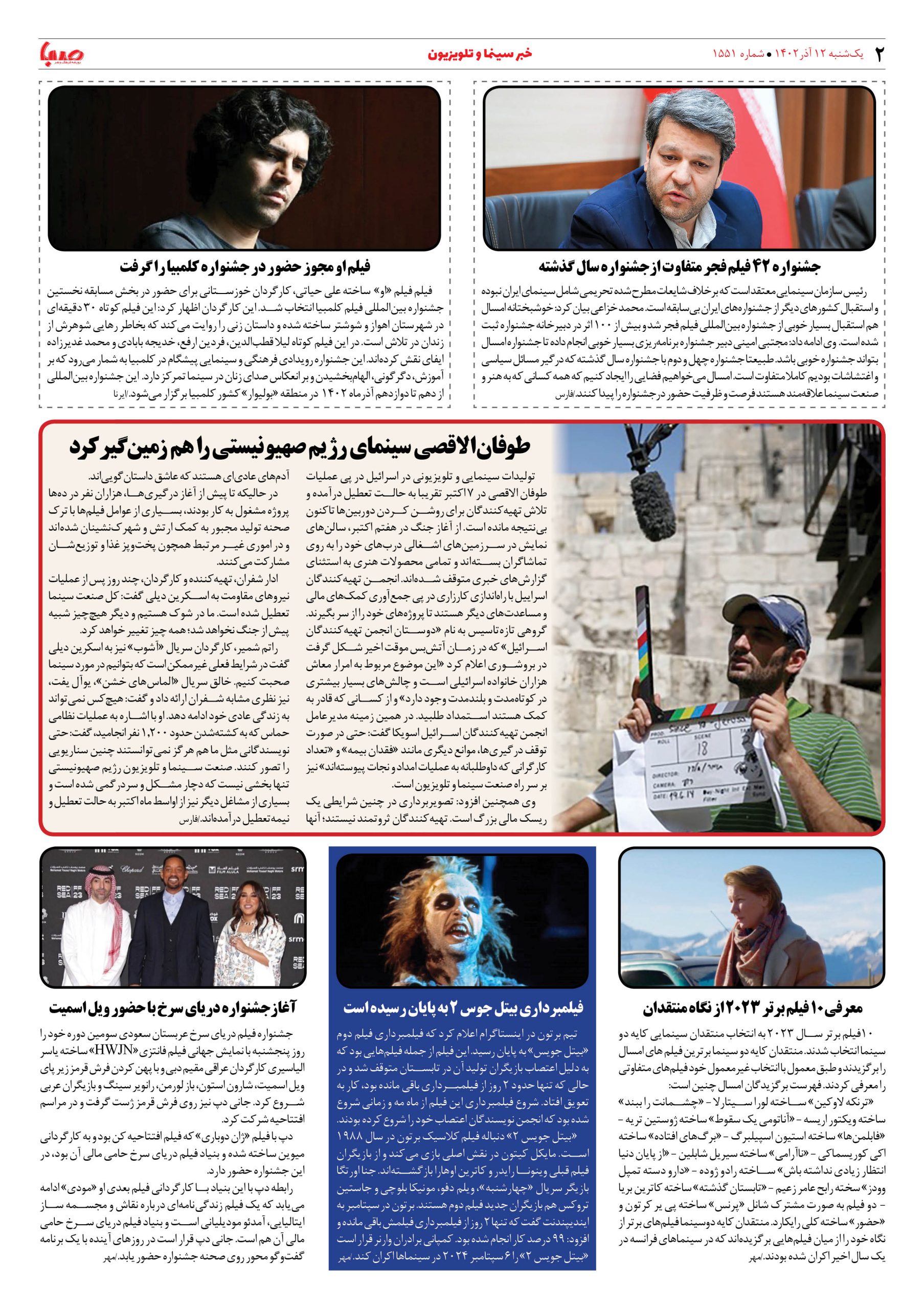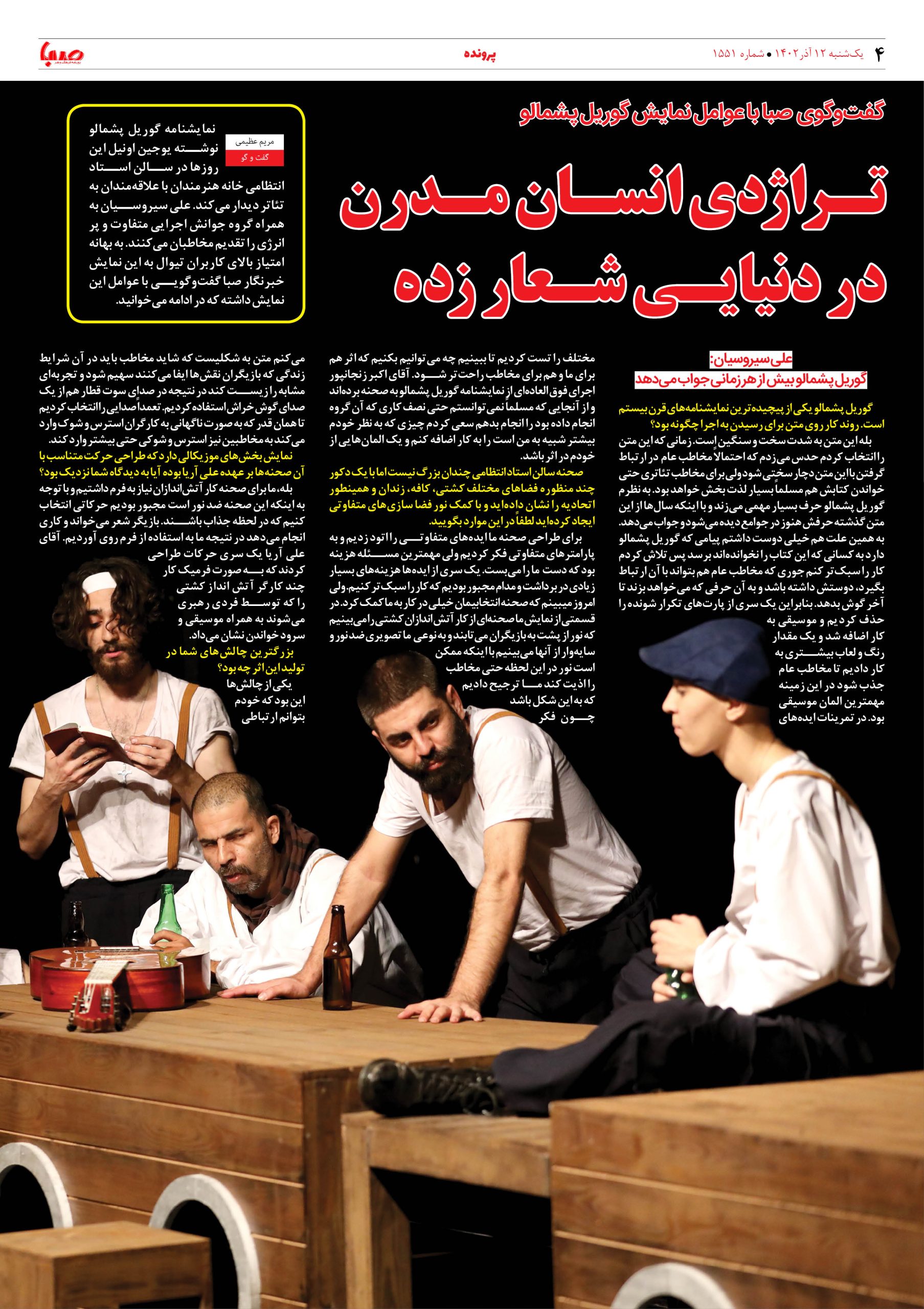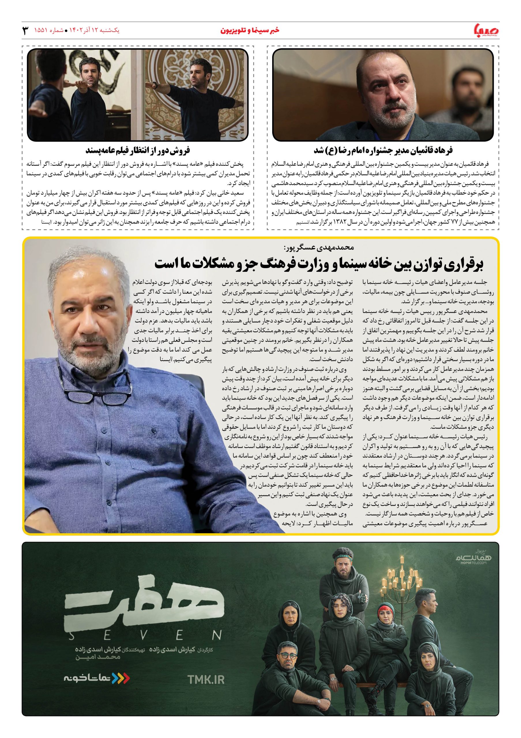 شماره۱۵۵۱| روزنامه صبا یکشنبه ۱۲آذر