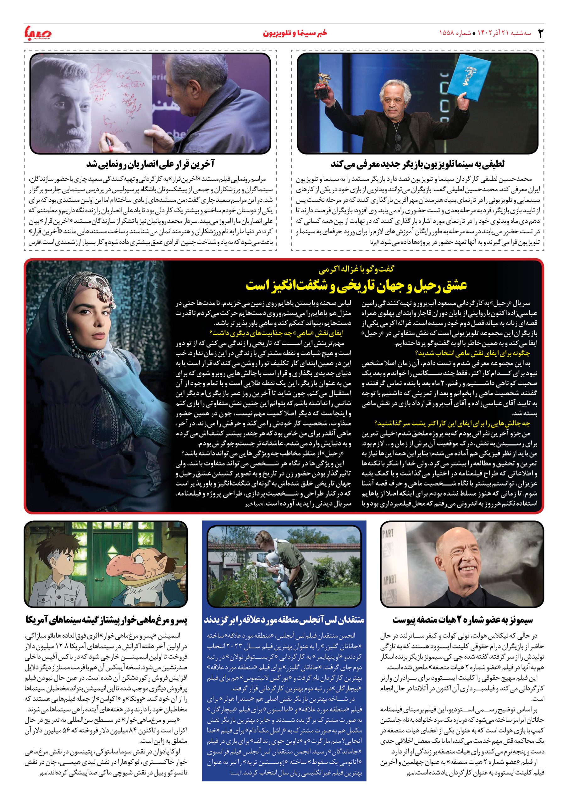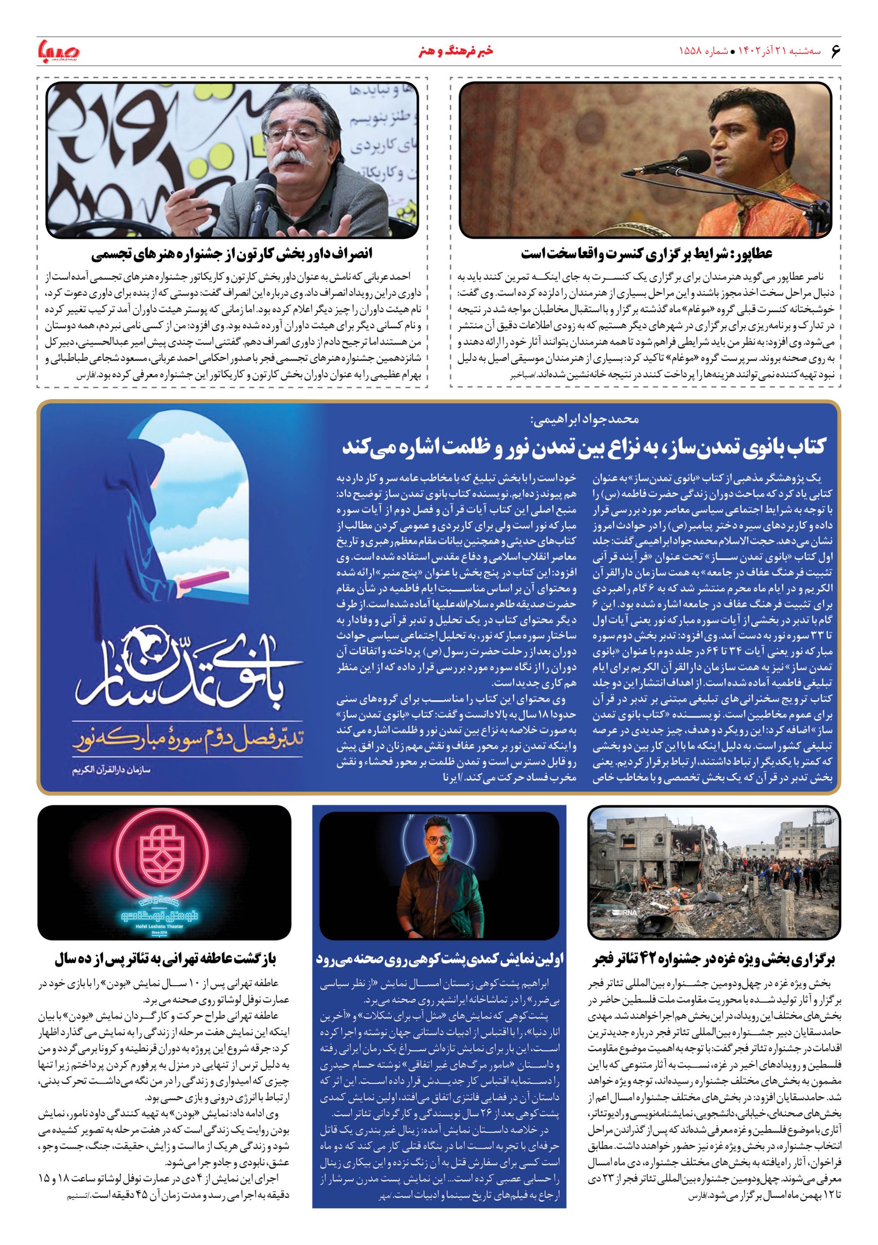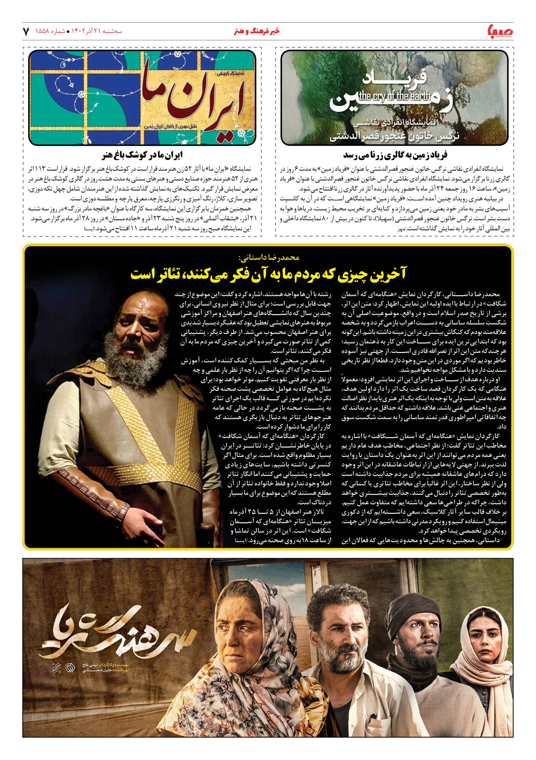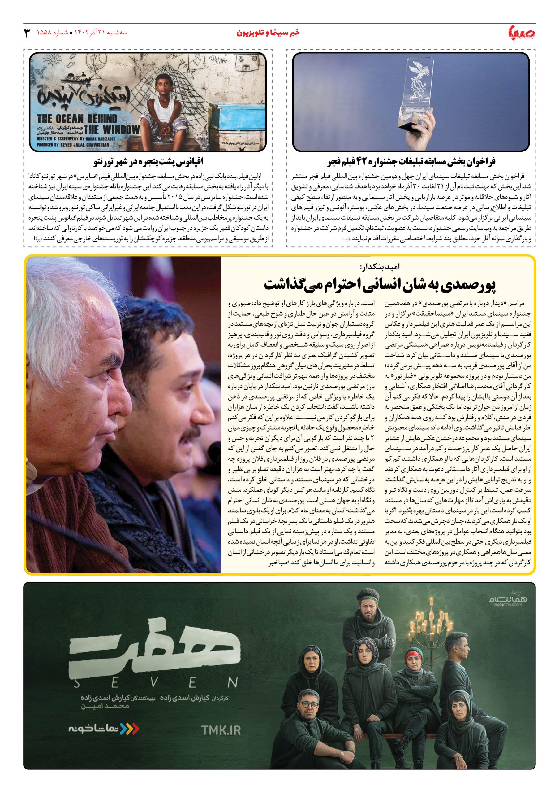 شماره۱۵۵۸| روزنامه صباسه شنبه ۲۱آذر