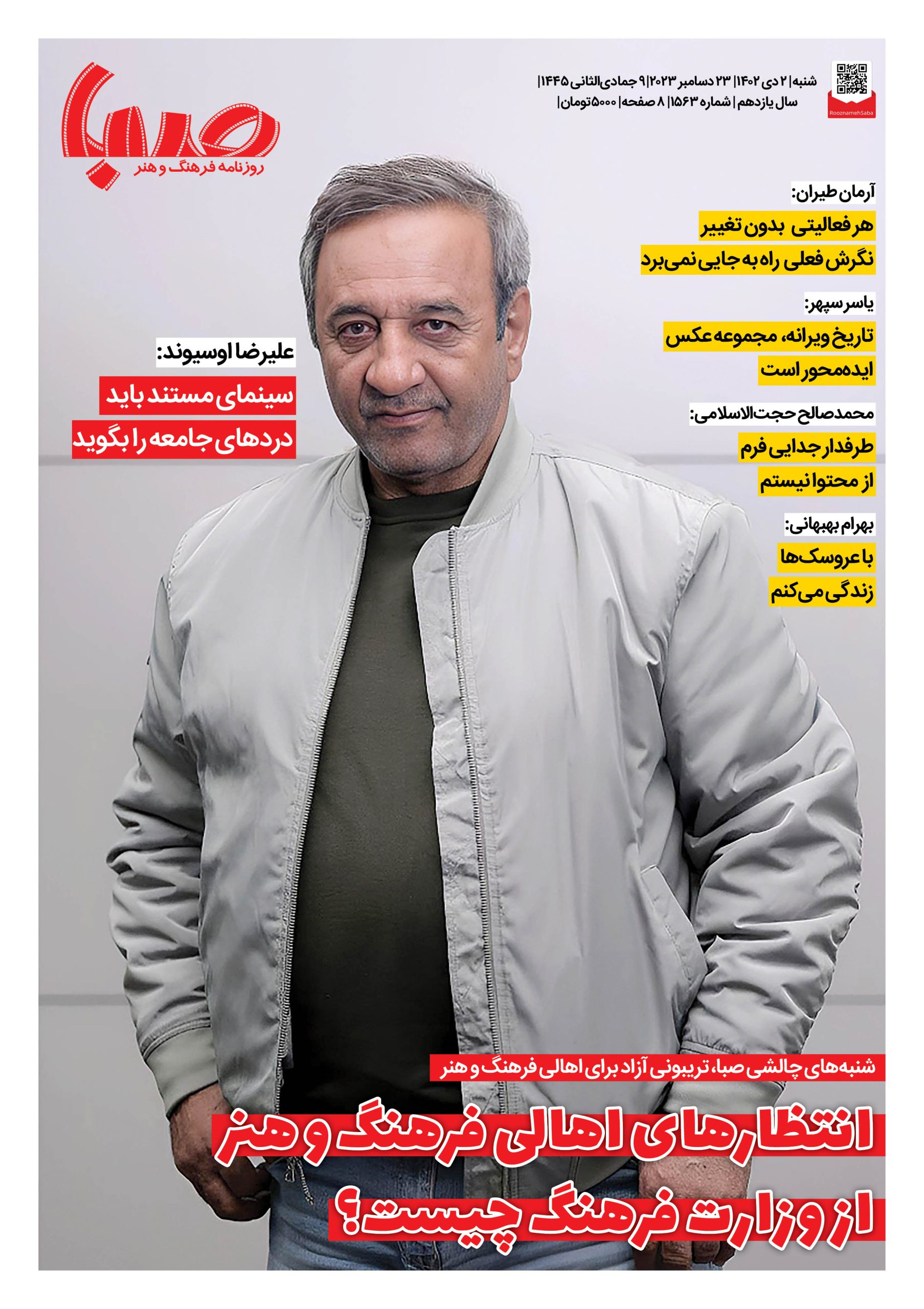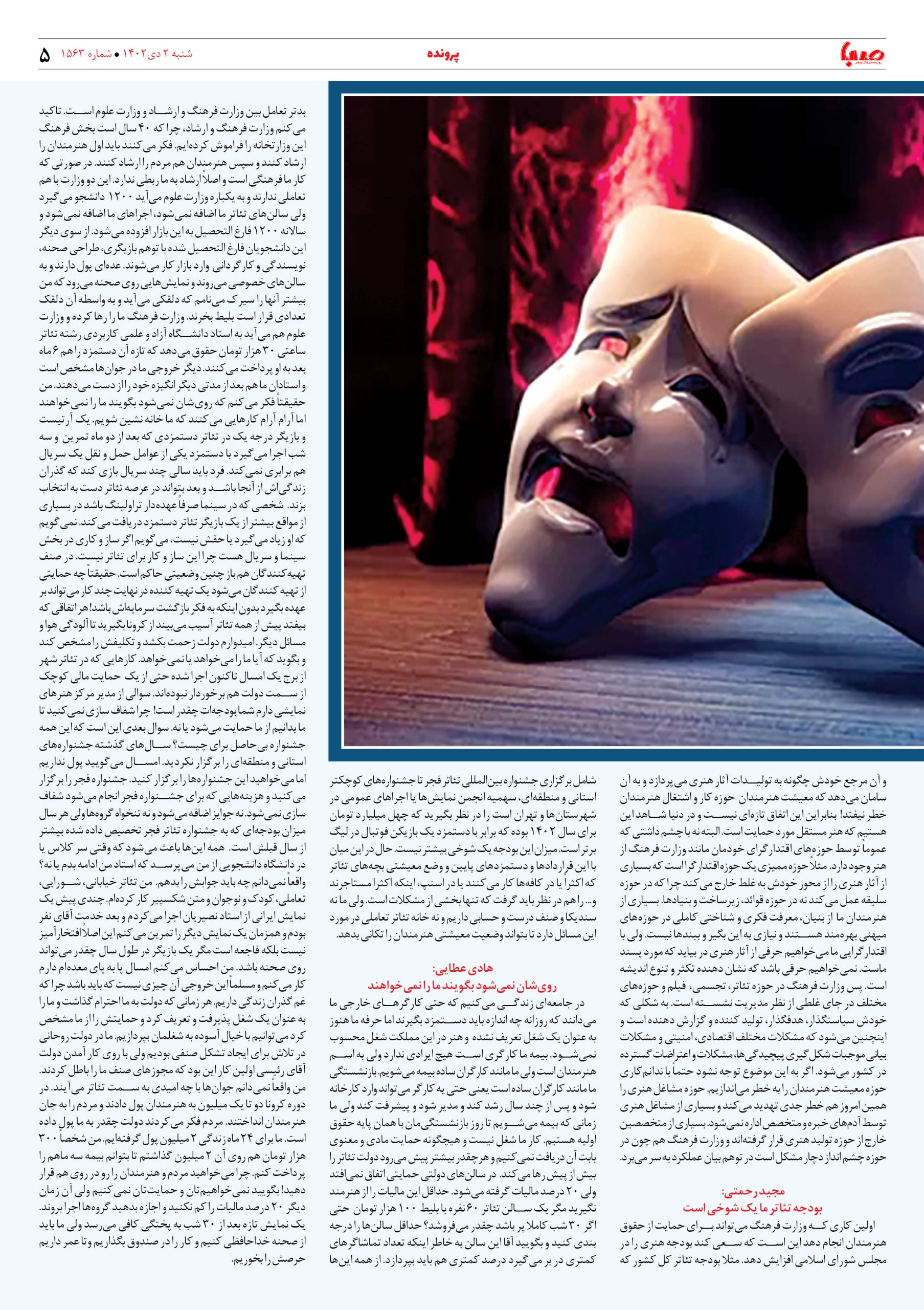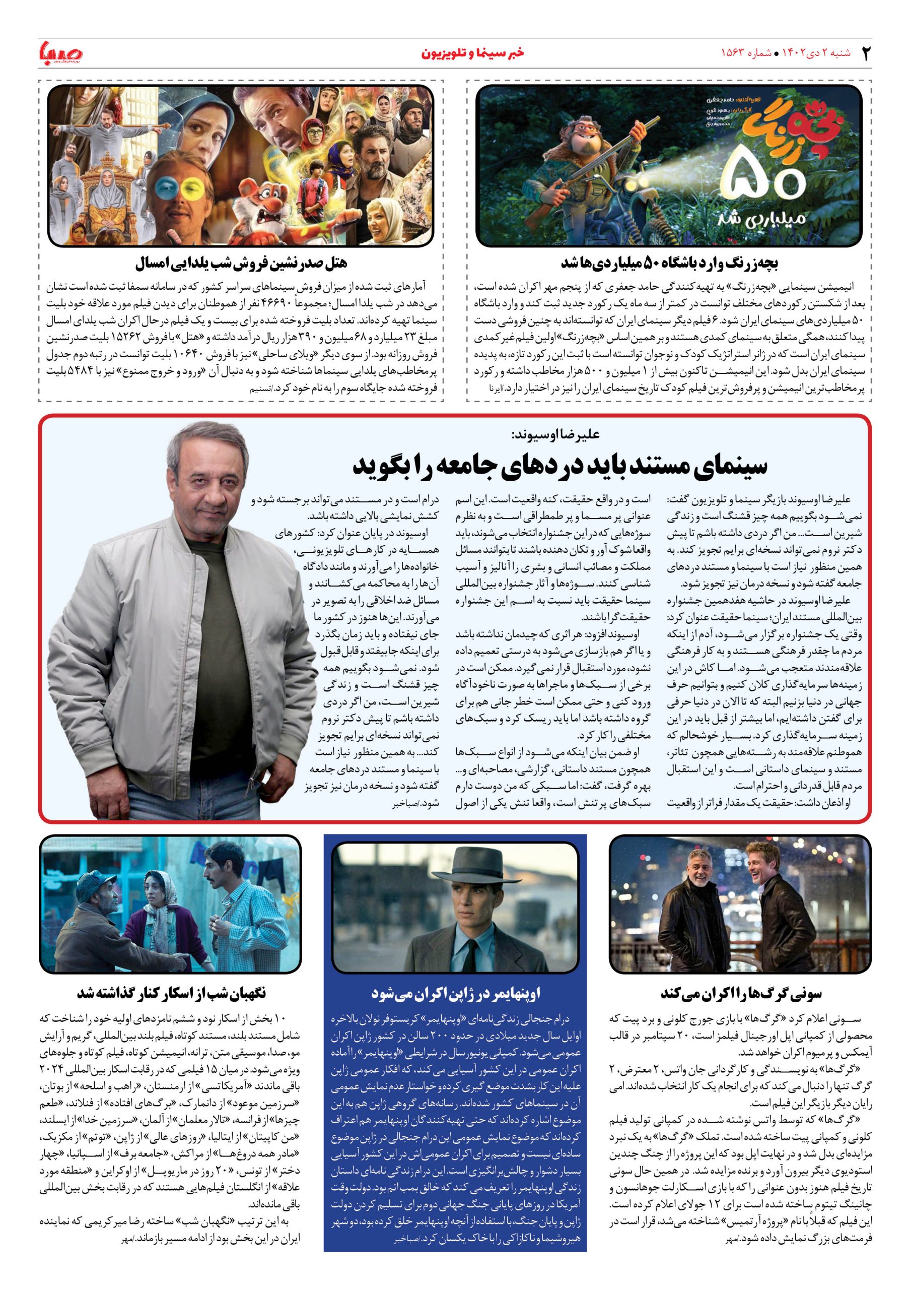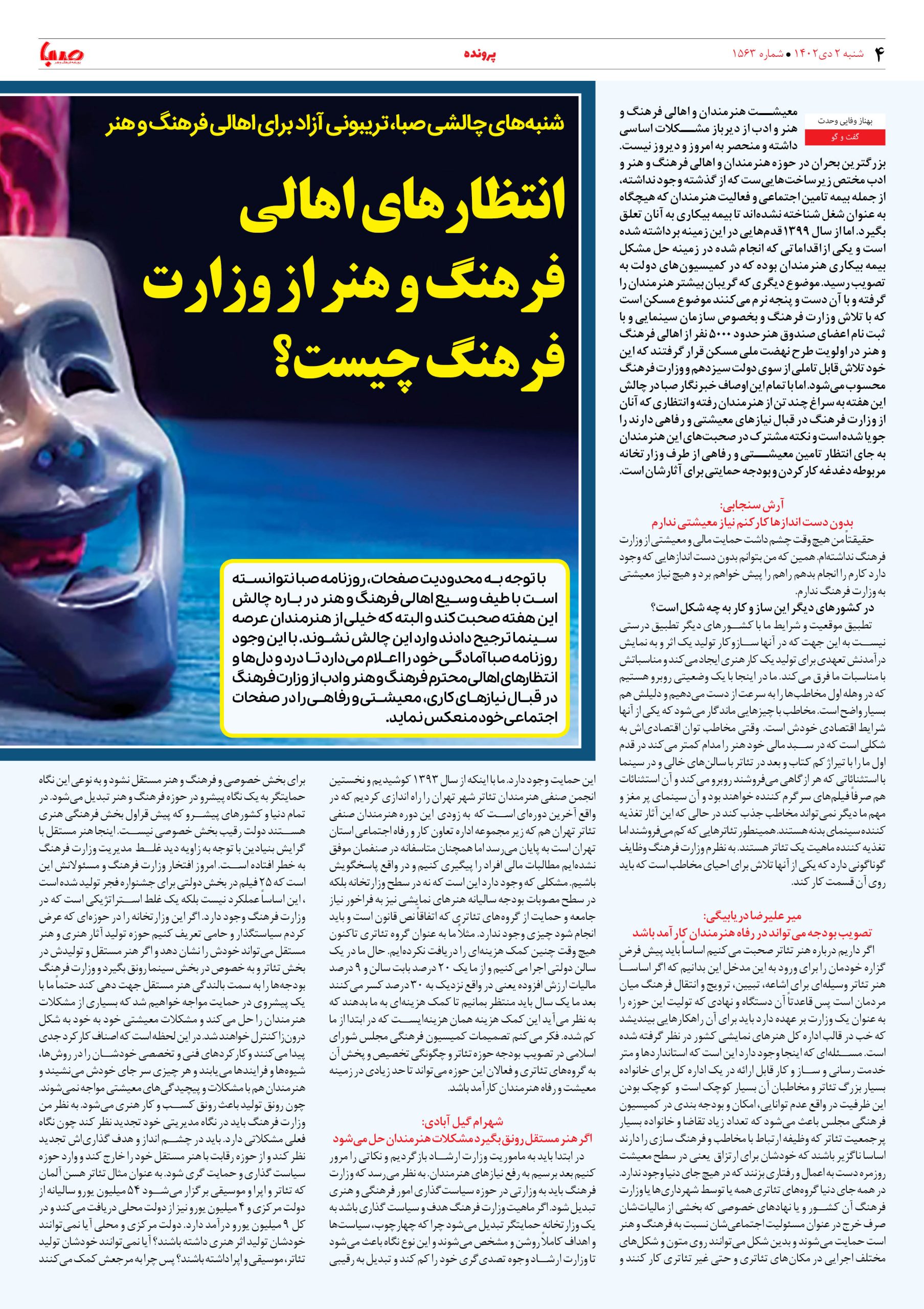 شماره۱۵۶۳| روزنامه صبا شنبه ۲ دی