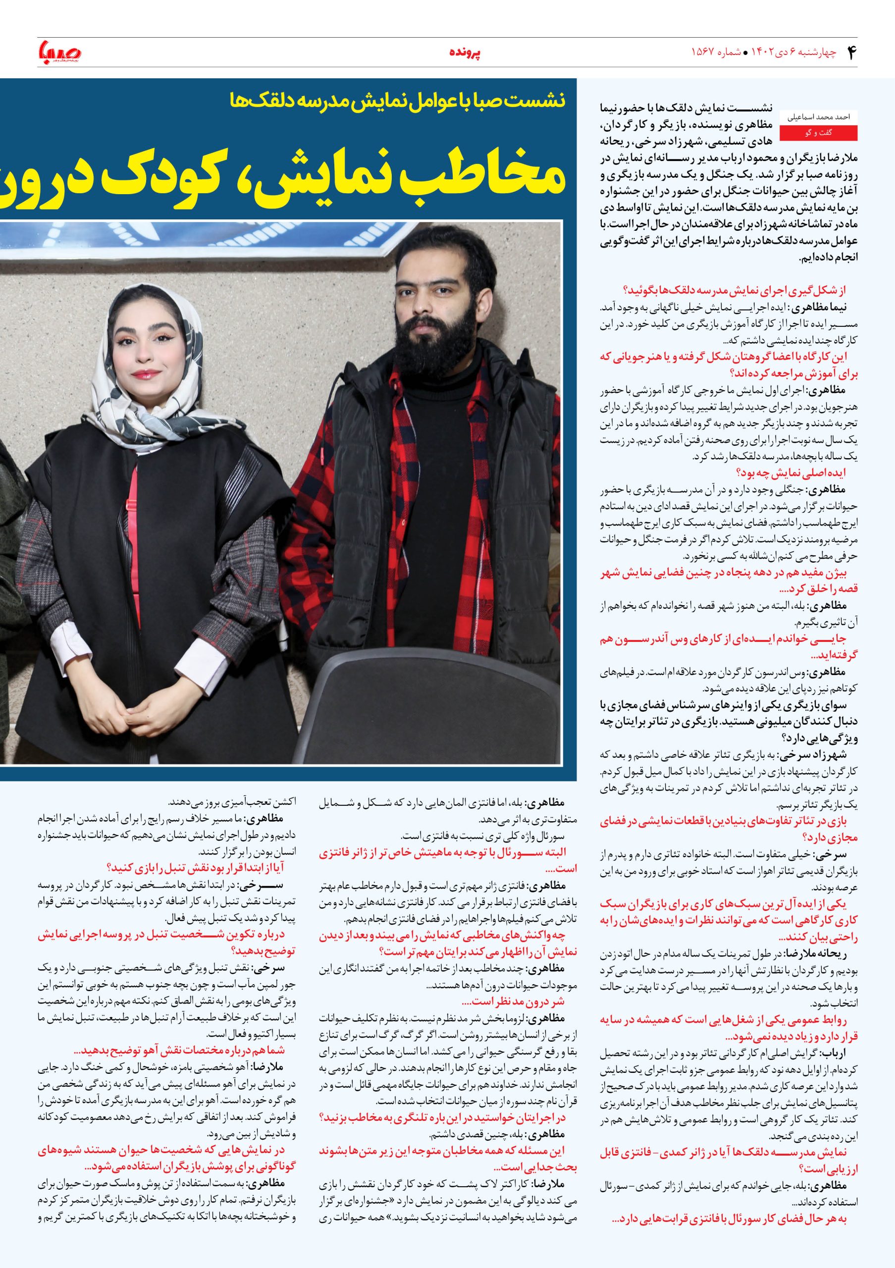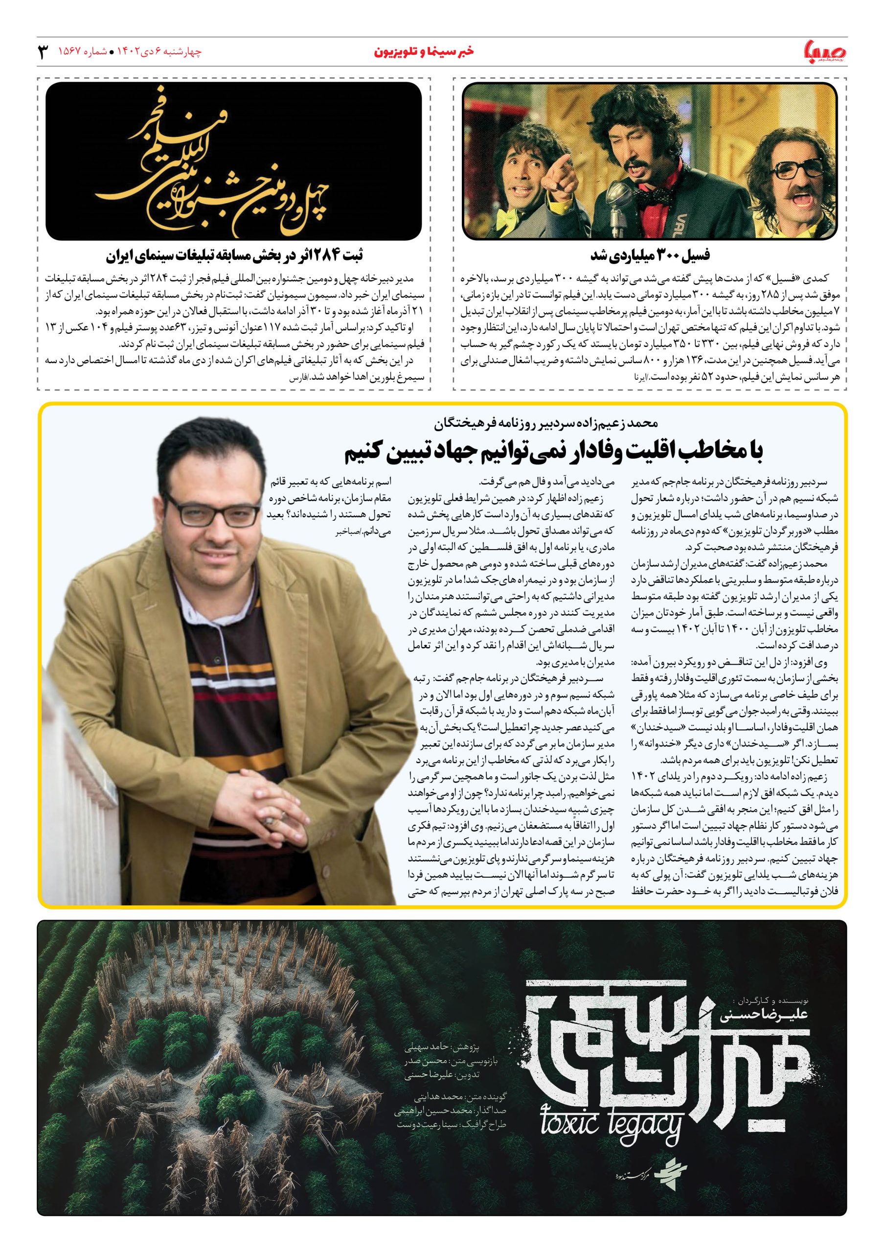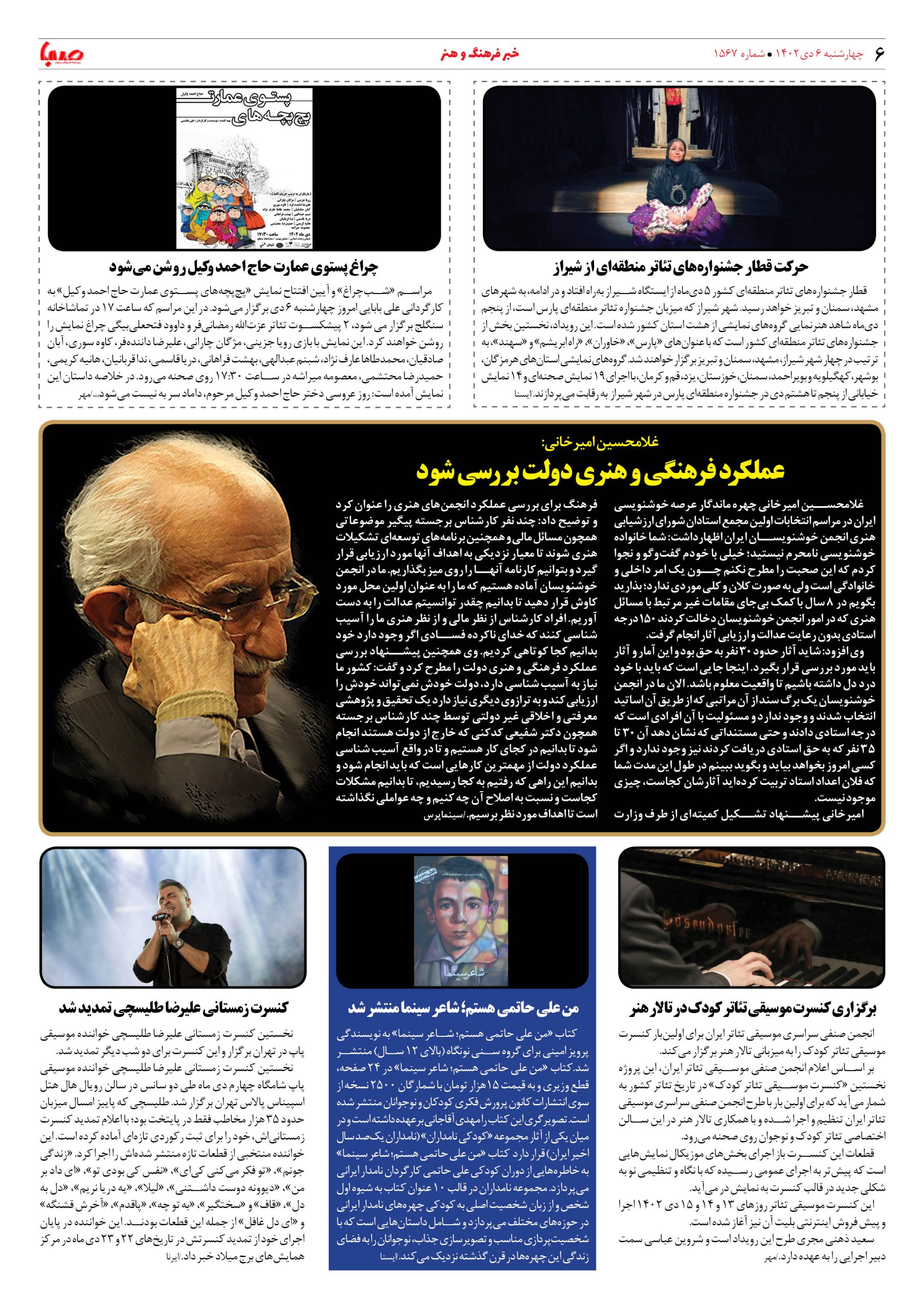 شماره۱۵۶۷| روزنامه صبا چهارشبه ۶ دی