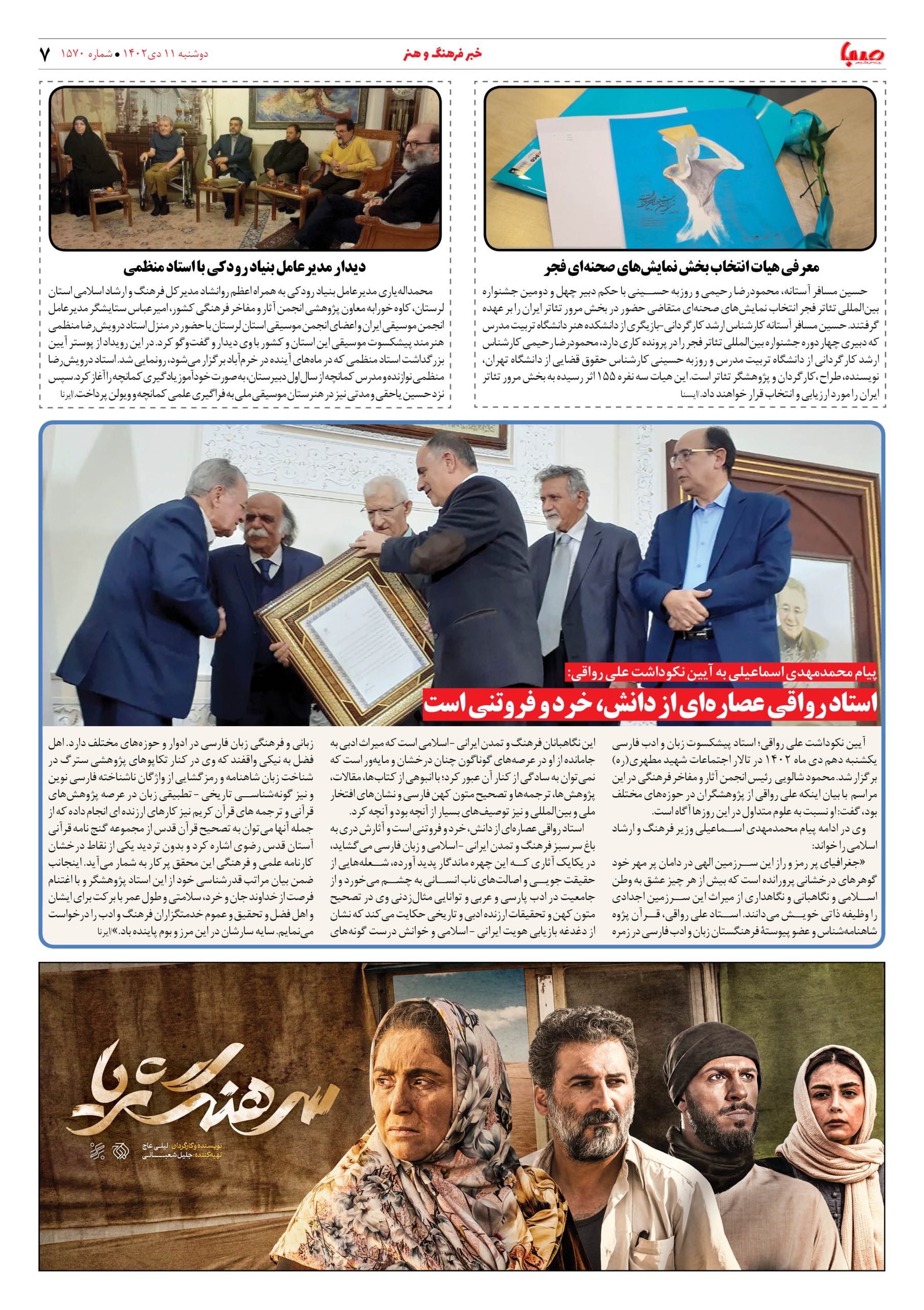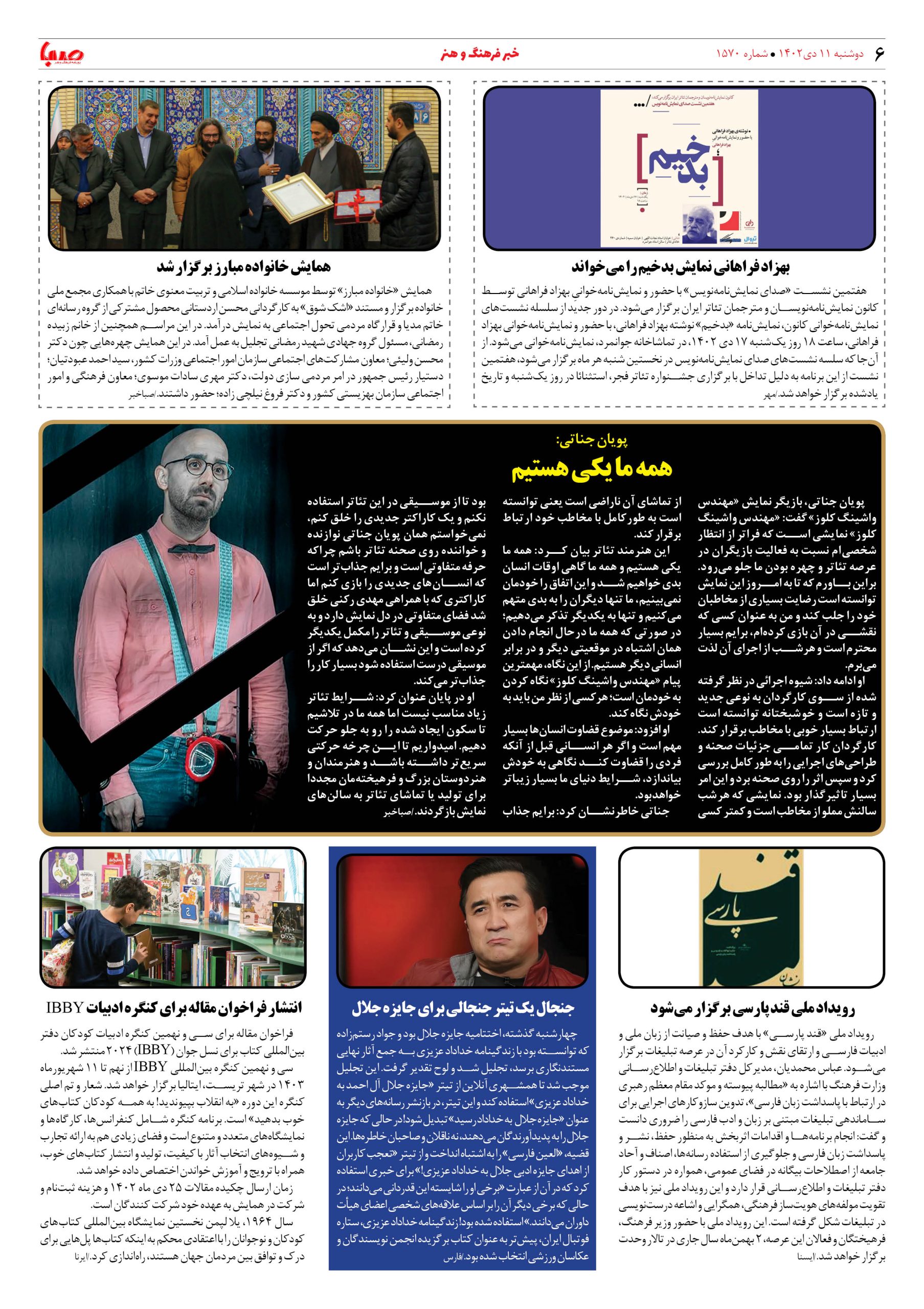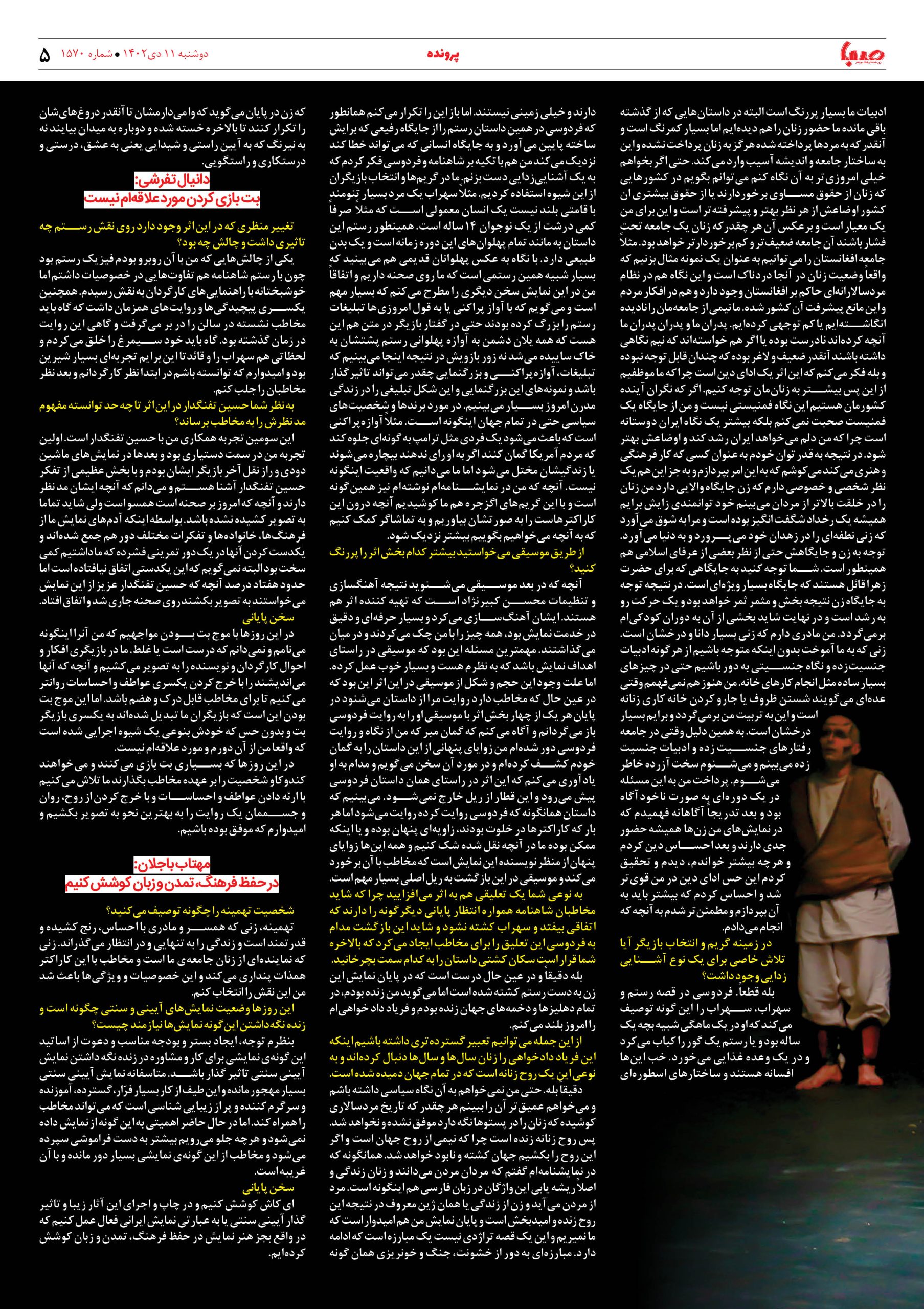 شماره۱۵۷۰| روزنامه صبا دوشبه ۱۱دی