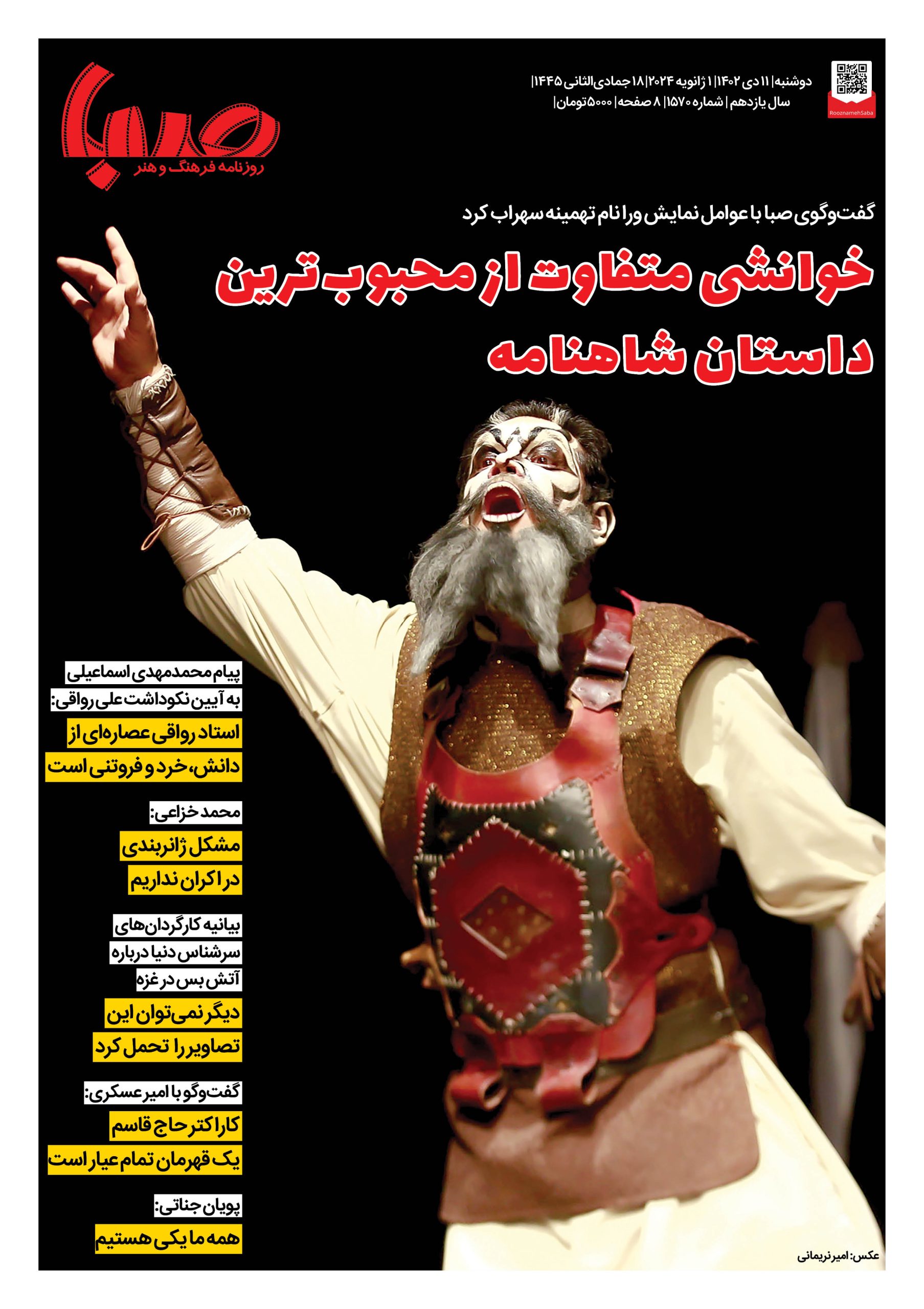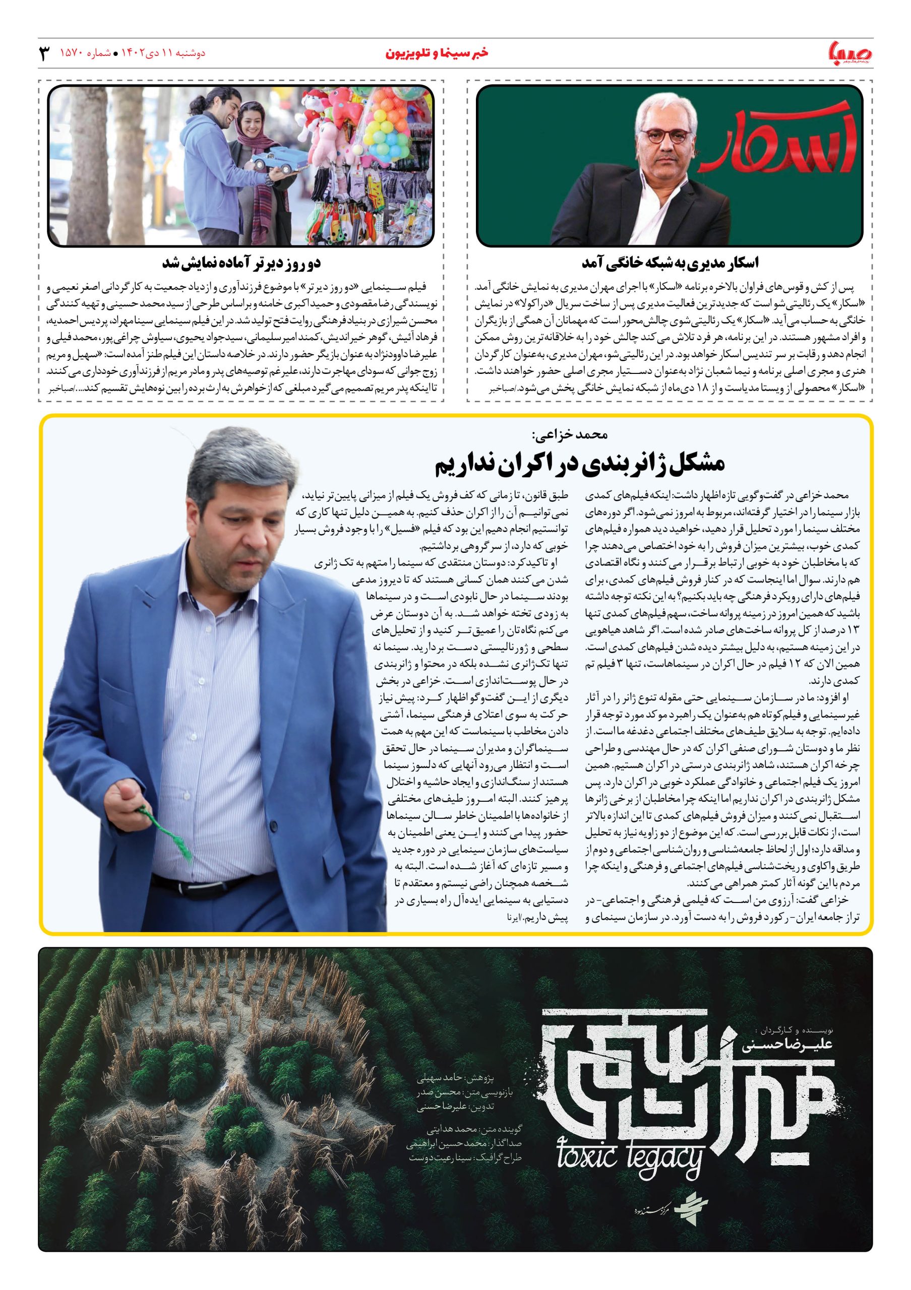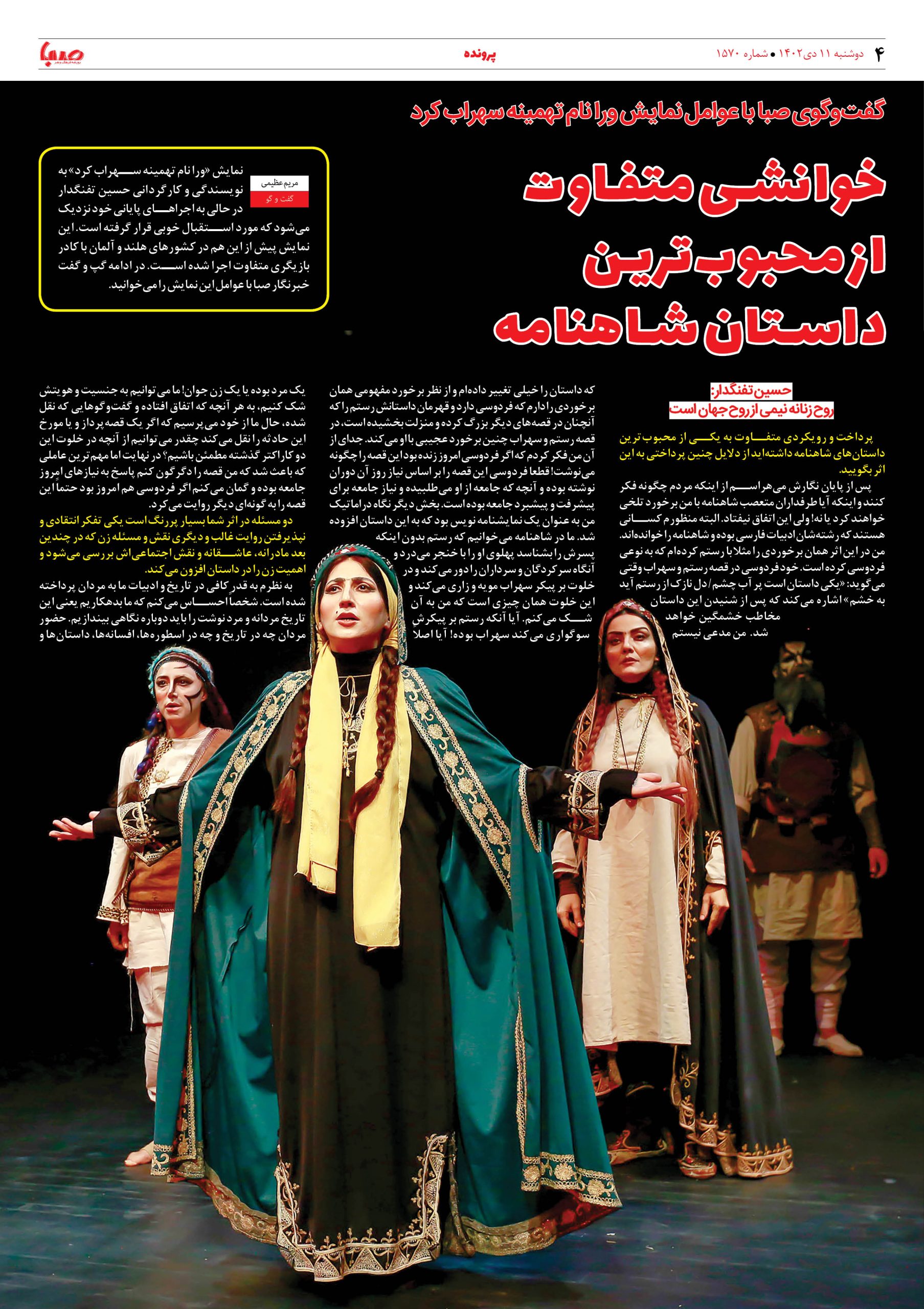 شماره۱۵۷۰| روزنامه صبا دوشبه ۱۱دی