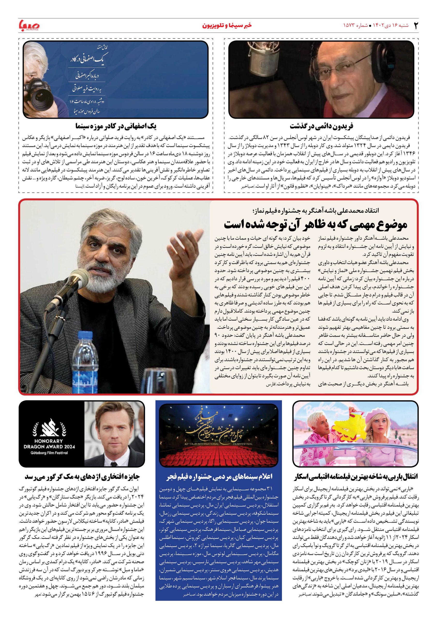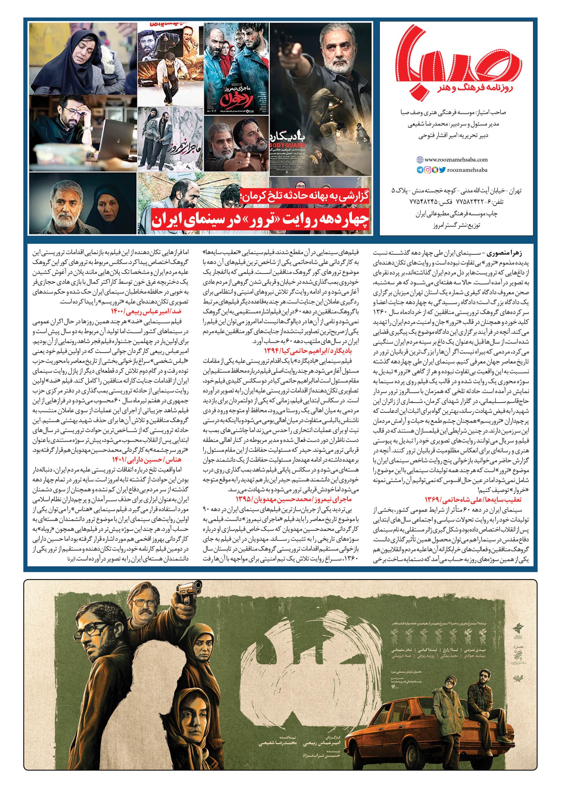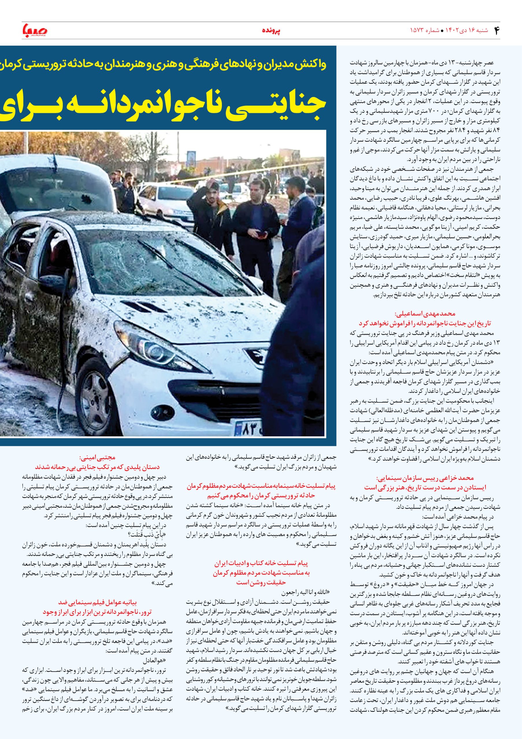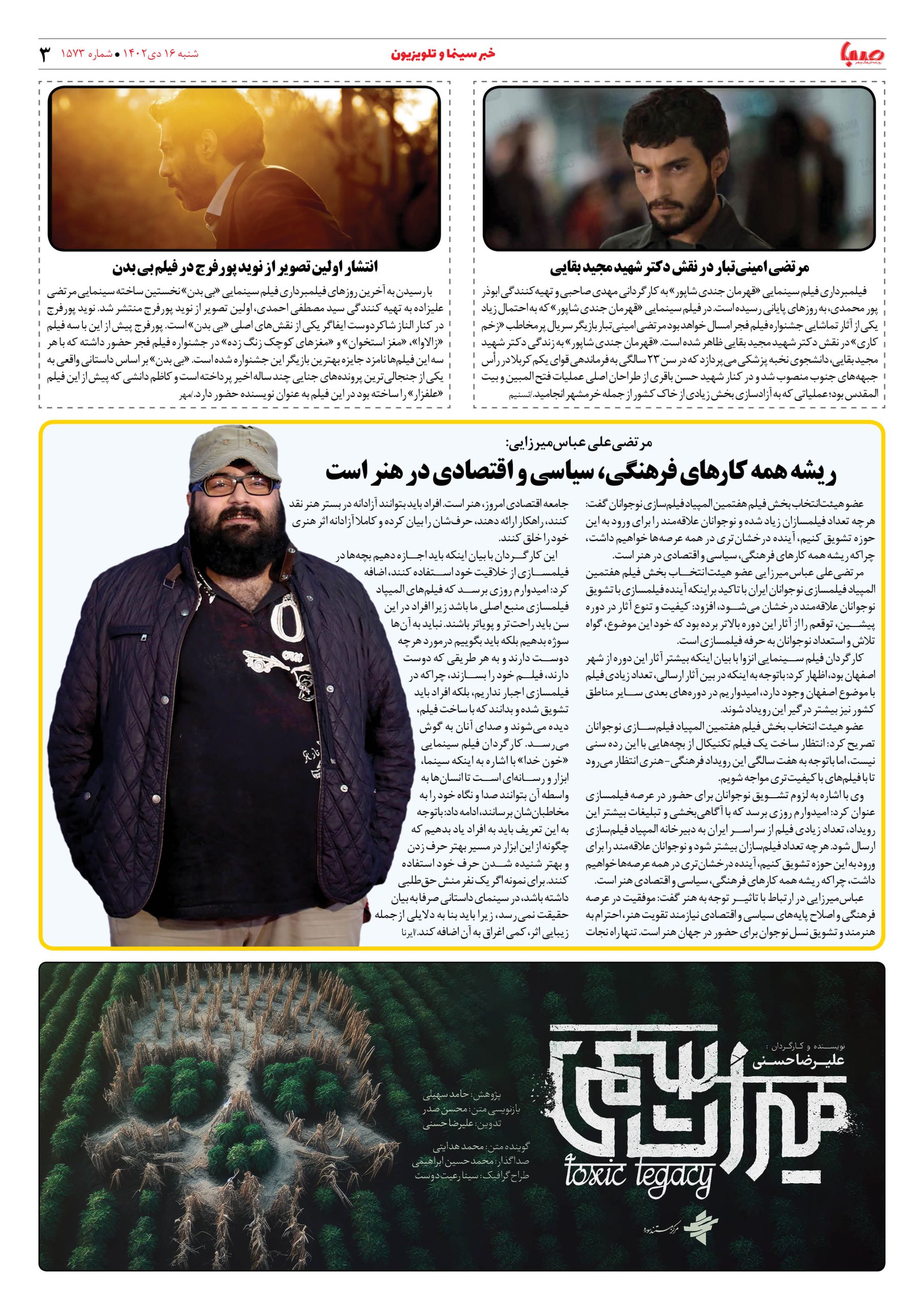 شماره۱۵۷۳| روزنامه صبا شنبه ۱۶دی