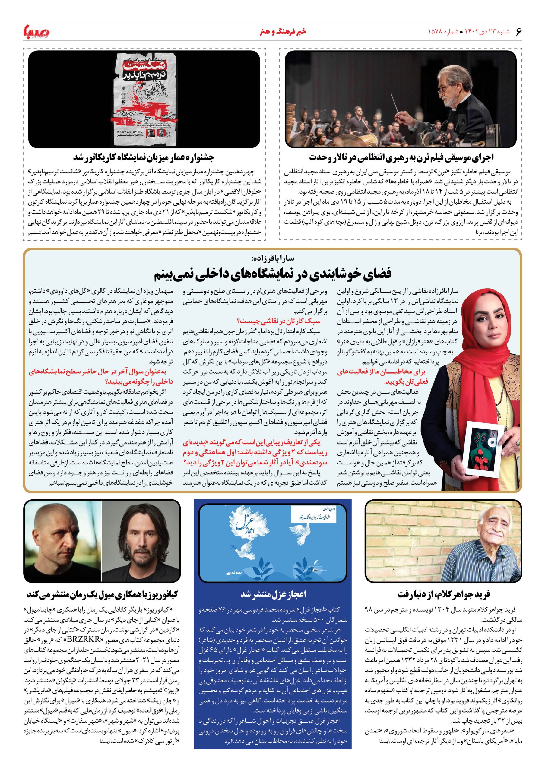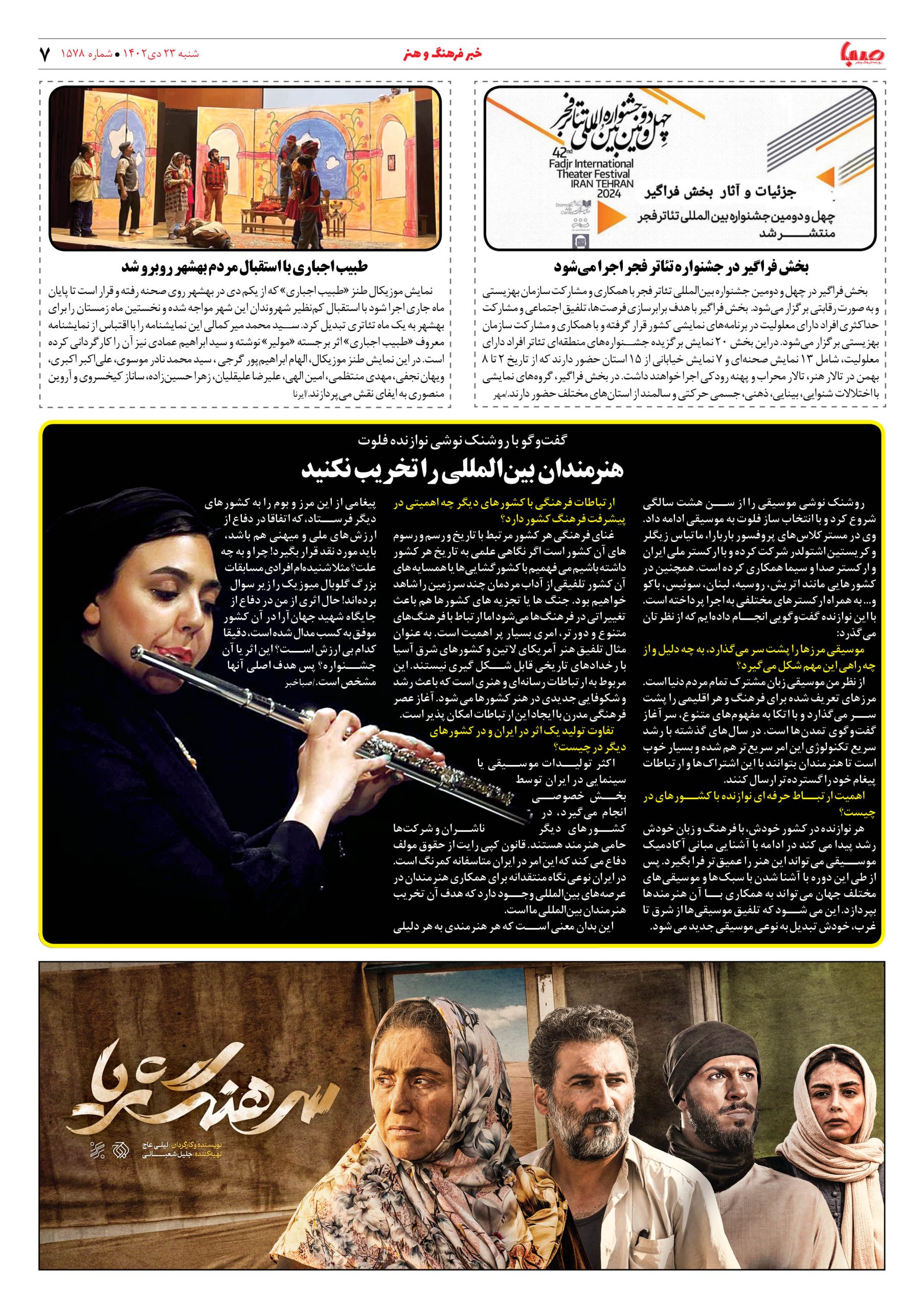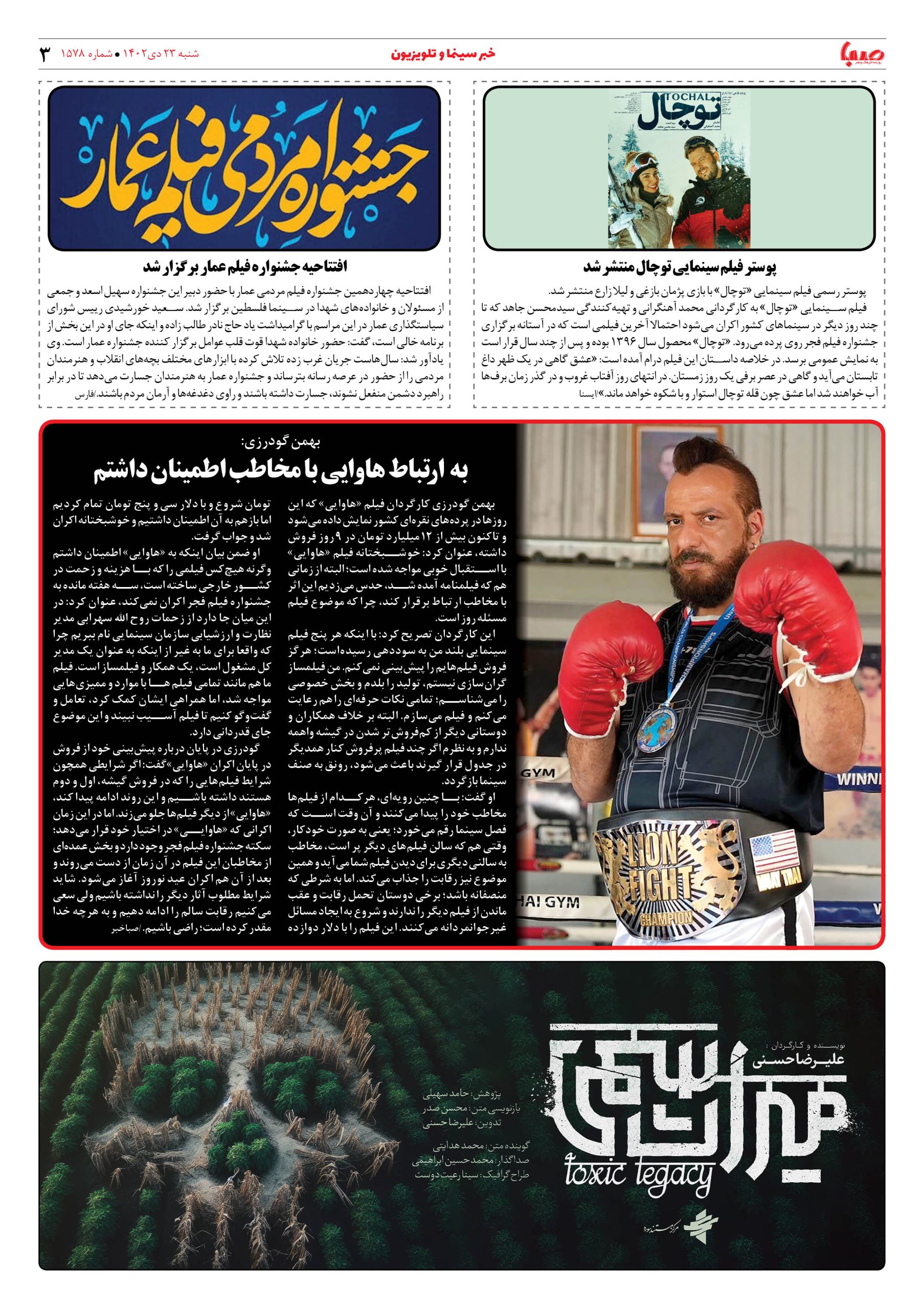شماره۱۵۷۸| روزنامه صبا شنبه ۲۳دی