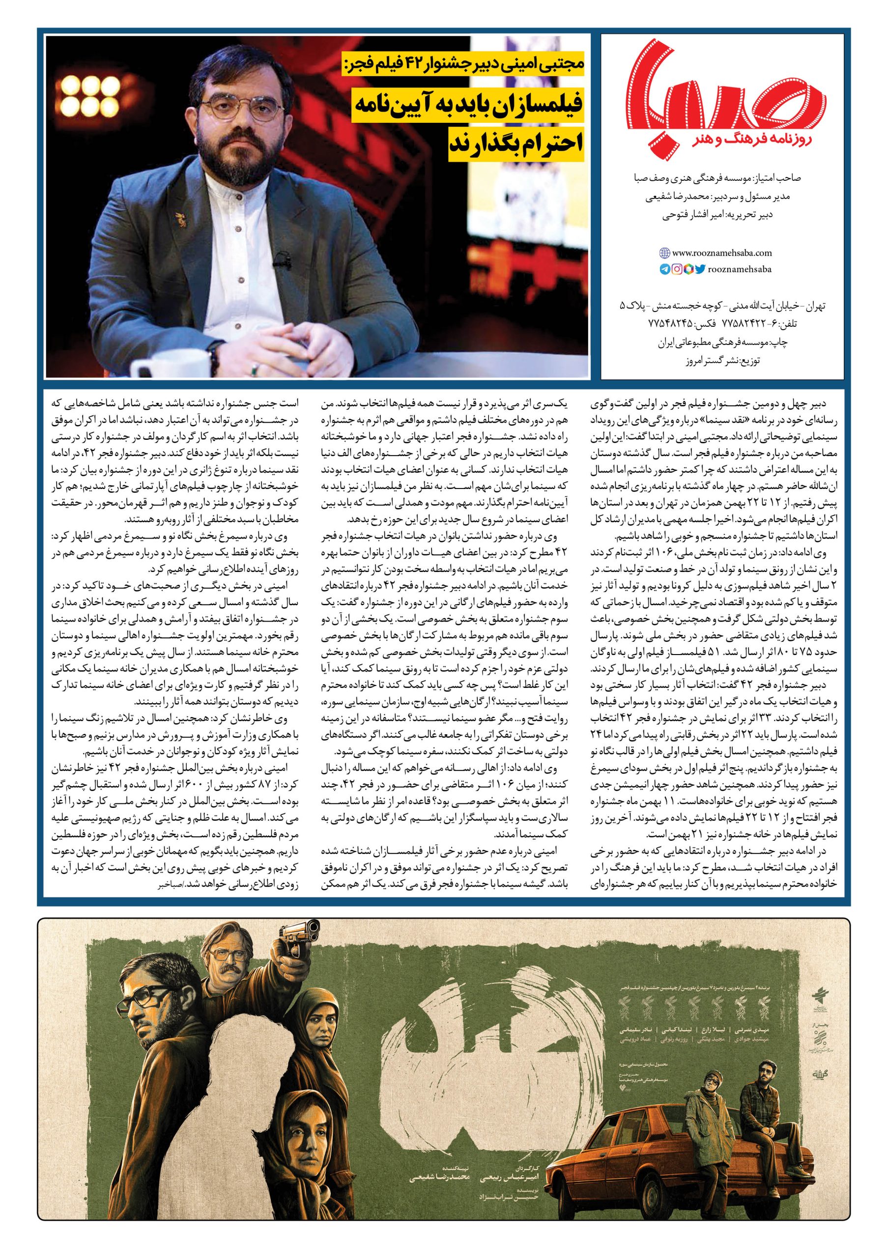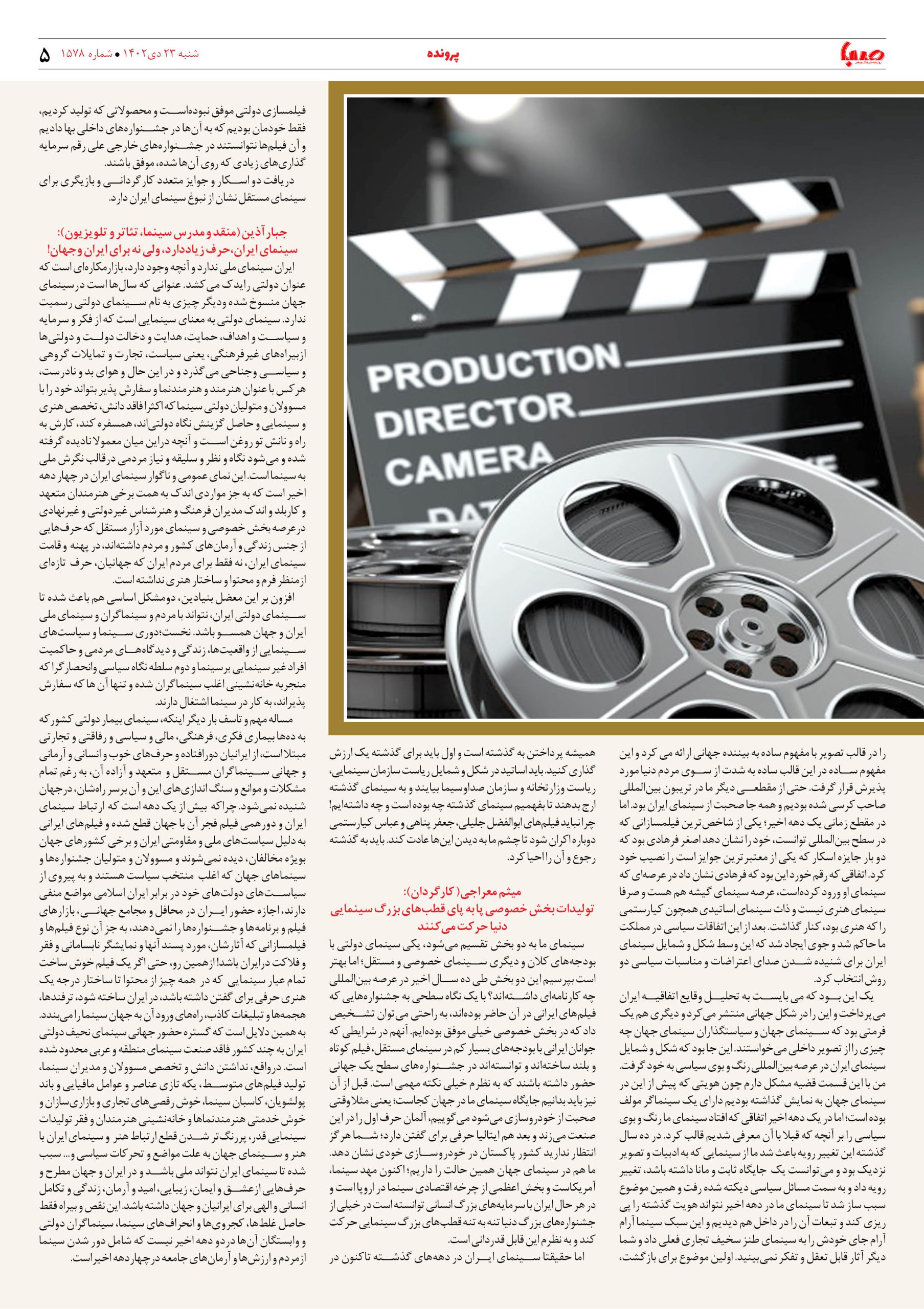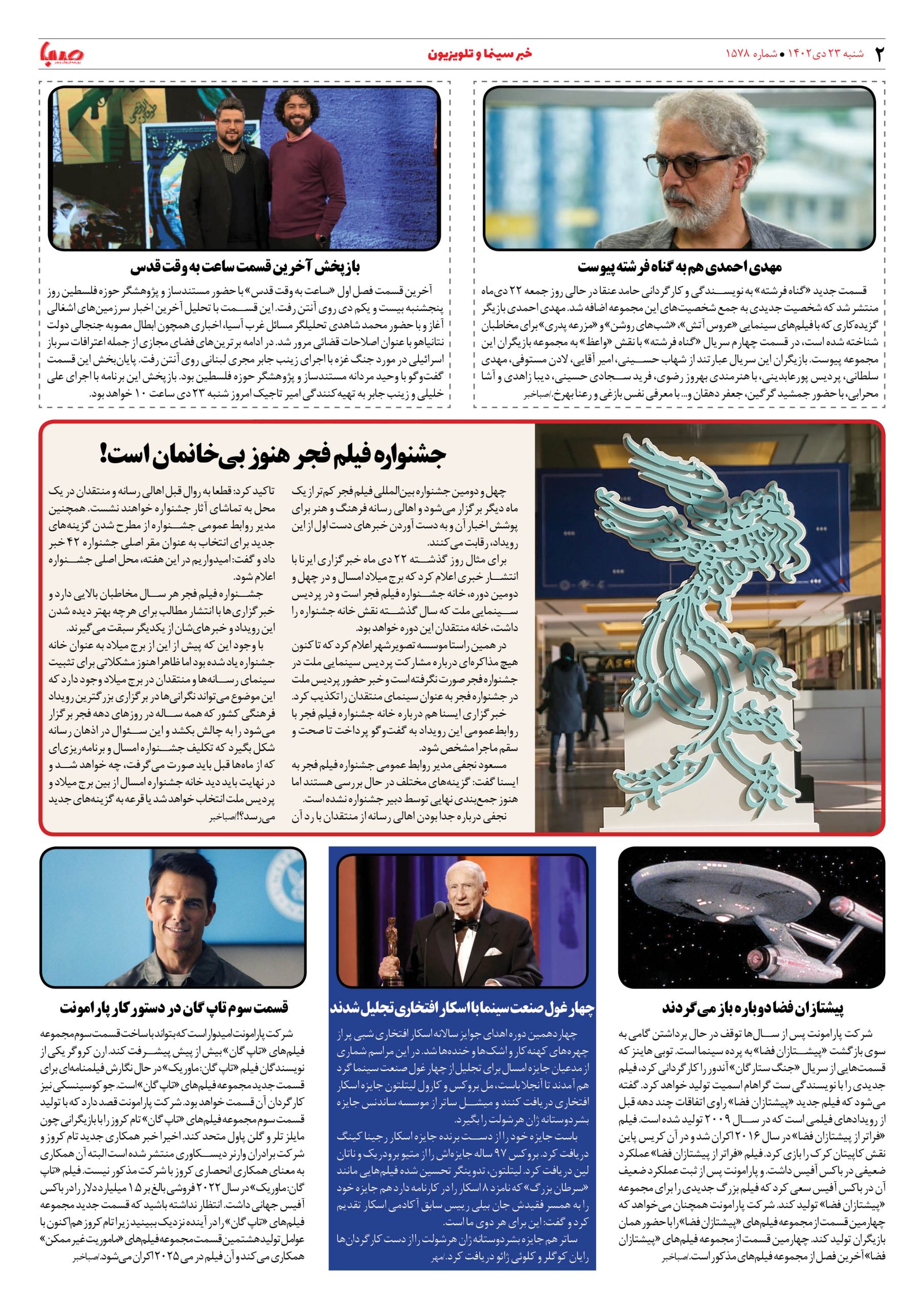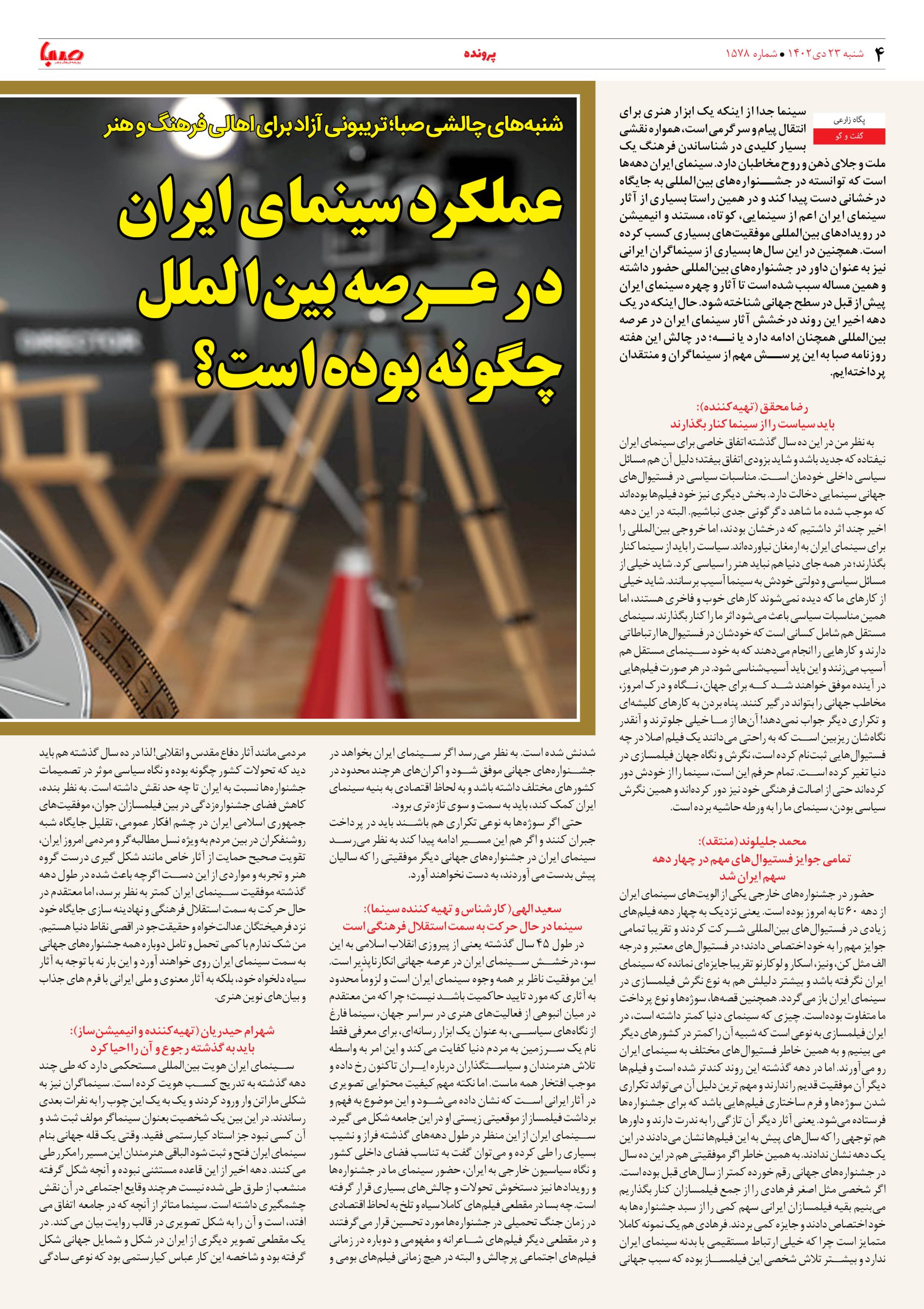 شماره۱۵۷۸| روزنامه صبا شنبه ۲۳دی