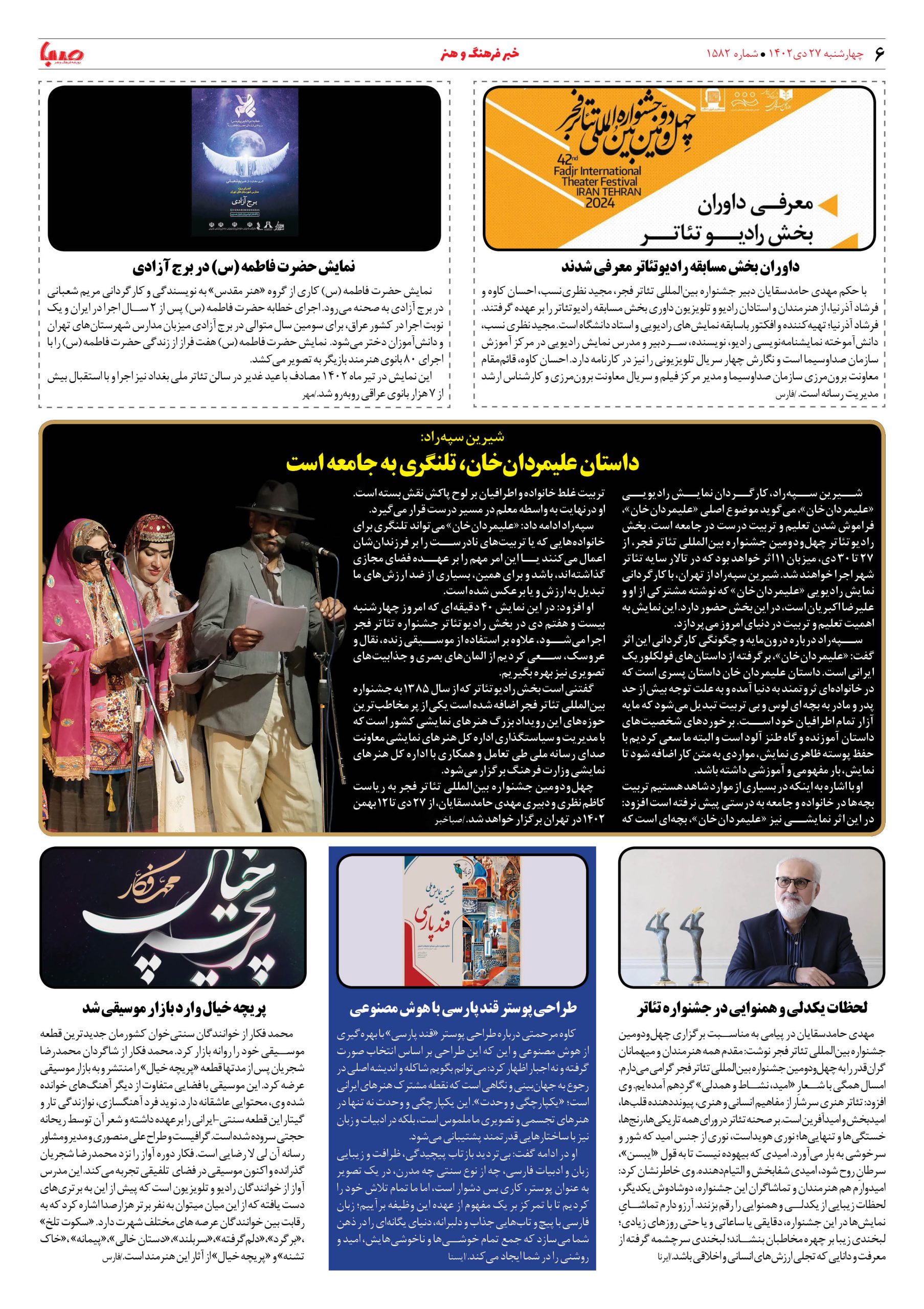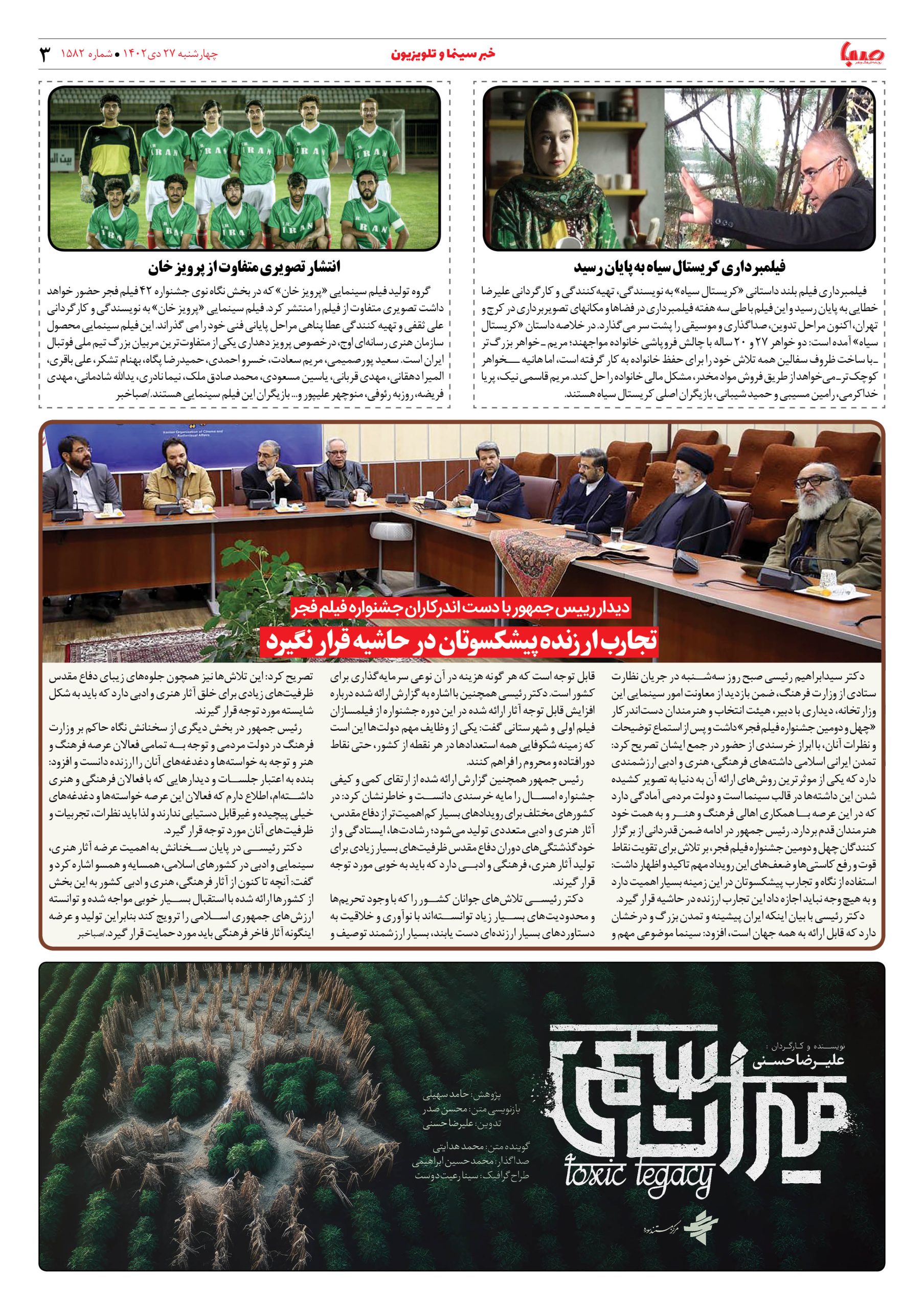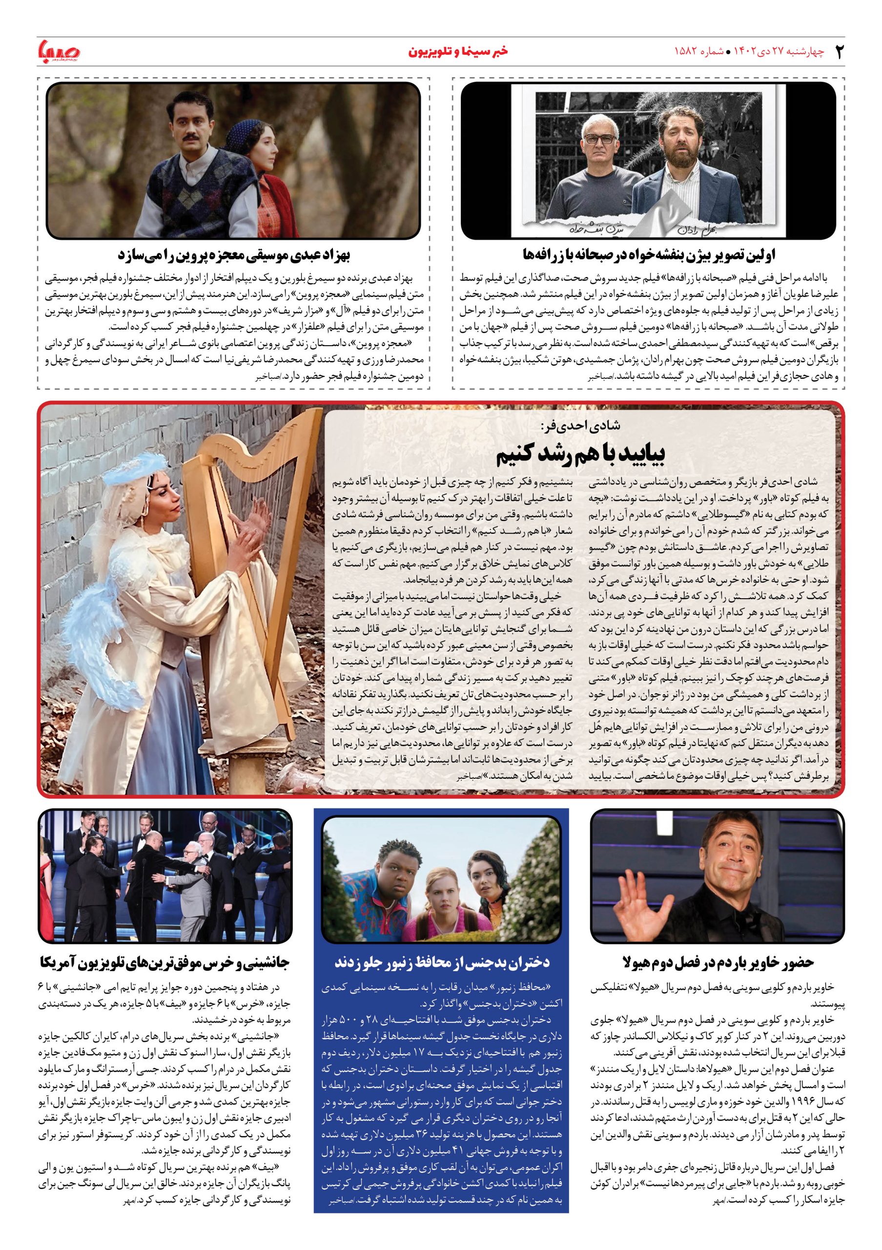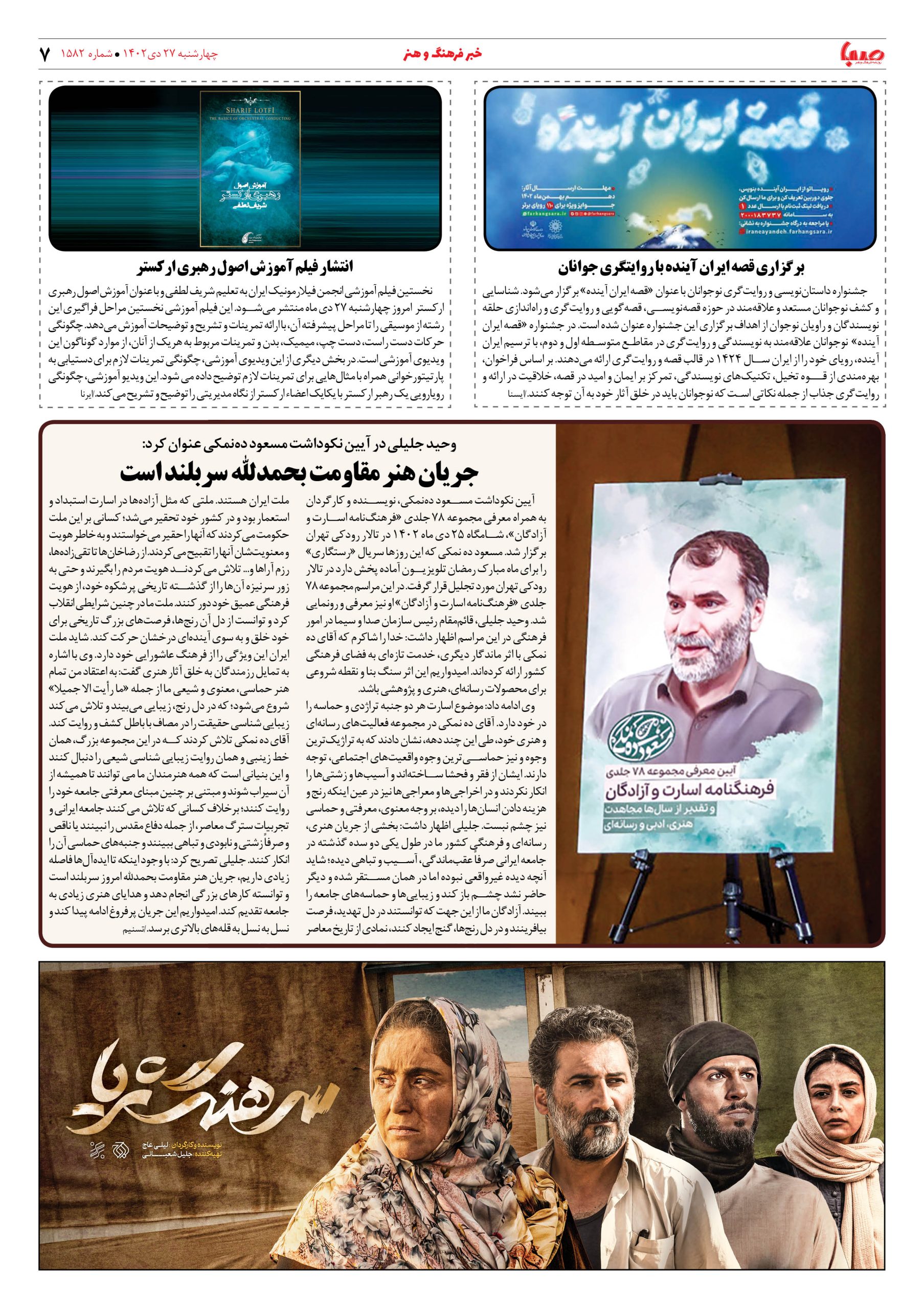 شماره۱۵۸۲| روزنامه صبا چهارشنبه ۲۷دی