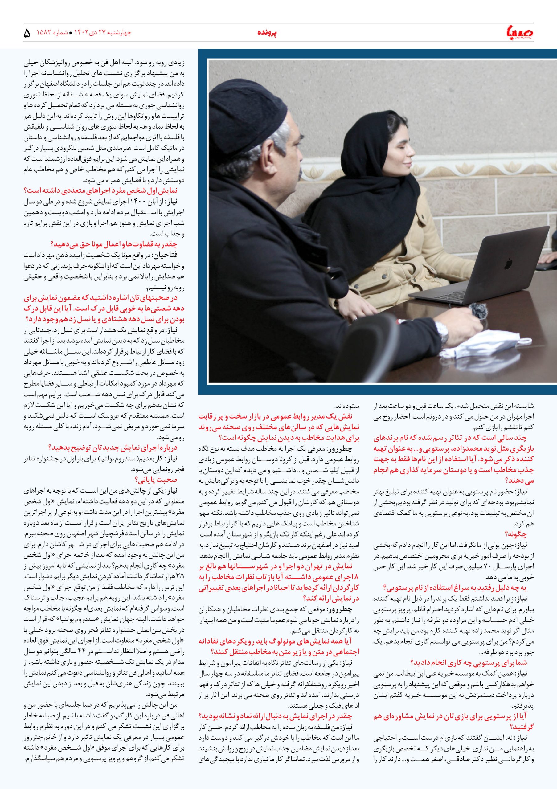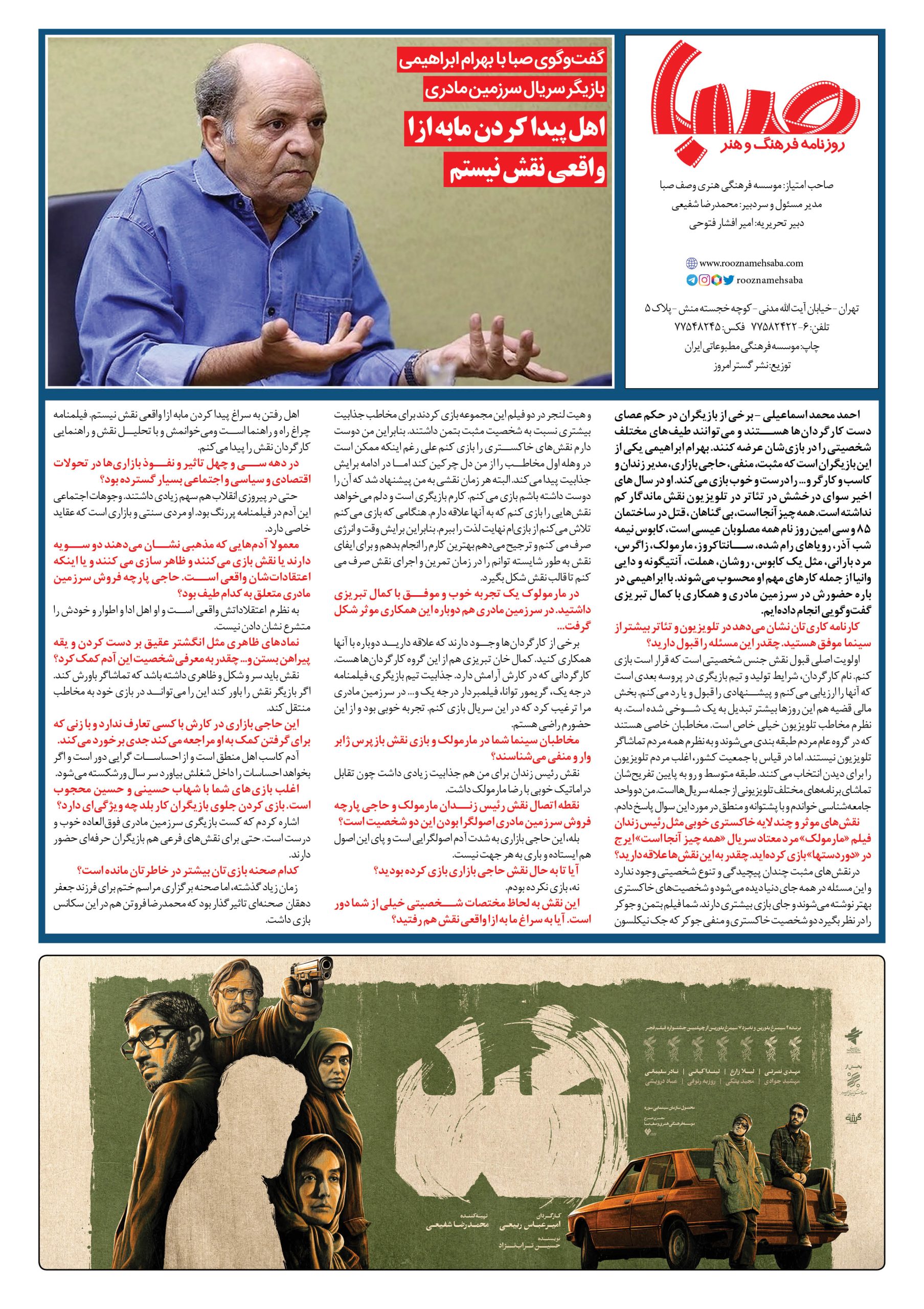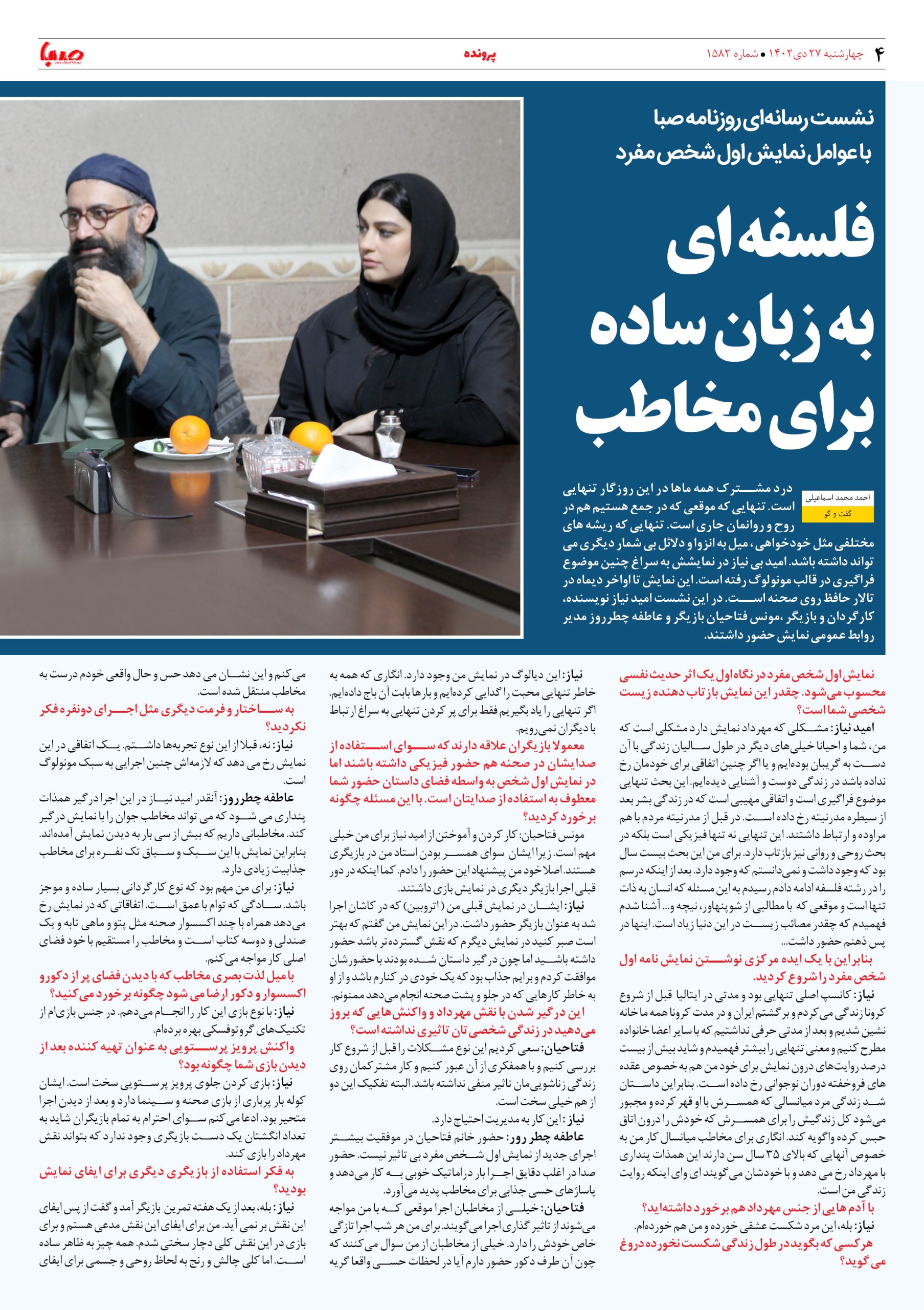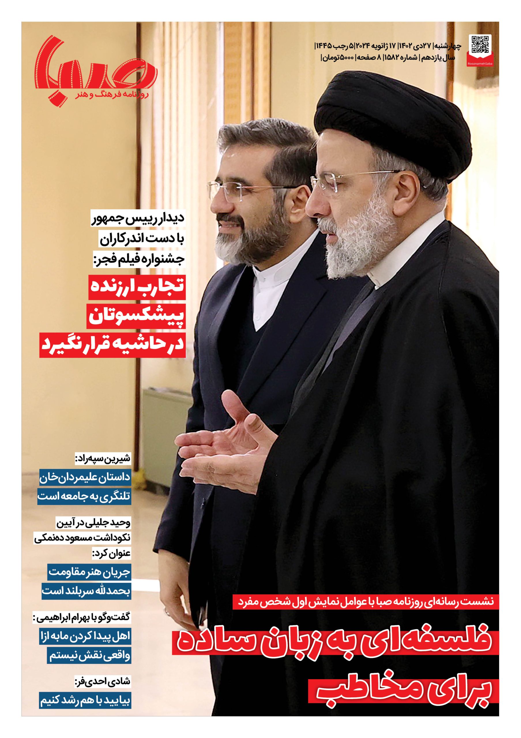 شماره۱۵۸۲| روزنامه صبا چهارشنبه ۲۷دی
