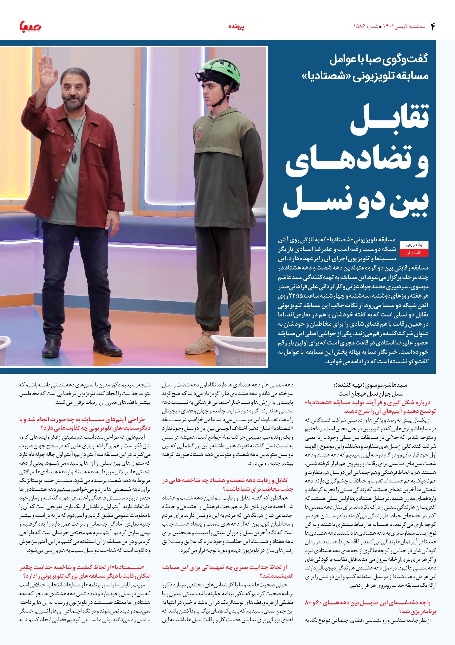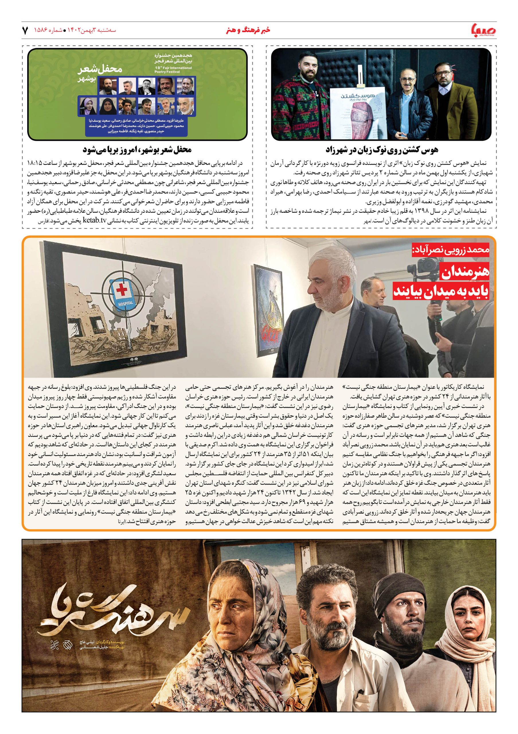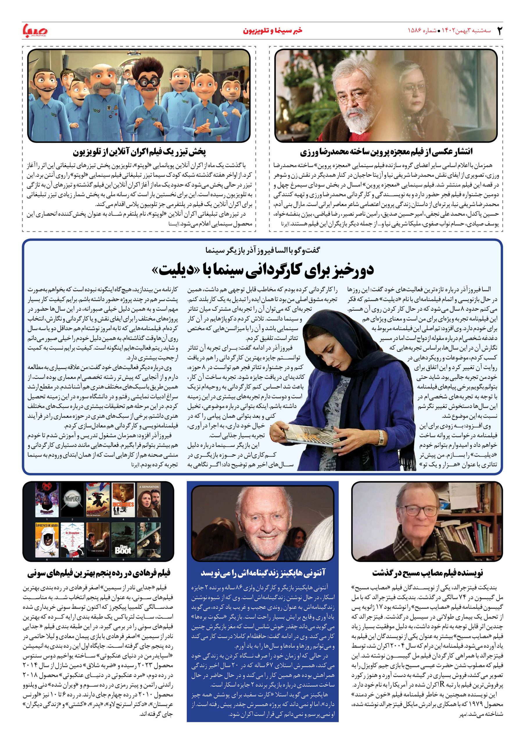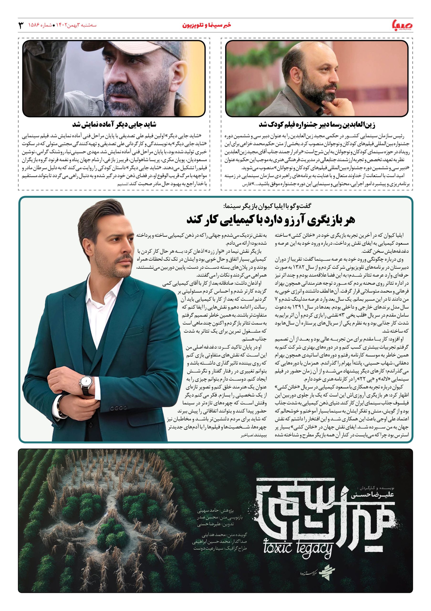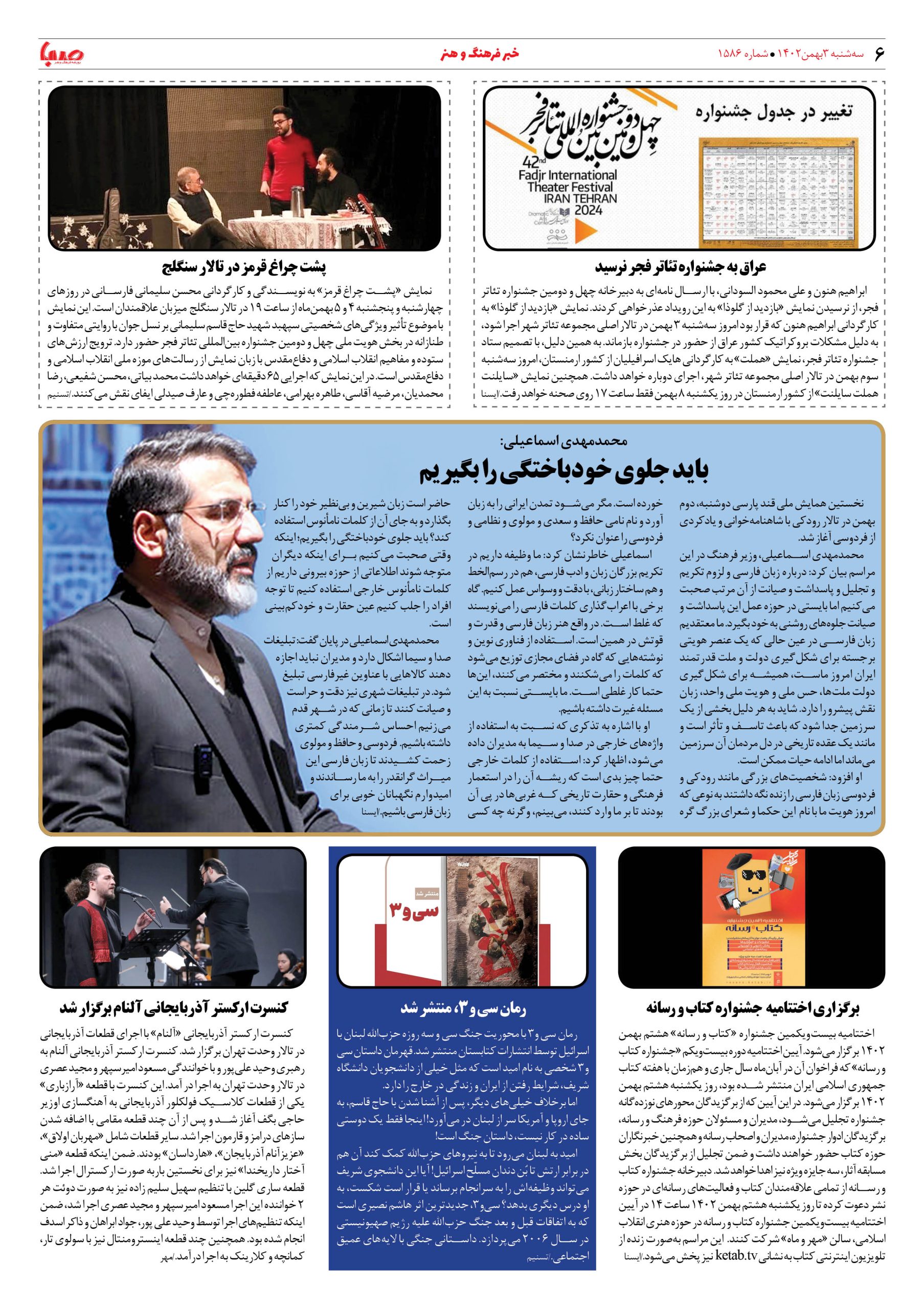 شماره۱۵۸۶| روزنامه صبا سه شنبه ۳بهمن