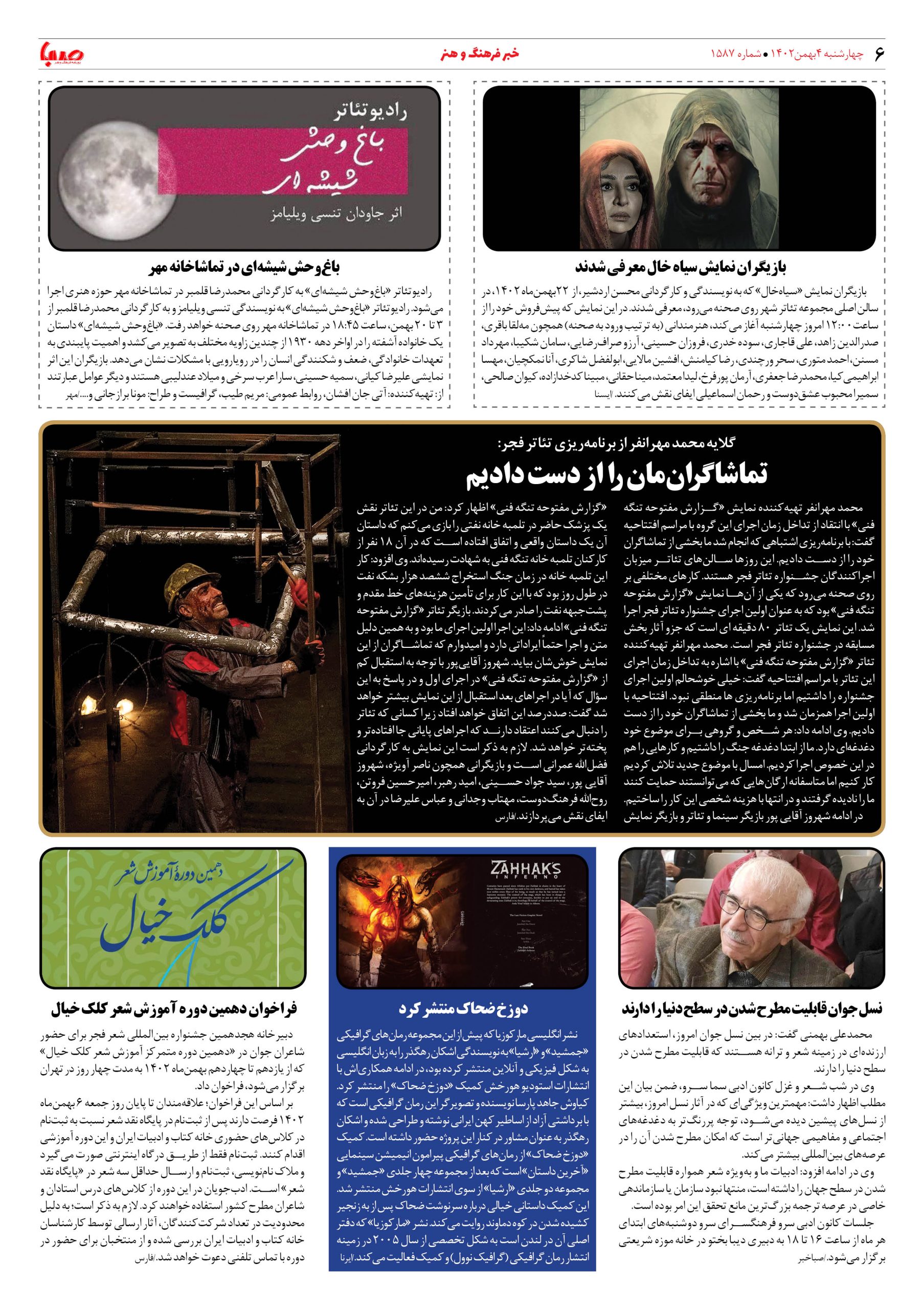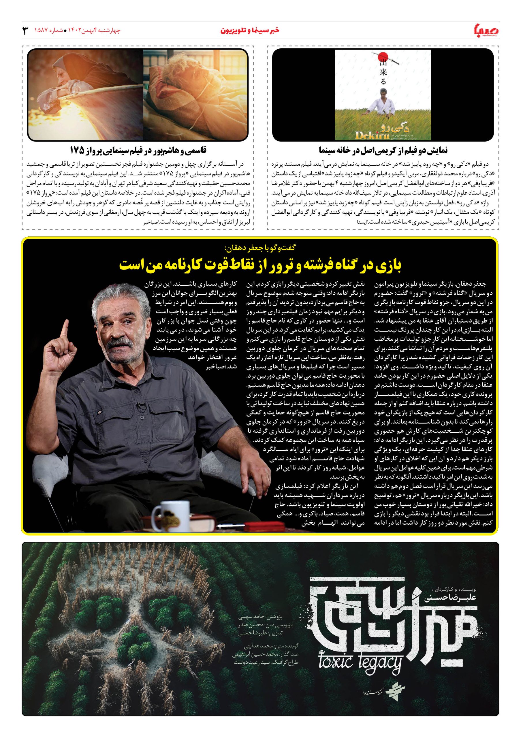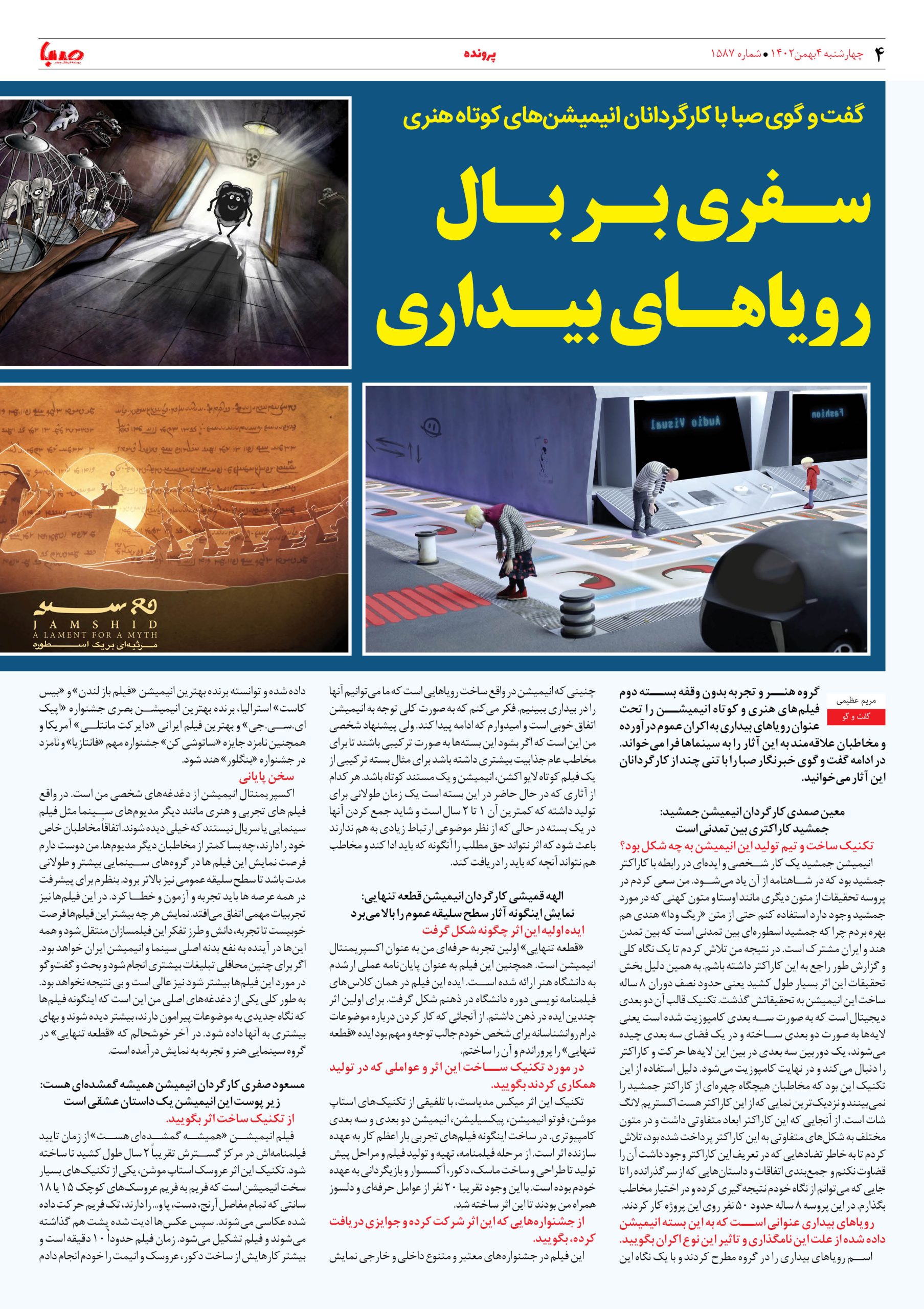 شماره۱۵۸۷| روزنامه صبا چهارشنبه ۴بهمن