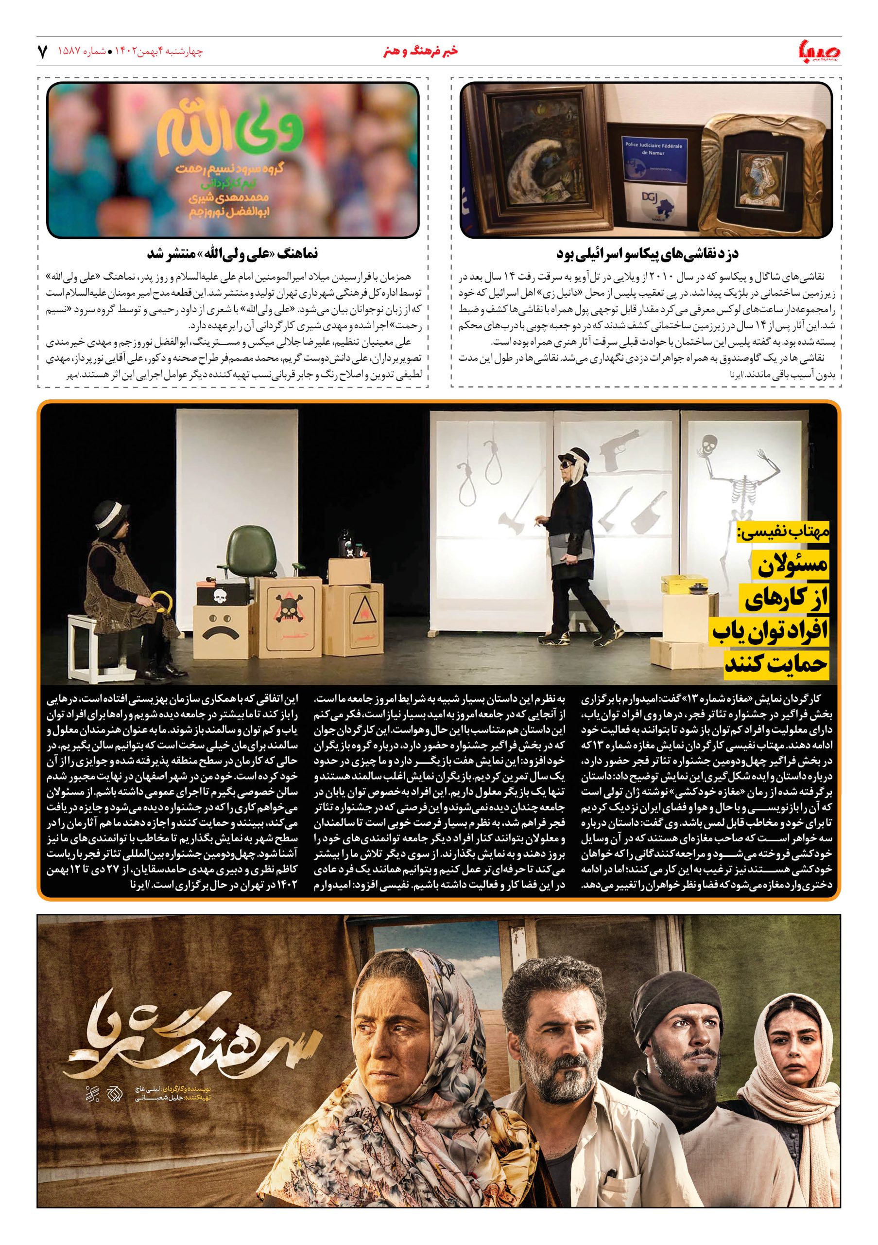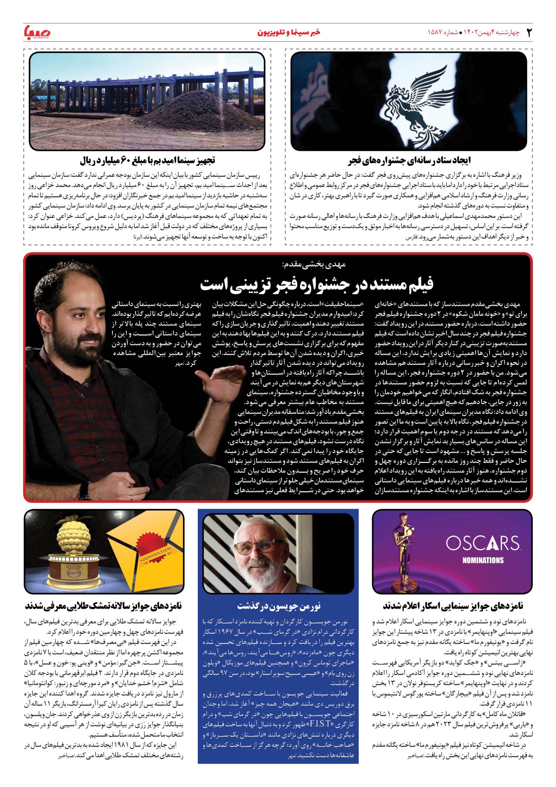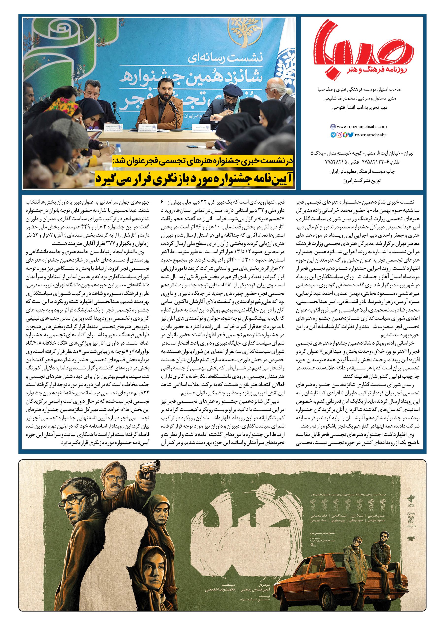 شماره۱۵۸۷| روزنامه صبا چهارشنبه ۴بهمن
