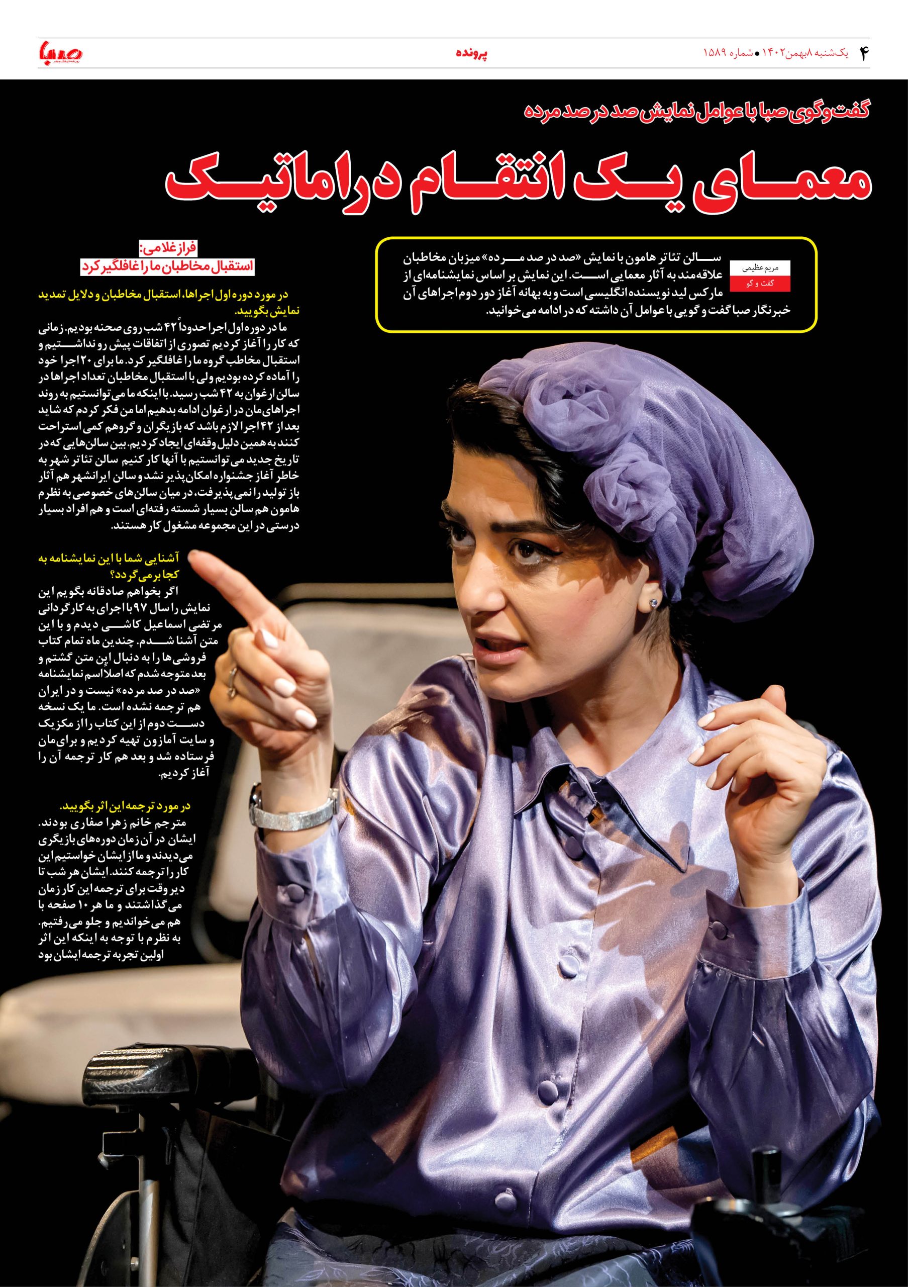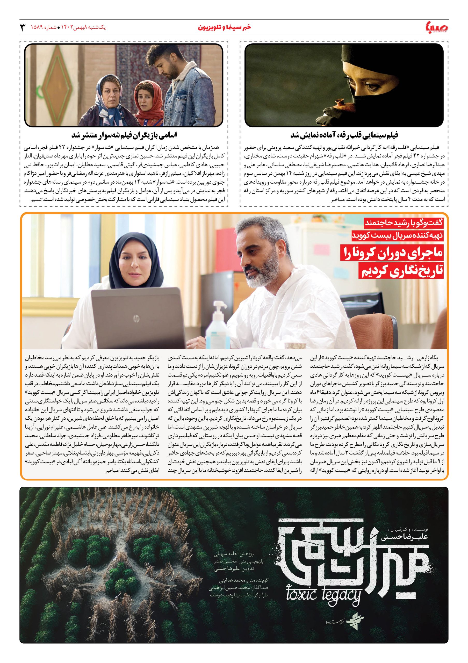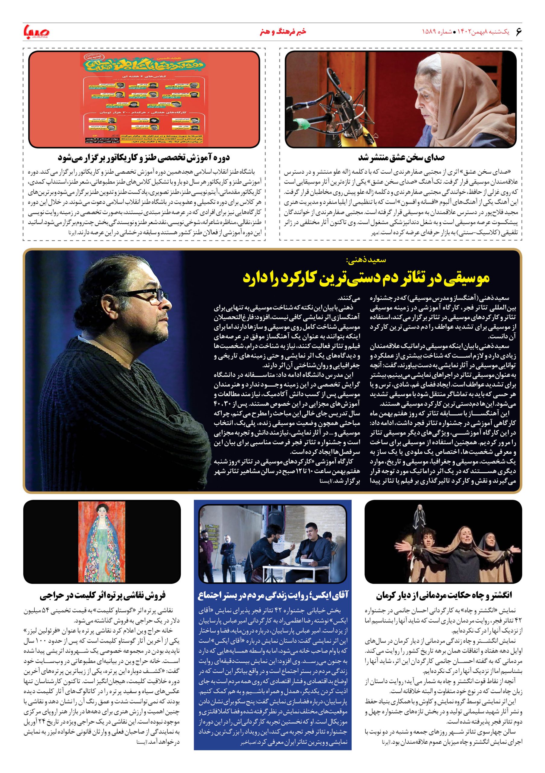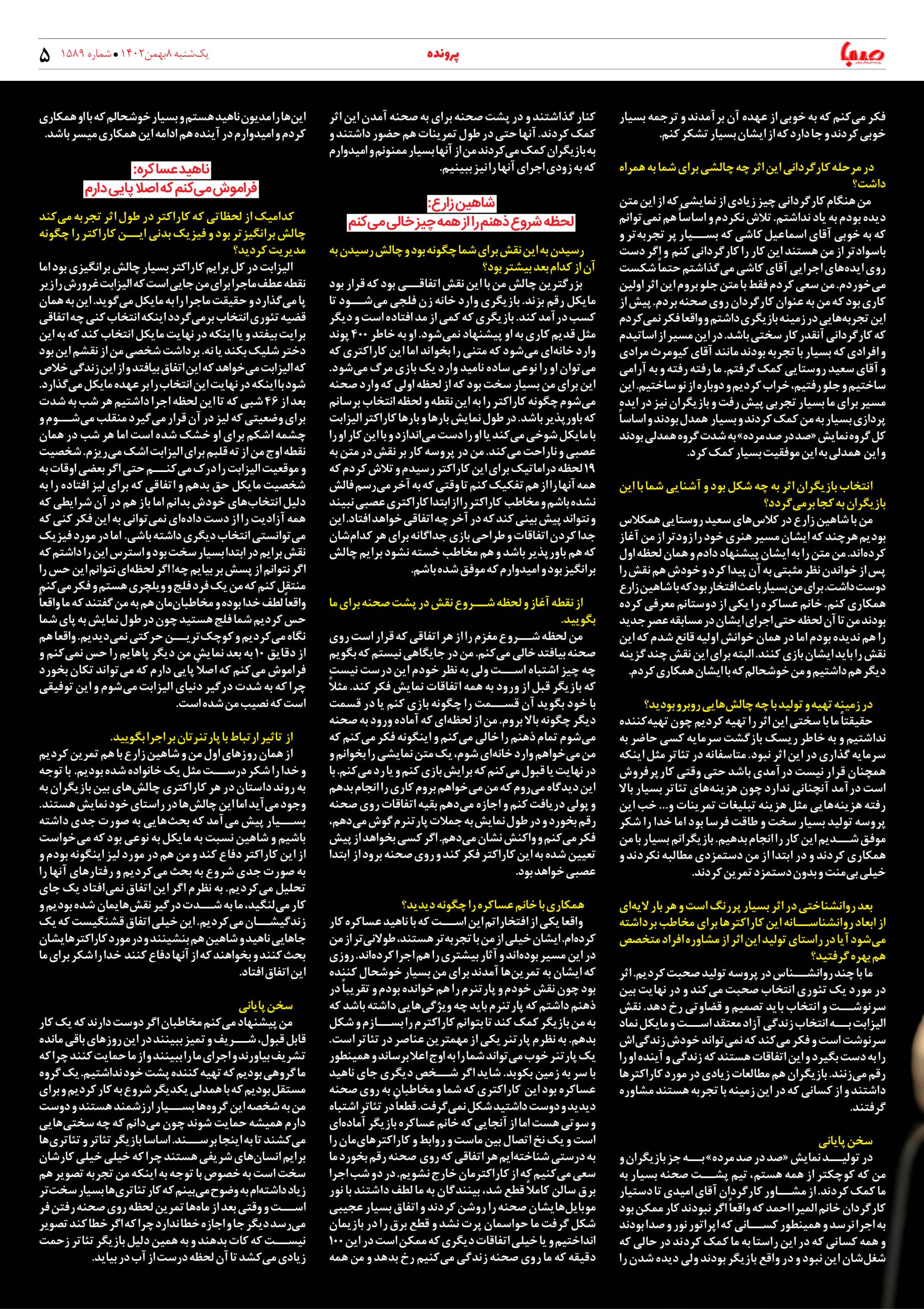 شماره۱۵۸۹| روزنامه صبا یکشنبه ۸بهمن