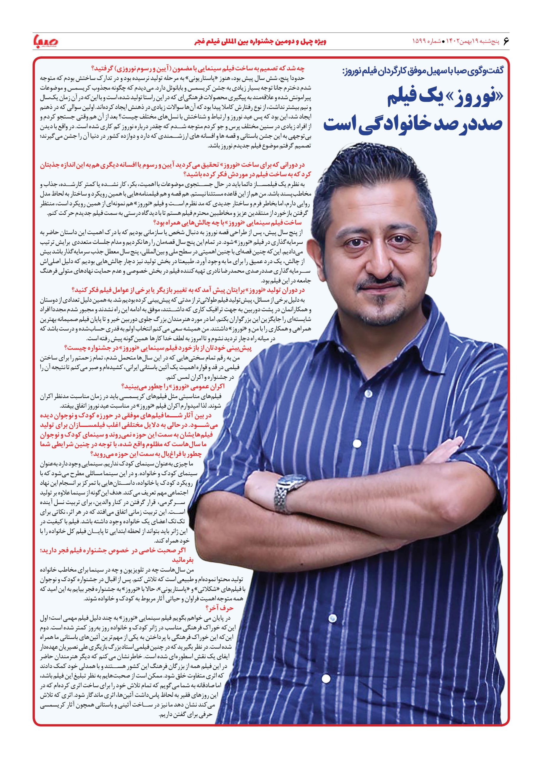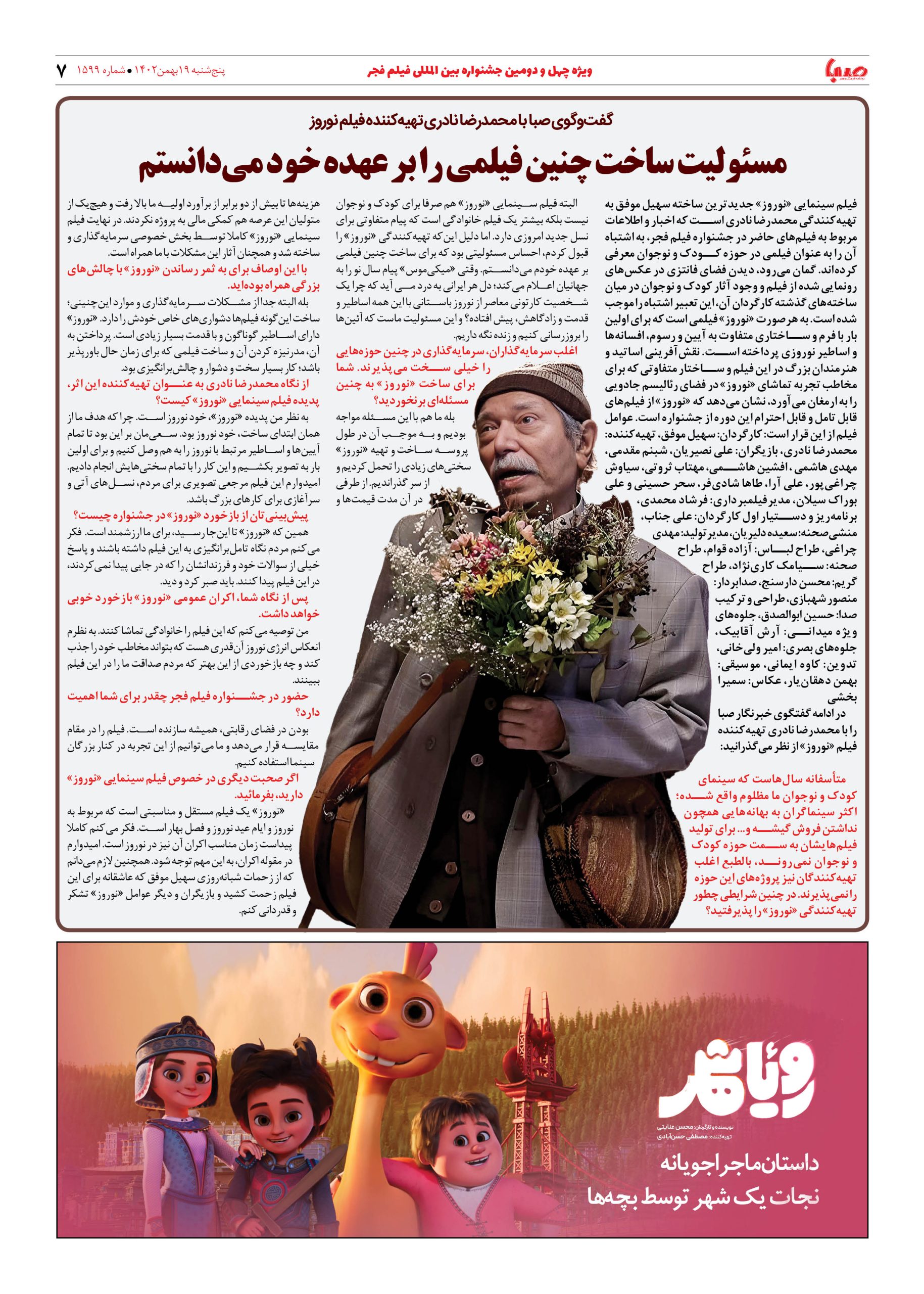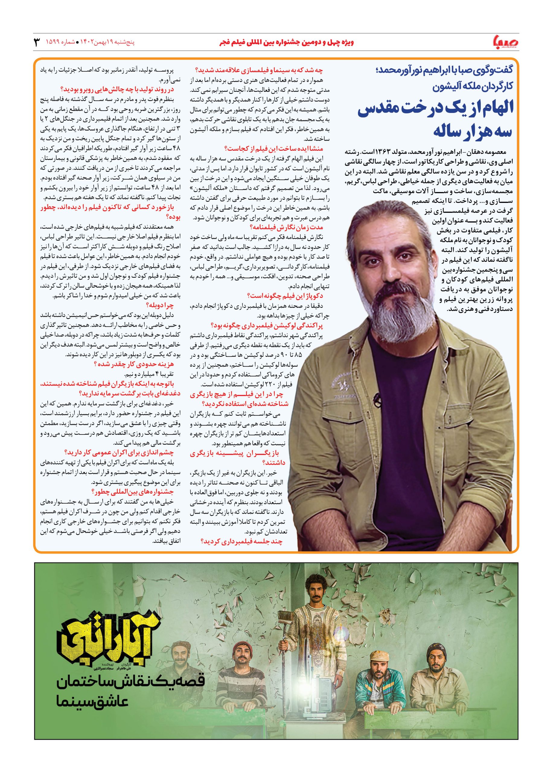 شماره۱۵۹۹| روزنامه صبا پنجشنبه۱۹بهمن