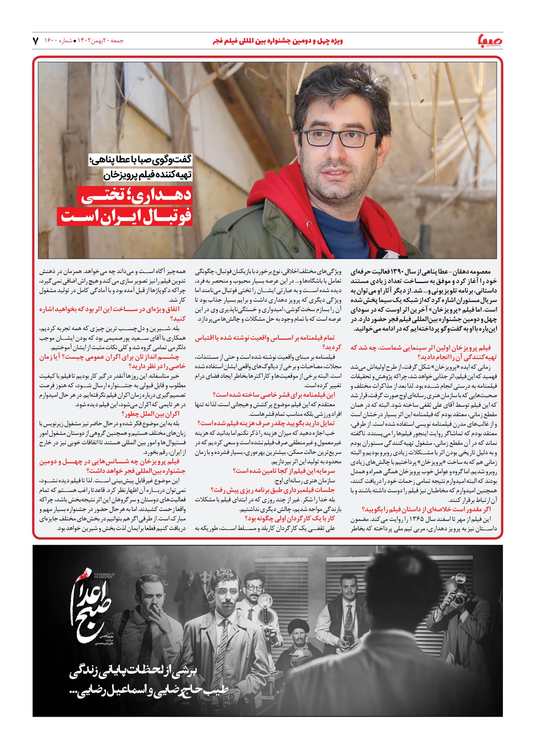 شماره۱۶۰۰| روزنامه صباجمعه۲۰بهمن