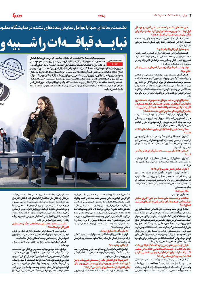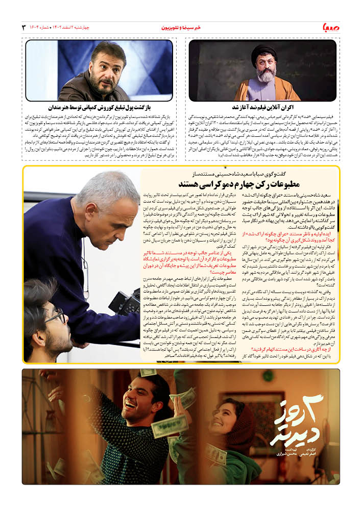 شماره۱۶۰۴| روزنامه صبا چهارشنبه ۲اسفند