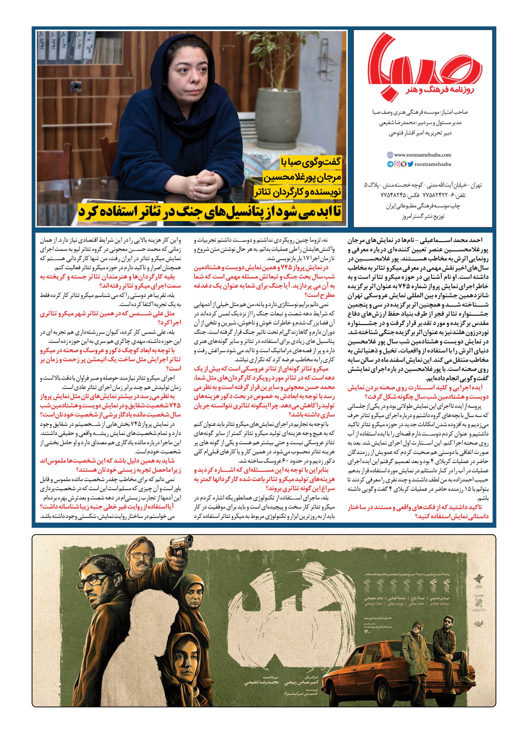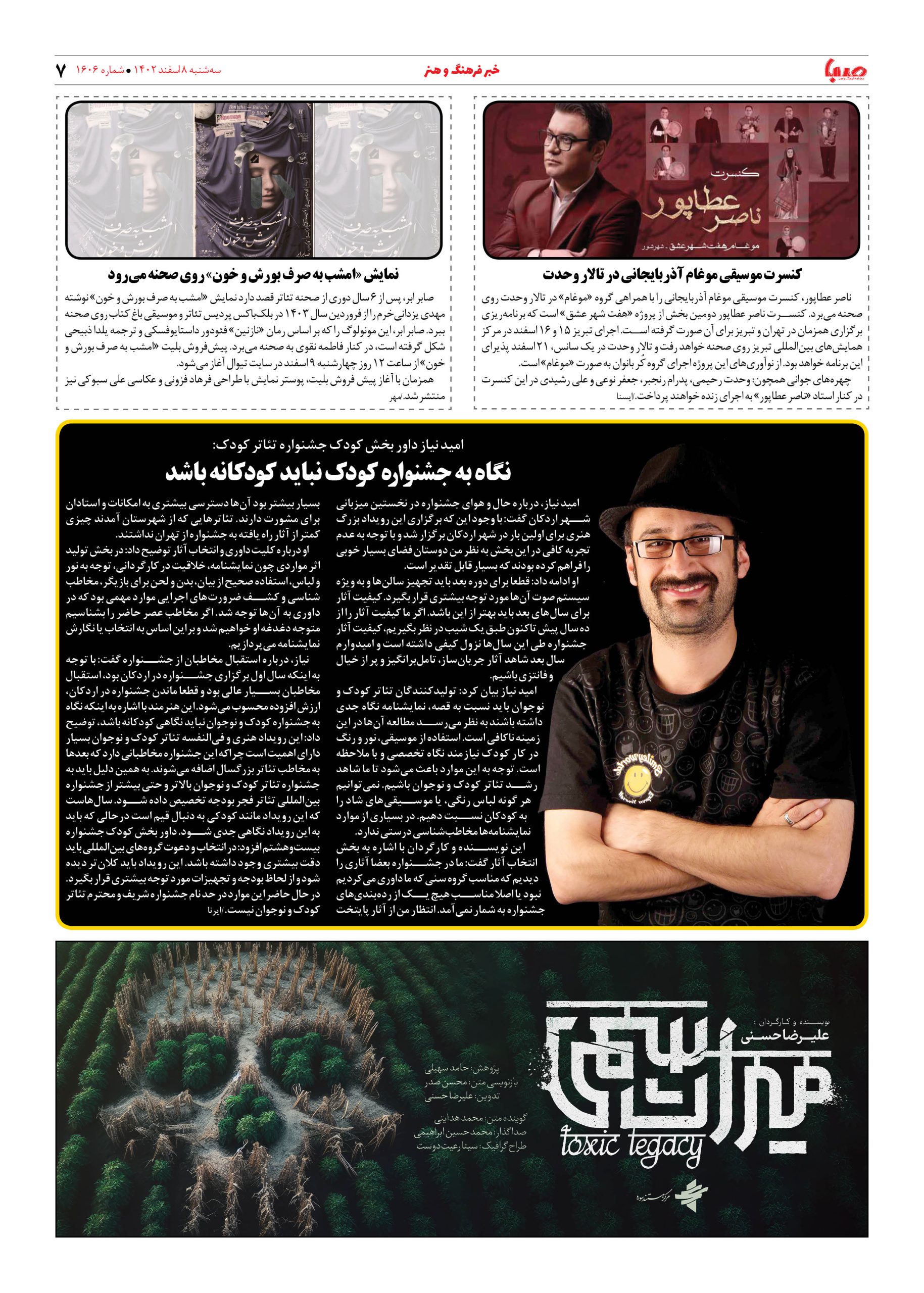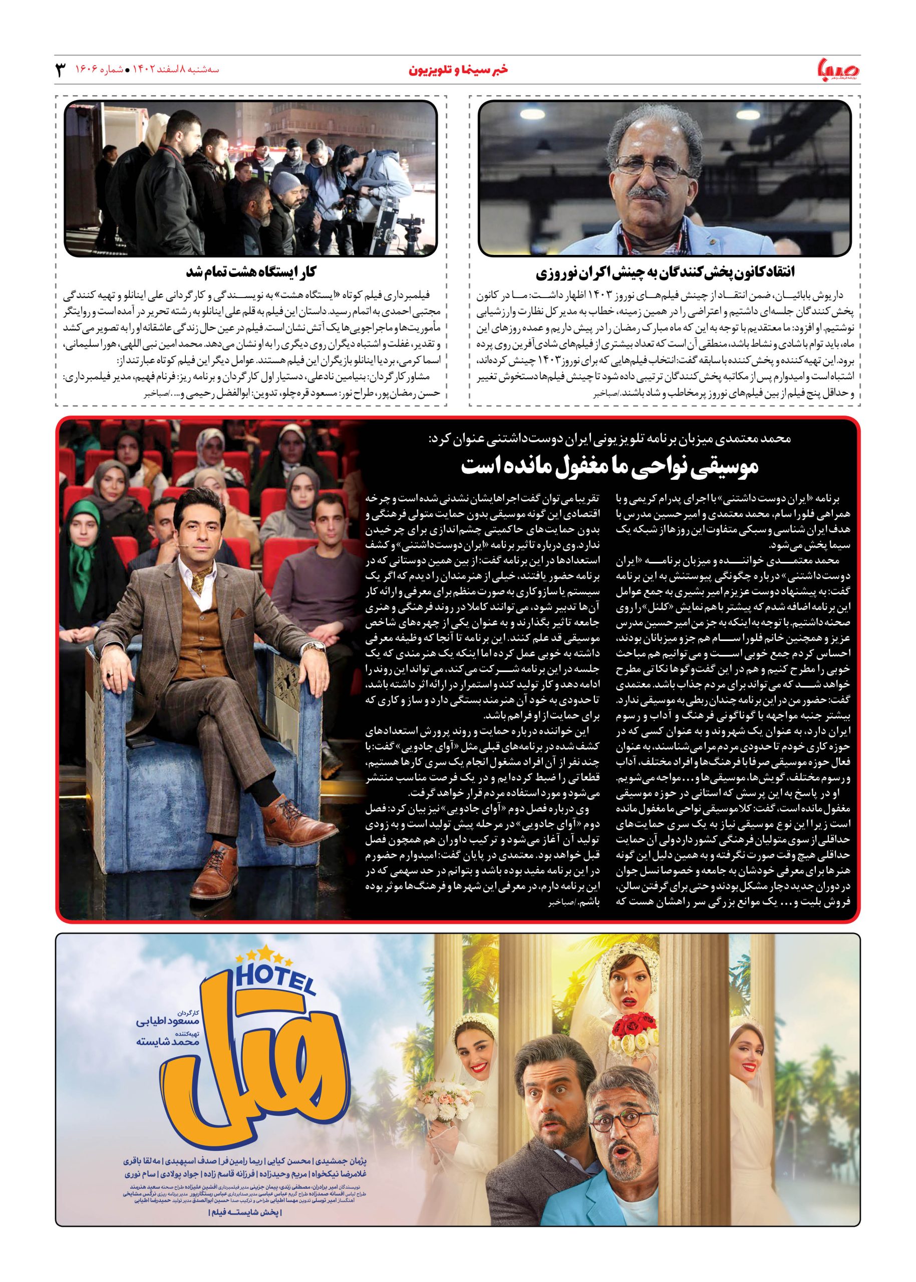 شماره۱۶۰۶| روزنامه صبا سه شنبه۸اسفند