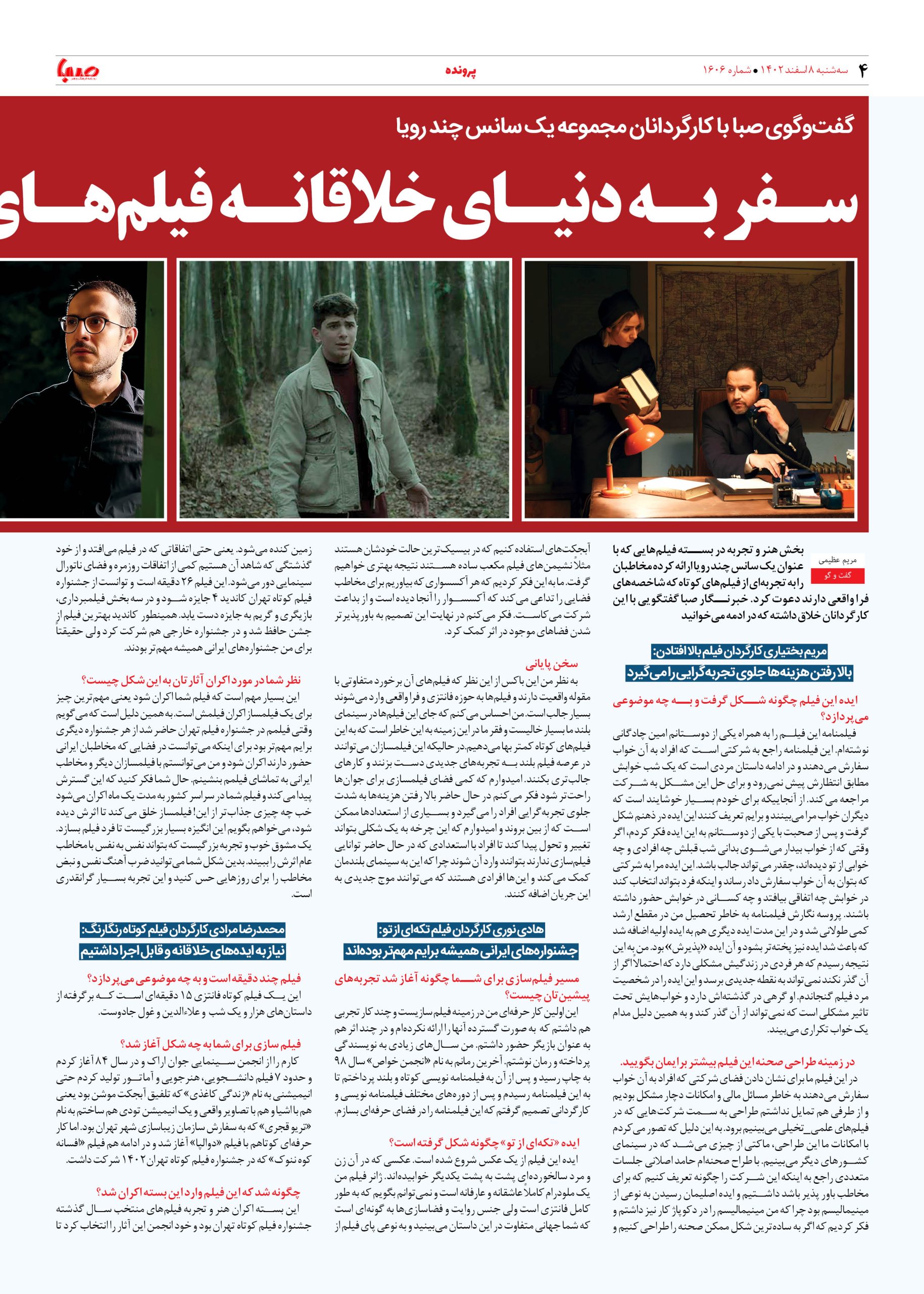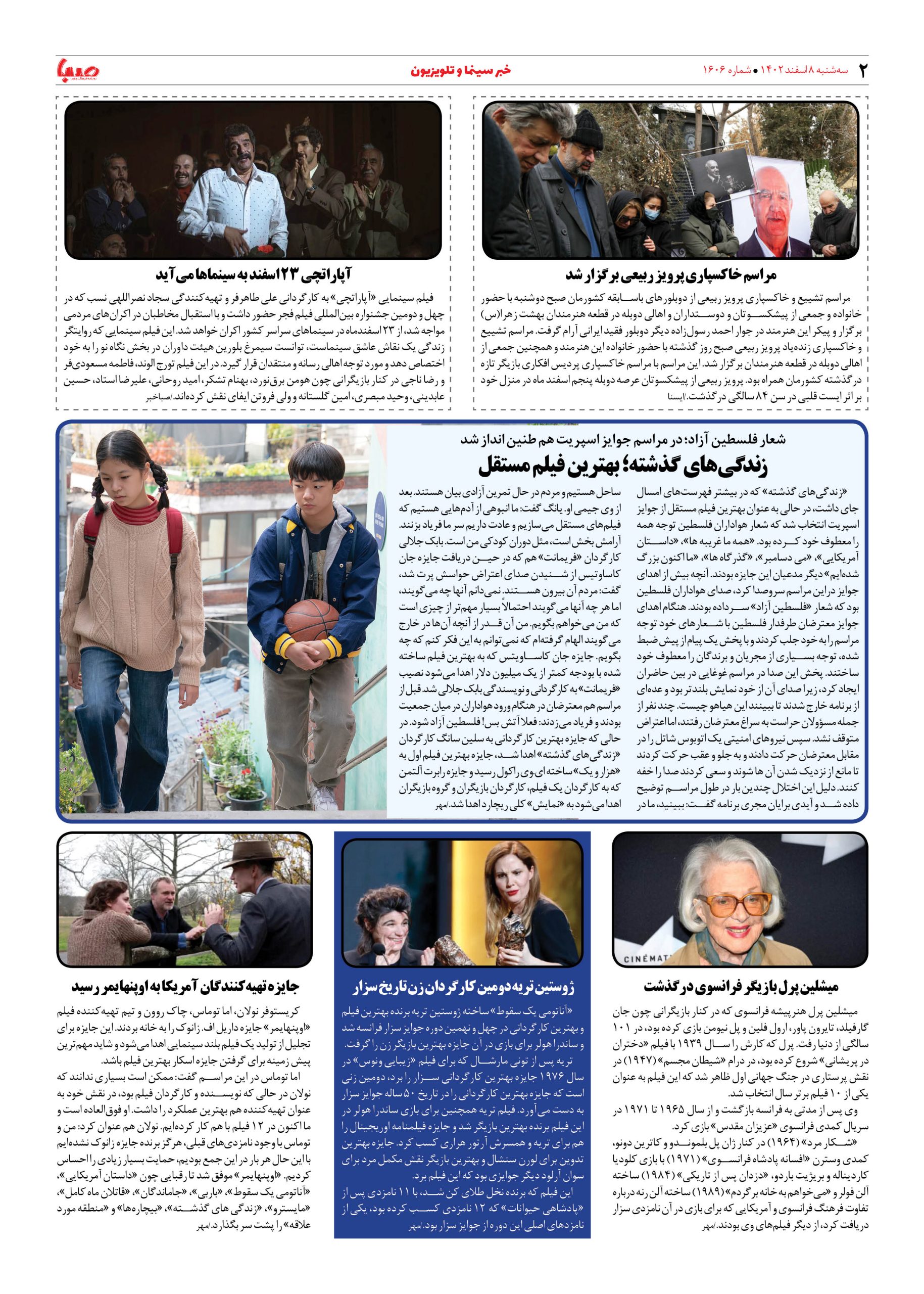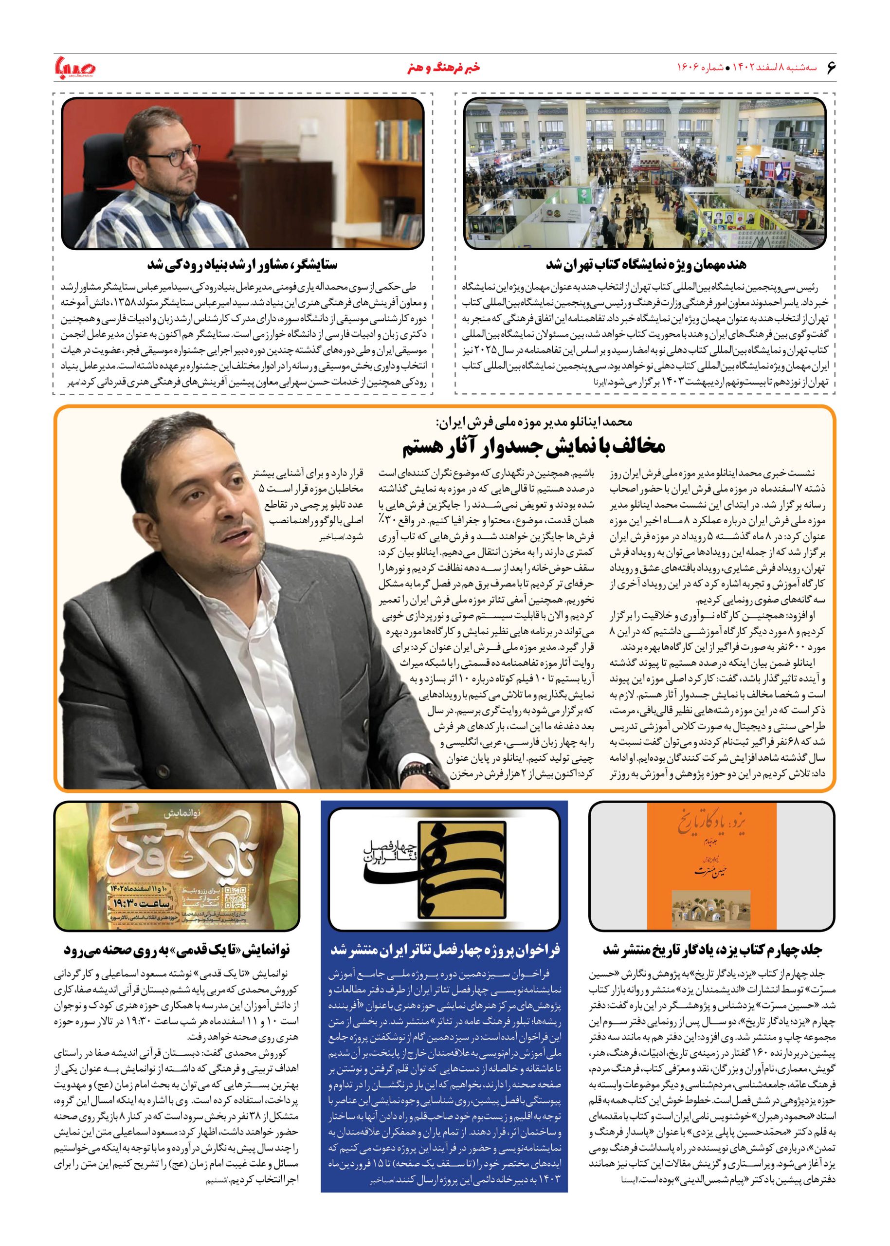 شماره۱۶۰۶| روزنامه صبا سه شنبه۸اسفند