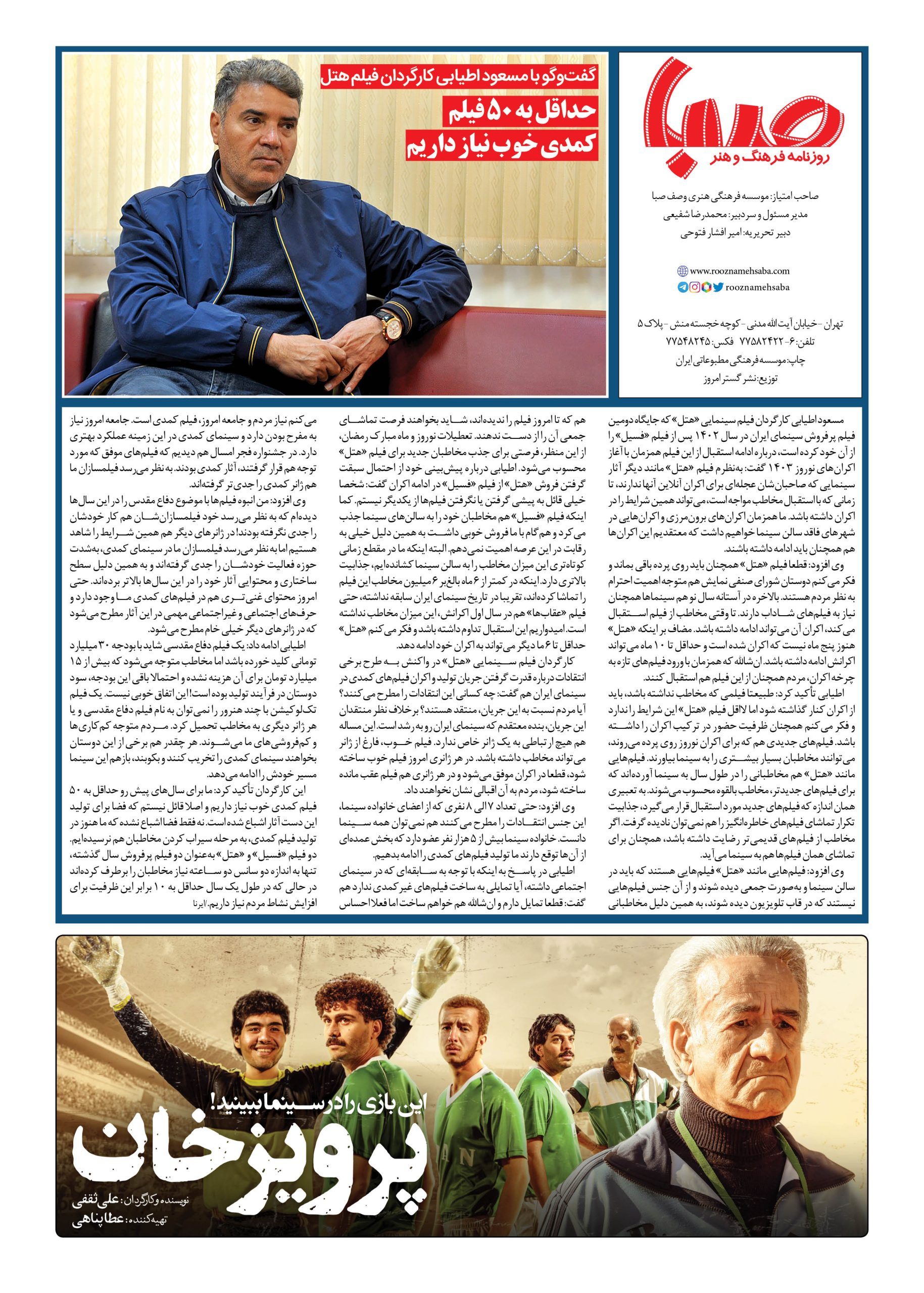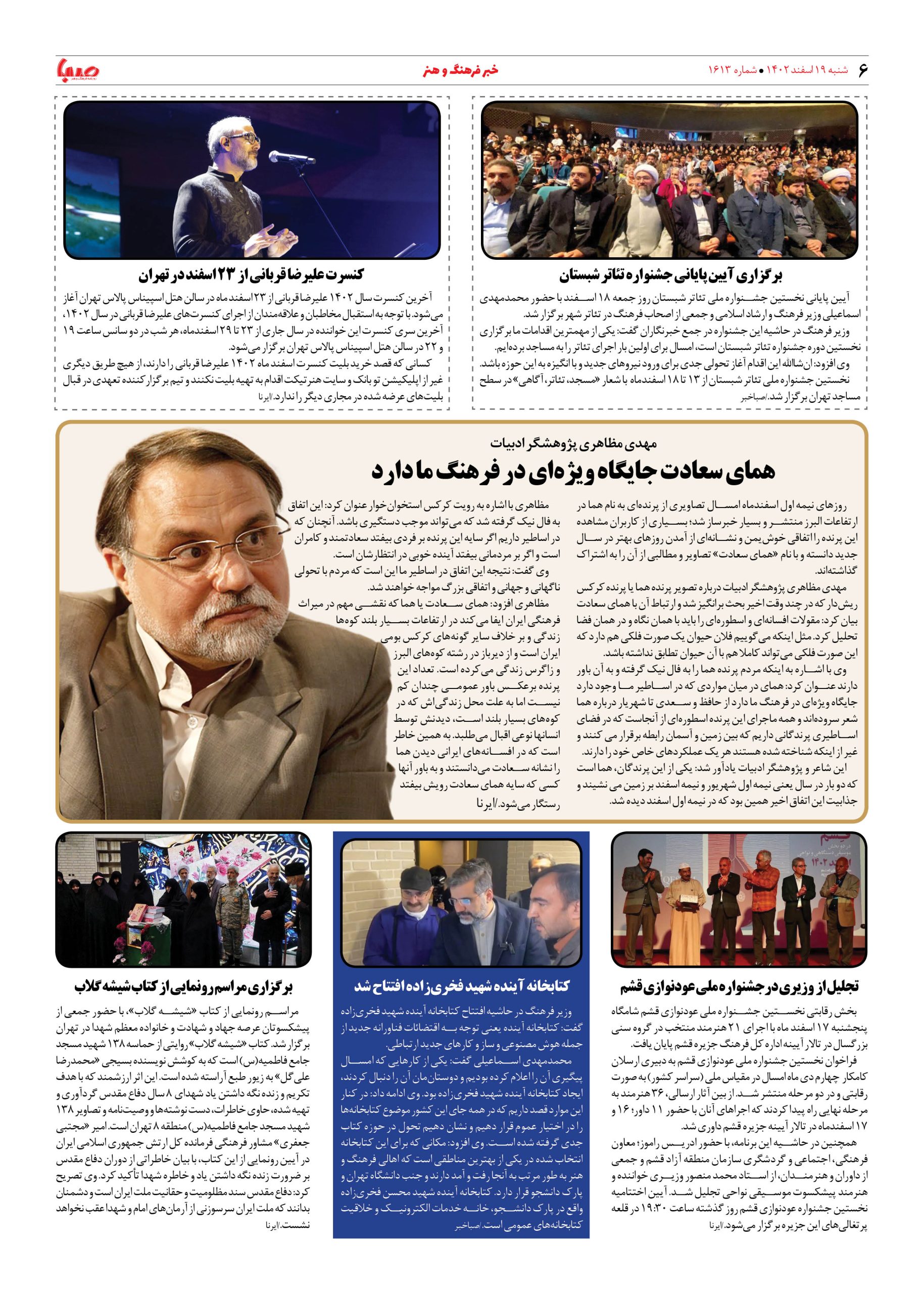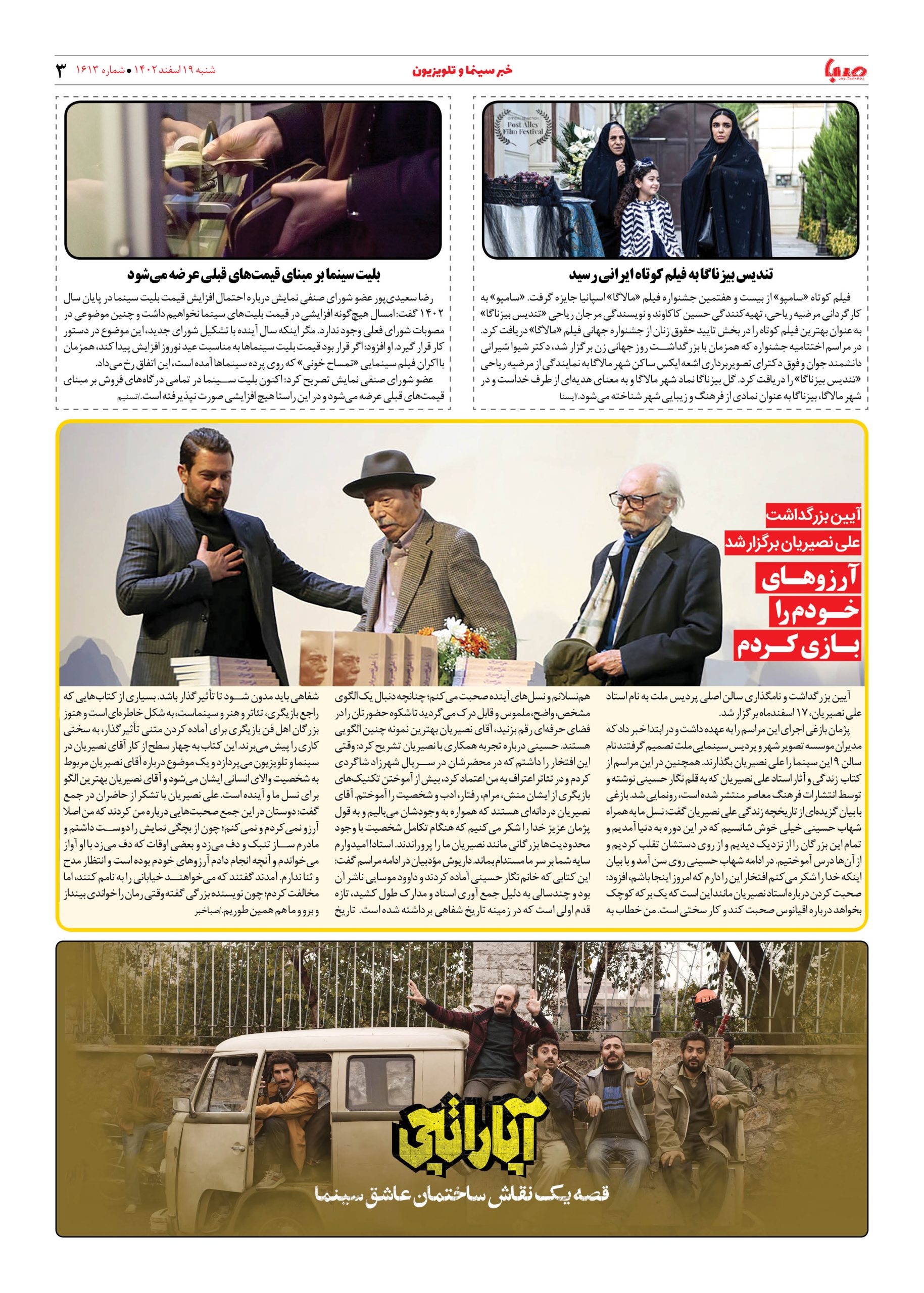 شماره۱۶۱۳| روزنامه صبا شنبه۱۹اسفند