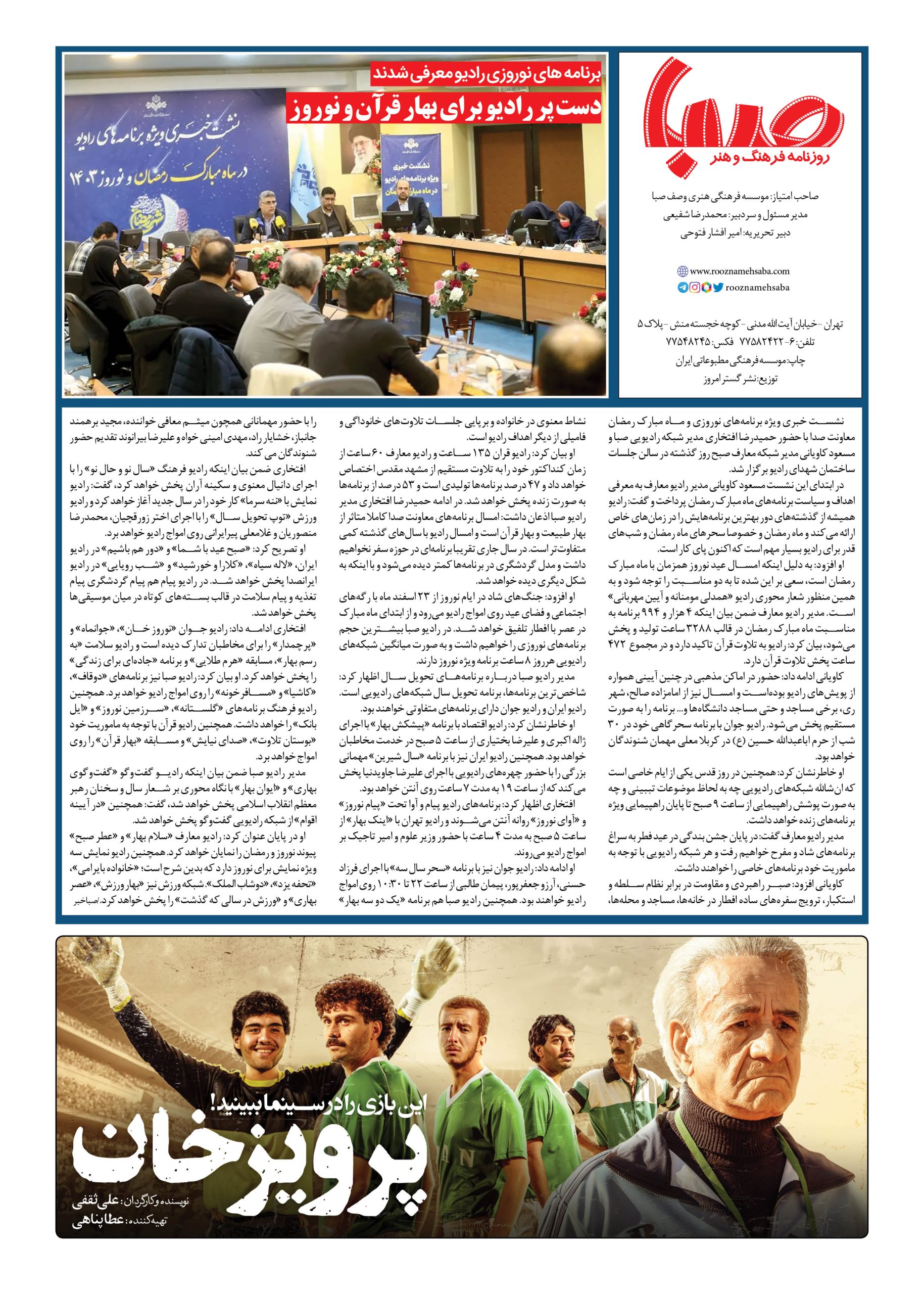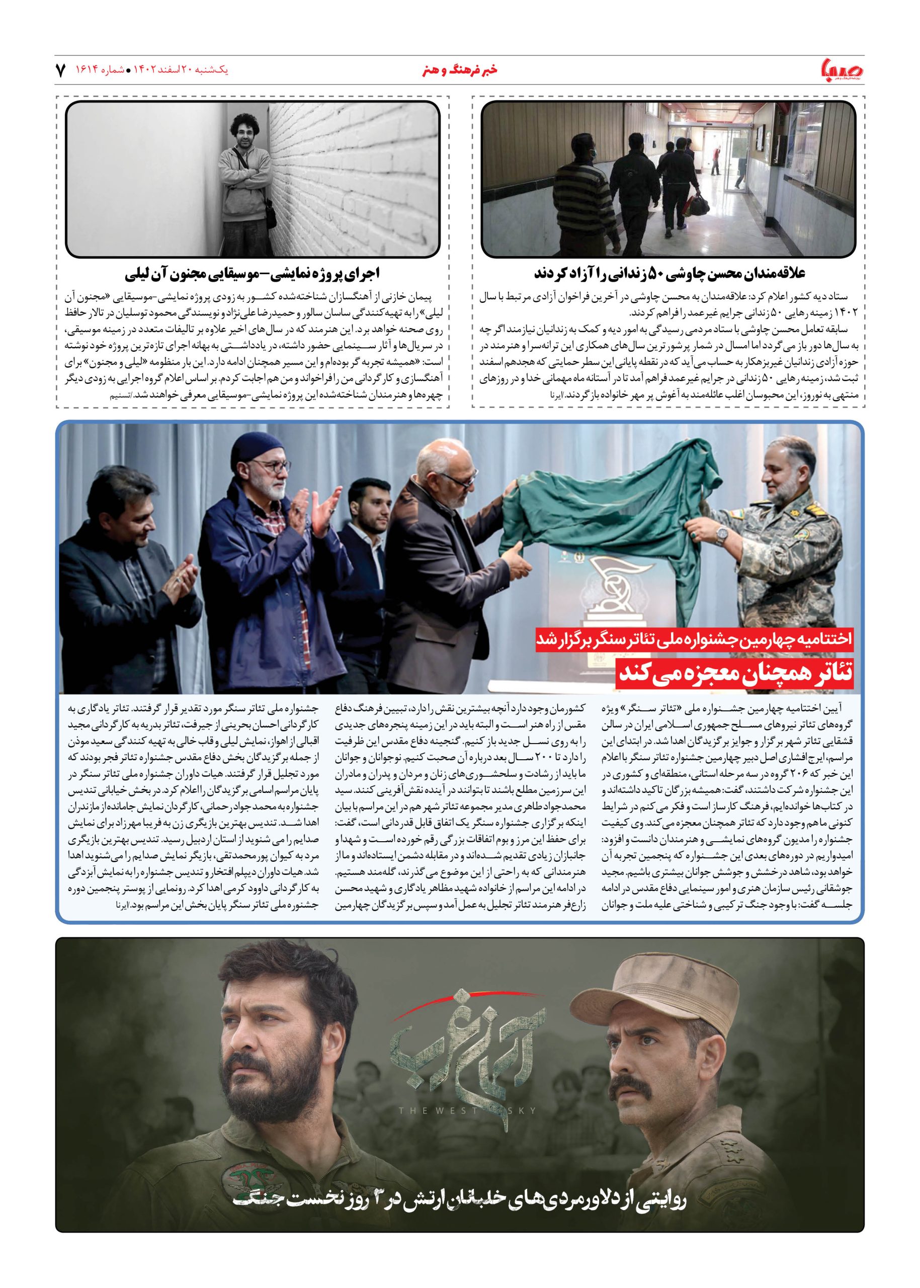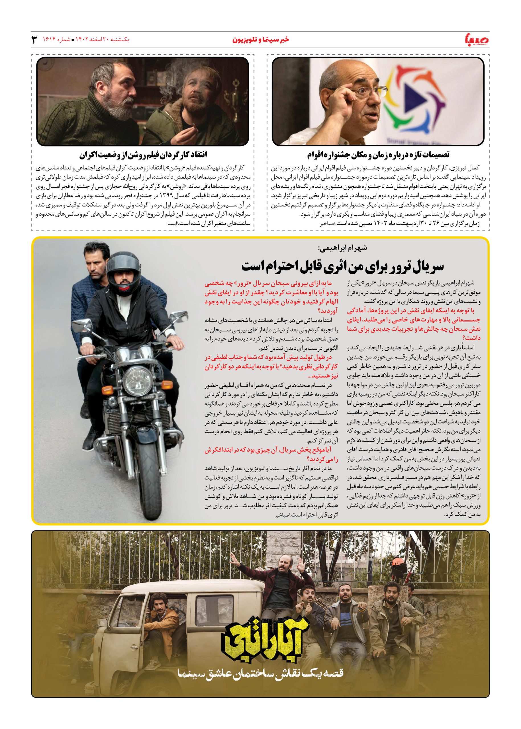 شماره۱۶۱۴| روزنامه صبا یکشنبه۲۰اسفند
