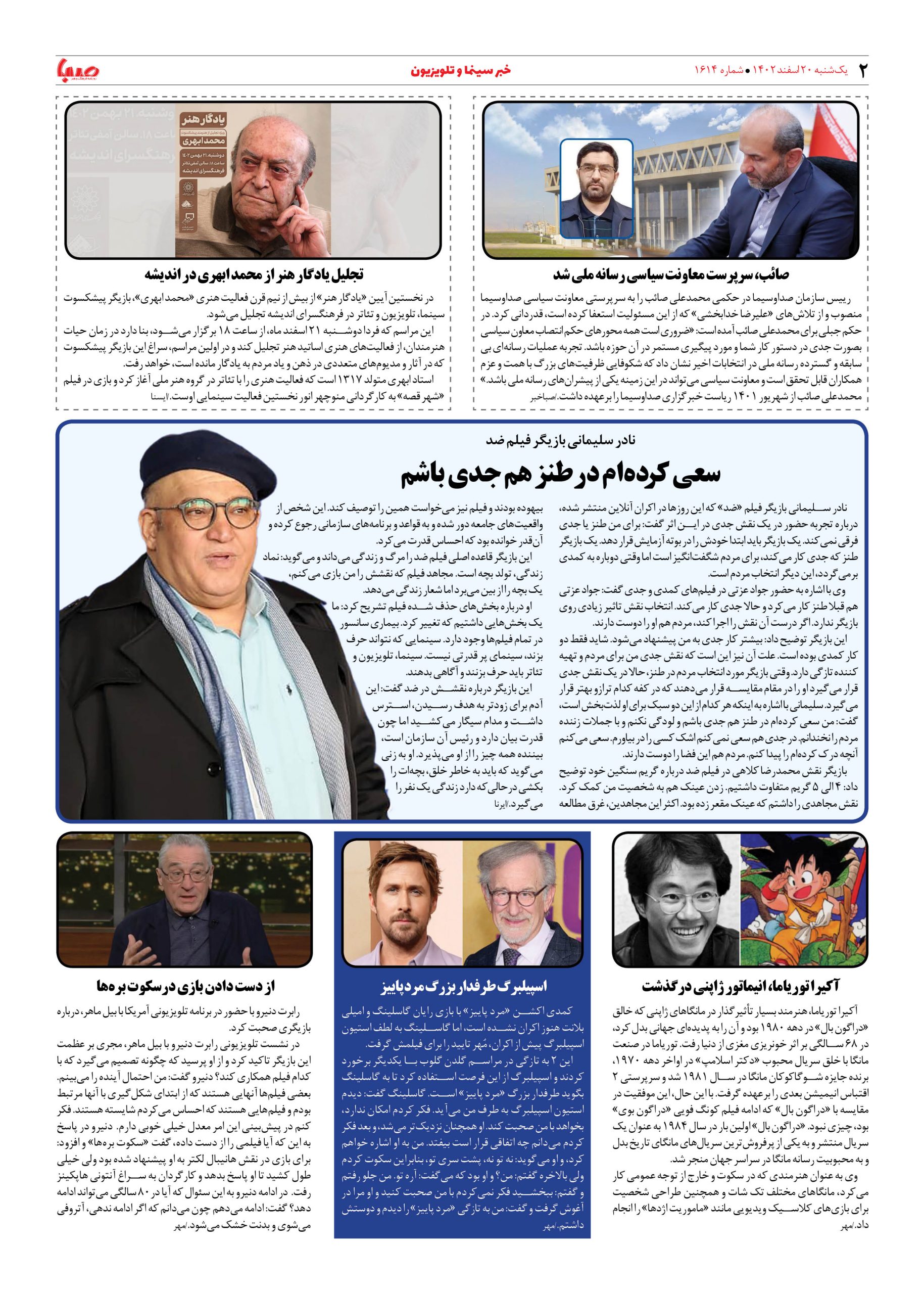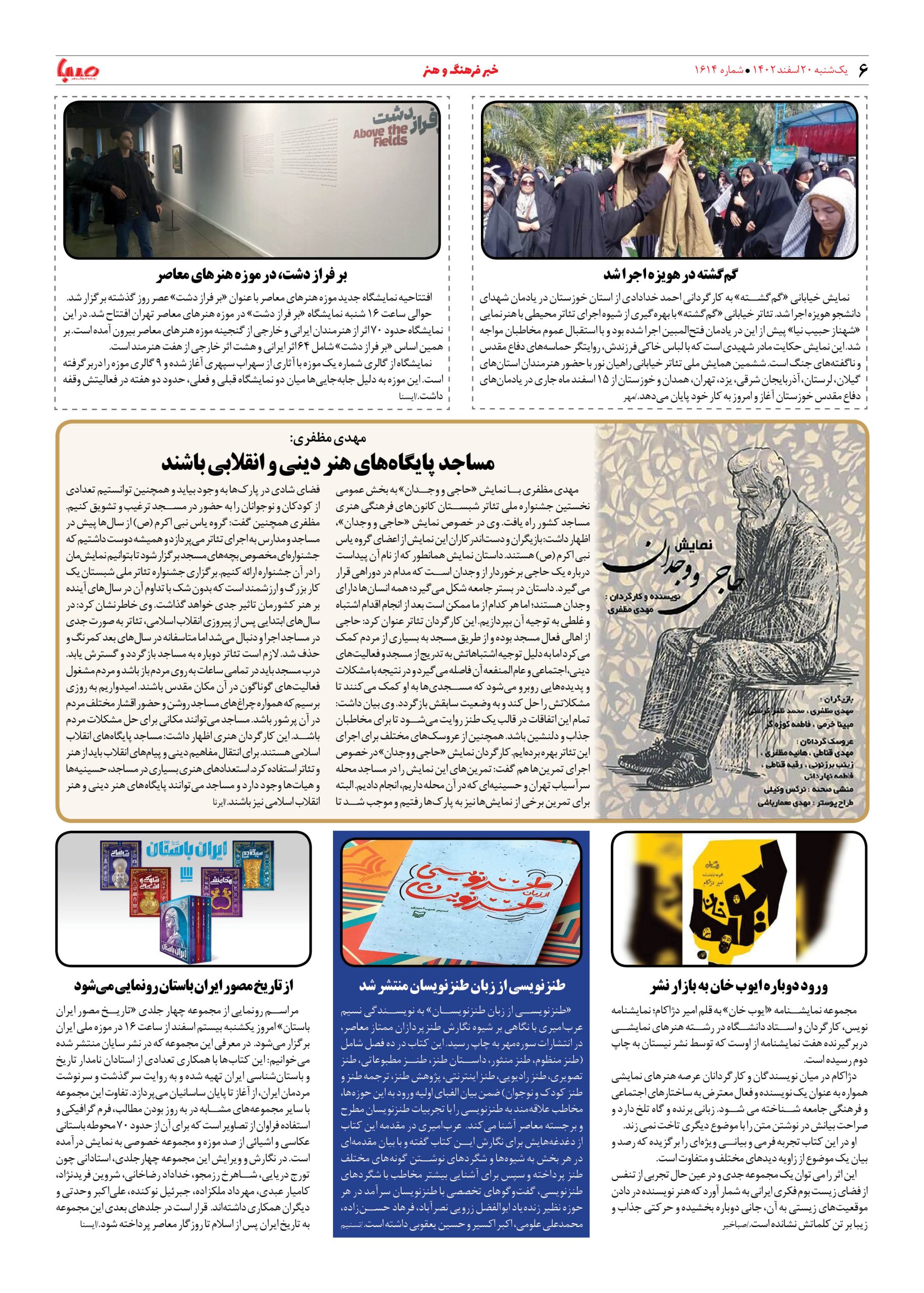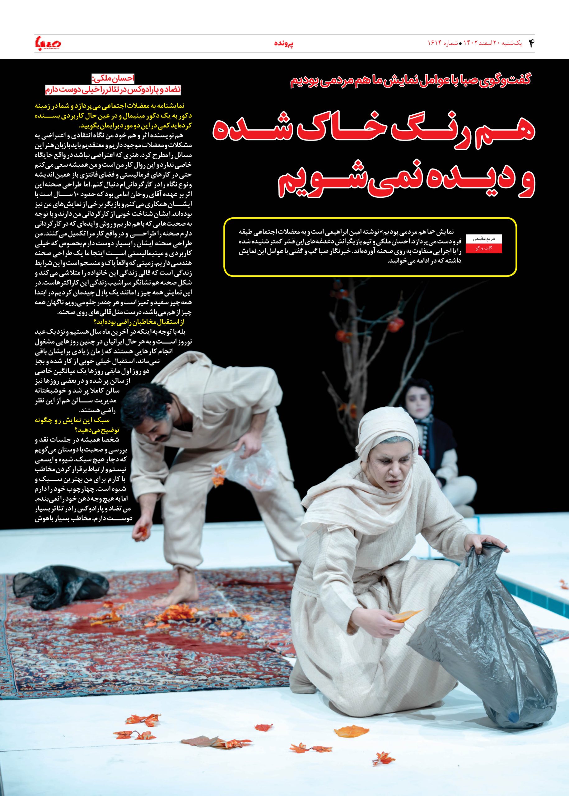 شماره۱۶۱۴| روزنامه صبا یکشنبه۲۰اسفند