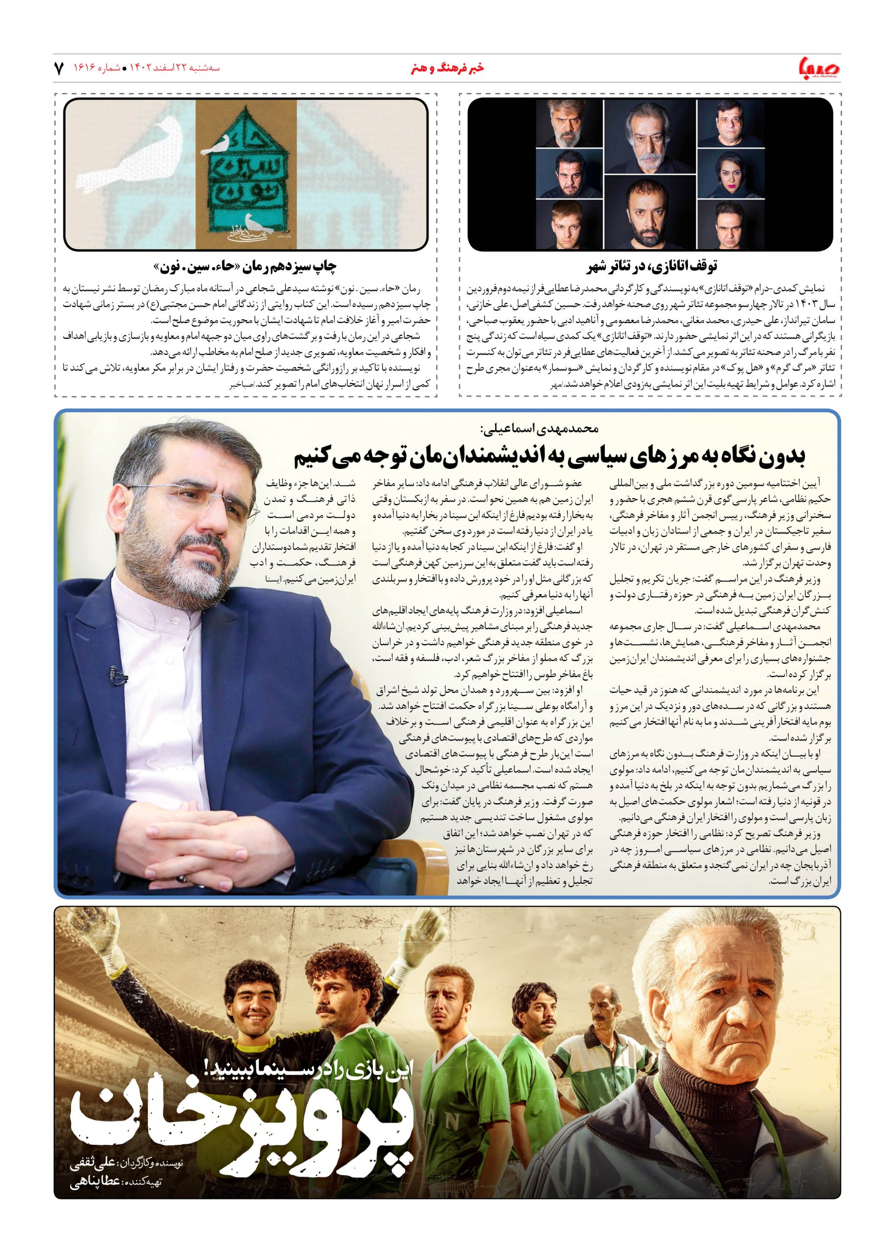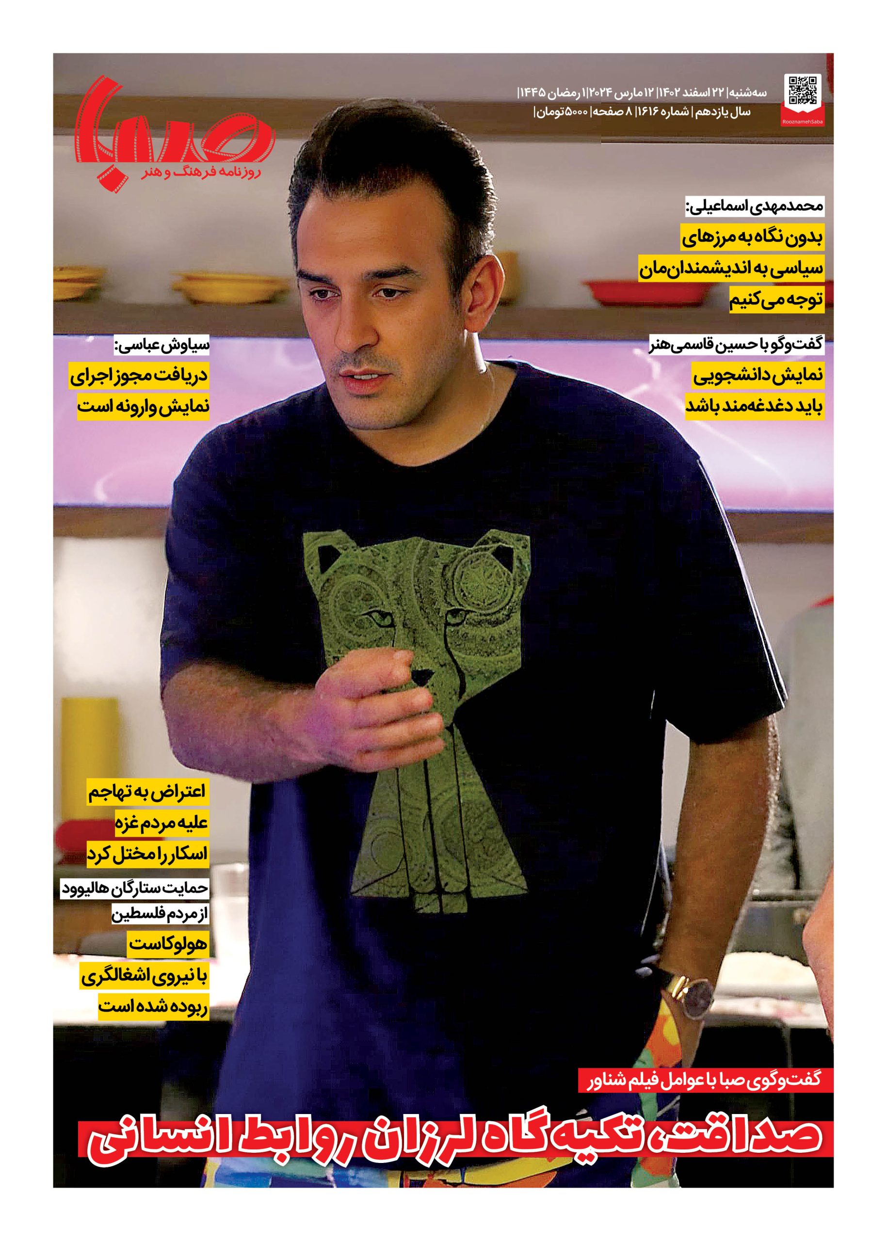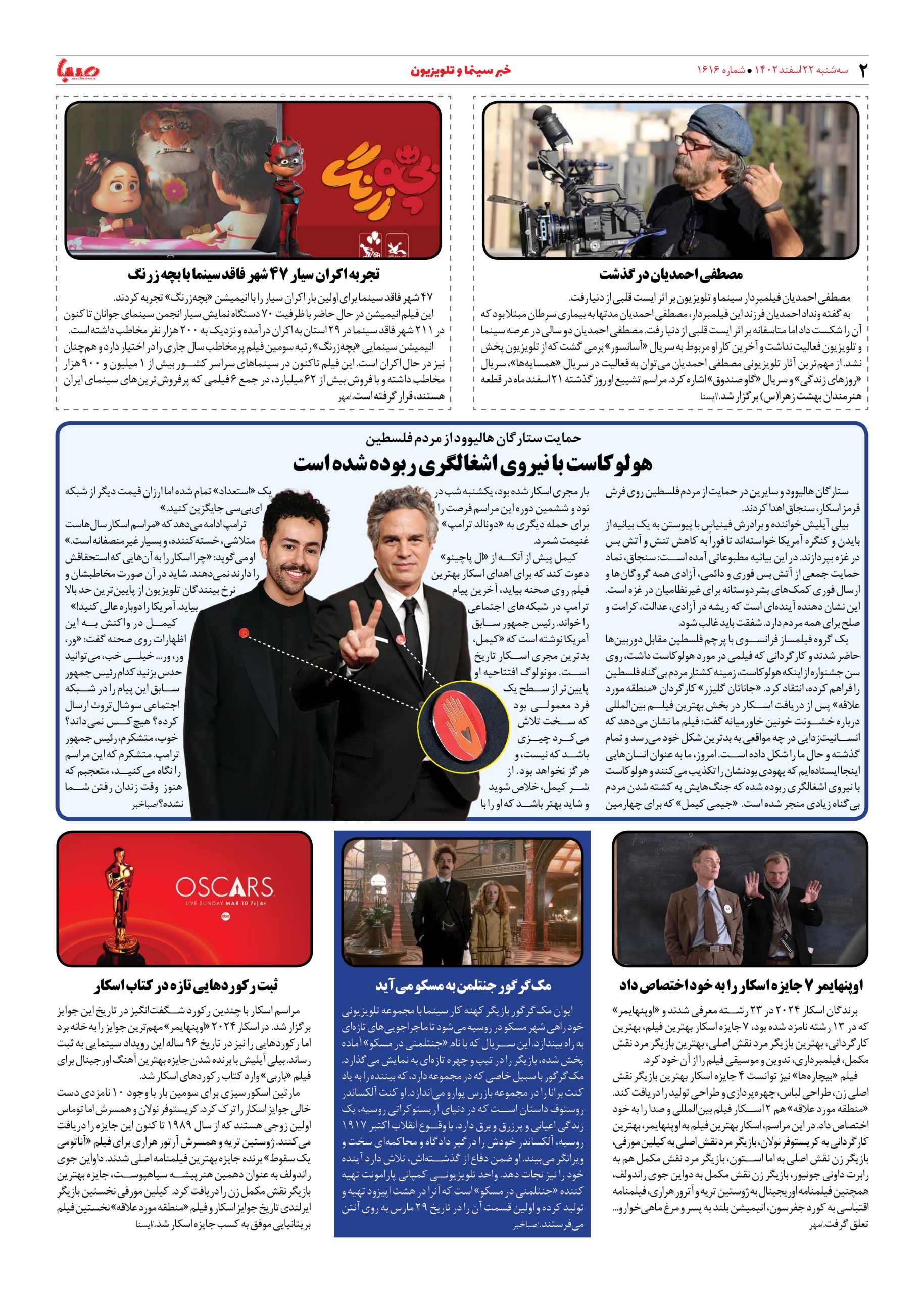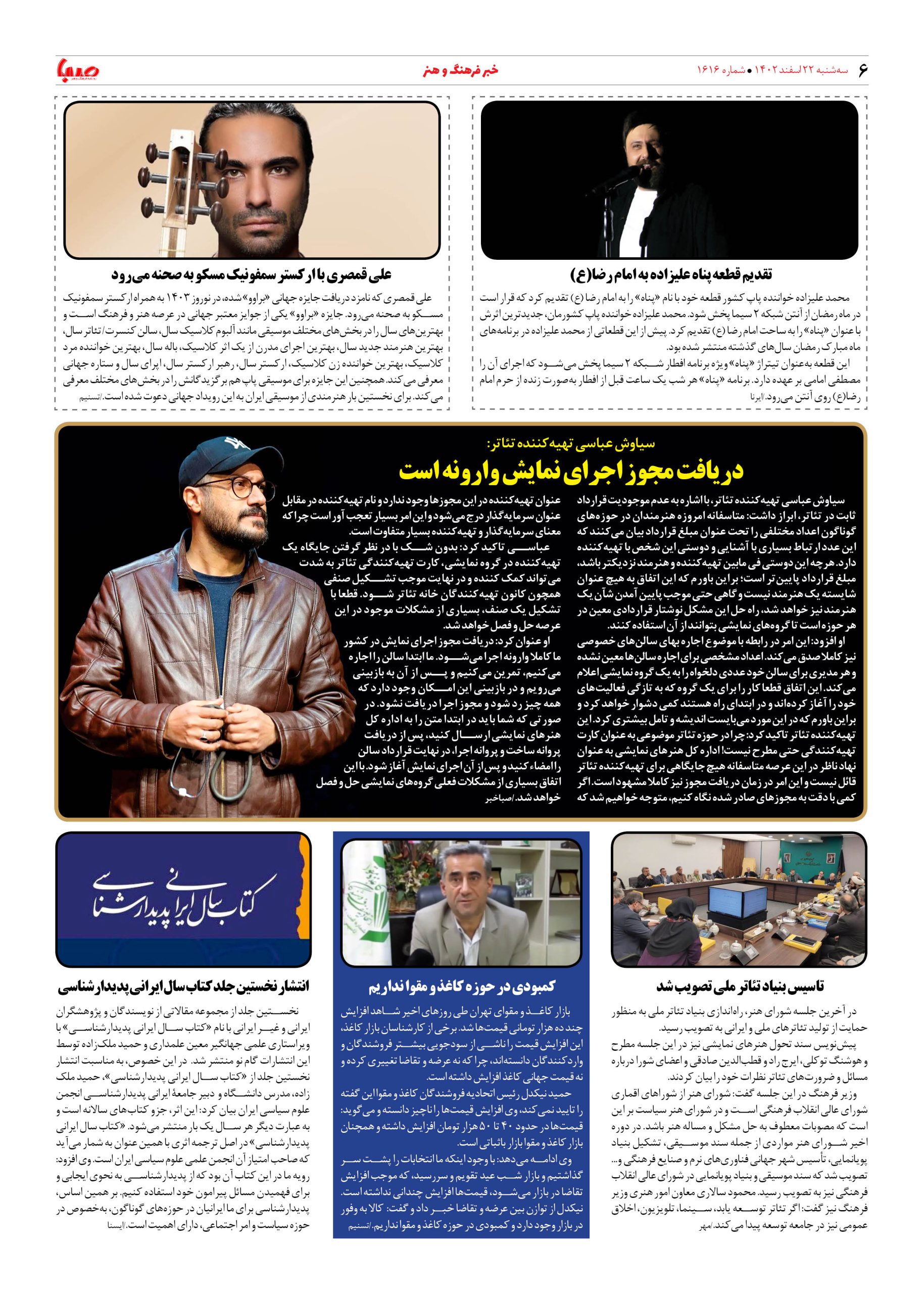 شماره۱۶۱۶| روزنامه صبا سه شنبه۲۲اسفند
