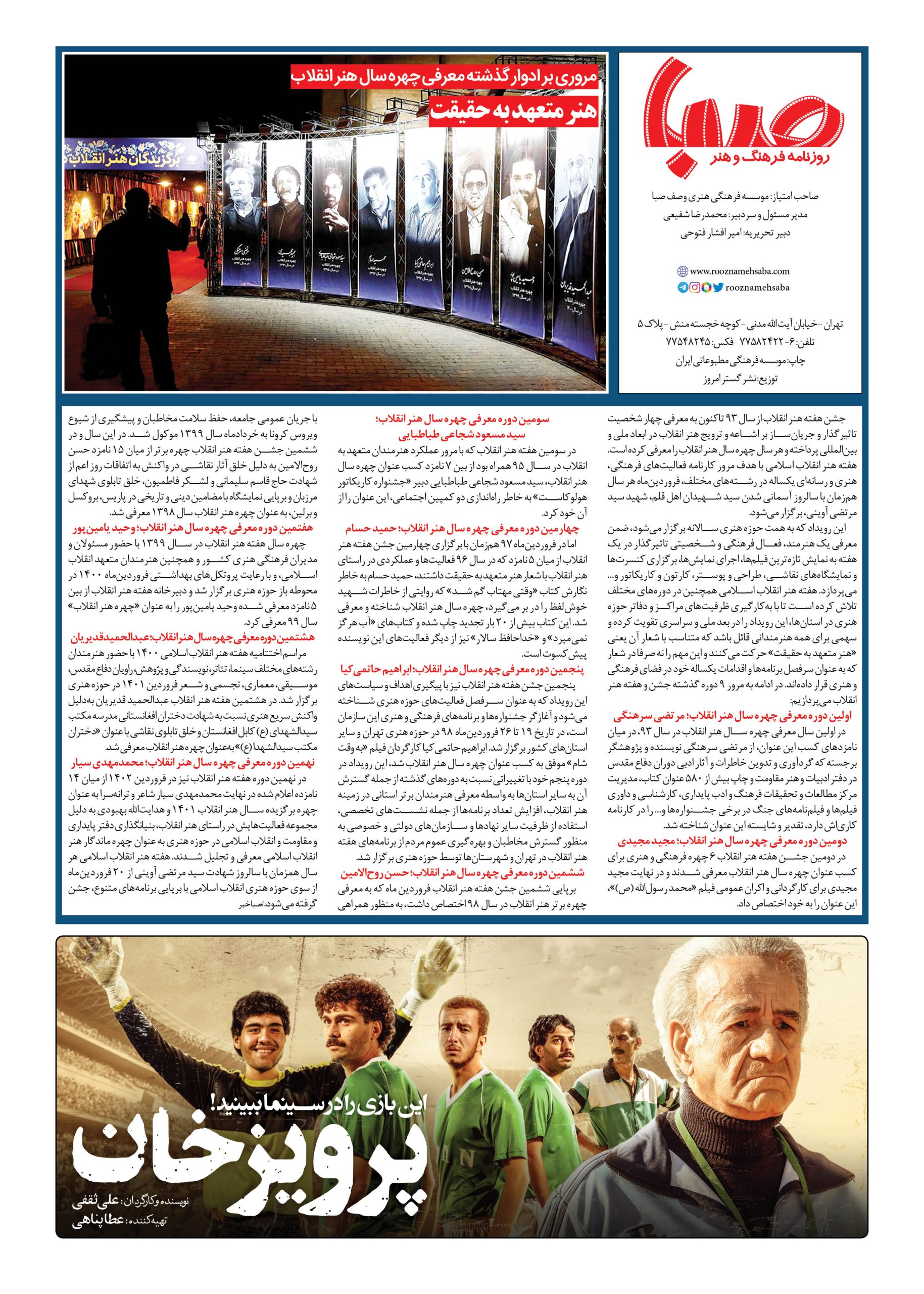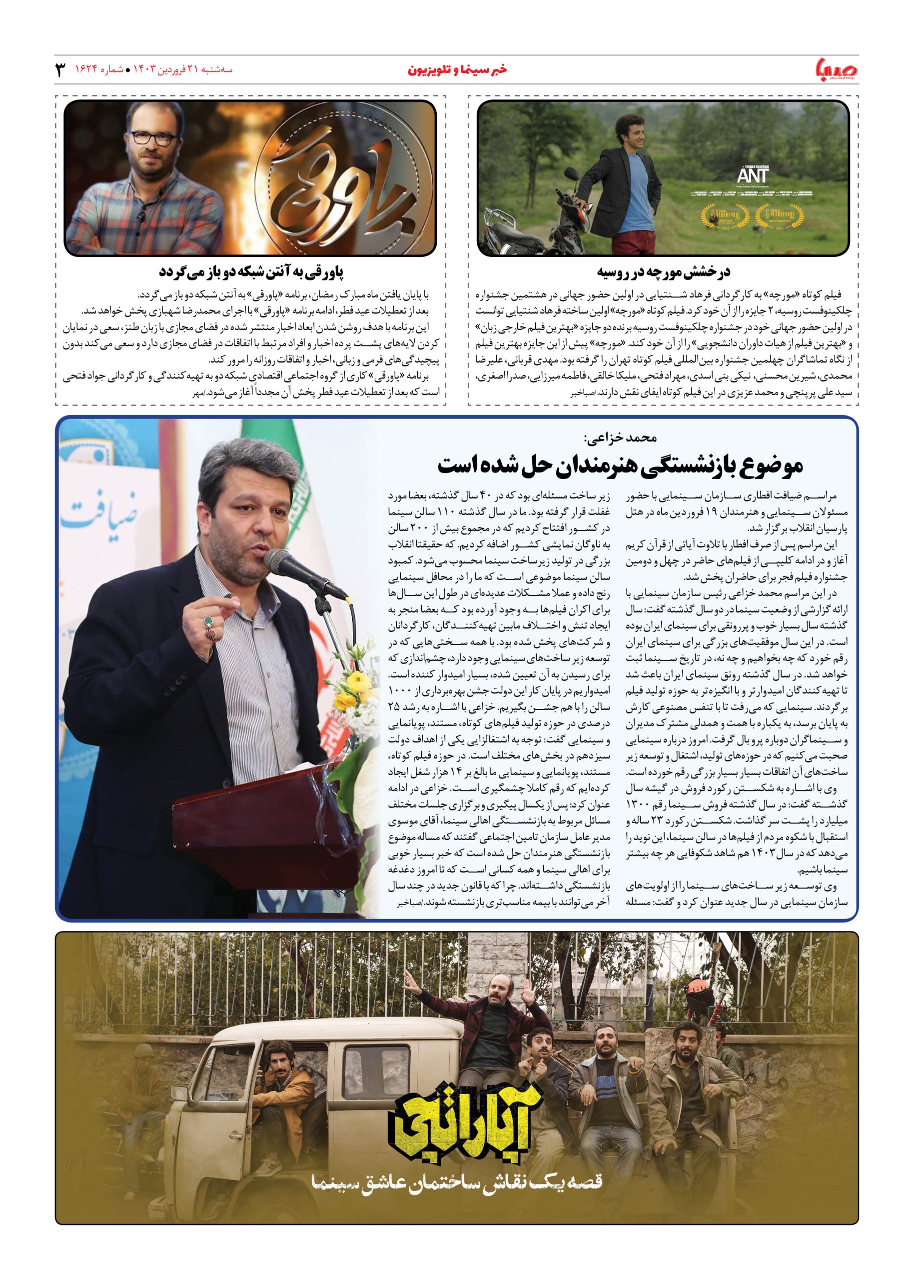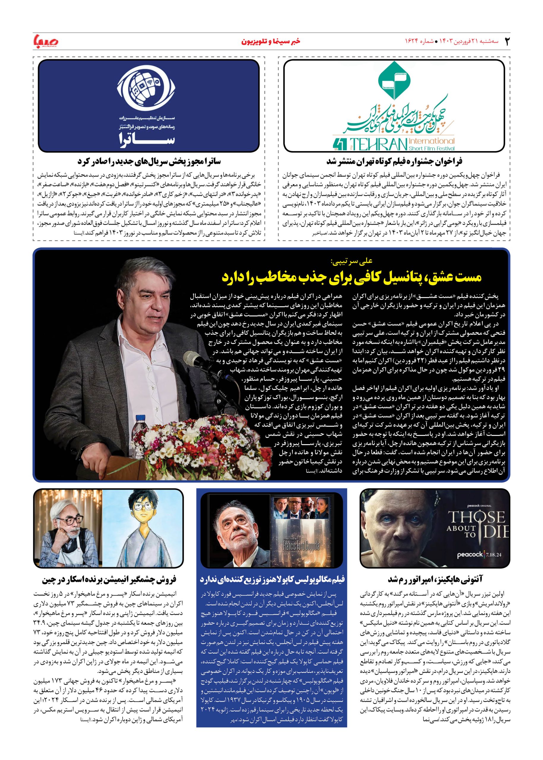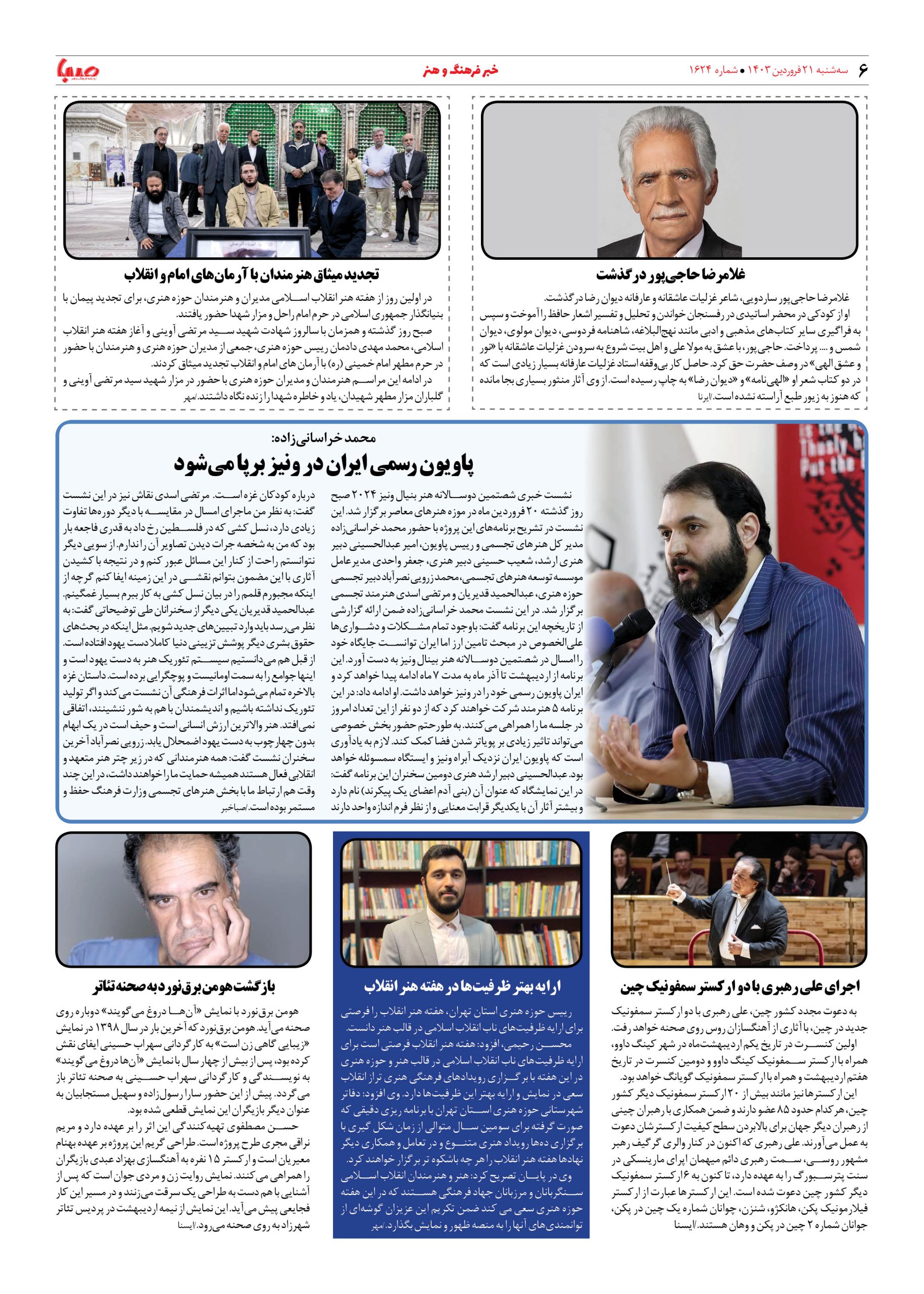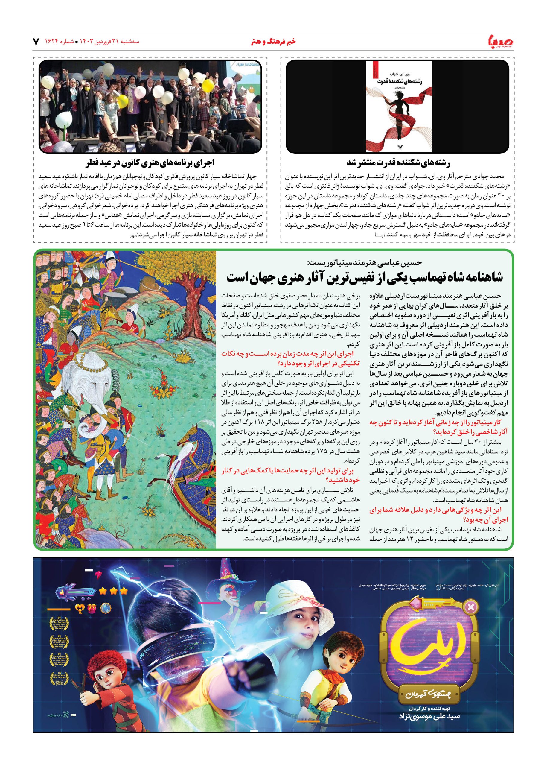 شماره ۱۶۲۴| روزنامه صبا سه شنبه ۲۱ فروردین ۱۴۰۳