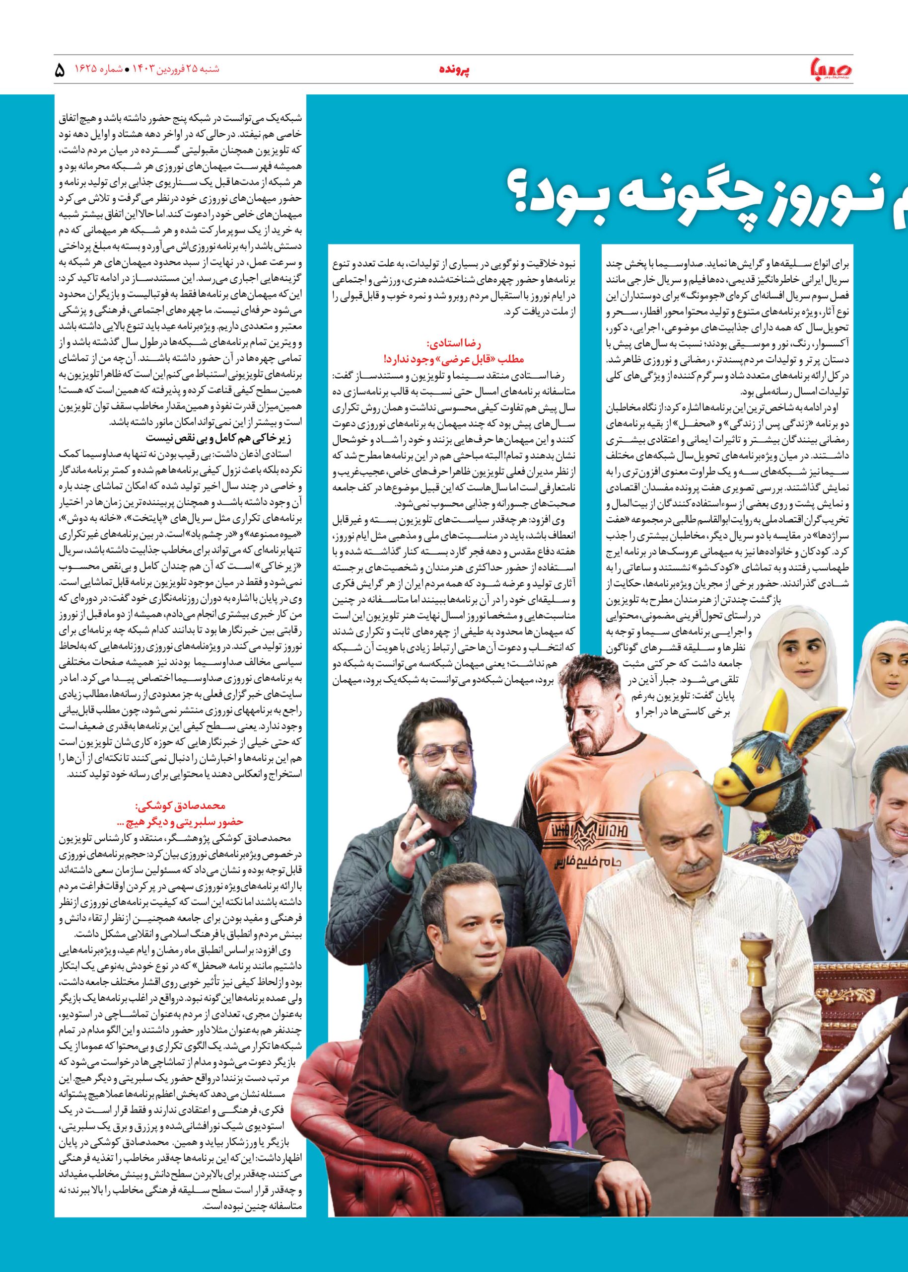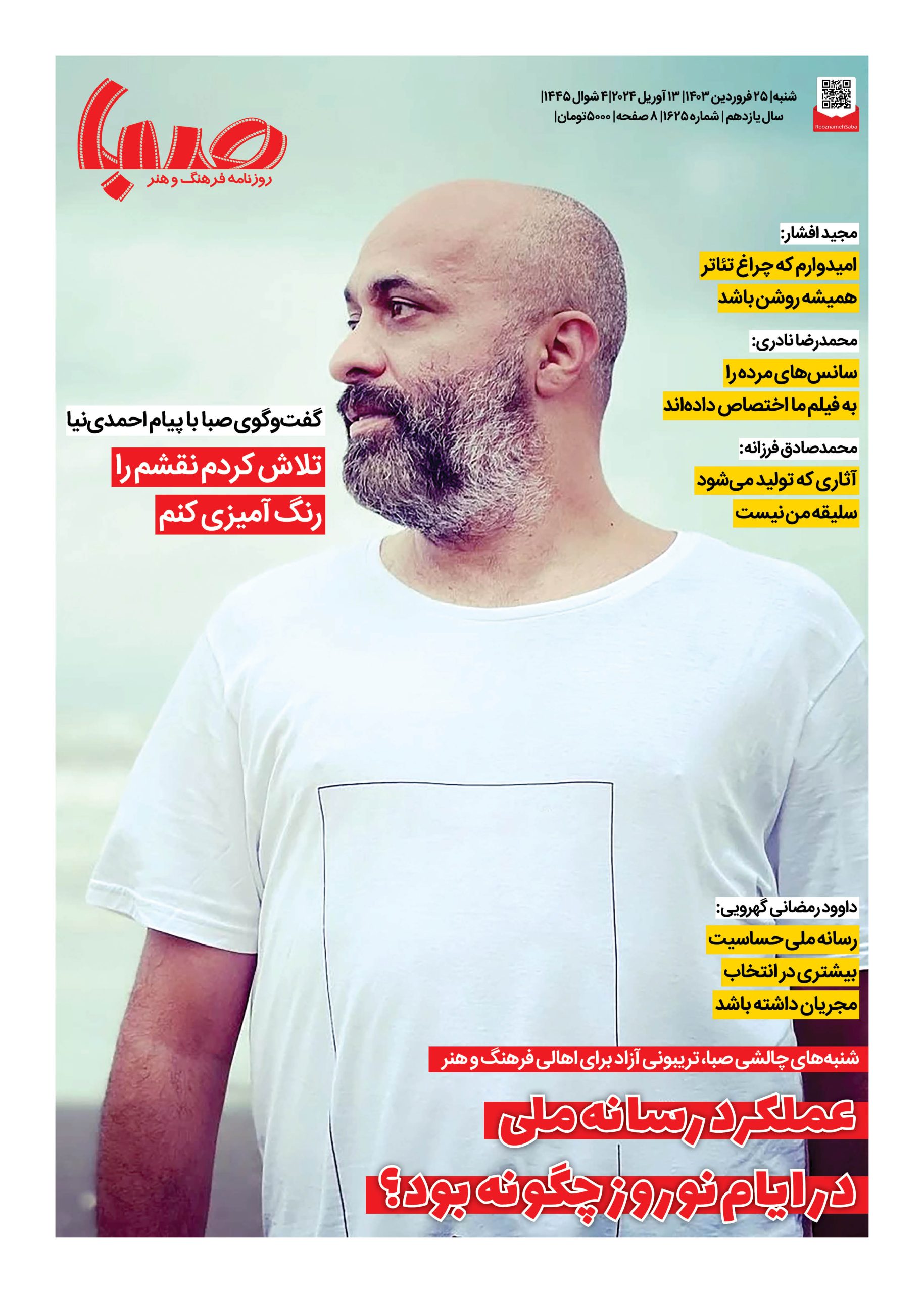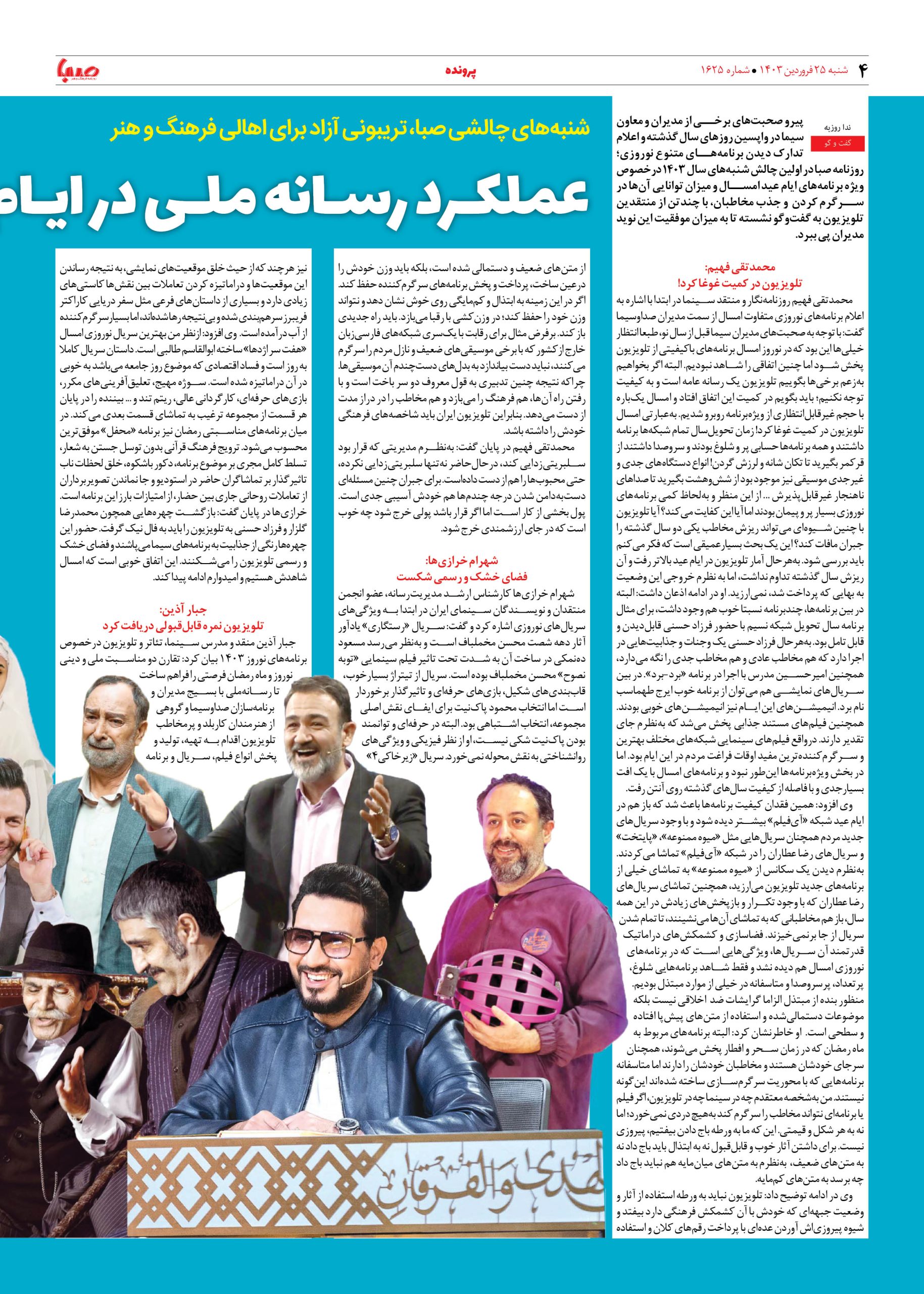 شماره ۱۶۲۵| روزنامه صبا شنبه ۲۵ فروردین ۱۴۰۳