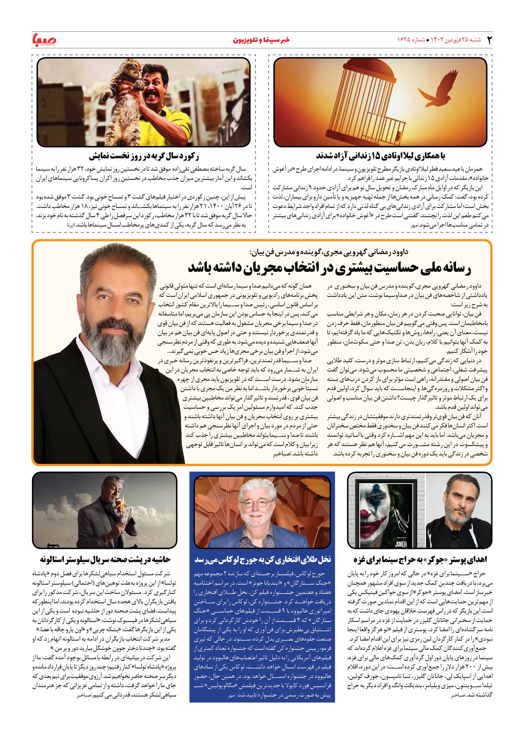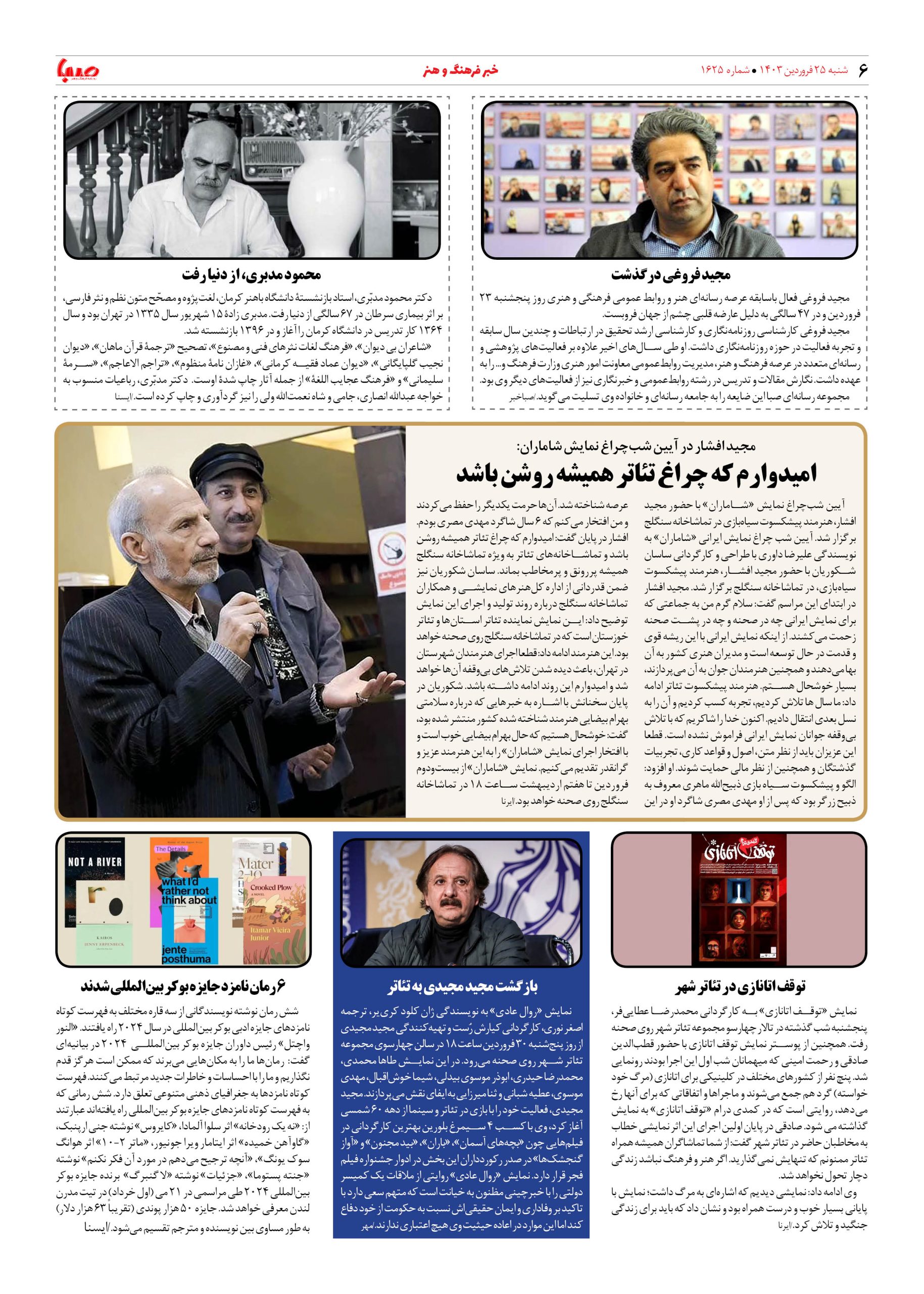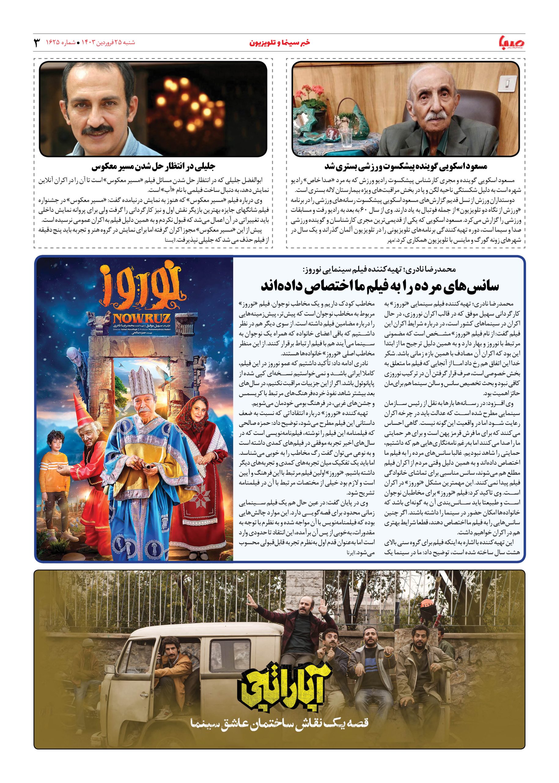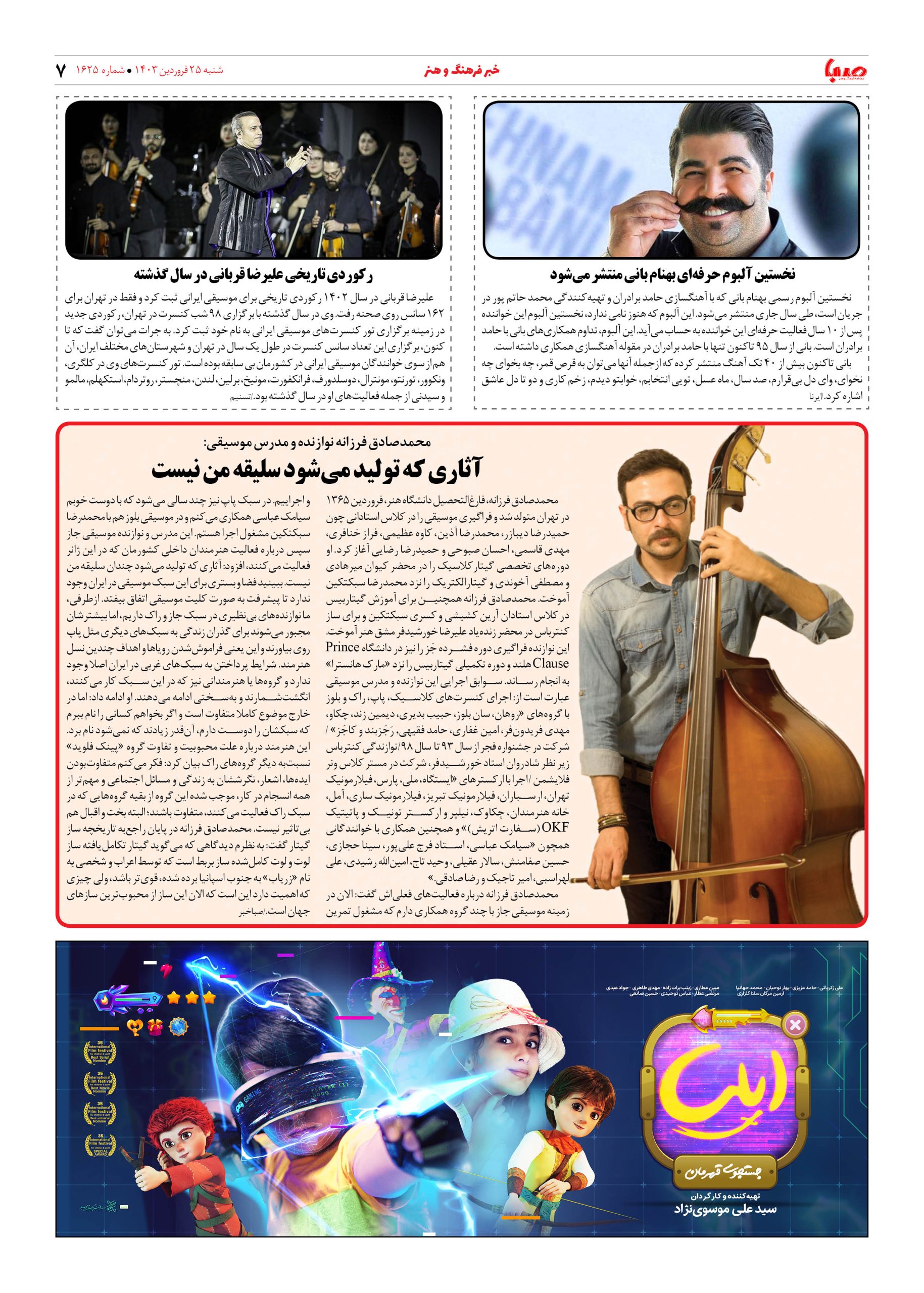 شماره ۱۶۲۵| روزنامه صبا شنبه ۲۵ فروردین ۱۴۰۳