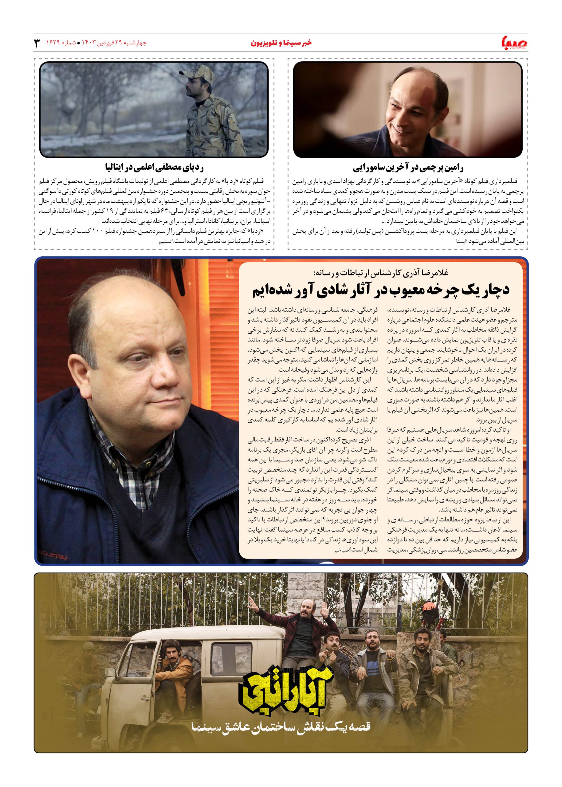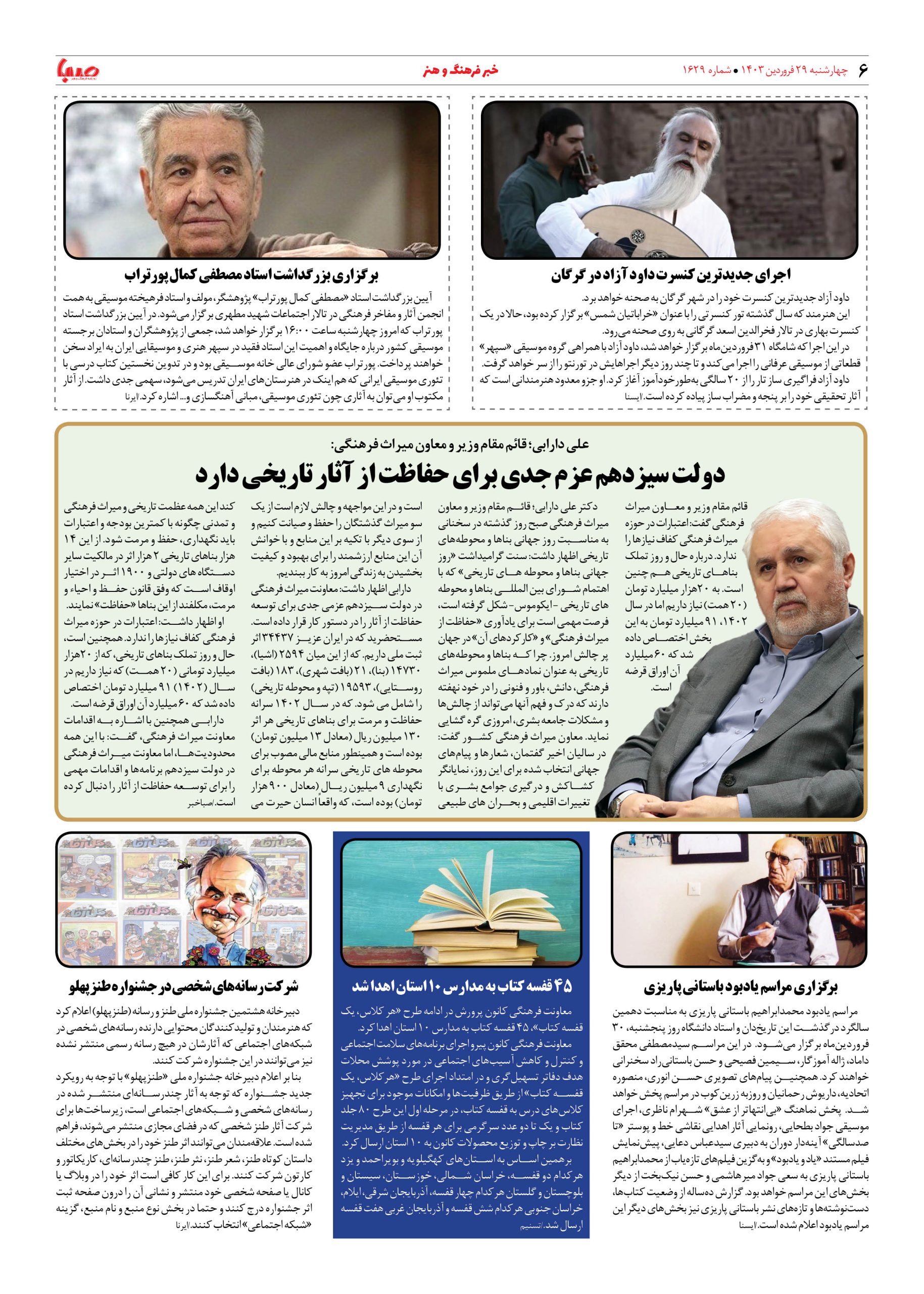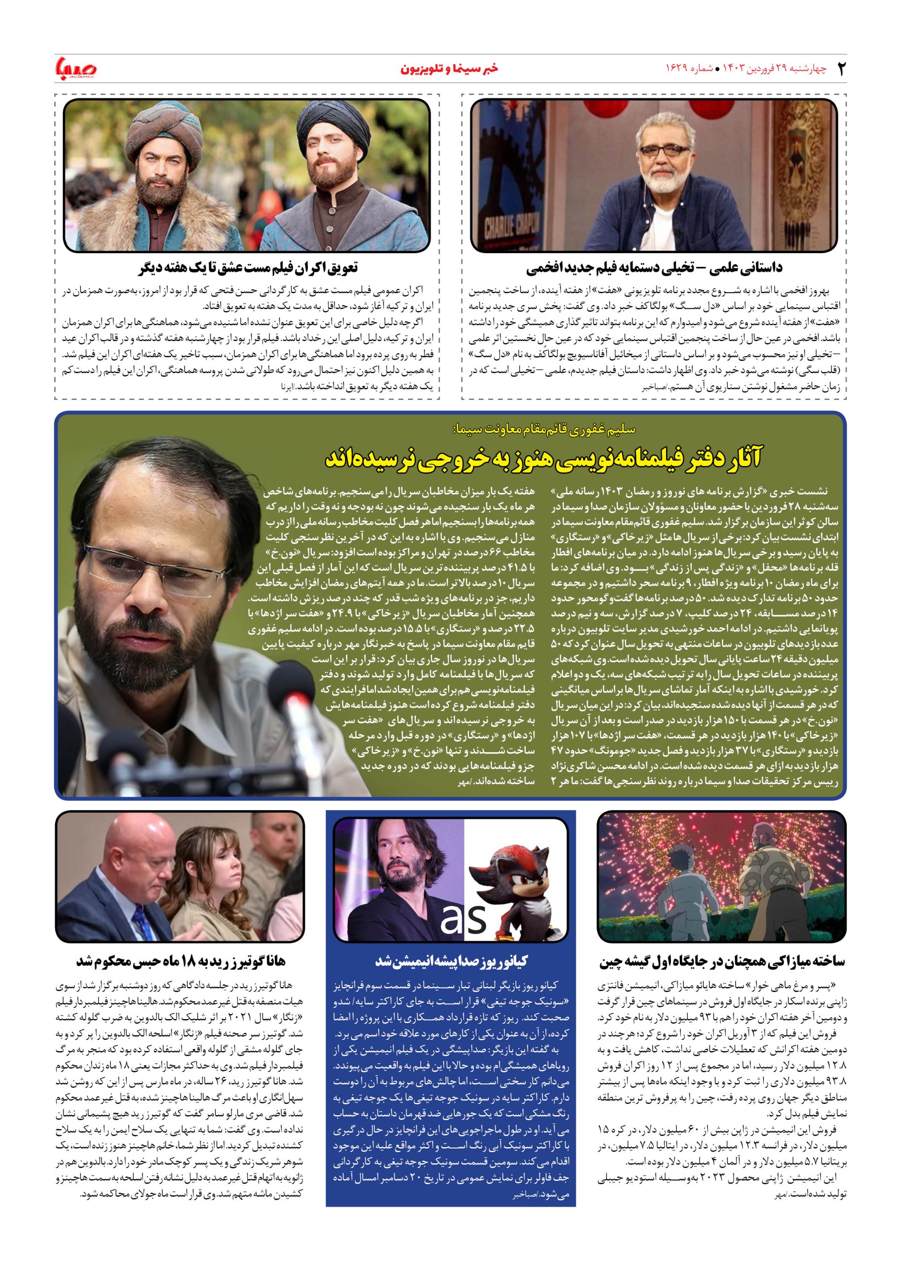 شماره ۱۶۲۹| روزنامه صبا چهارشنبه ۲۹ فروردین ۱۴۰۳