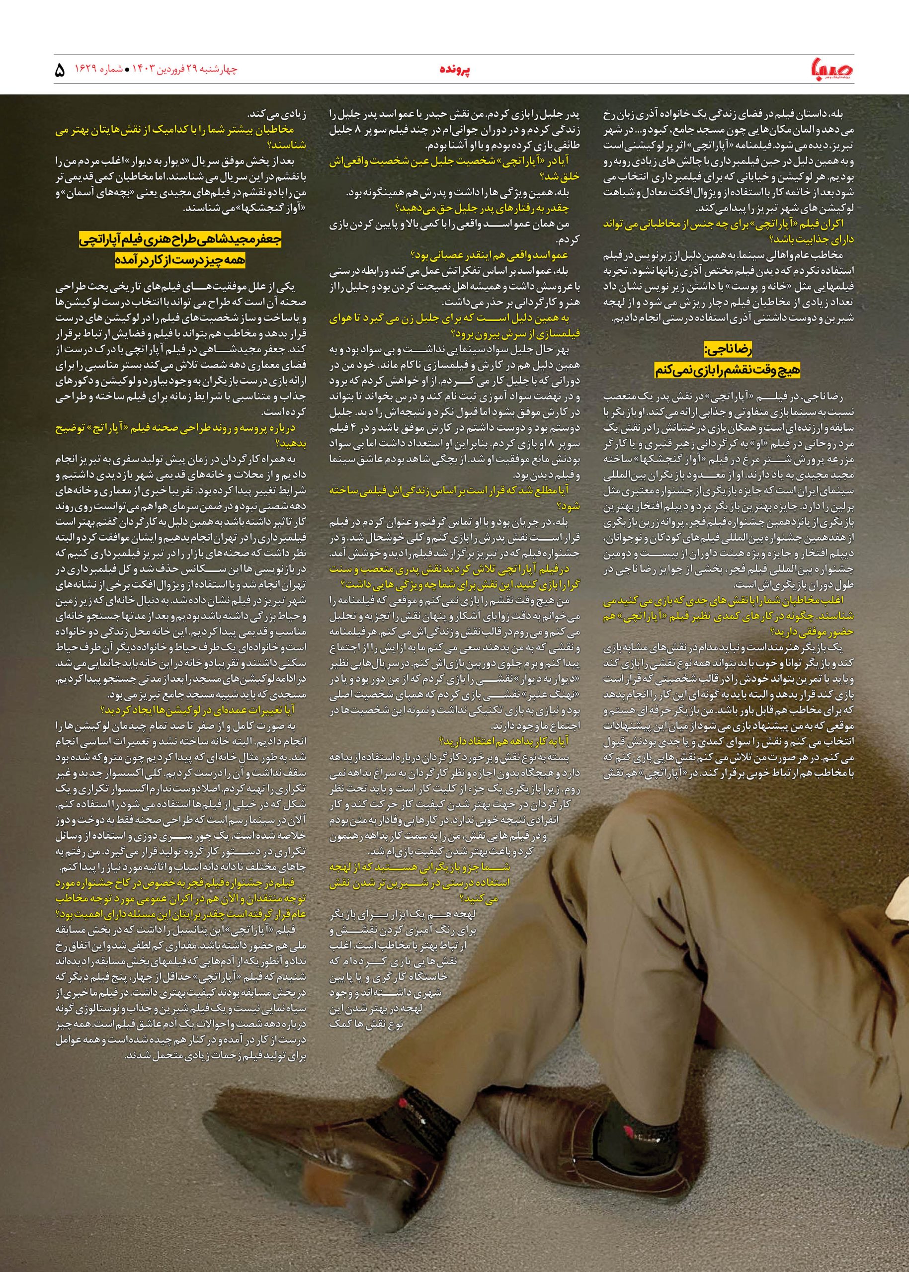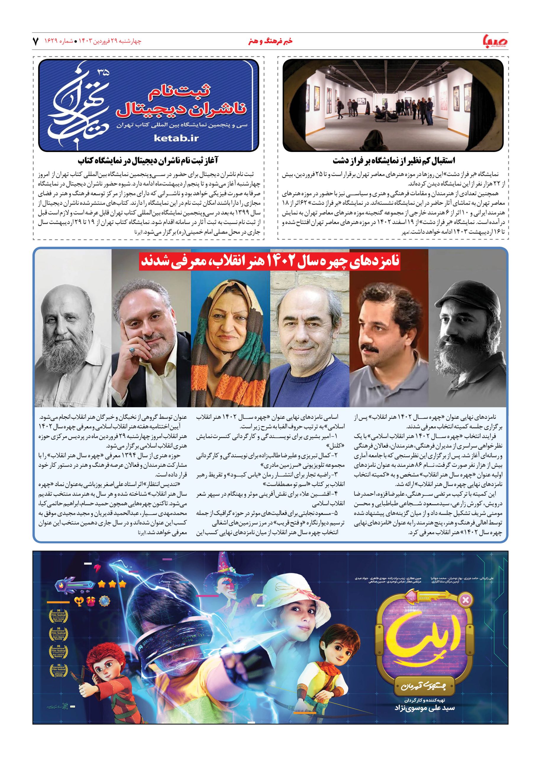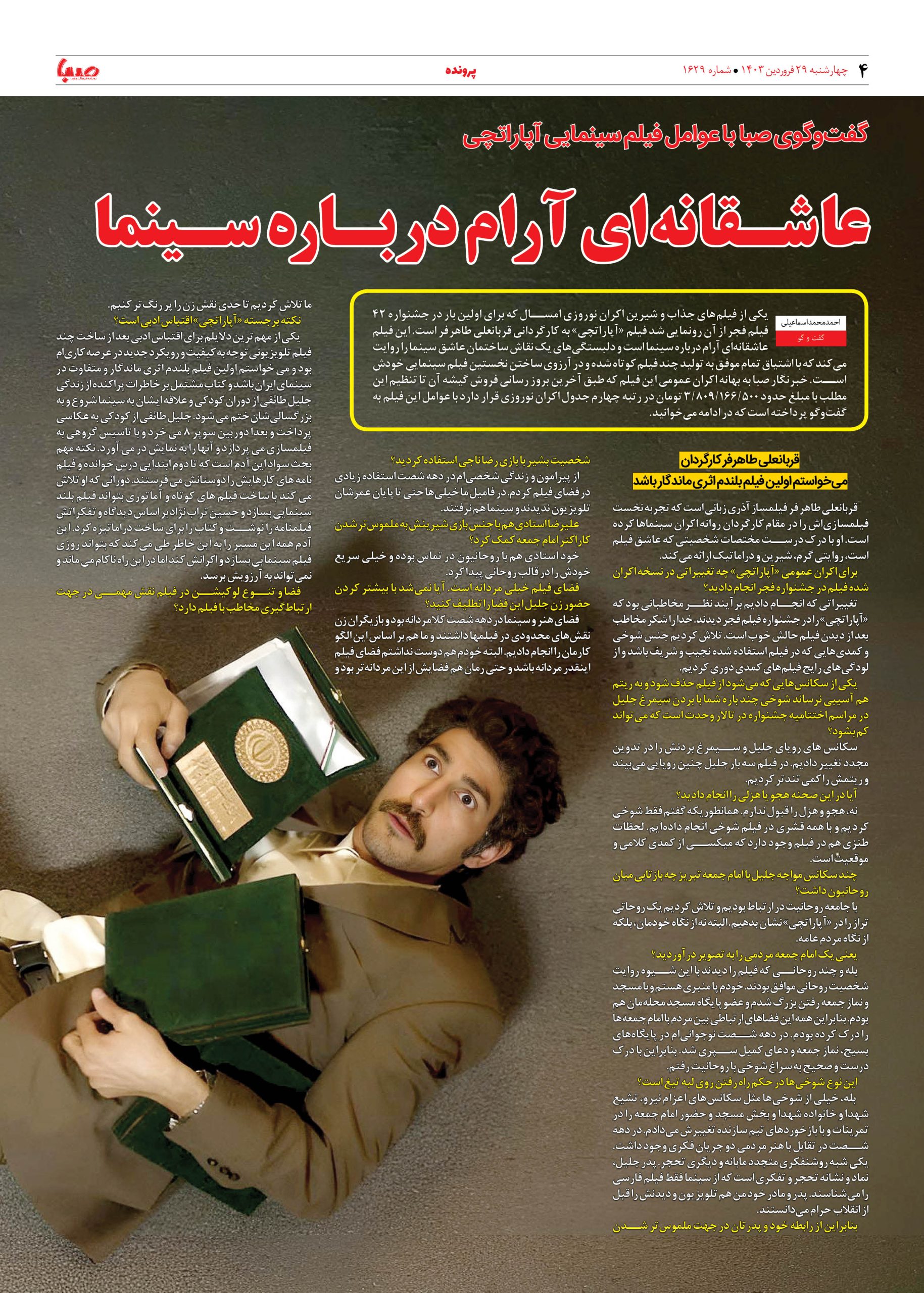 شماره ۱۶۲۹| روزنامه صبا چهارشنبه ۲۹ فروردین ۱۴۰۳