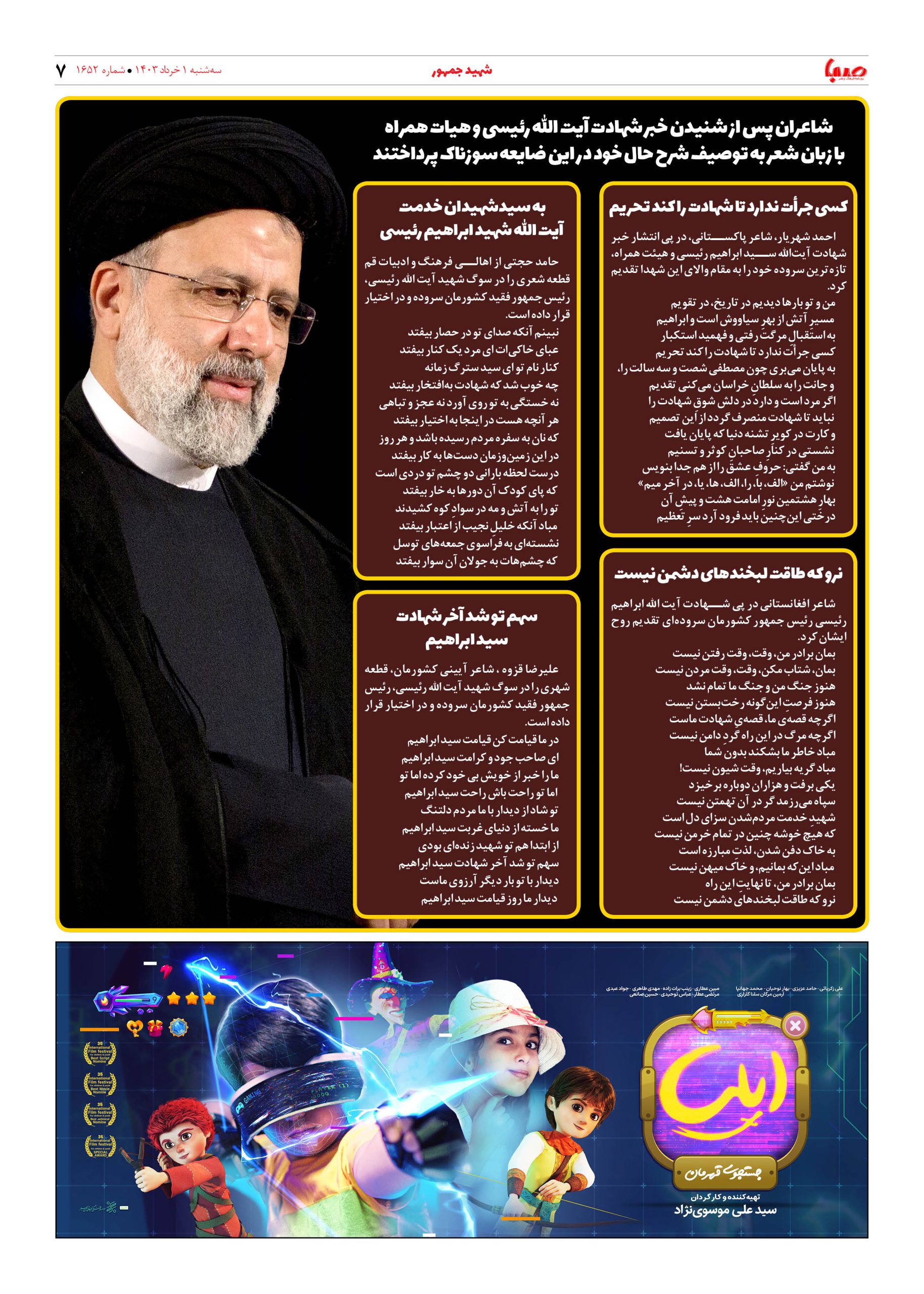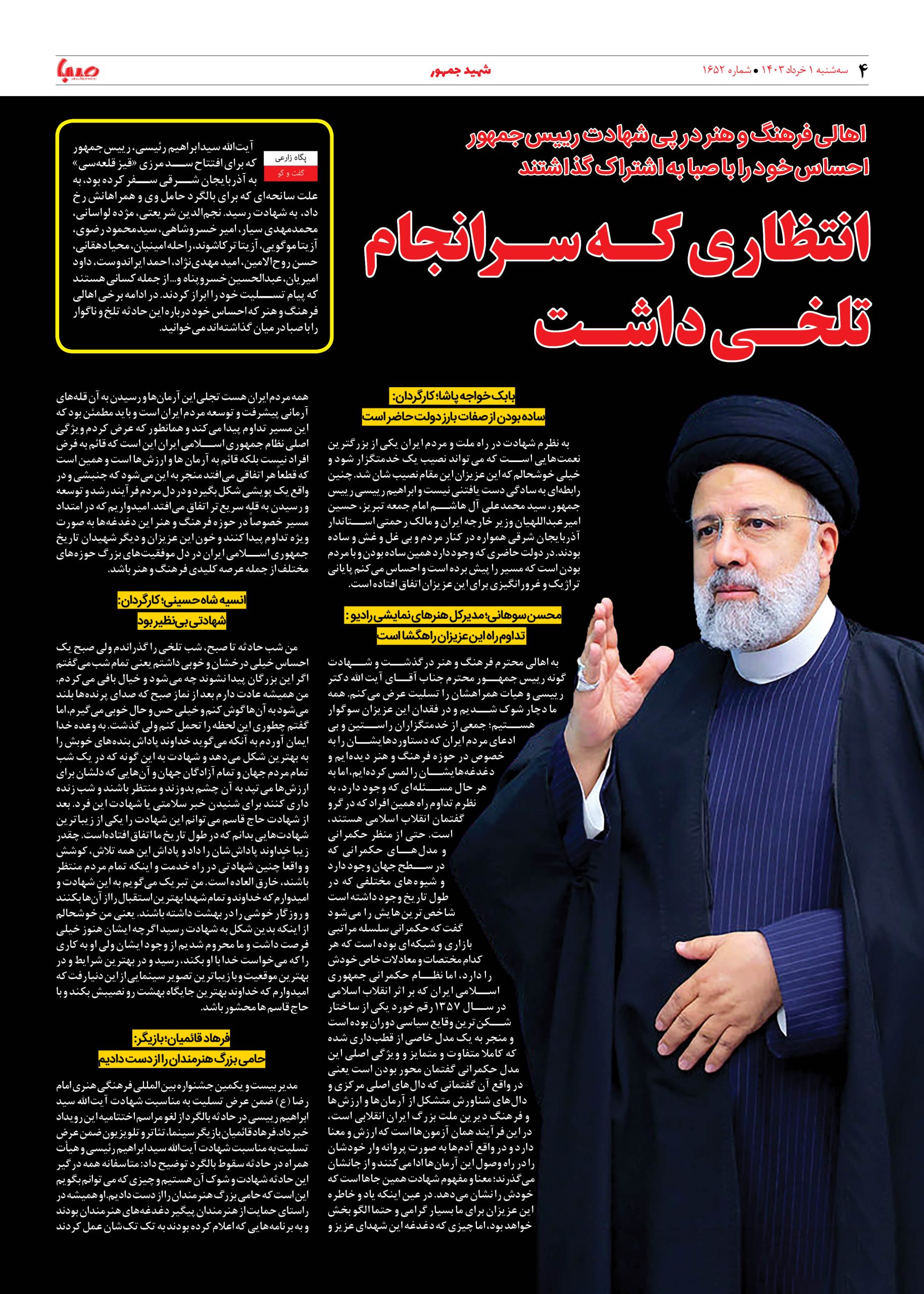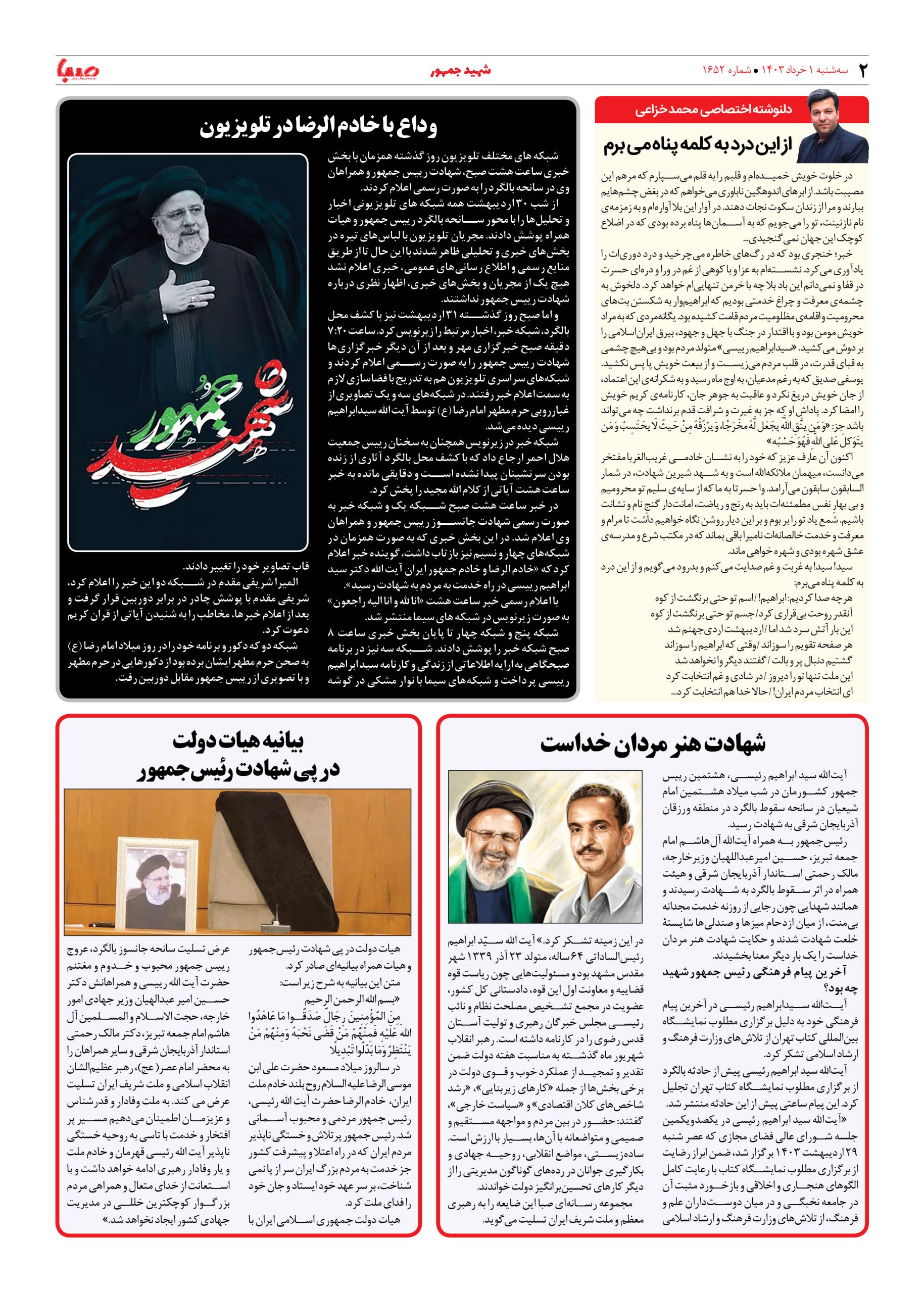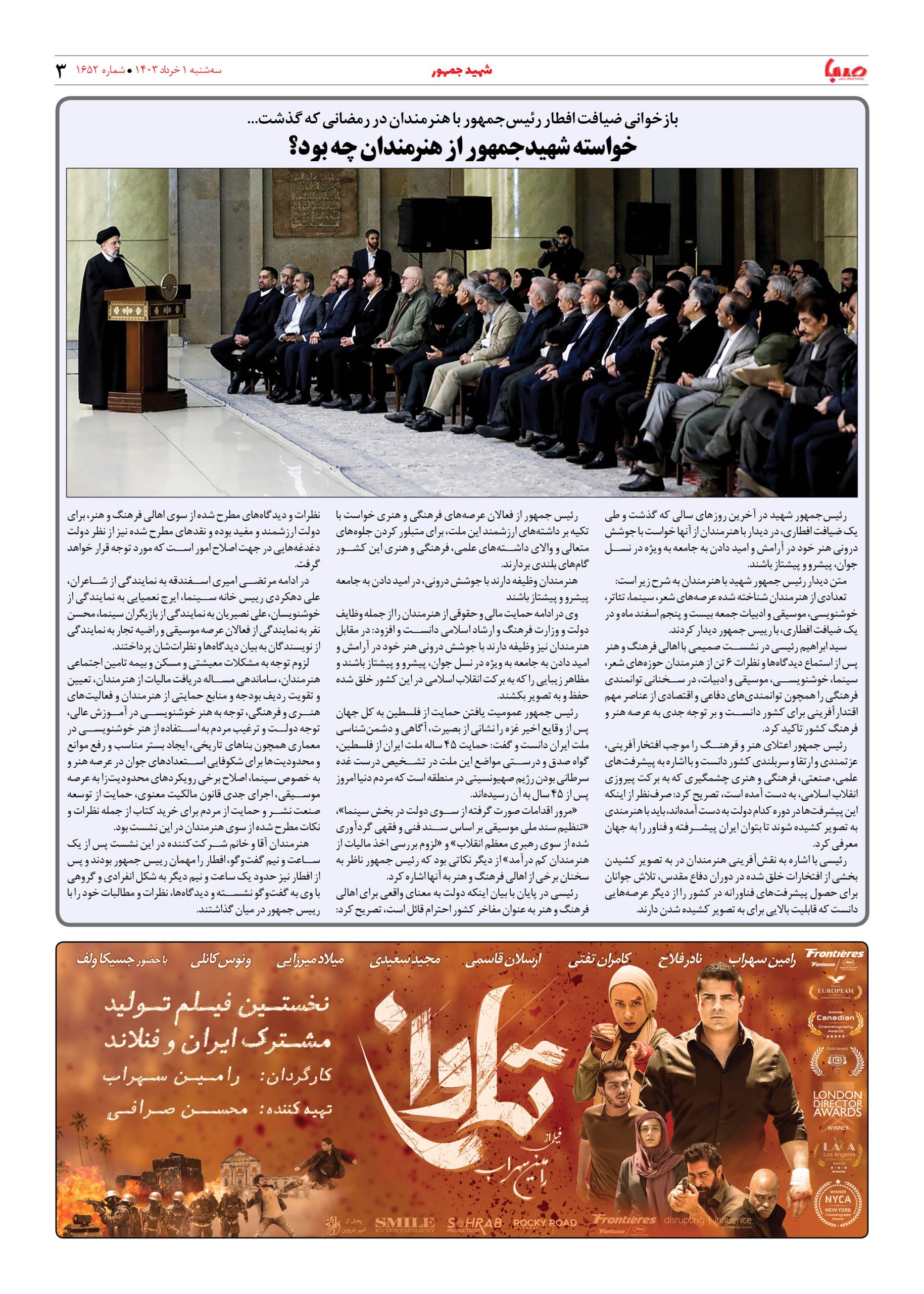 شماره ۱۶۵۲| روزنامه صبا سه شنبه ۱ خرداد ۱۴۰۳