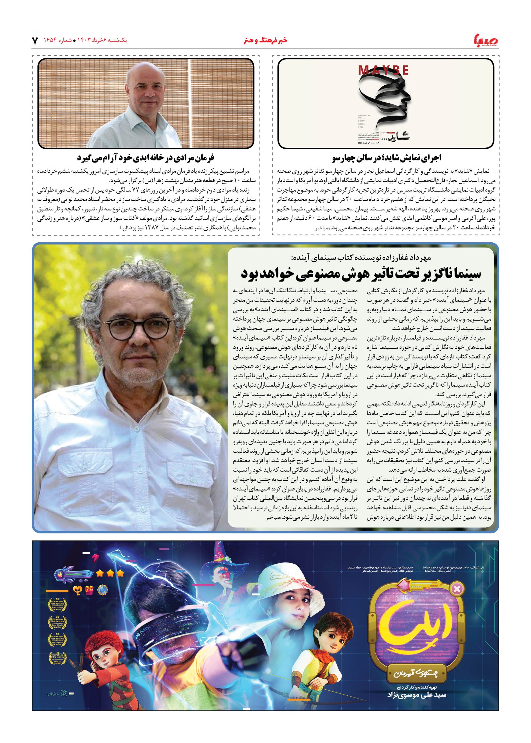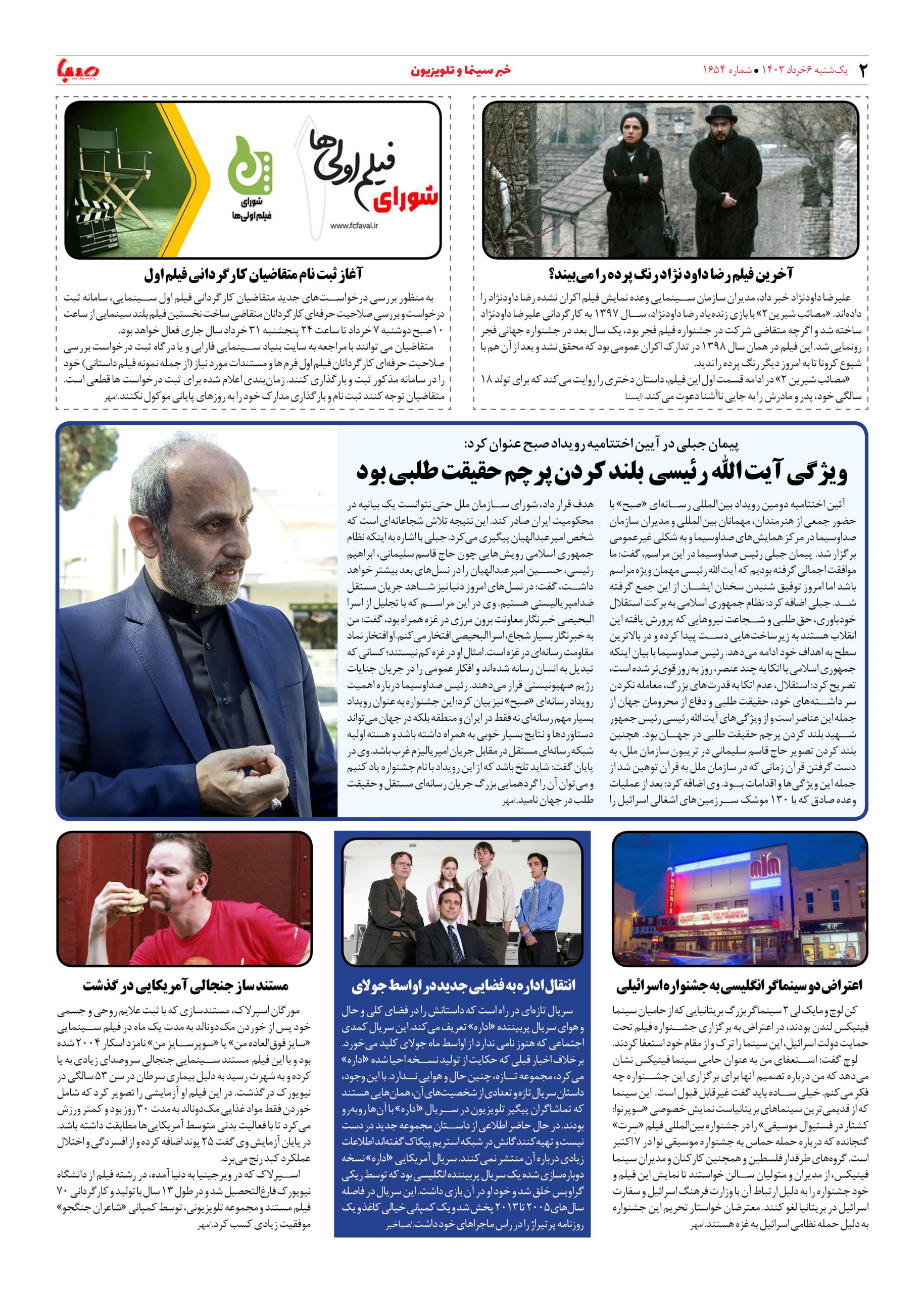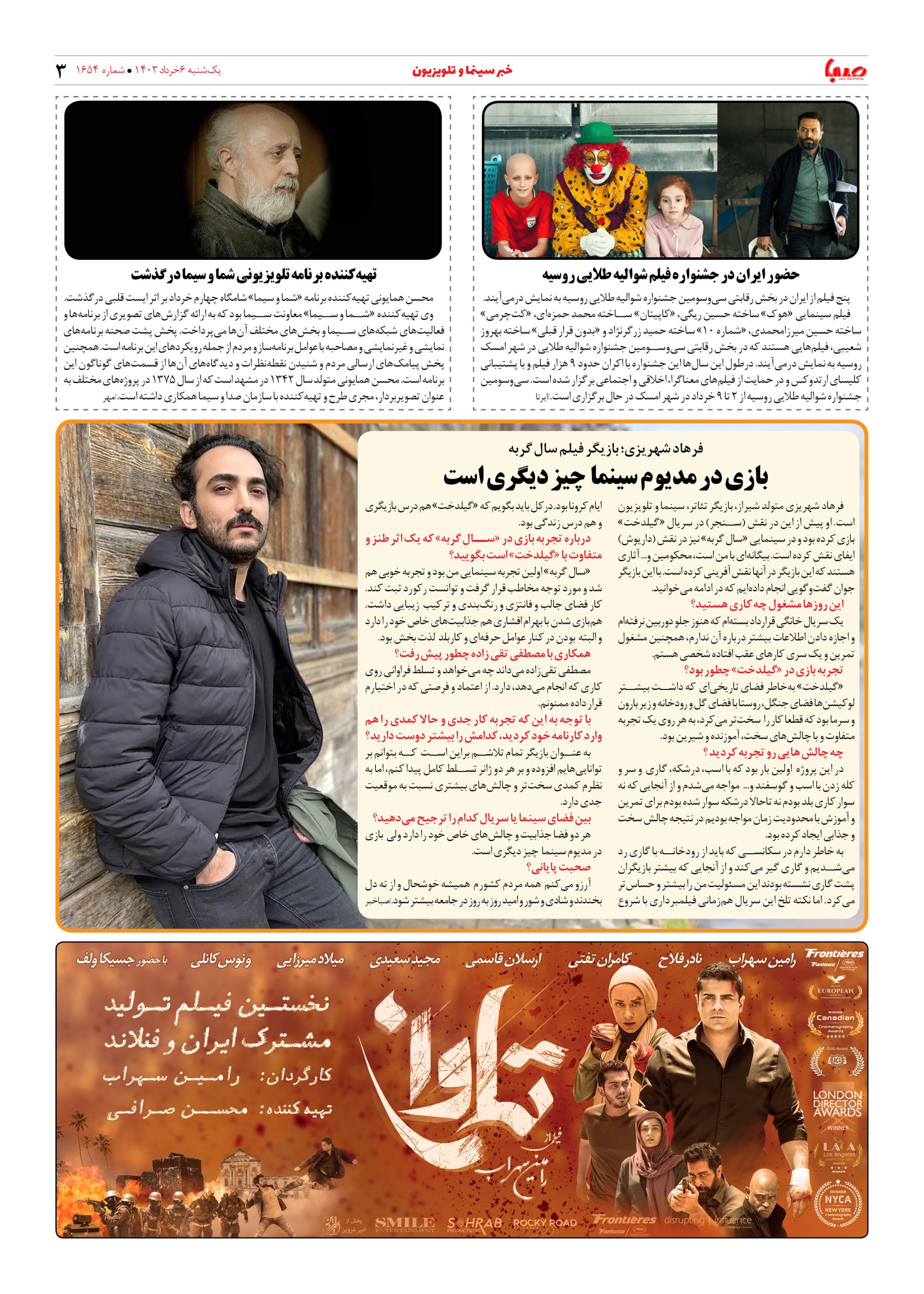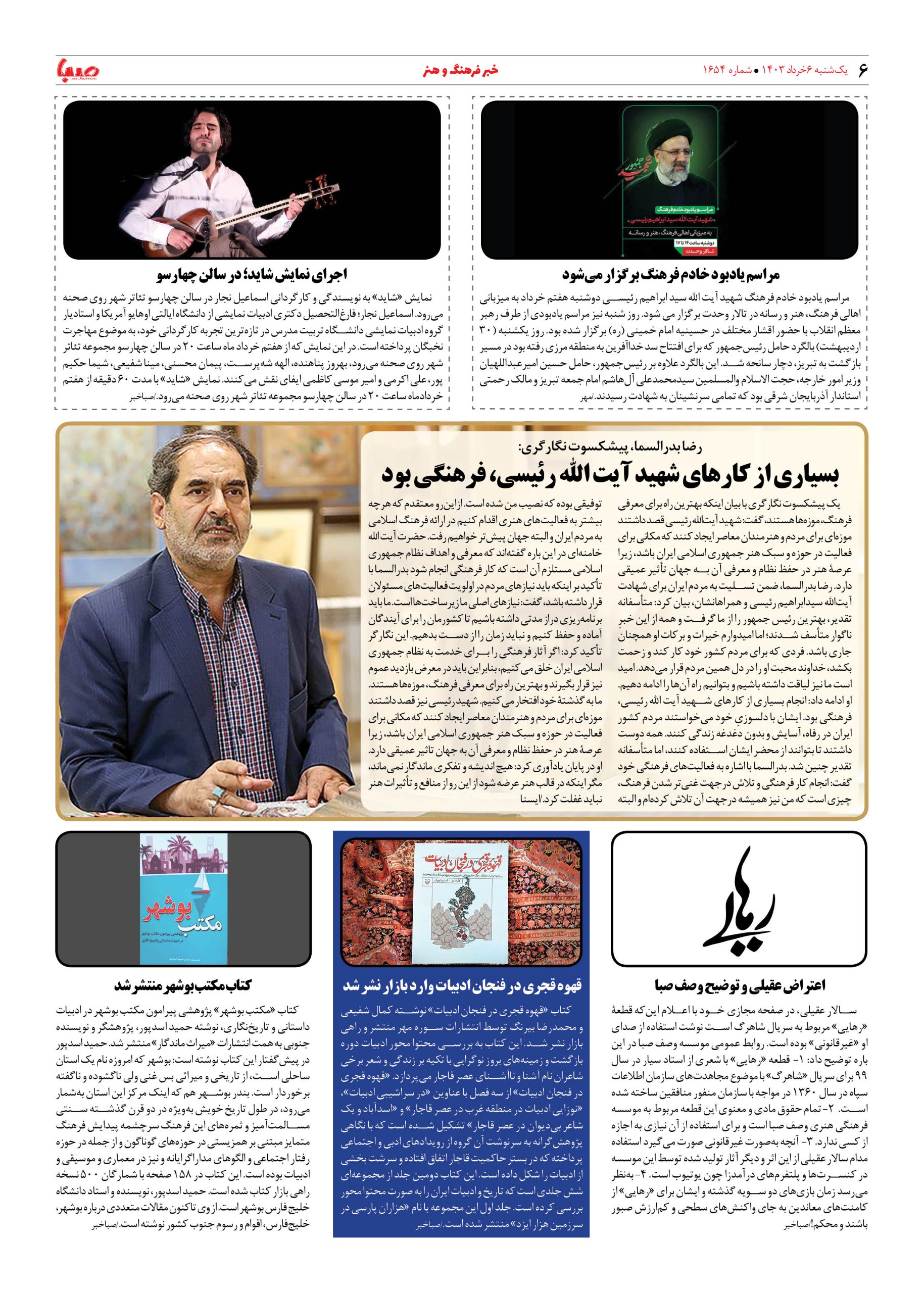 شماره ۱۶۵۴| روزنامه صبا یکشنبه ۶ خرداد ۱۴۰۳