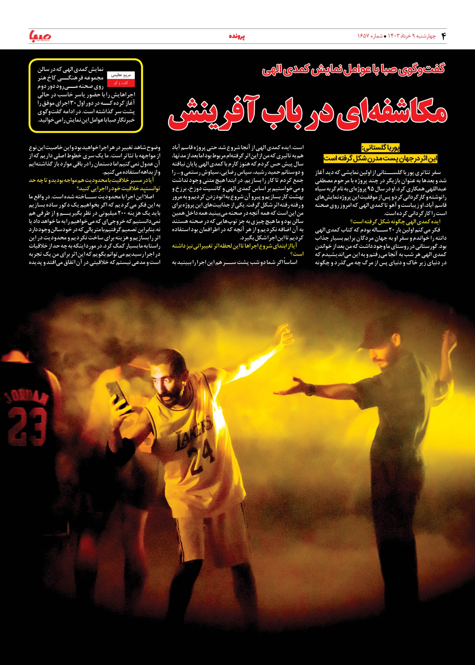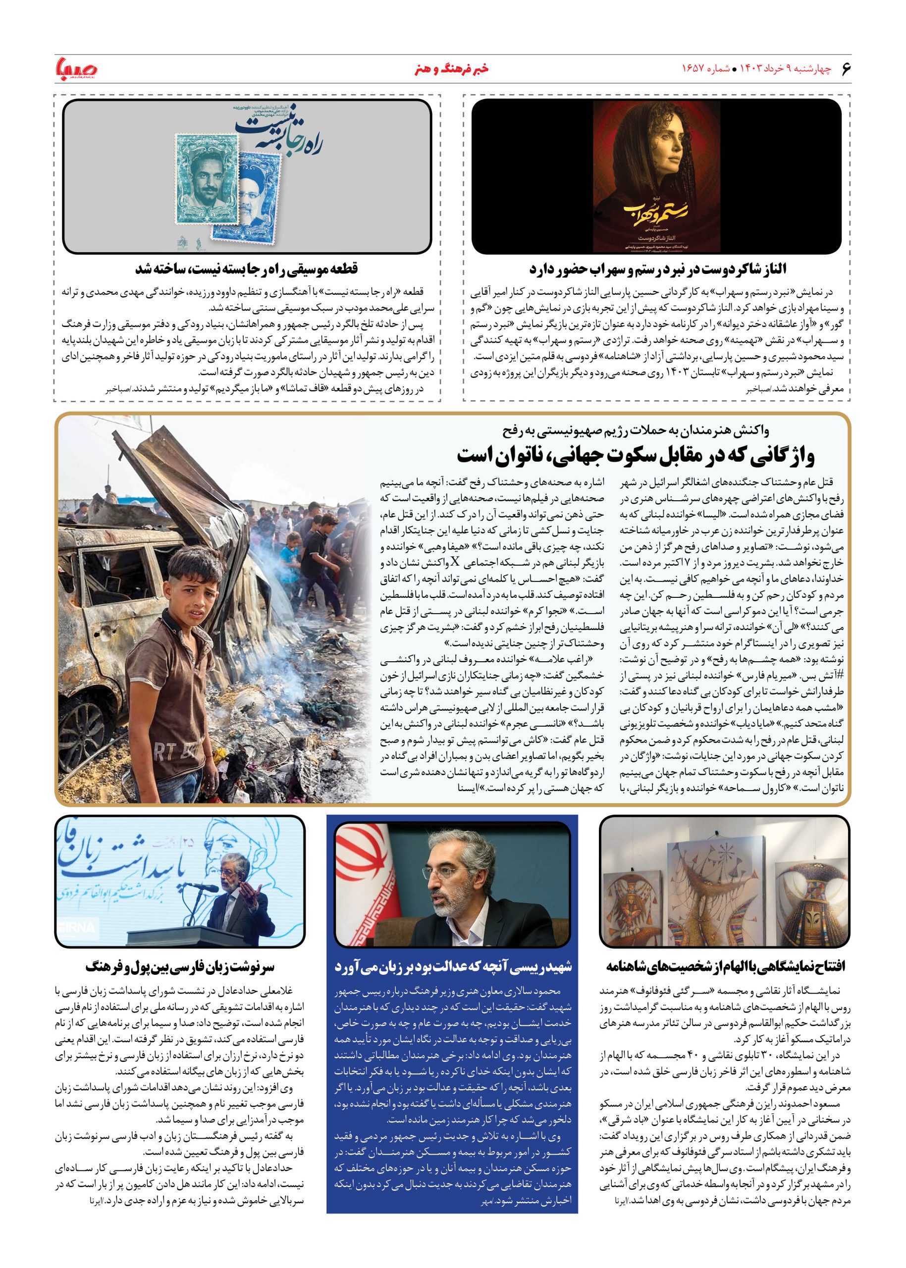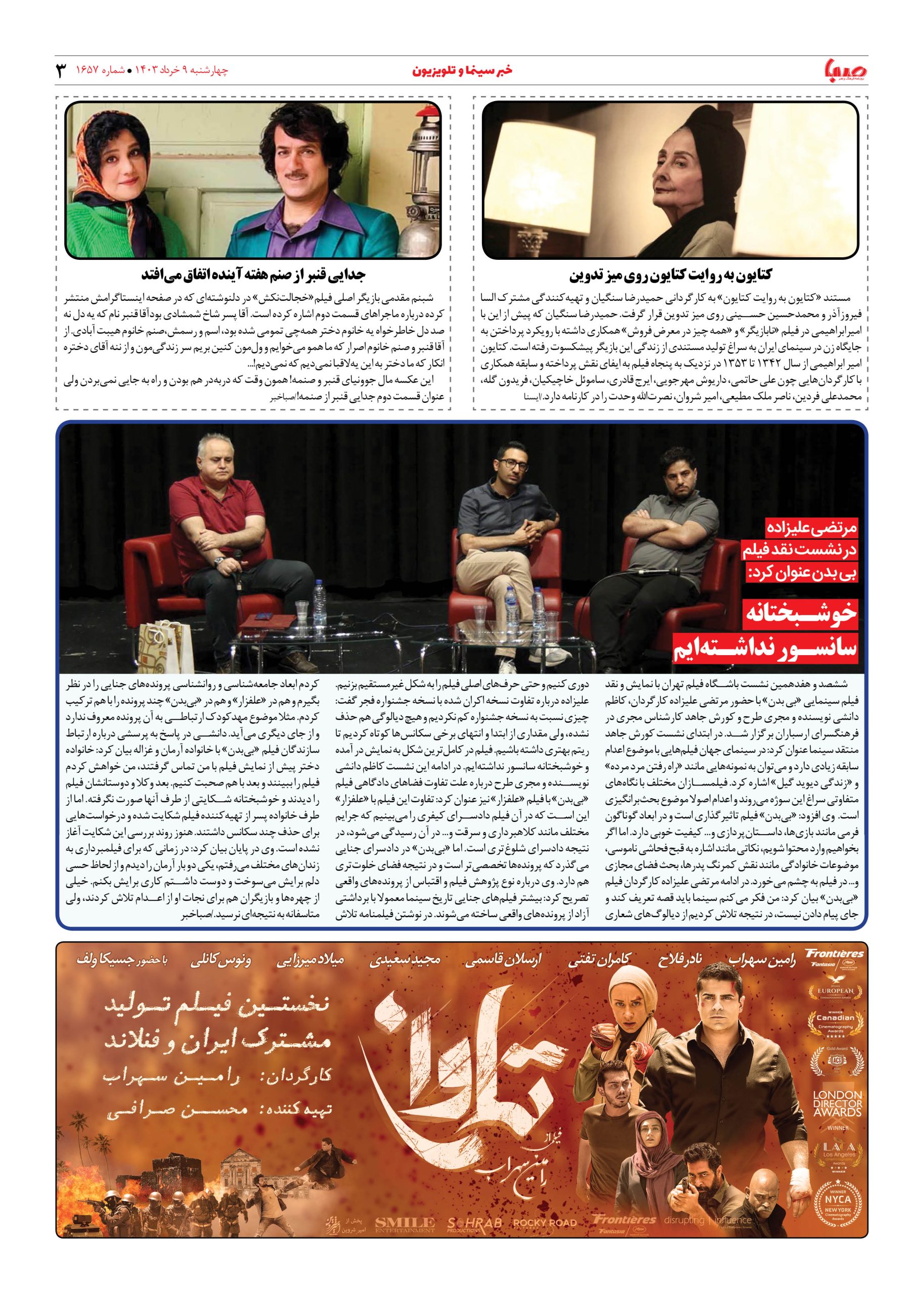 شماره ۱۶۵۷| روزنامه صبا چهارشنبه ۹ خرداد ۱۴۰۳