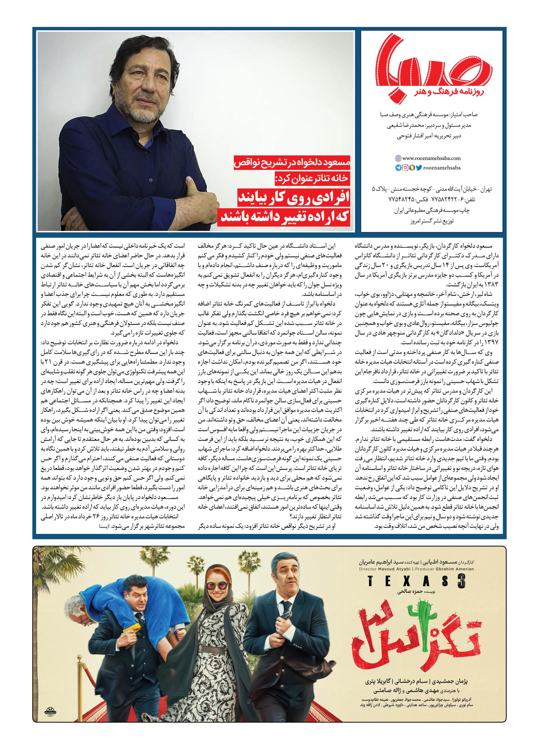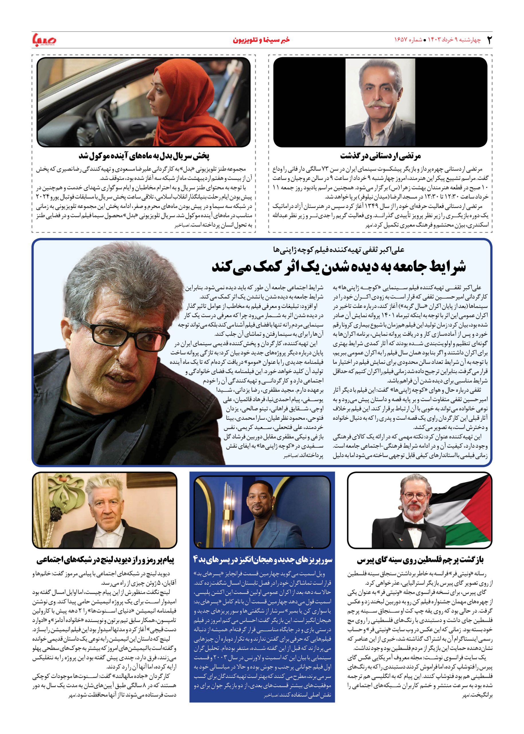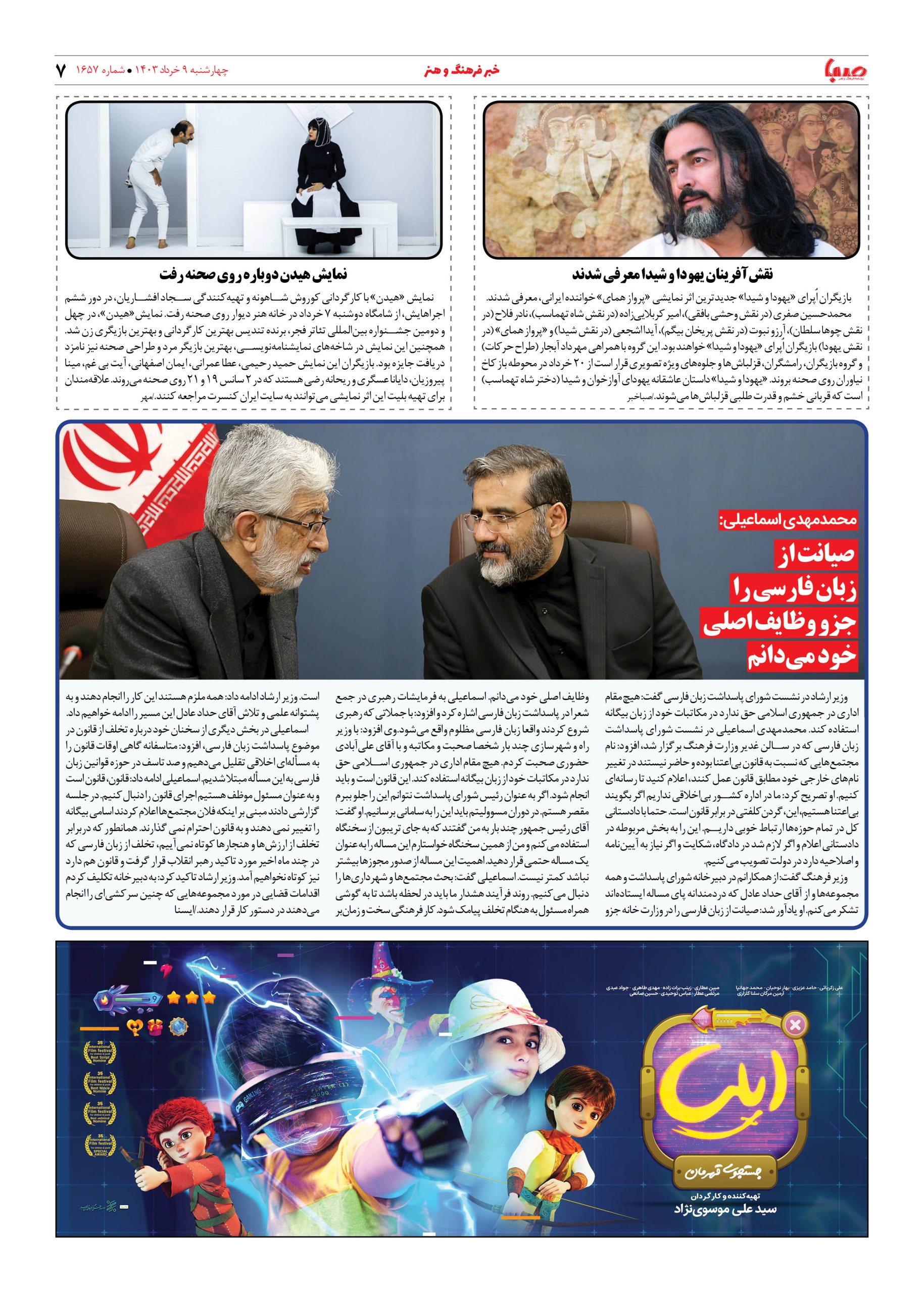شماره ۱۶۵۷| روزنامه صبا چهارشنبه ۹ خرداد ۱۴۰۳