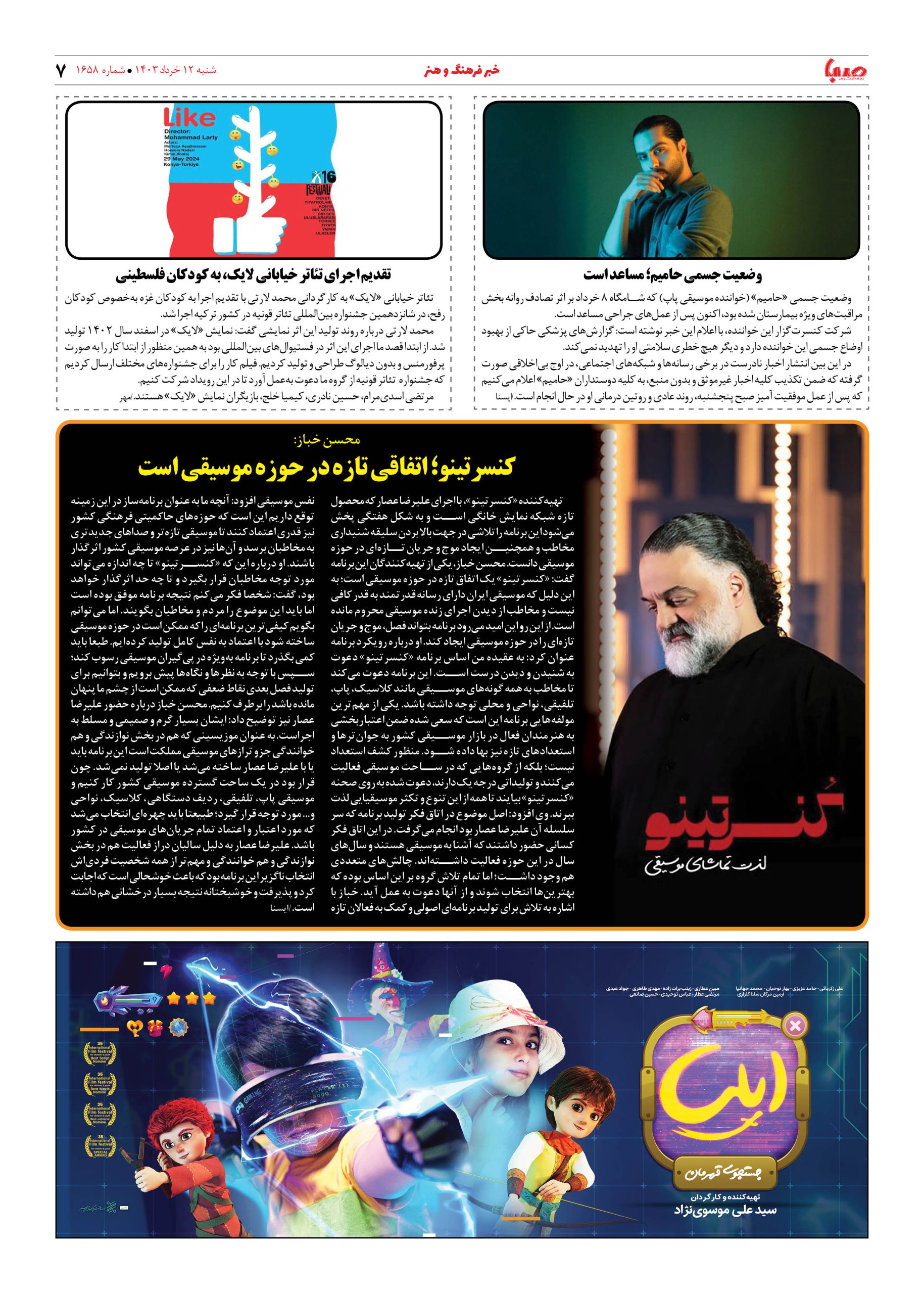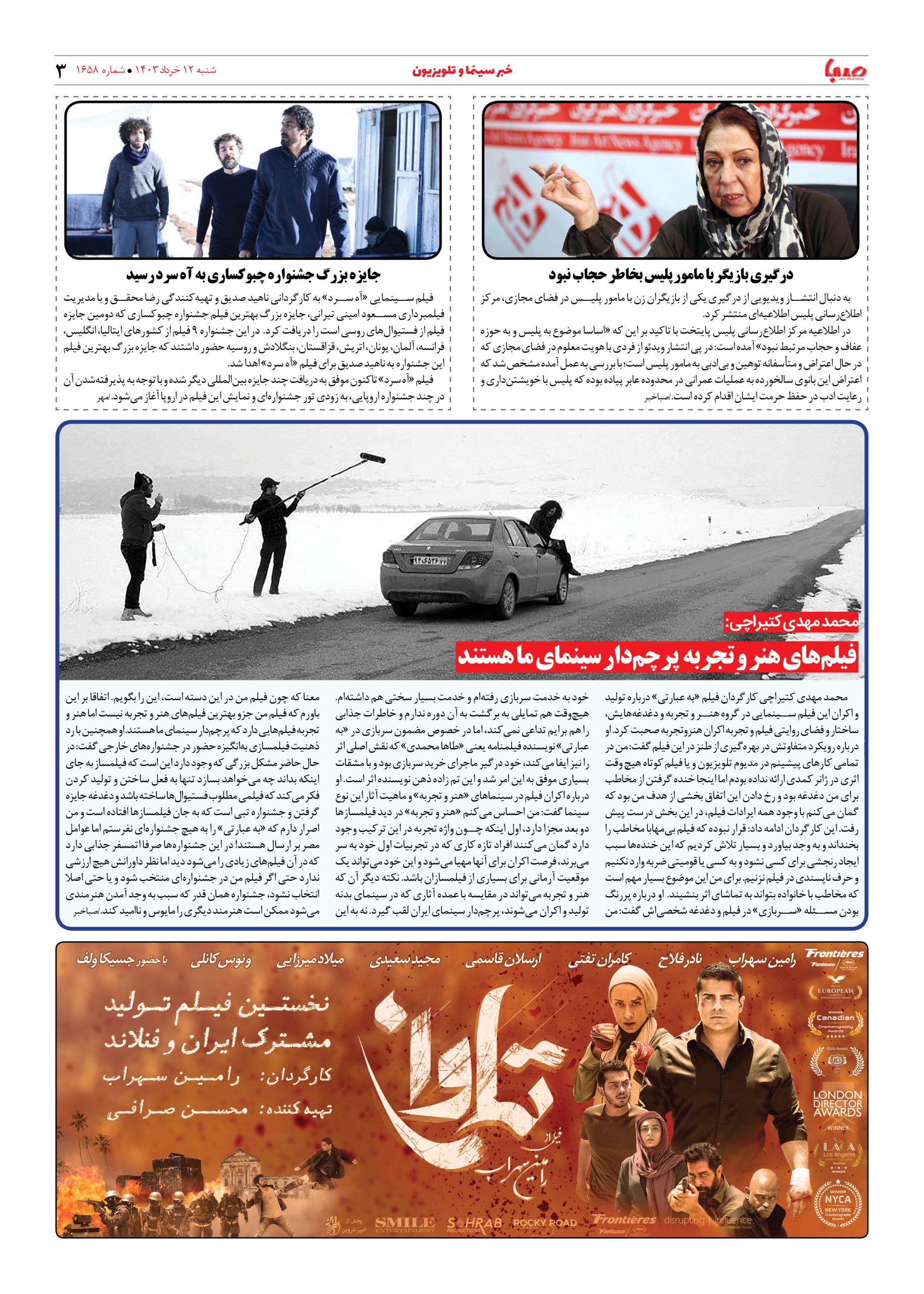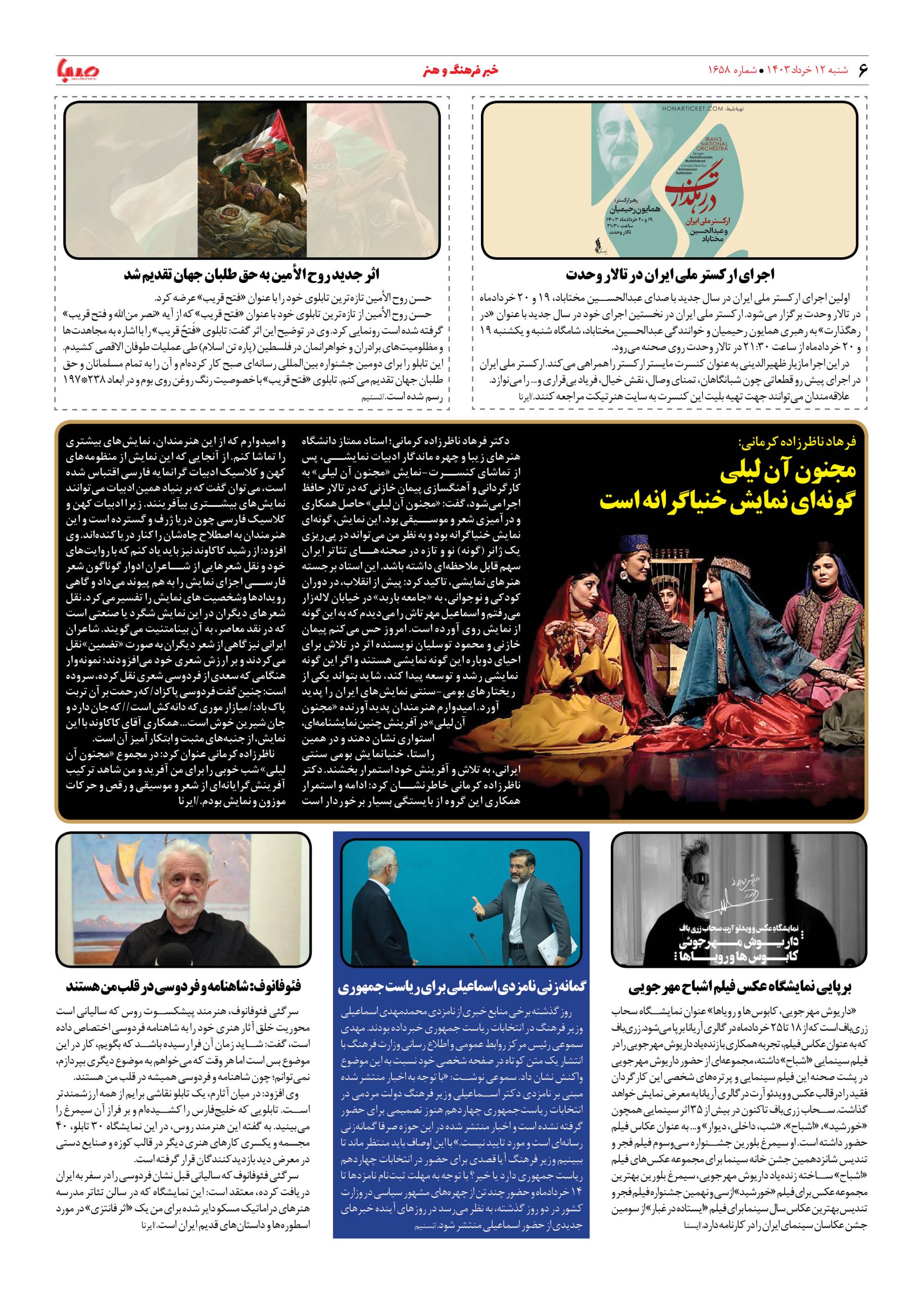 شماره ۱۶۵۸| روزنامه صبا شنبه ۱۲ خرداد ۱۴۰۳