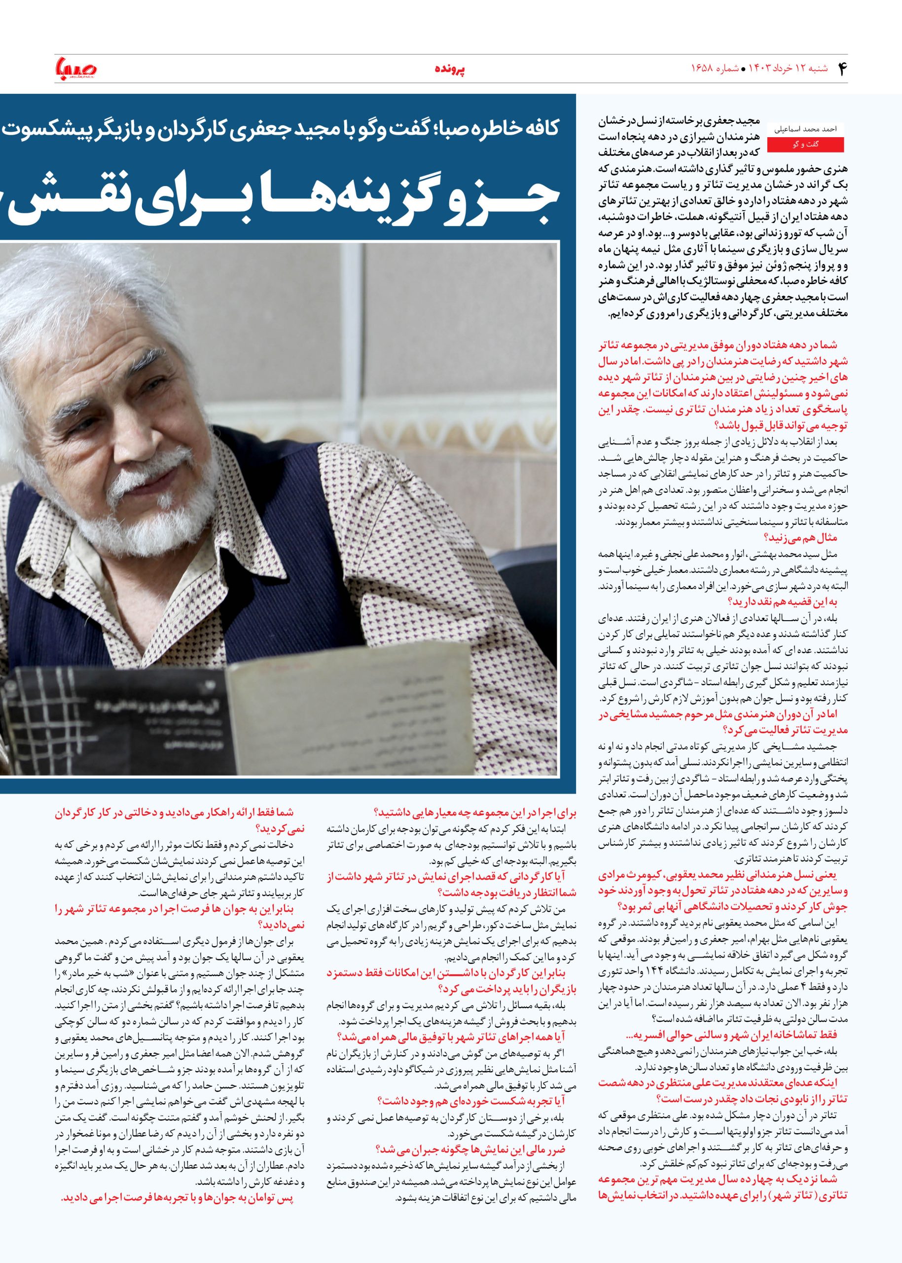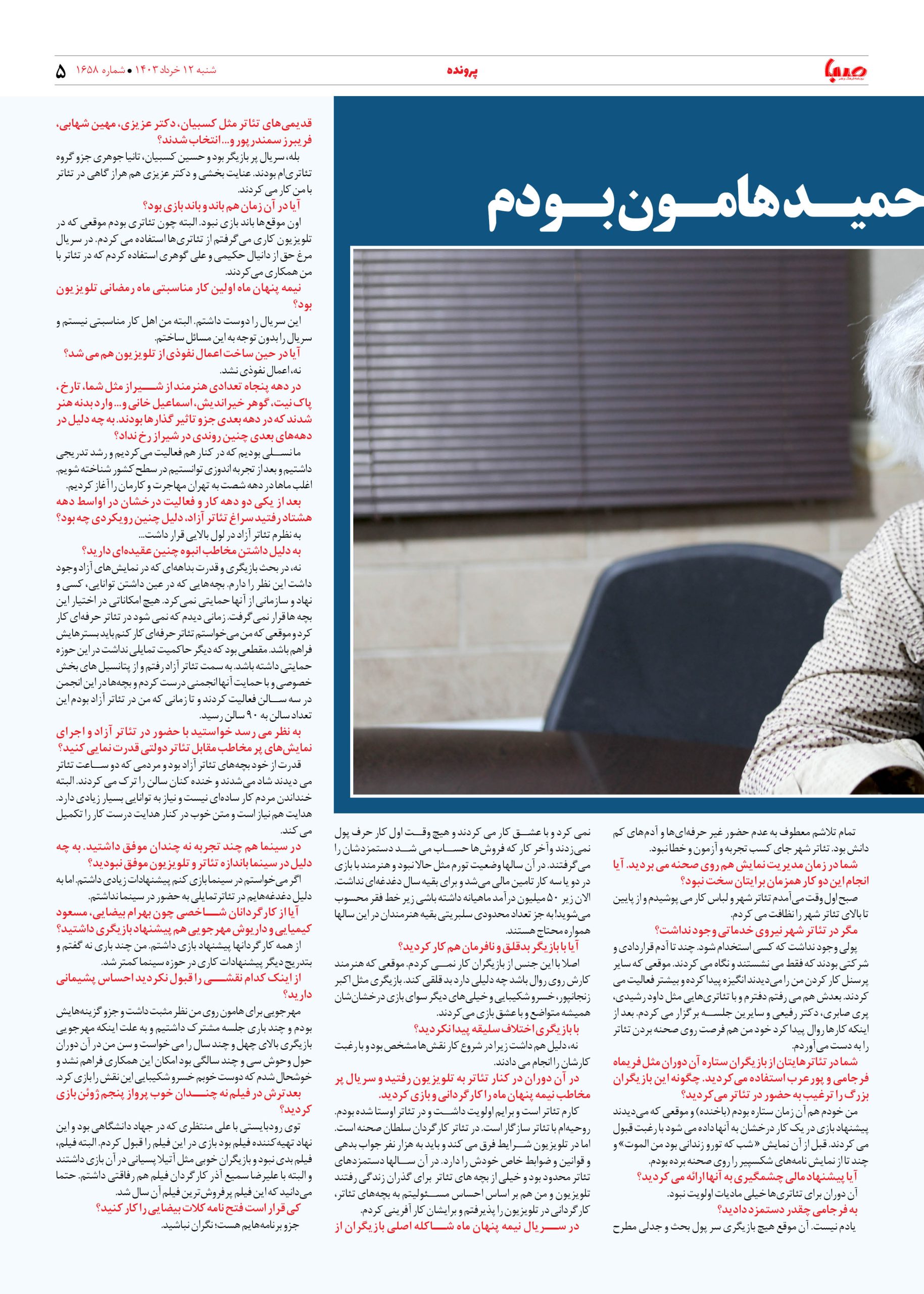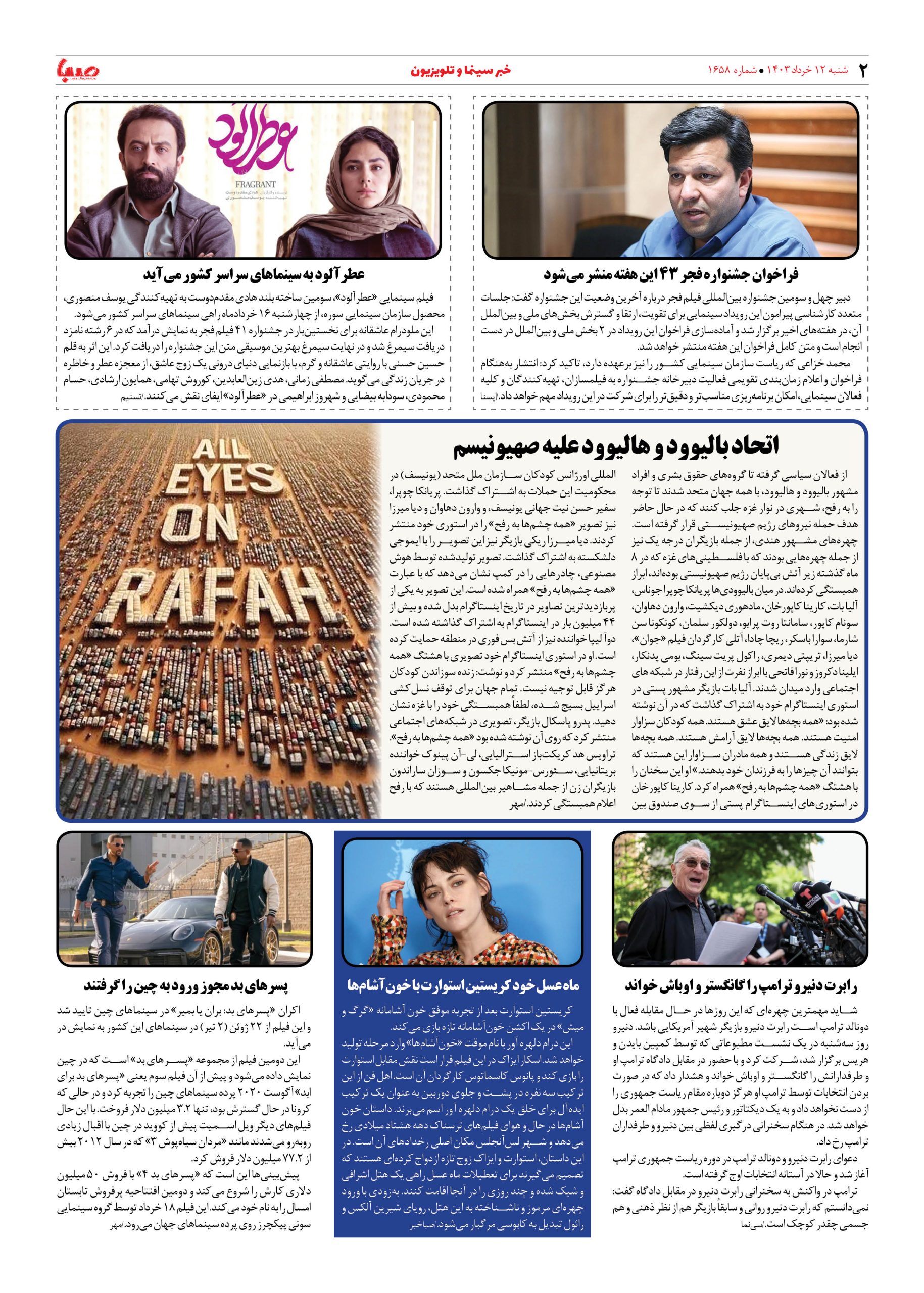 شماره ۱۶۵۸| روزنامه صبا شنبه ۱۲ خرداد ۱۴۰۳