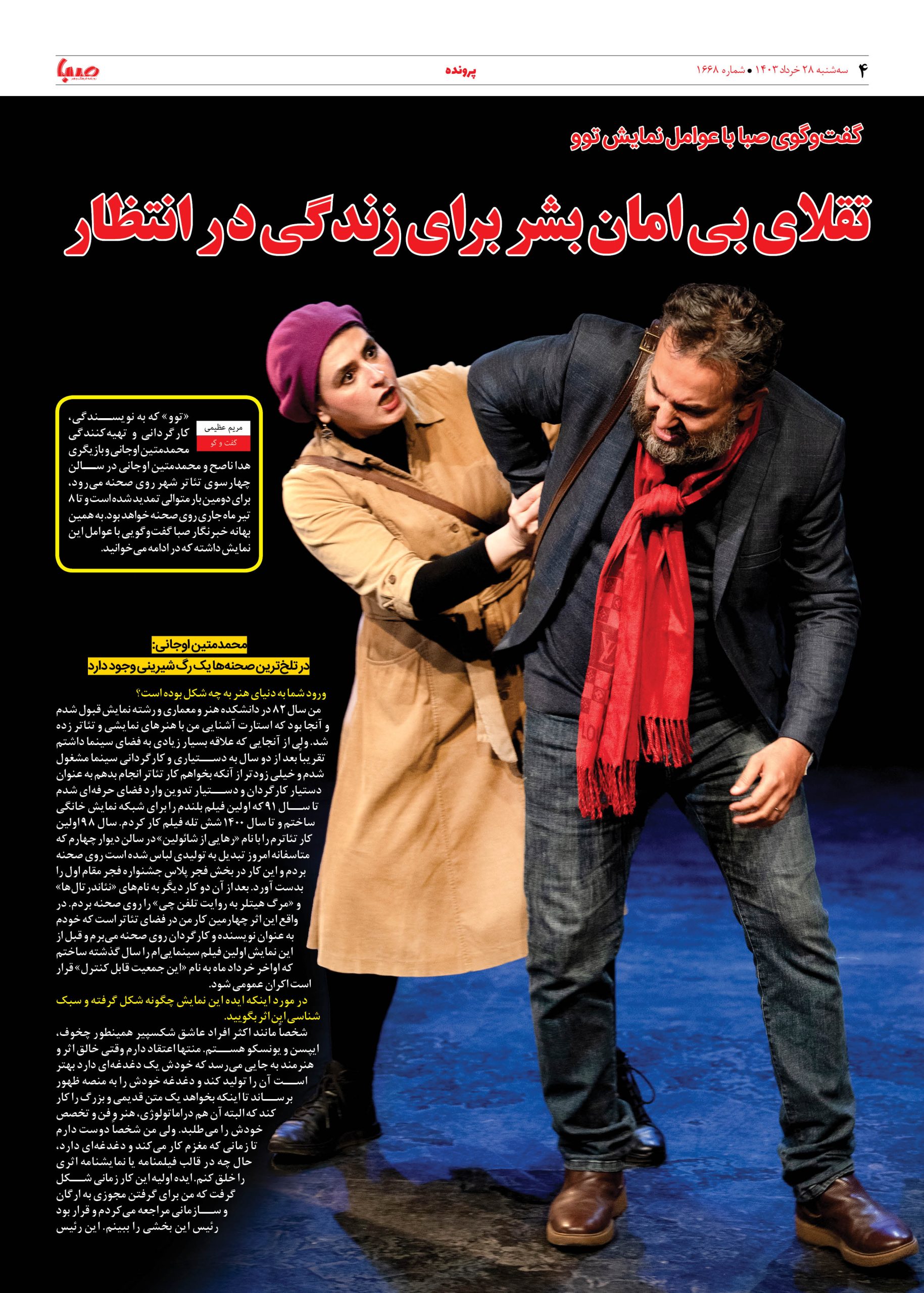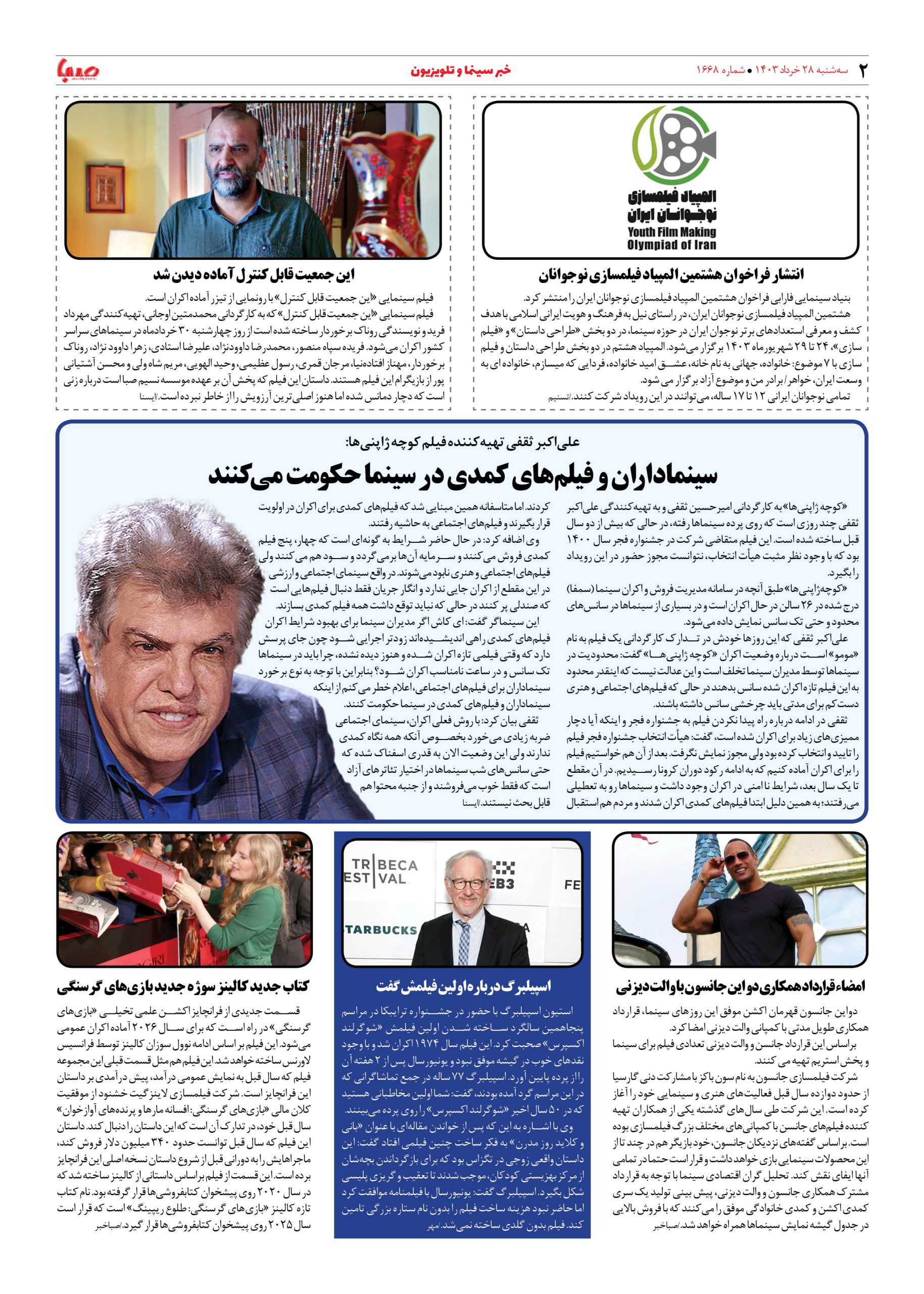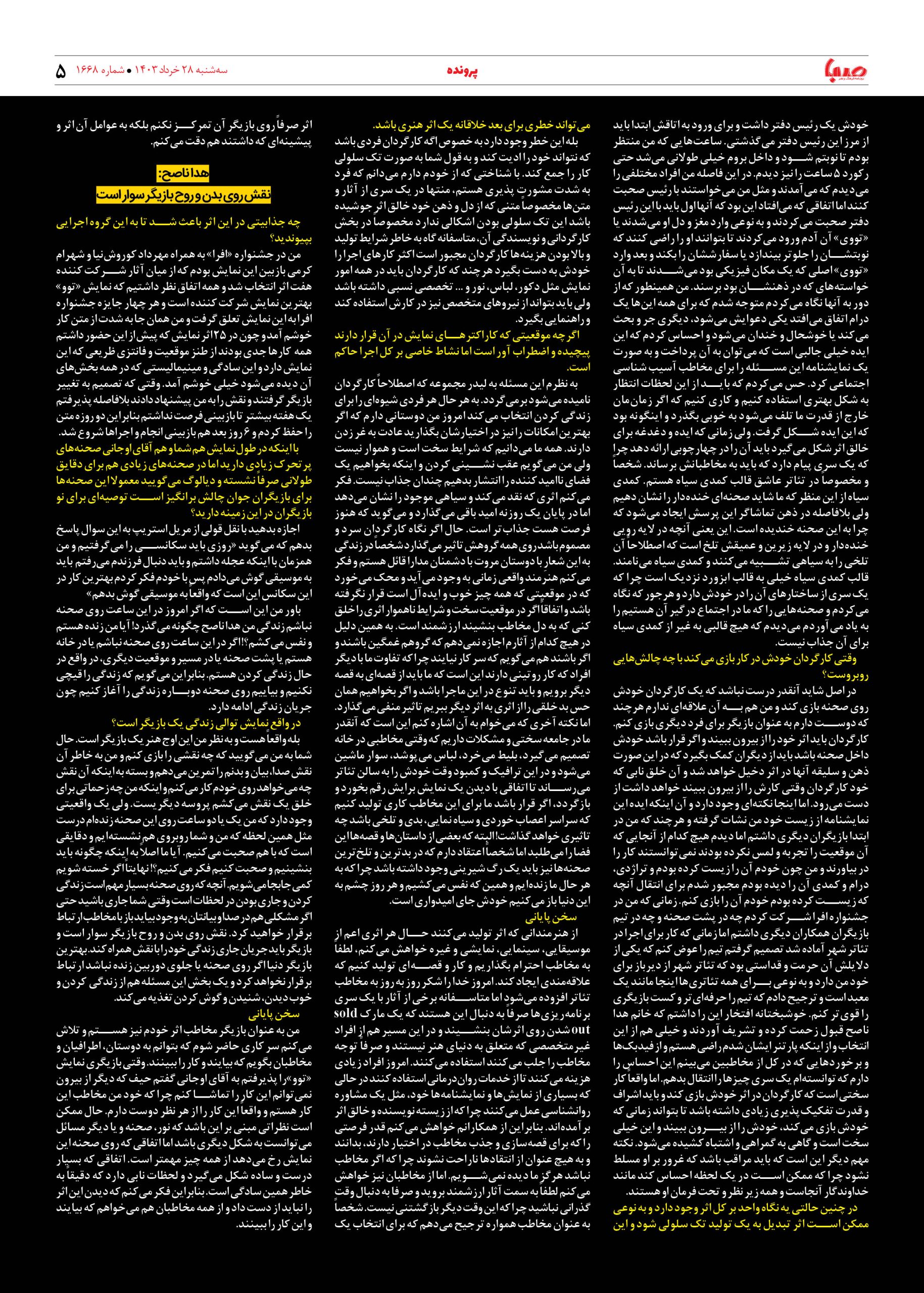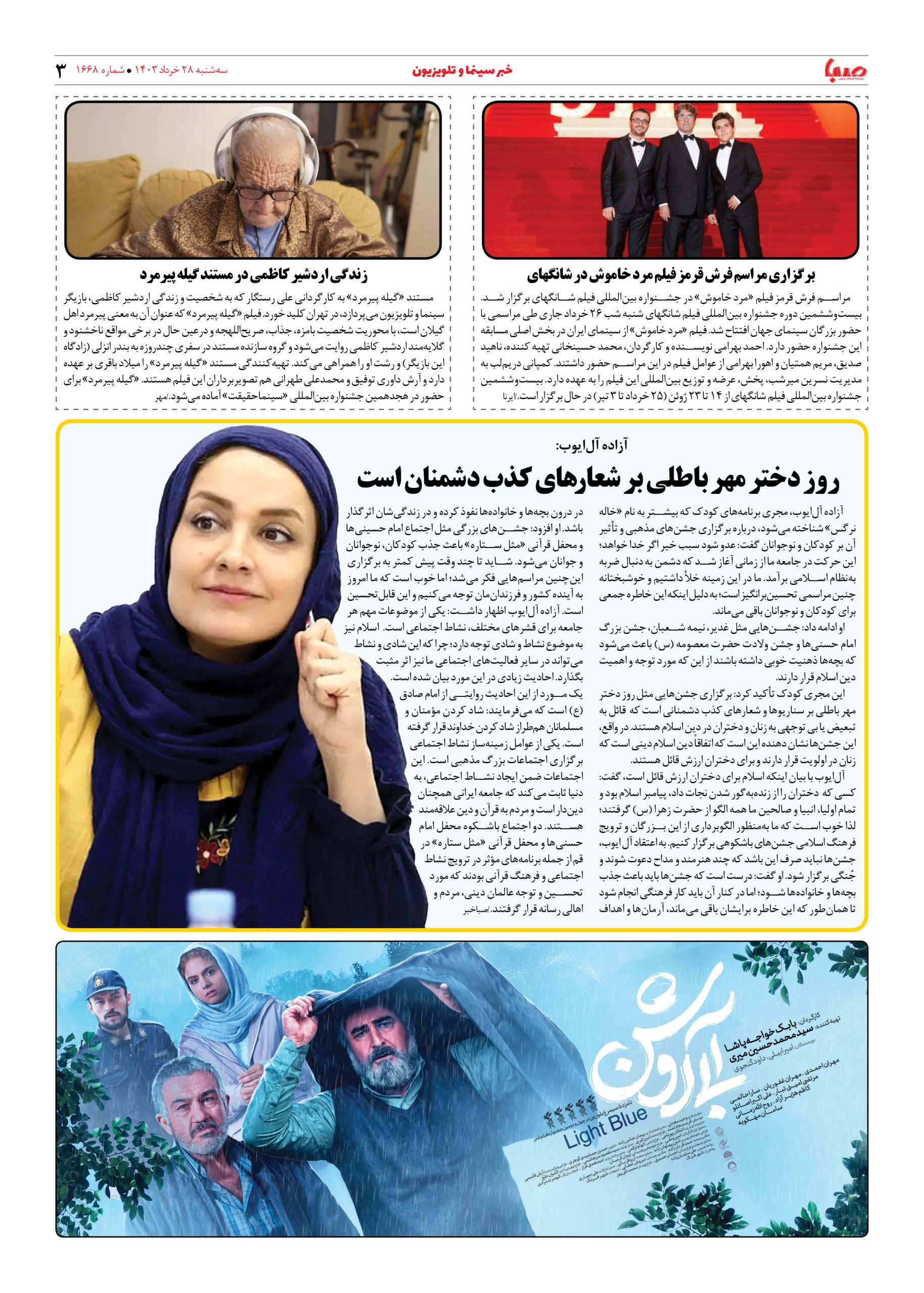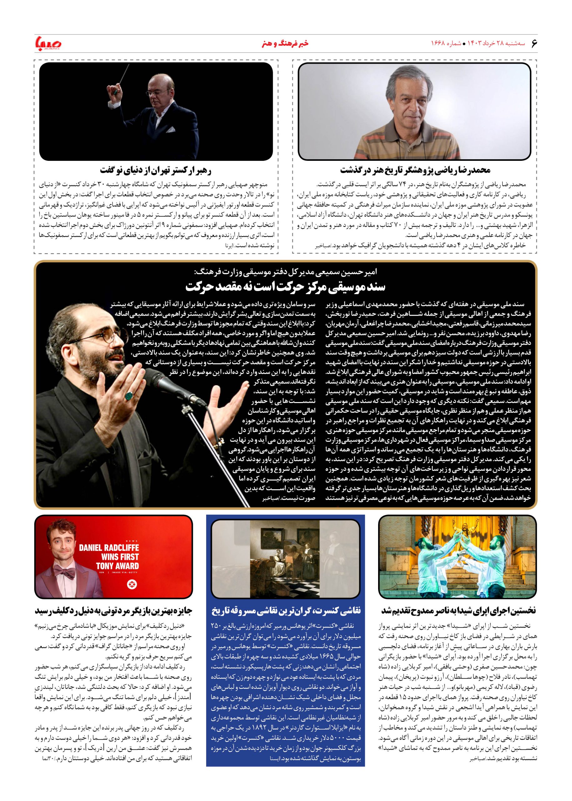شماره ۱۶۶۸| روزنامه صبا سه شنبه ۲۹ خرداد ۱۴۰۳
