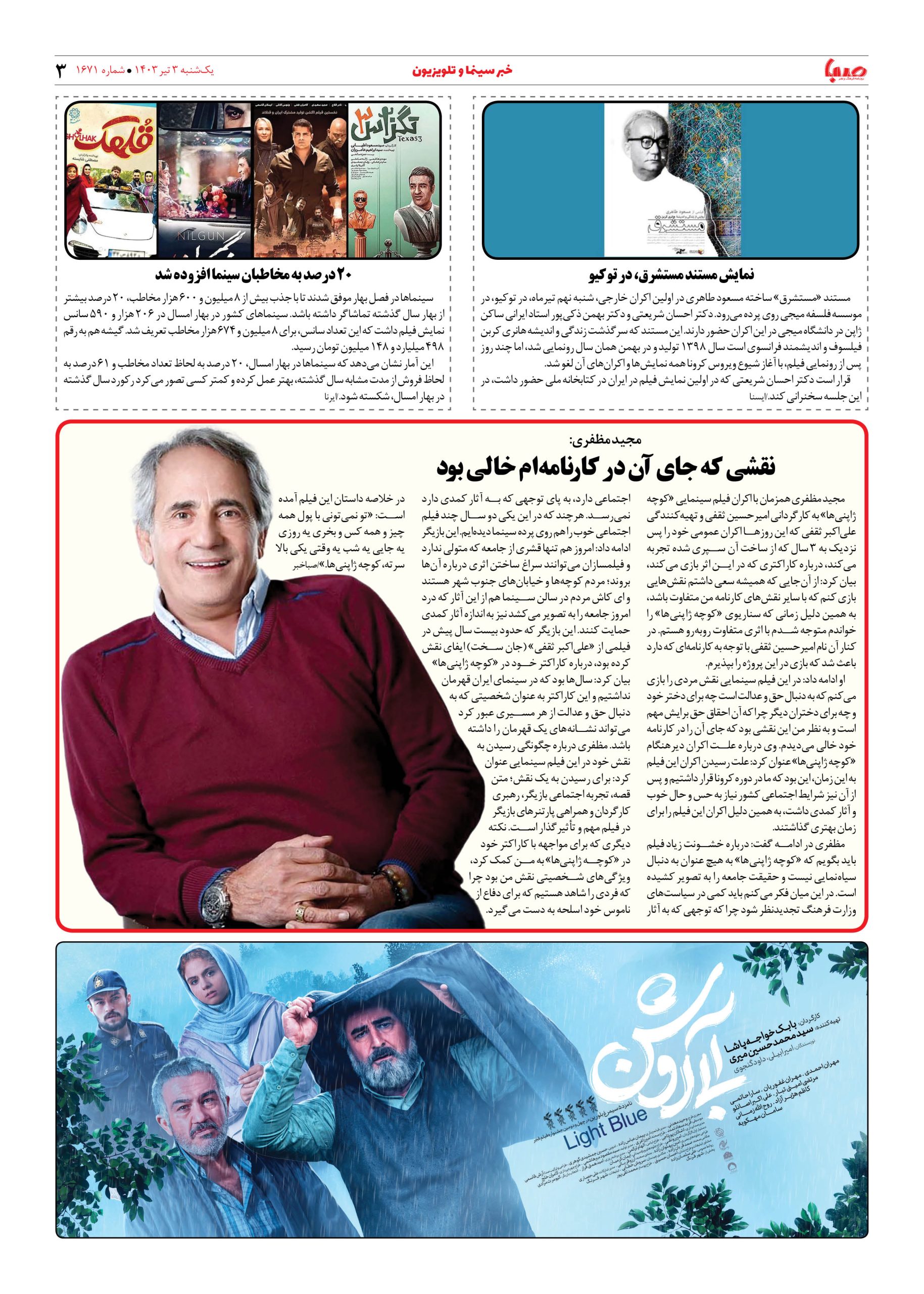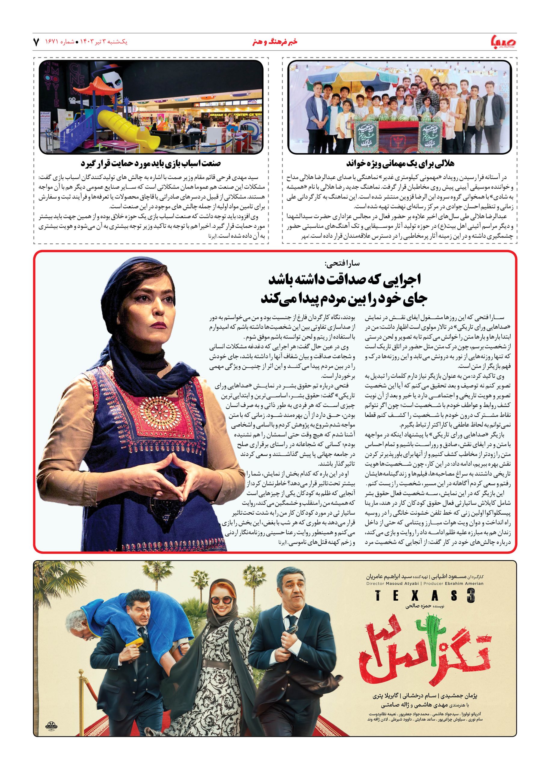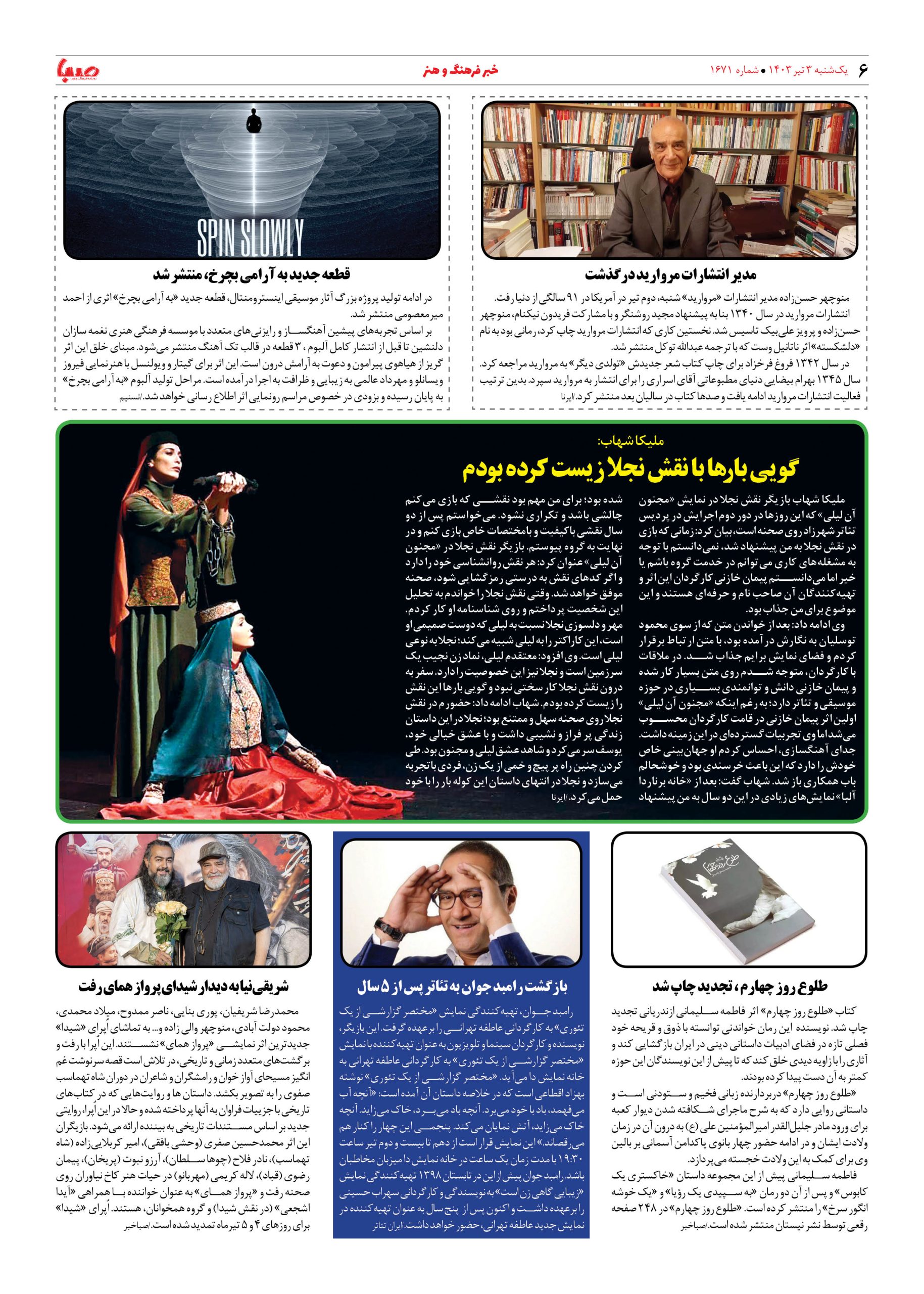 شماره ۱۶۷۱| روزنامه صبا یکشنبه ۳ تیر ۱۴۰۳