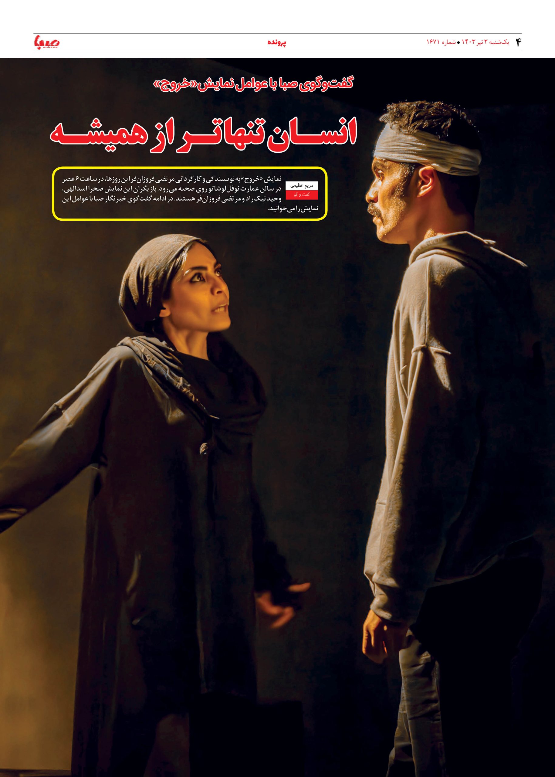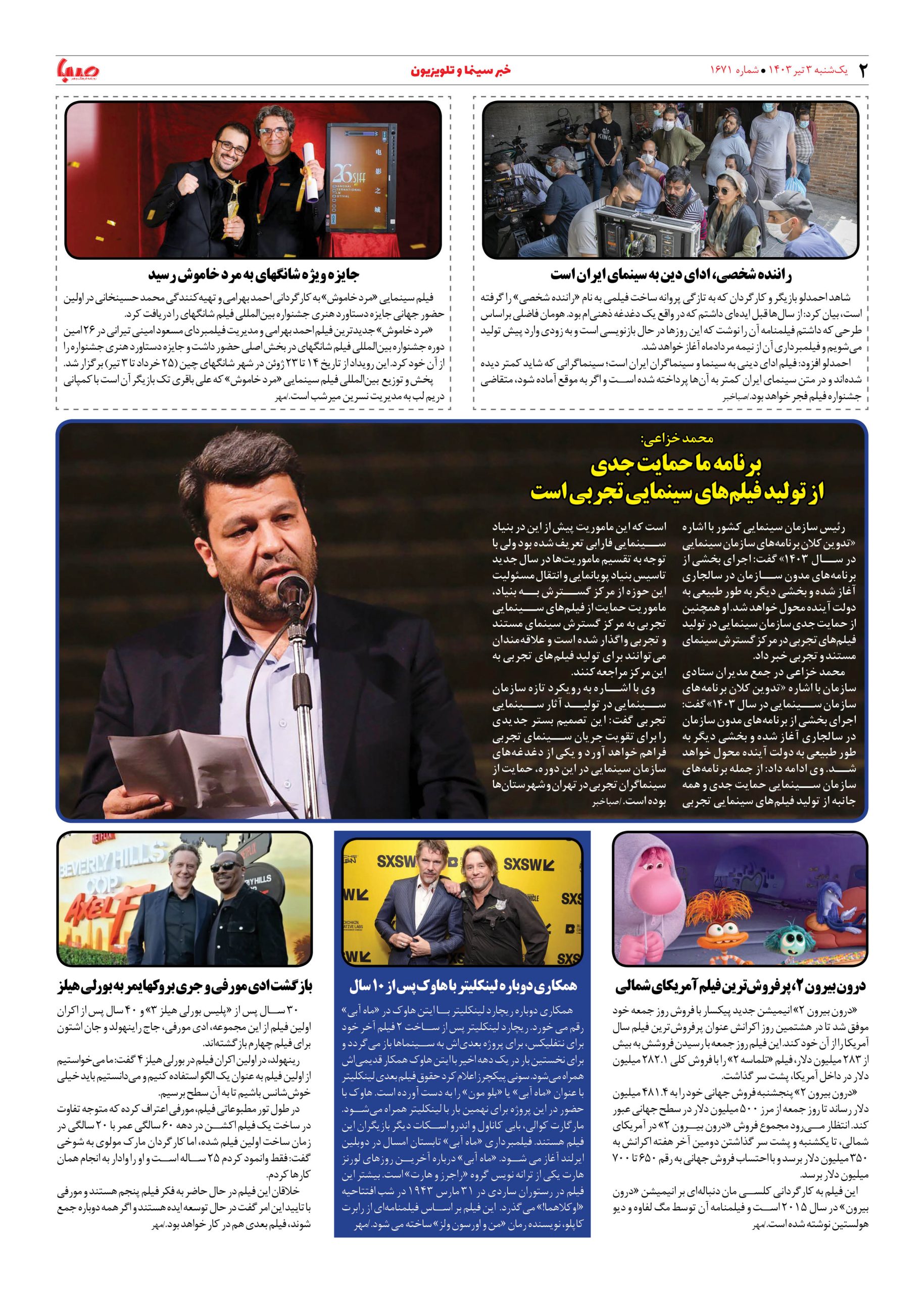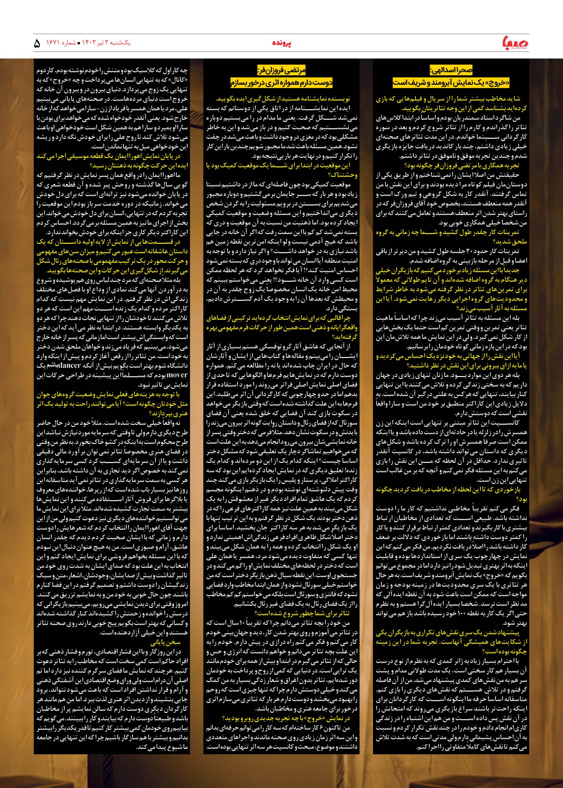 شماره ۱۶۷۱| روزنامه صبا یکشنبه ۳ تیر ۱۴۰۳