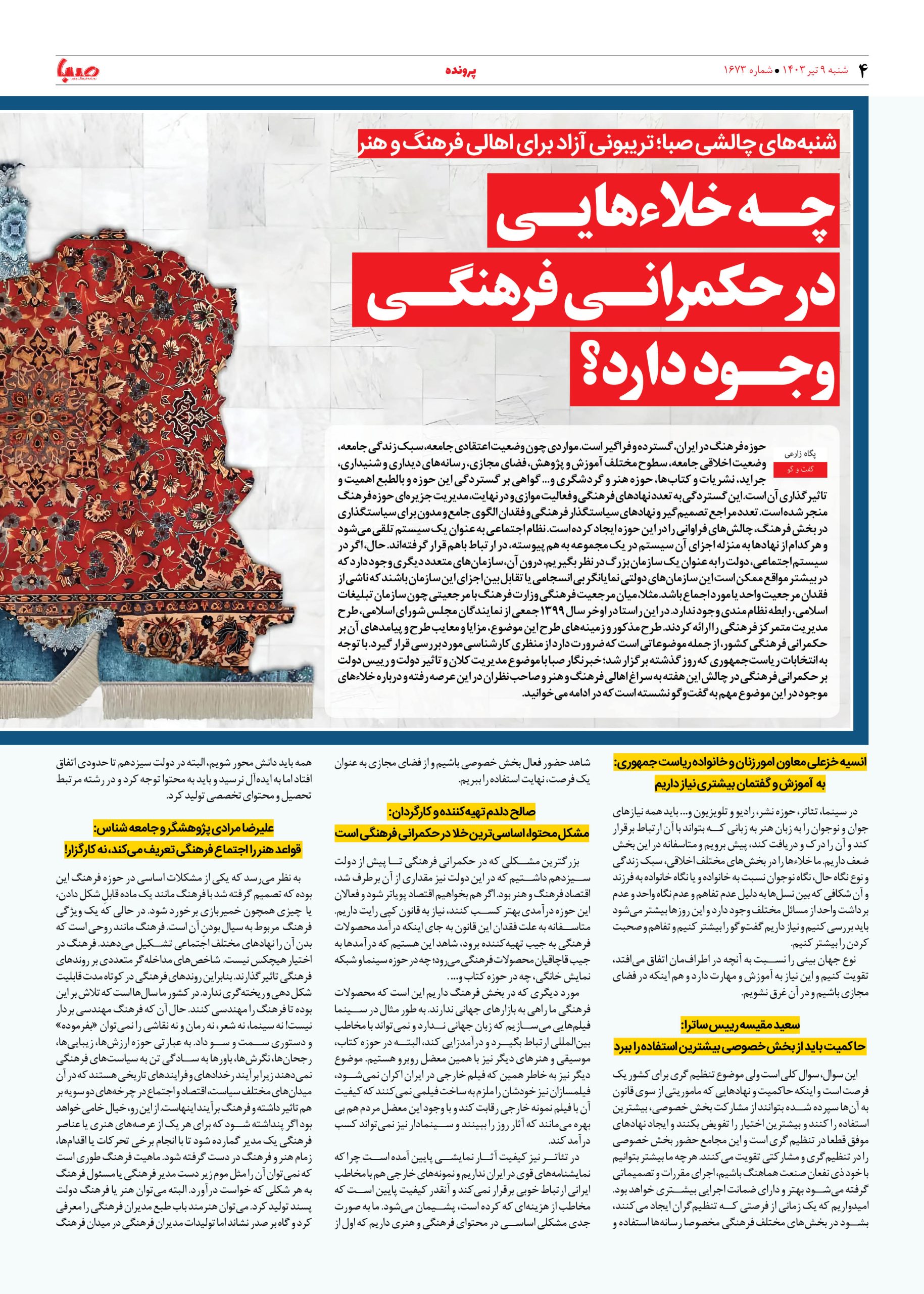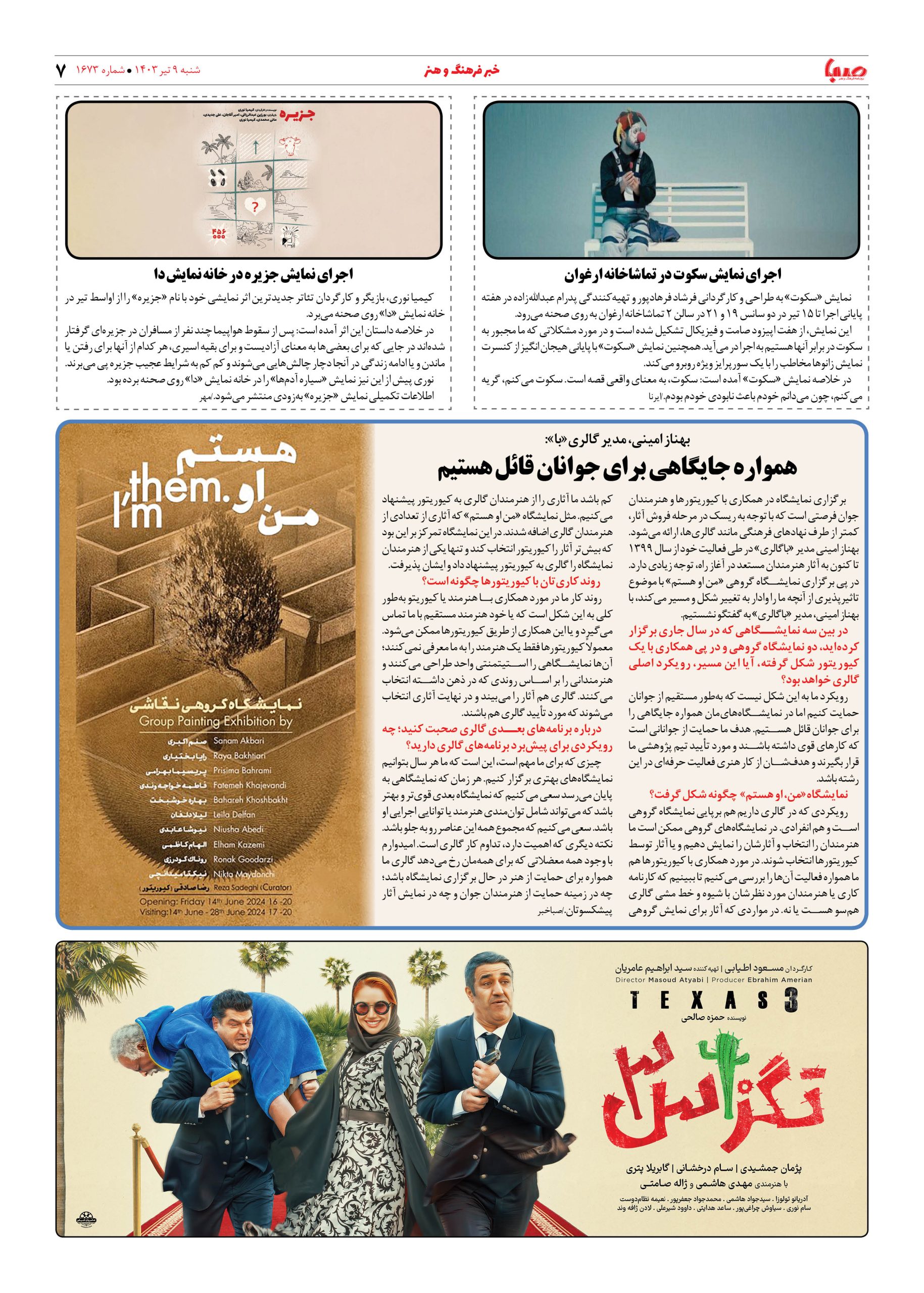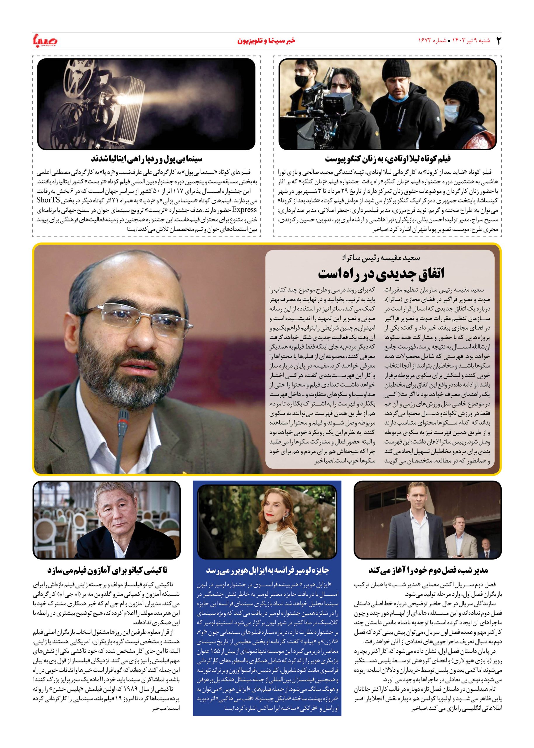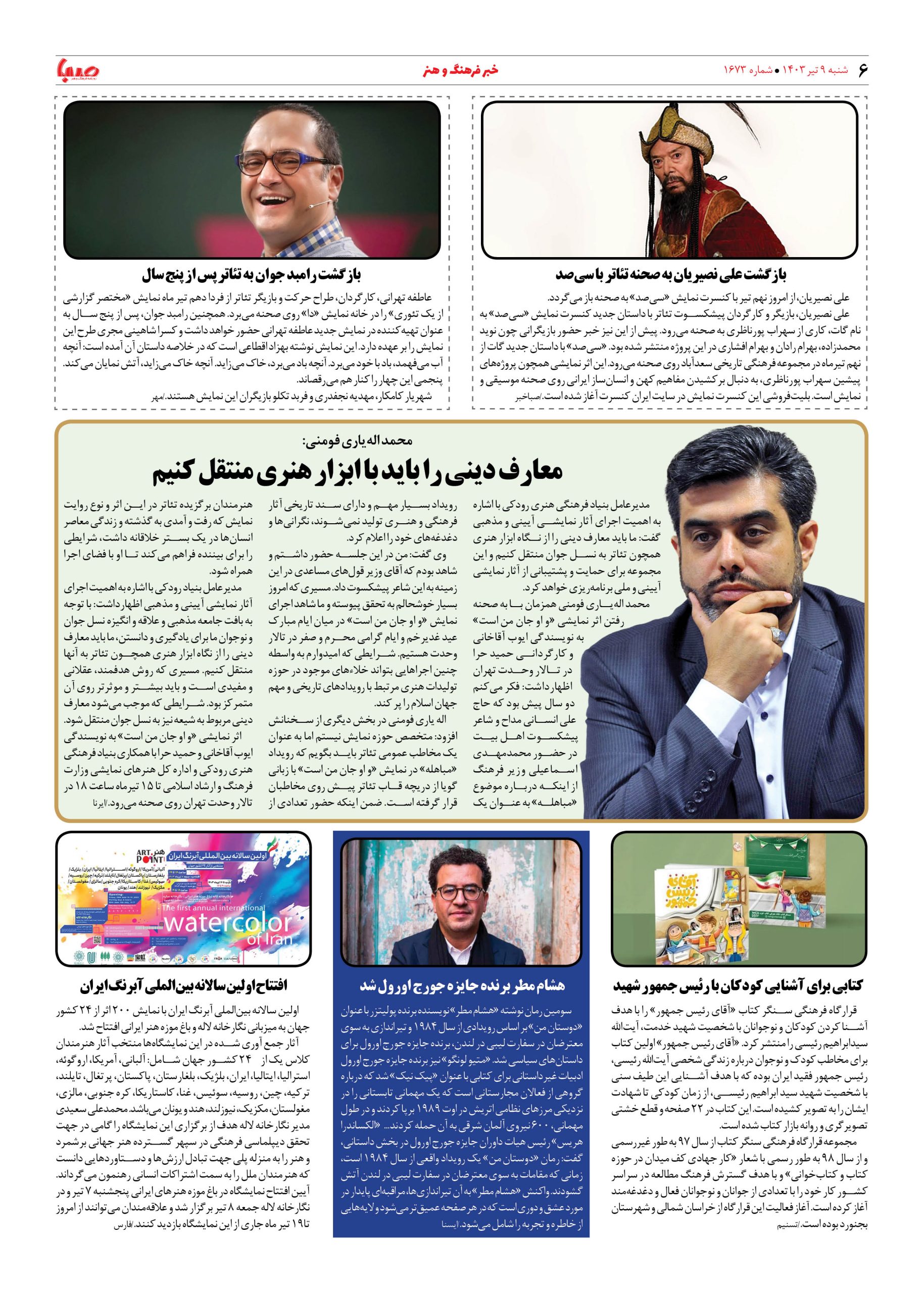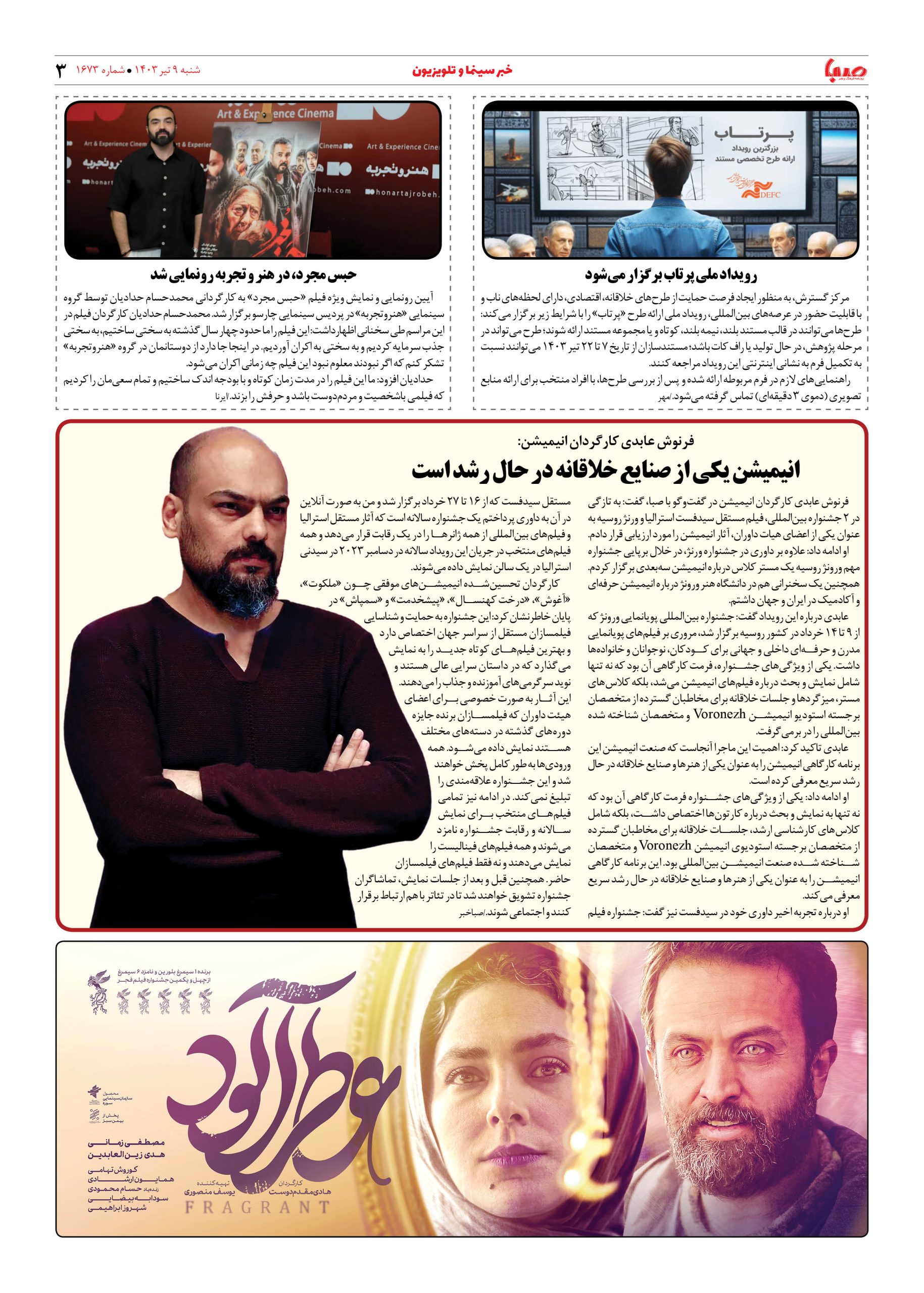 شماره ۱۶۷۳| روزنامه صبا شنبه ۹ تیر ۱۴۰۳