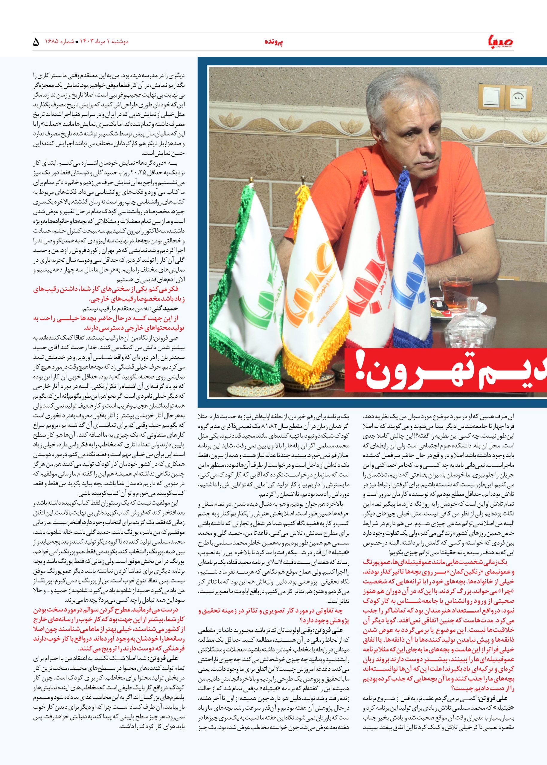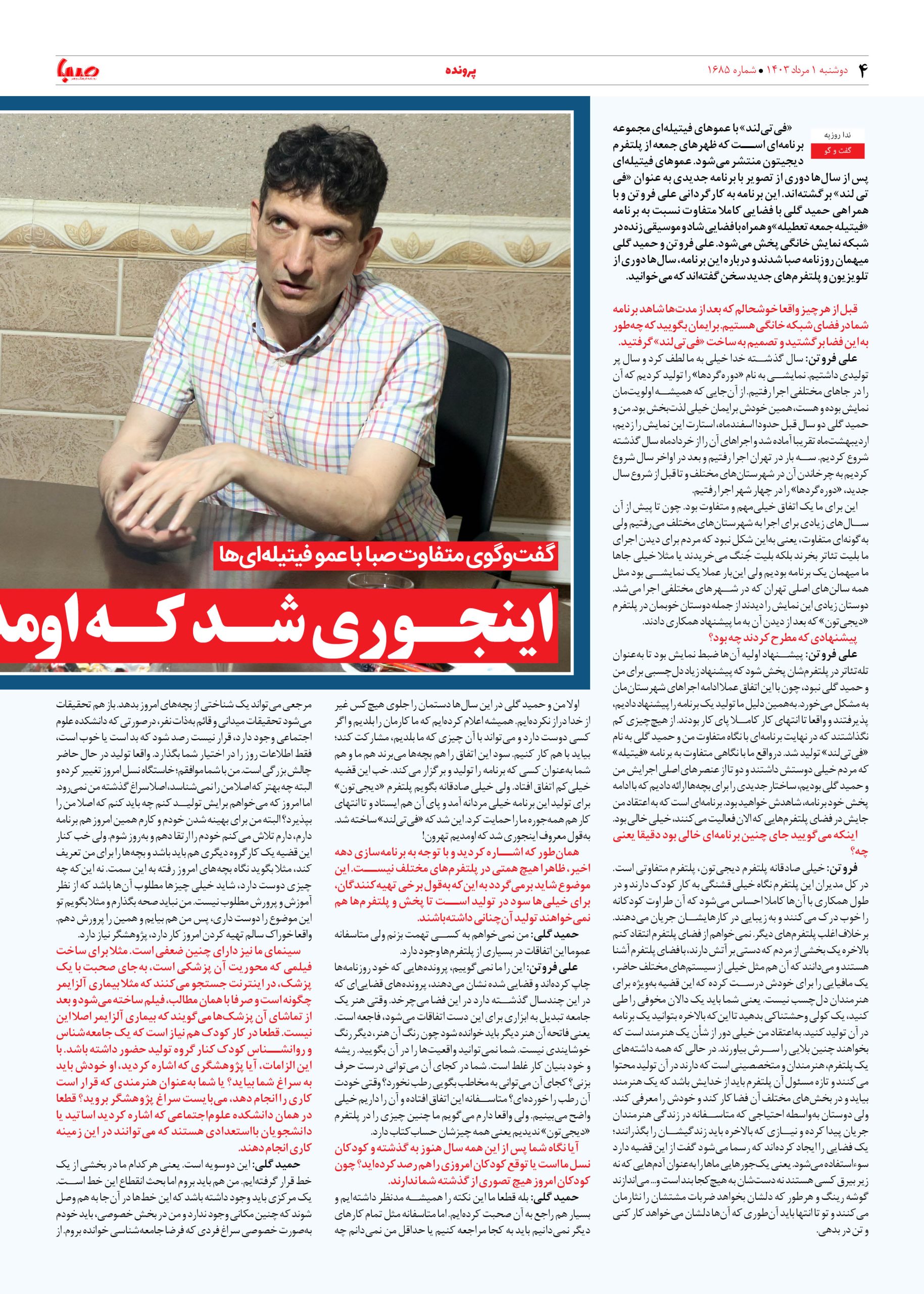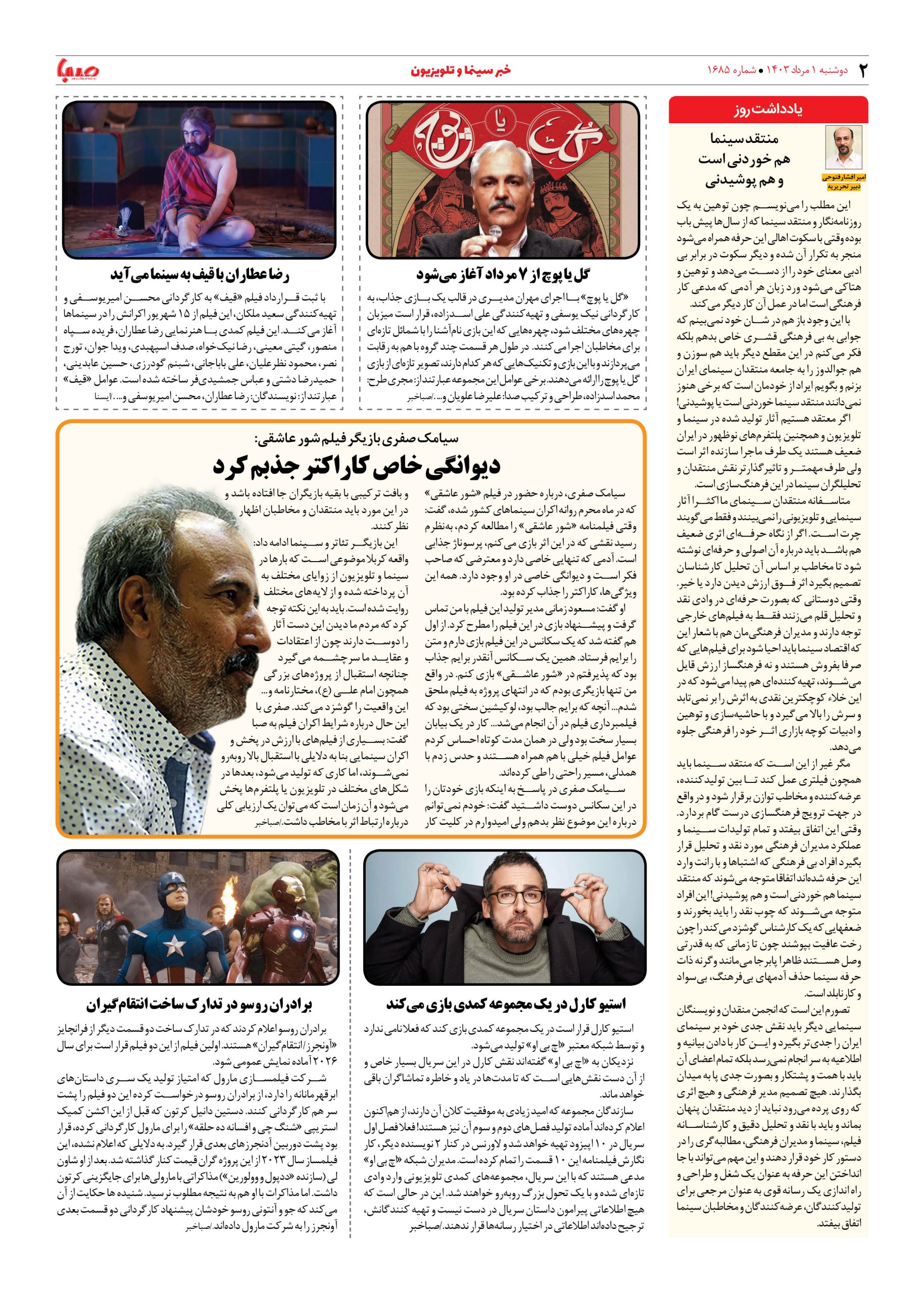 شماره ۱۶۸۵| روزنامه صبا دوشنبه ۱ مرداد ۱۴۰۳