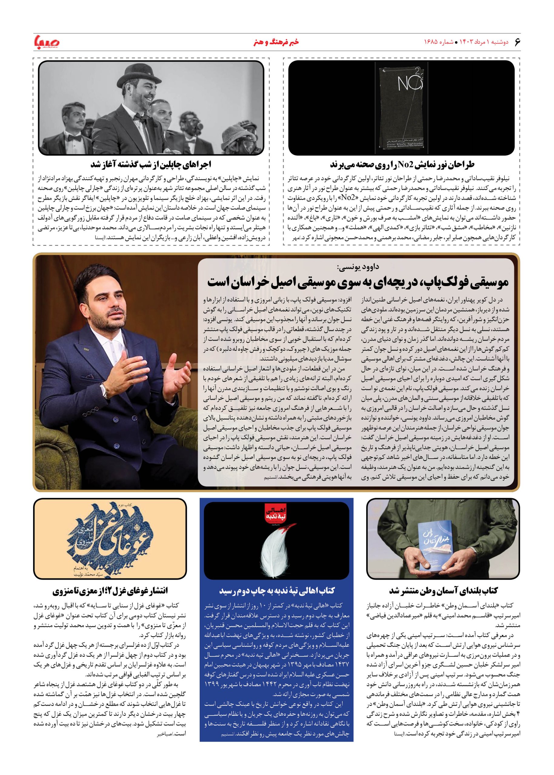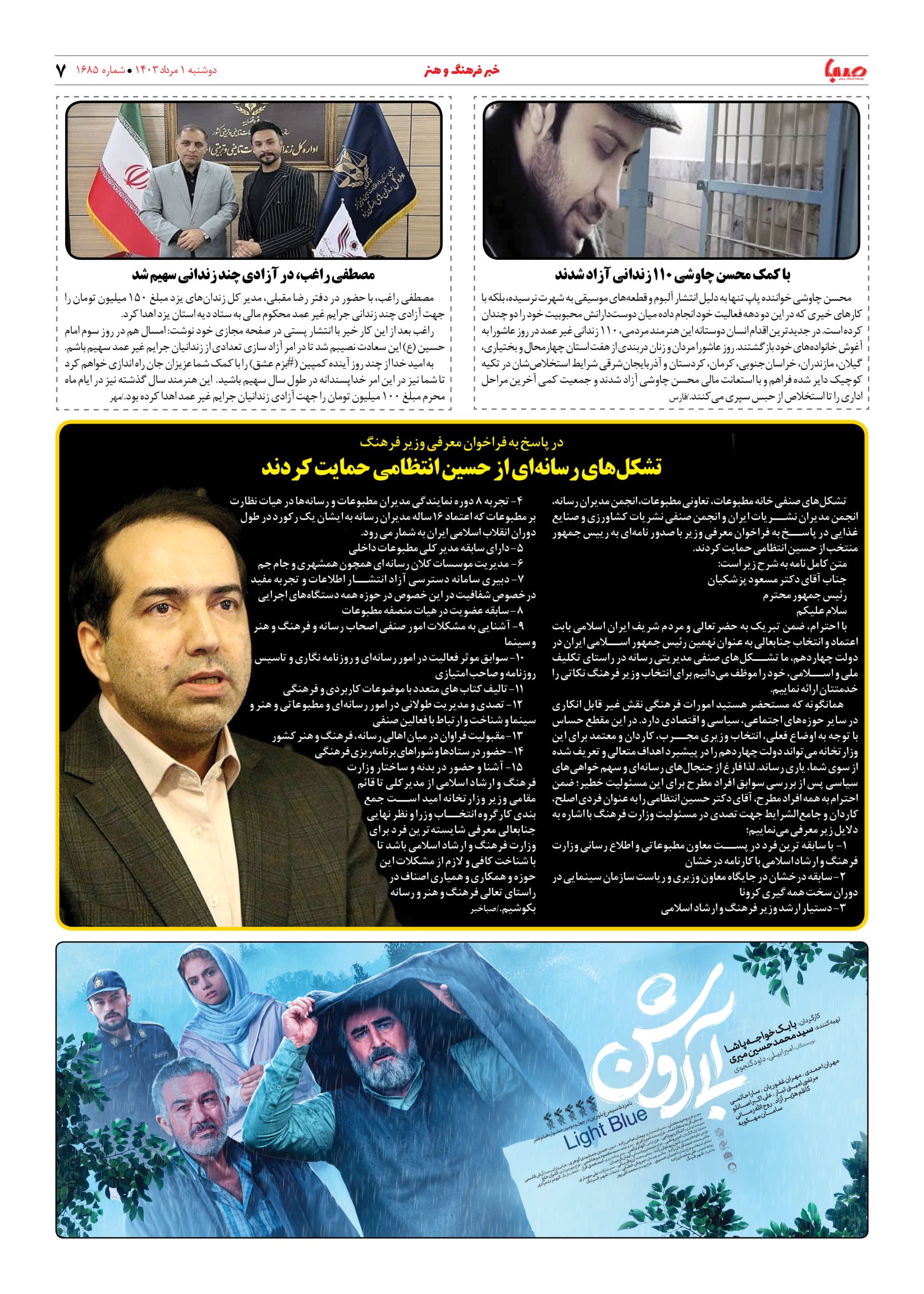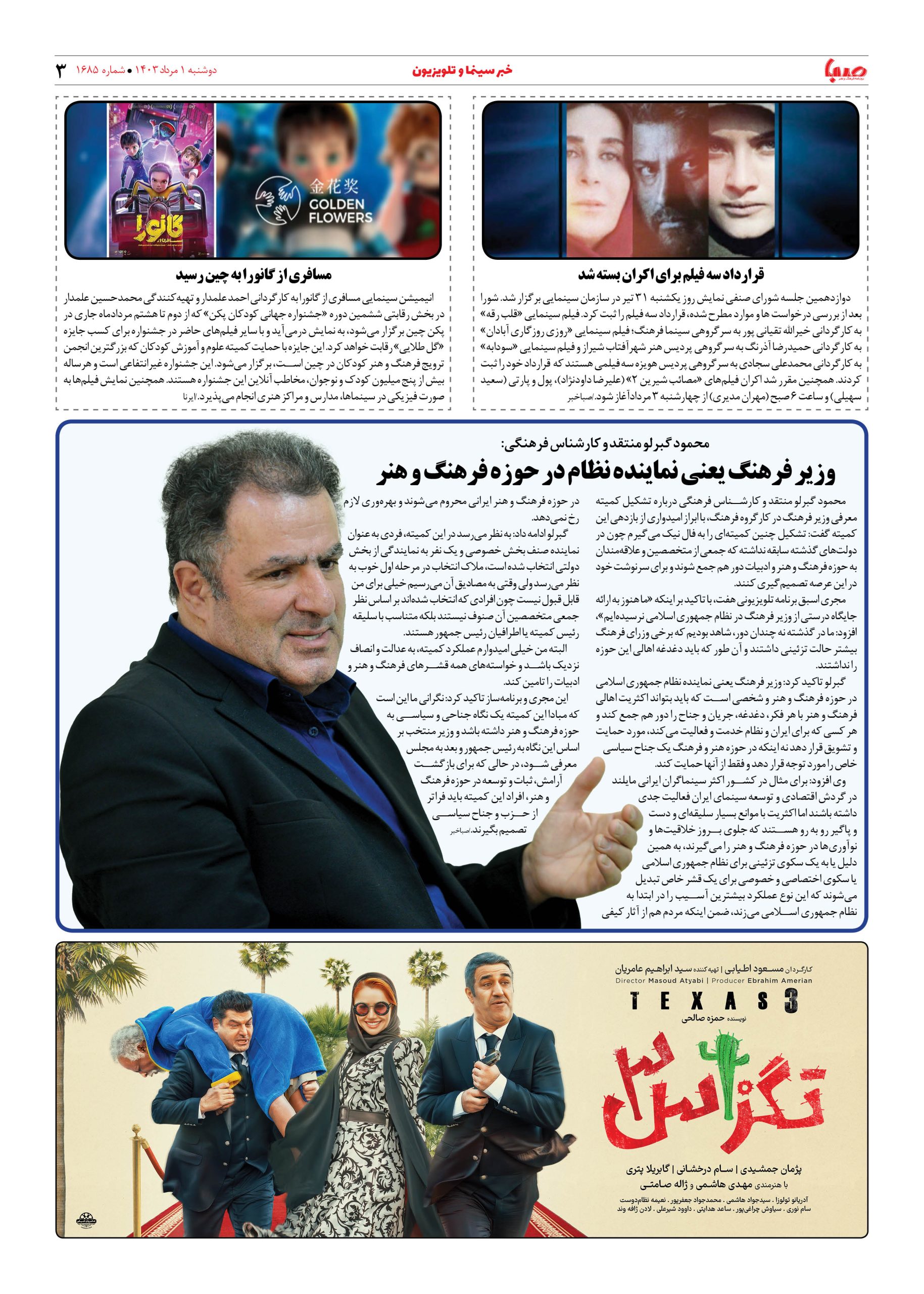 شماره ۱۶۸۵| روزنامه صبا دوشنبه ۱ مرداد ۱۴۰۳